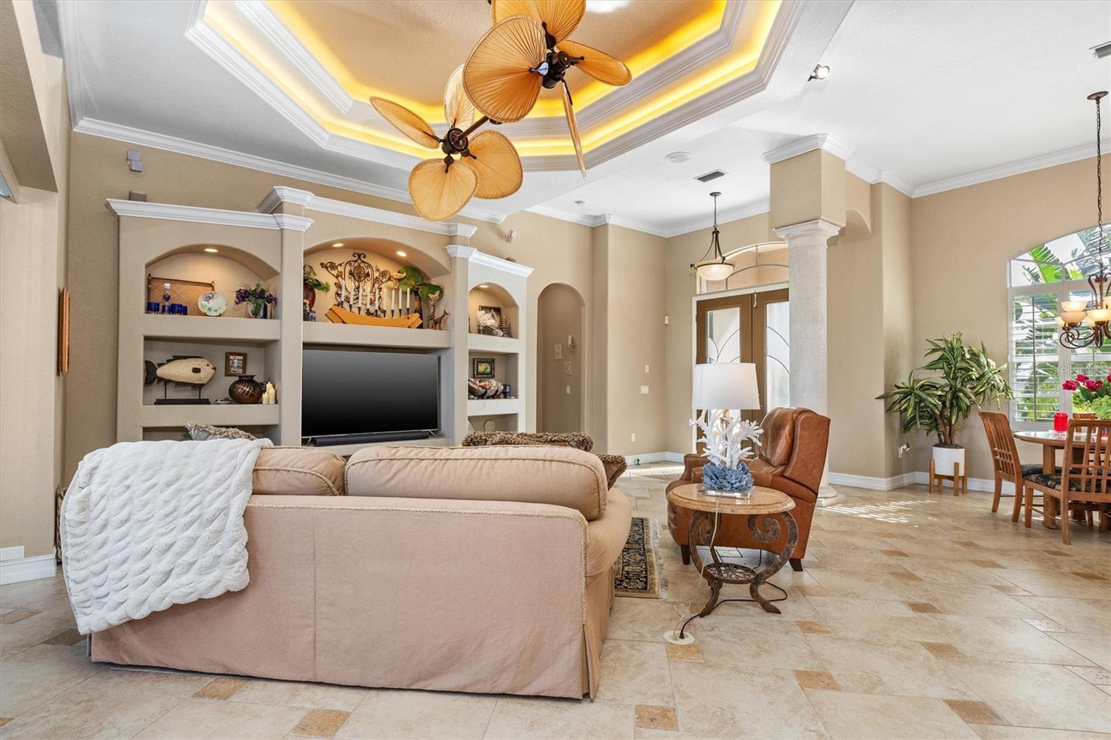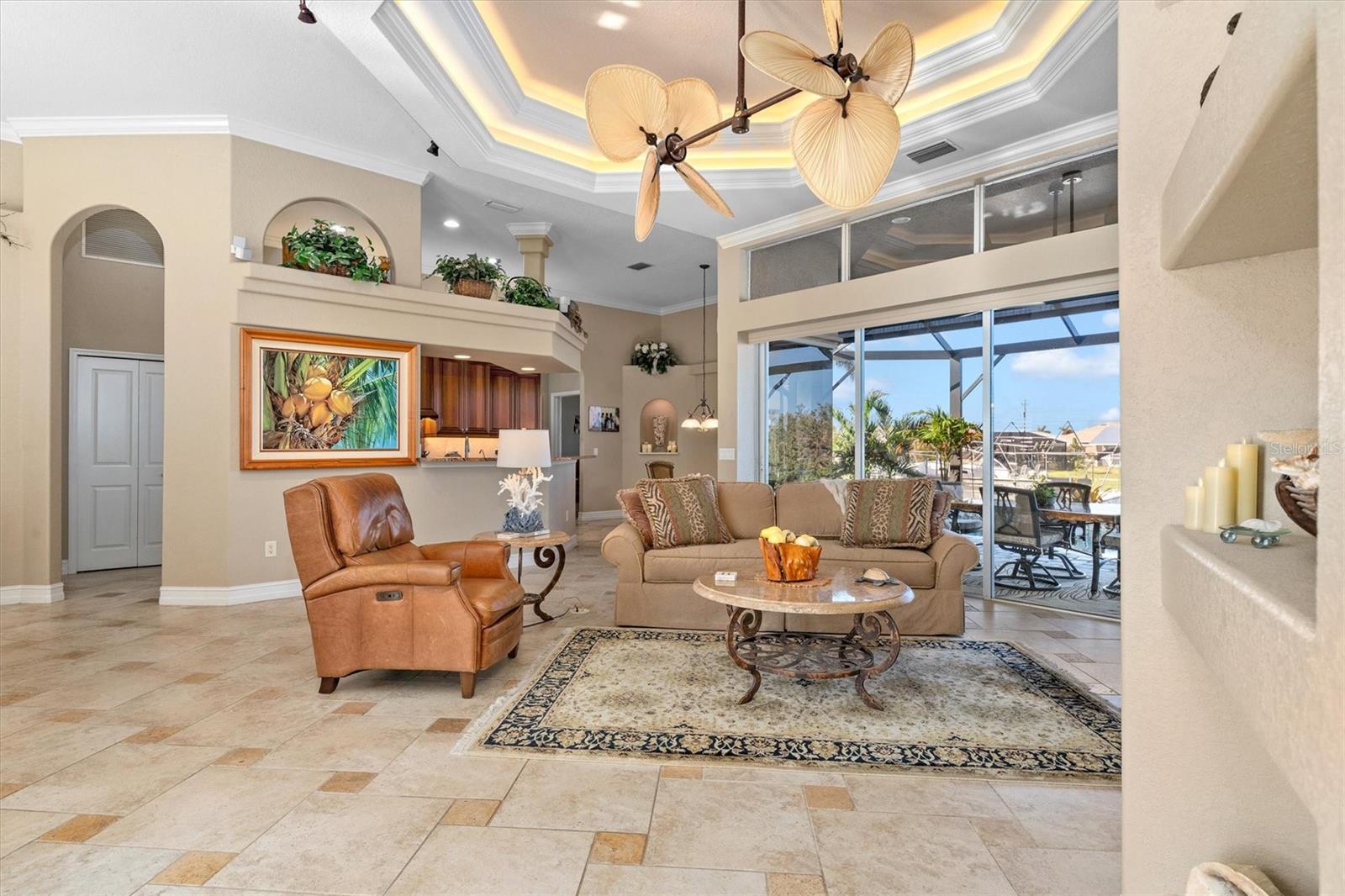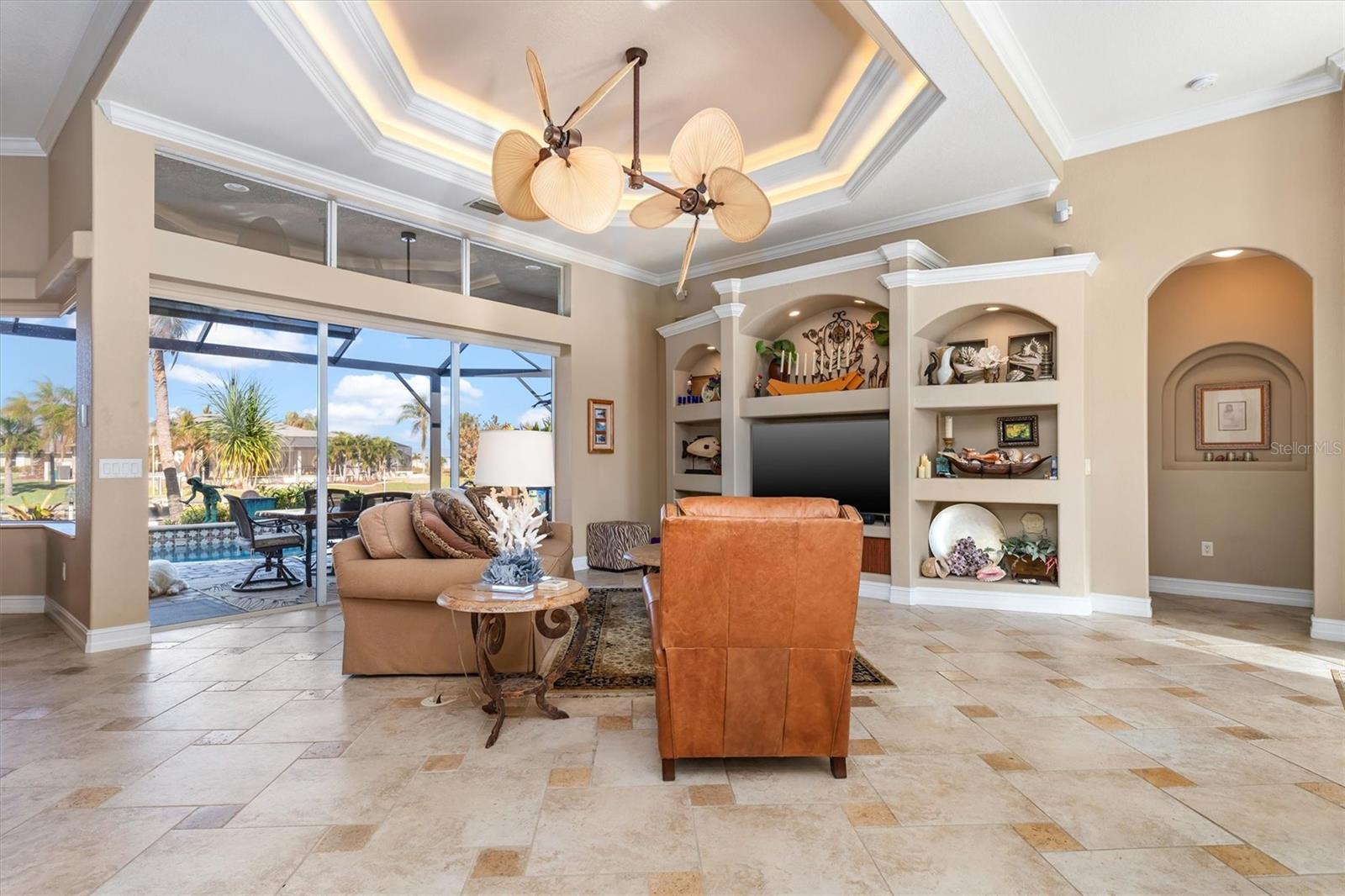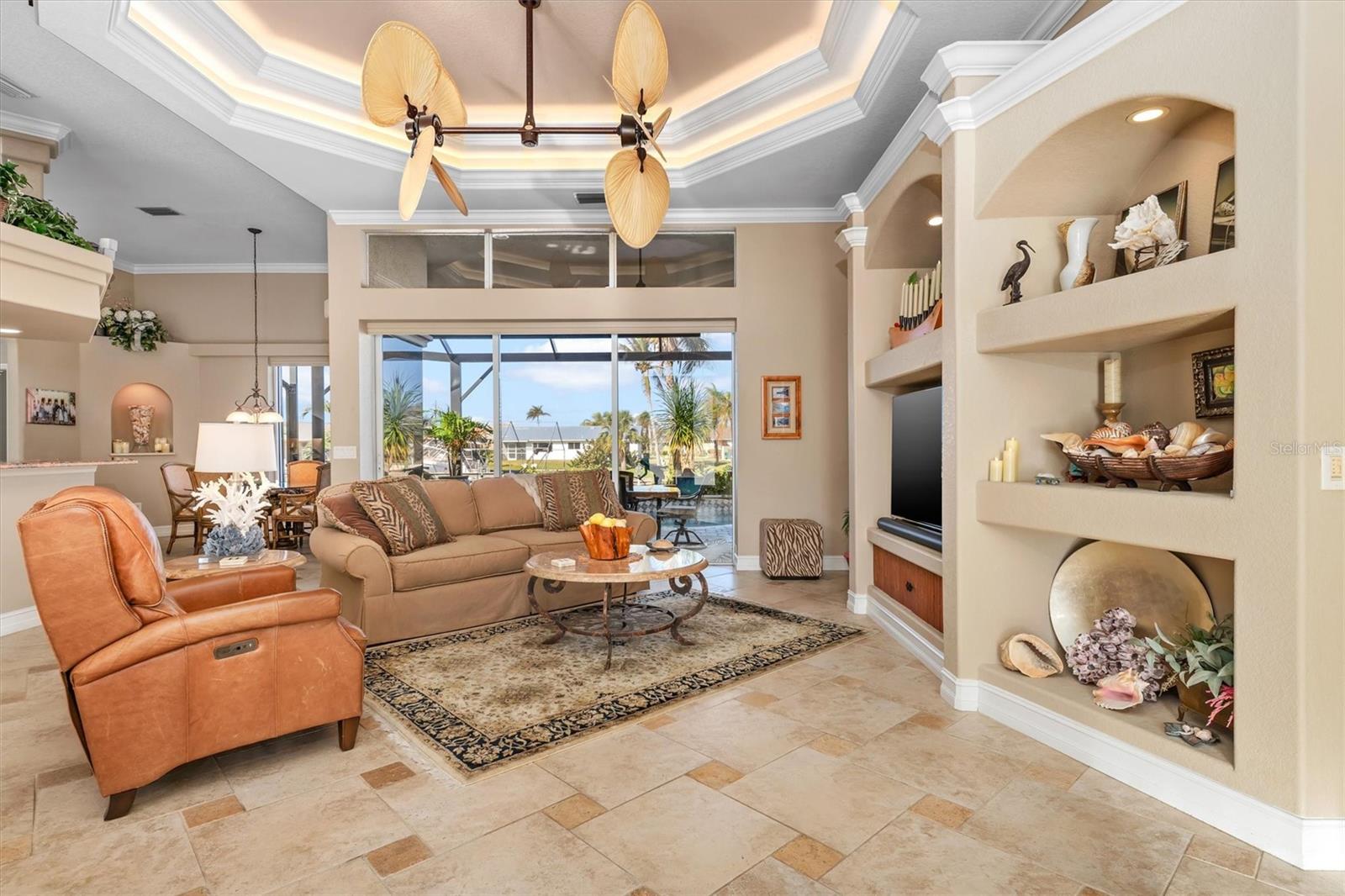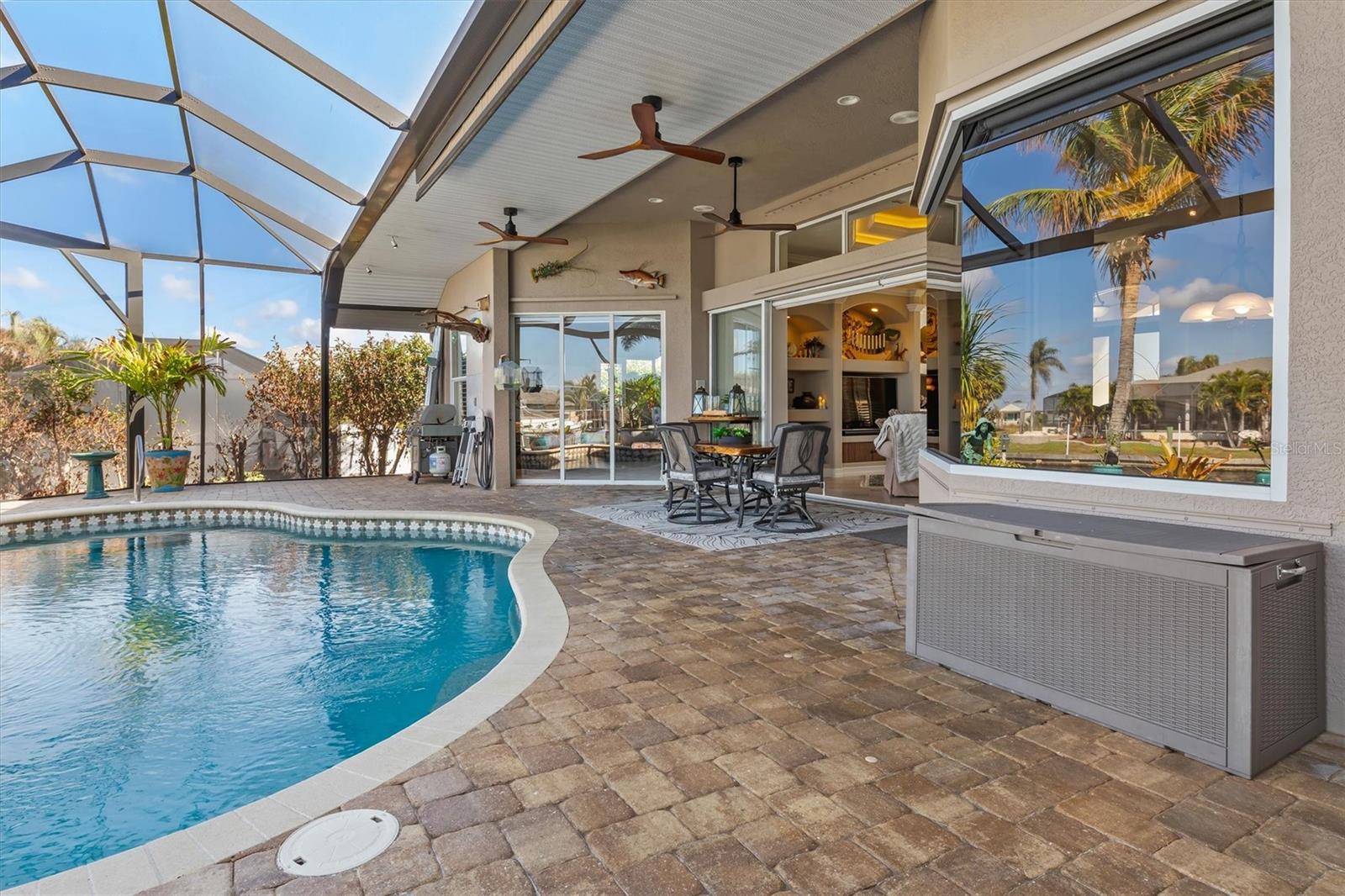 Check out the 3-D virtual walk through above! Stunning SAILBOAT ACCESS home with additional buildable lot to keep or sell! Original owners spared no expense to maintain this meticulous home with custom details throughout. As you enter this spacious, open floor plan home from the beautiful double doors (with retractable double screen), you view the Eastlake Waterway and a custom designed pool area with new Clearview screen. Specially designed Travertine flooring along with Hickory Wood flooring make this home a unique find. Custom remote controlled linen shades adorn the massive sliding glass doors and plantation shutters that are in other windows. High-end interior design includes several “art niches,” crown molding, tray ceilings, banana leaf inset in tray ceiling in Primary Bedroom, glass block shower, walk-in custom designed closets, and a Murphy bed for easy transition from a bedroom to an office/den! The split floor plan includes both a HUGE Primary Suite and two HUGE bedrooms to make this home perfect for entertaining guests. The kitchen has too many unique features to mention them all…wine cooler, Induction GE Café stove with pull out hood, solid Cherry Wood cabinets, pull out trash bins, top of the line refrigerator, and gorgeous granite countertop. The kitchen nook features a large Aquarium Window that is the focal point of the home. While sitting in the nook, you can view your beautiful custom pool with a unique garden of in-ground and potted plants. Go out the side lanai door and follow the paver walkway to your own lighted private boat dock. And, if you are interested, the 30 foot Twin Yanmar Diesel 630 horsepower boat is negotiable. Add in a totally new laundry room with stainless steel sink, granite countertop, new 30” stainless steel refrigerator, new washer/dryer “all-in-one” appliance and built-in cabinets, and you have the perfectly designed space! Both the lush landscaping surrounding the home and the lawn have been well maintained. The oversized garage has a lighted workspace and many types of shelving. The custom-built 12 x 16 shed is a great place for storage and has electricity. The location of the home is close to all shopping, doctors, and restaurants yet is situated in a secluded area with dead-end streets. The Eastlake Waterway will take your sailboat to Charlotte Harbor. And there is no HOA in this community. This property will “sell itself” with its unique mixture of traditional and Florida style. Make an appointment to see it today!