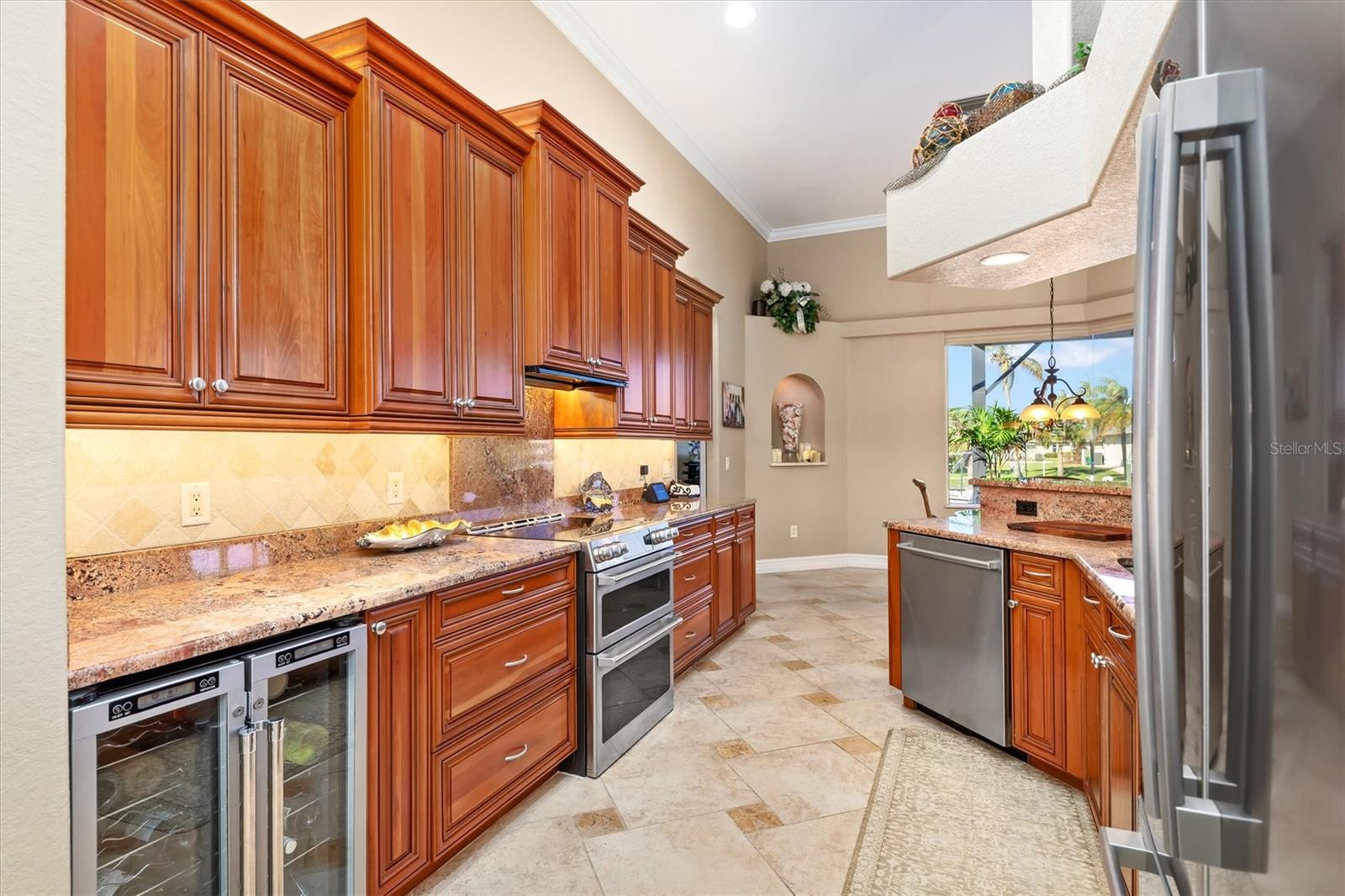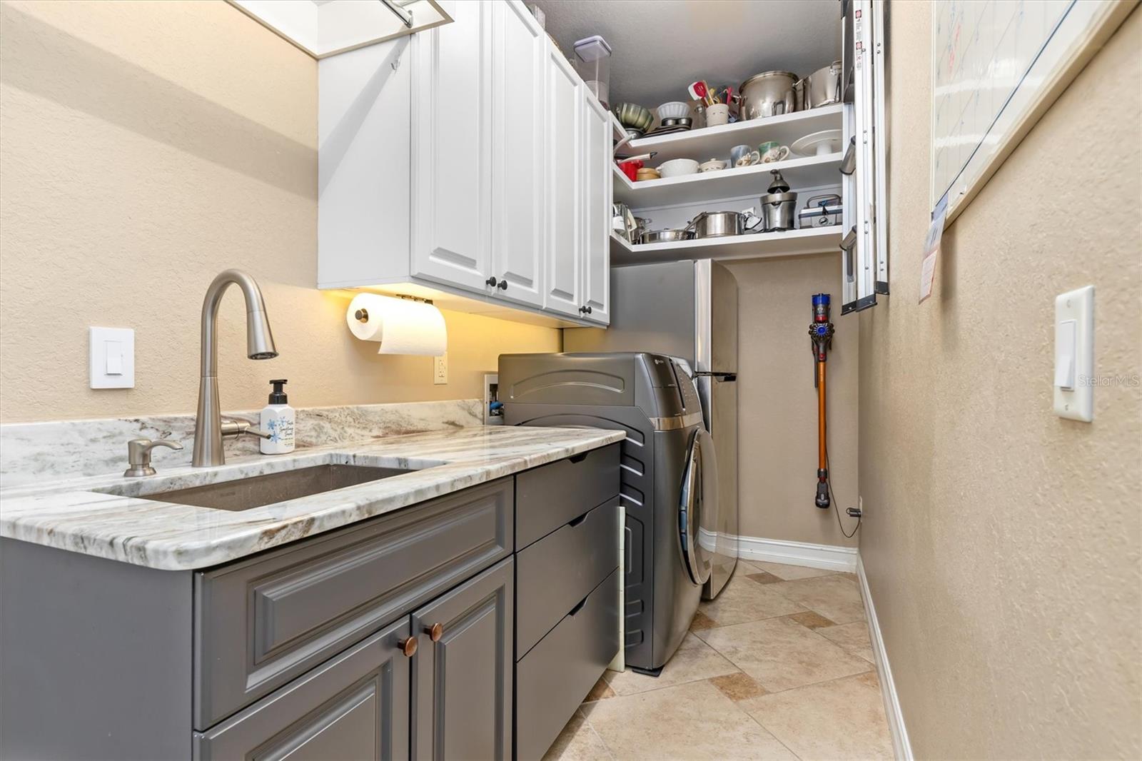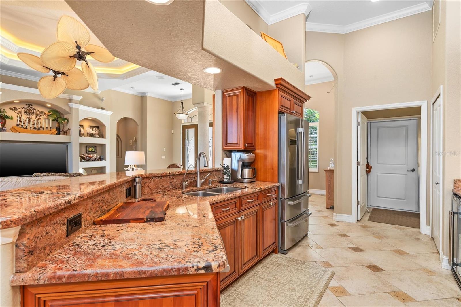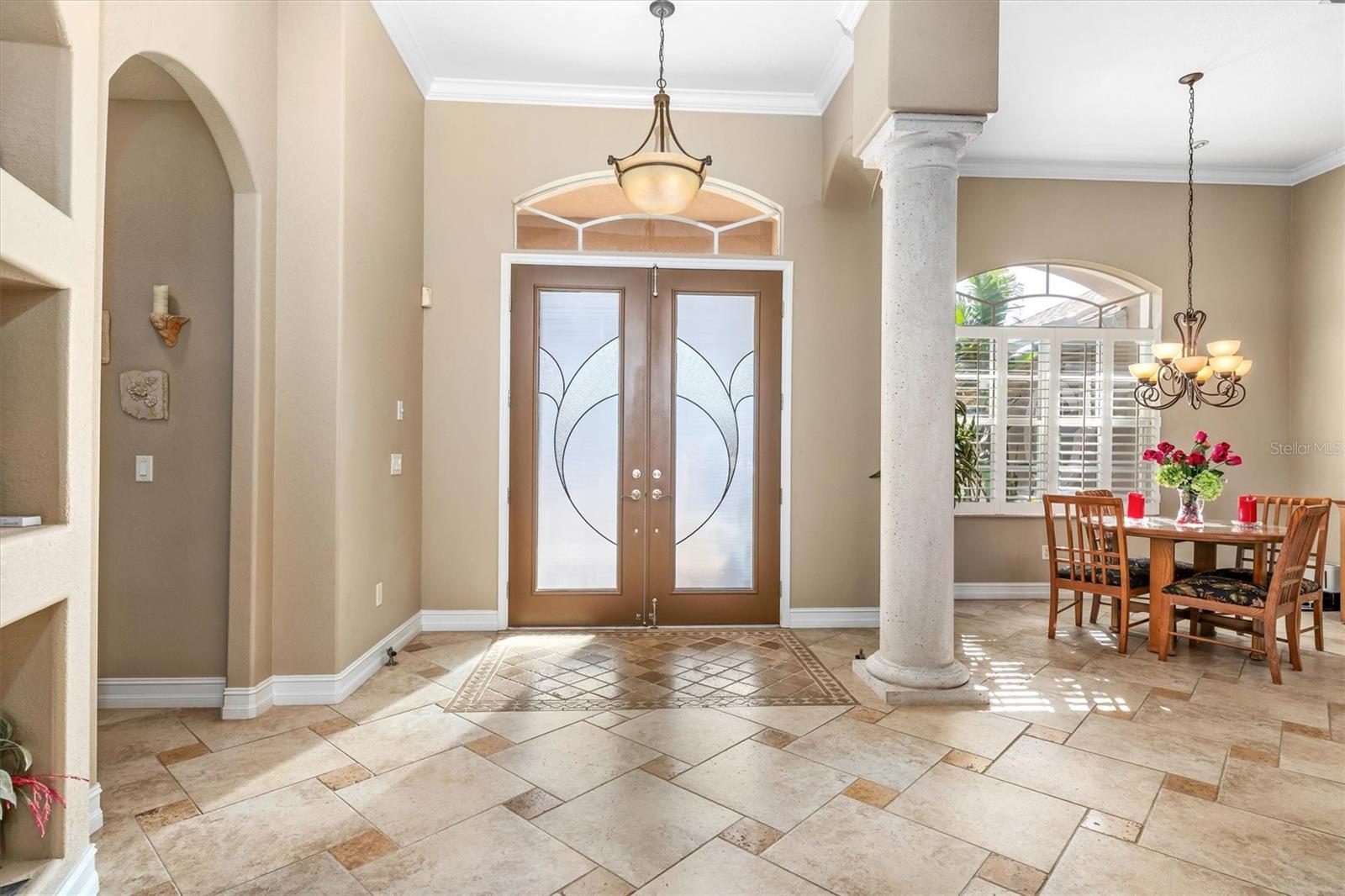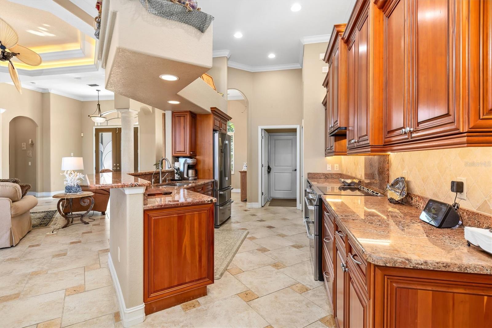 Check out the 3-D virtual walk through above! Stunning SAILBOAT ACCESS home with additional buildable lot to keep or sell! Original owners spared no expense to maintain this meticulous home with custom details throughout. As you enter this spacious, open floor plan home from the beautiful double doors (with retractable double screen), you view the Eastlake Waterway and a custom designed pool area with new Clearview screen. Specially designed Travertine flooring along with Hickory Wood flooring make this home a unique find. Custom remote controlled linen shades adorn the massive sliding glass doors and plantation shutters that are in other windows. High-end interior design includes several “art niches,” crown molding, tray ceilings, banana leaf inset in tray ceiling in Primary Bedroom, glass block shower, walk-in custom designed closets, and a Murphy bed for easy transition from a bedroom to an office/den! The split floor plan includes both a HUGE Primary Suite and two HUGE bedrooms to make this home perfect for entertaining guests. The kitchen has too many unique features to mention them all…wine cooler, Induction GE Café stove with pull out hood, solid Cherry Wood cabinets, pull out trash bins, top of the line refrigerator, and gorgeous granite countertop. The kitchen nook features a large Aquarium Window that is the focal point of the home. While sitting in the nook, you can view your beautiful custom pool with a unique garden of in-ground and potted plants. Go out the side lanai door and follow the paver walkway to your own lighted private boat dock. And, if you are interested, the 30 foot Twin Yanmar Diesel 630 horsepower boat is negotiable. Add in a totally new laundry room with stainless steel sink, granite countertop, new 30” stainless steel refrigerator, new washer/dryer “all-in-one” appliance and built-in cabinets, and you have the perfectly designed space! Both the lush landscaping surrounding the home and the lawn have been well maintained. The oversized garage has a lighted workspace and many types of shelving. The custom-built 12 x 16 shed is a great place for storage and has electricity. The location of the home is close to all shopping, doctors, and restaurants yet is situated in a secluded area with dead-end streets. The Eastlake Waterway will take your sailboat to Charlotte Harbor. And there is no HOA in this community. This property will “sell itself” with its unique mixture of traditional and Florida style. Make an appointment to see it today!