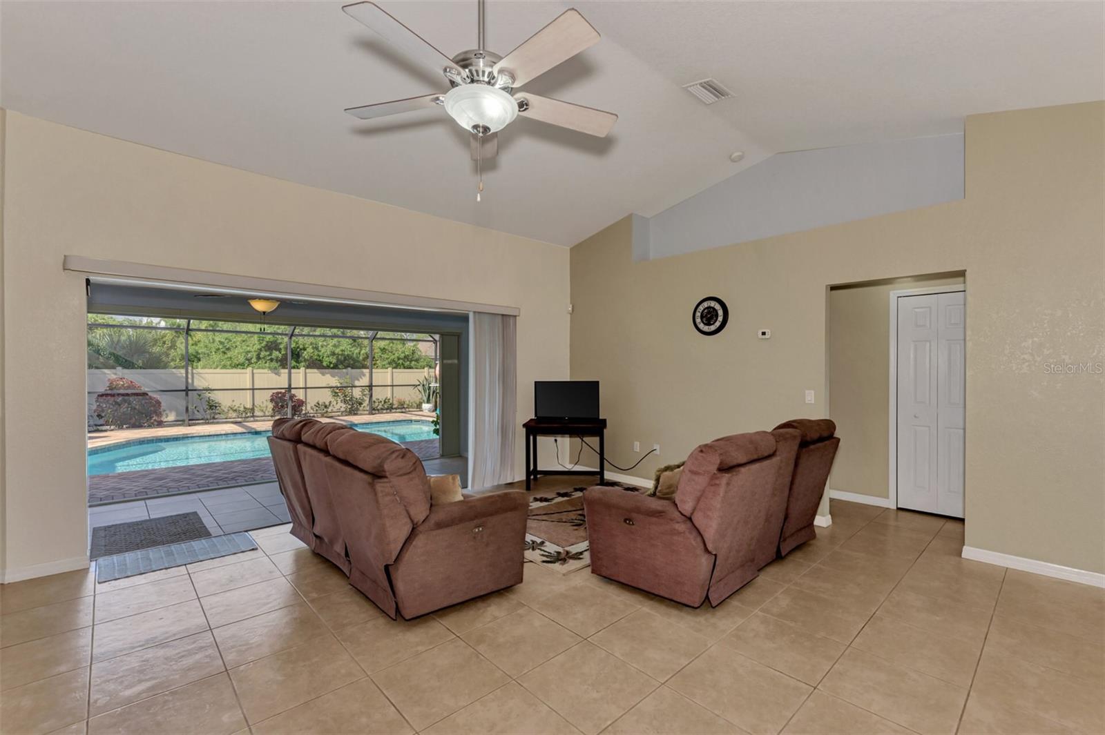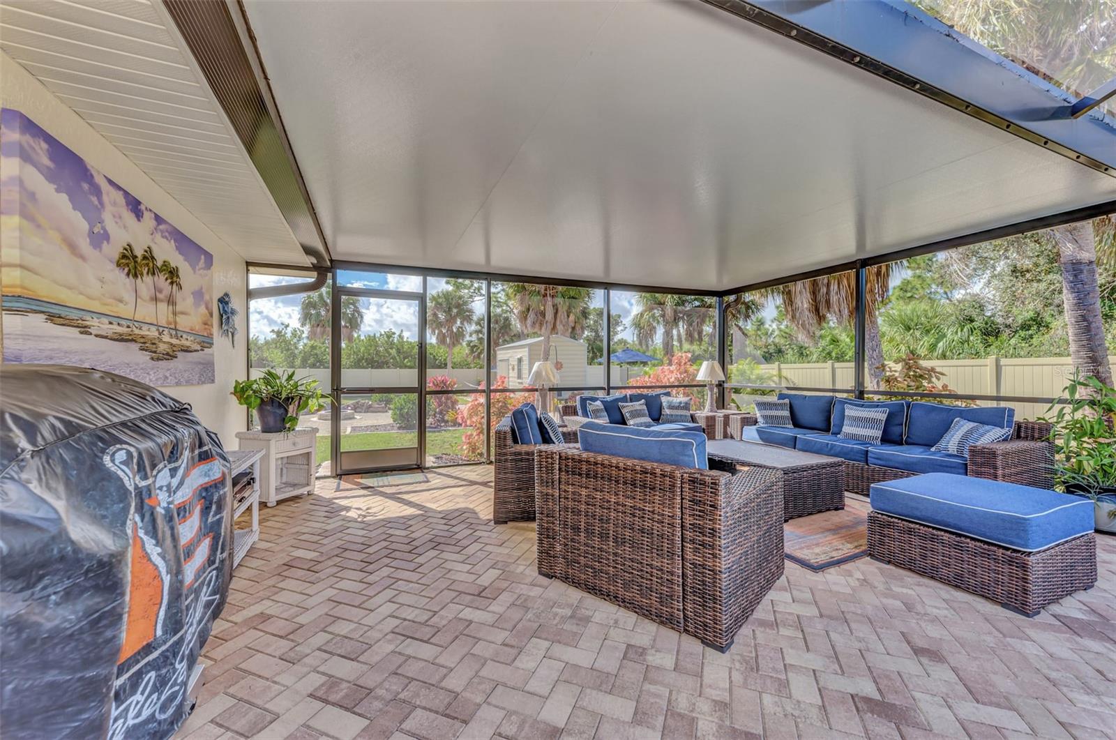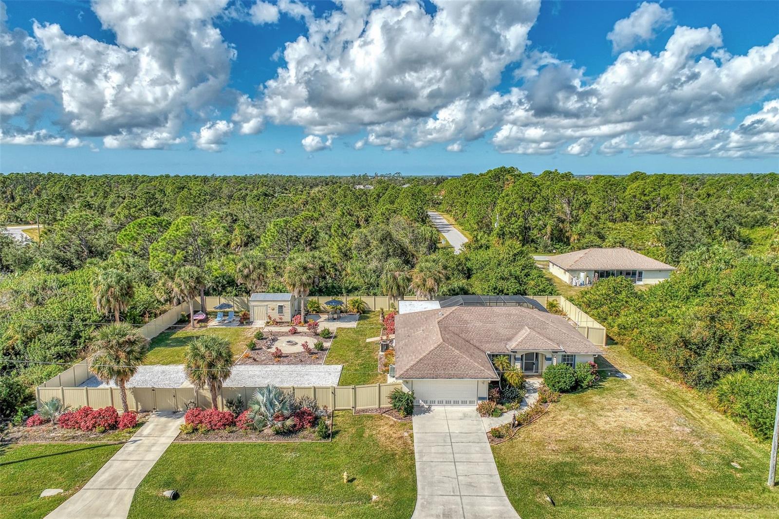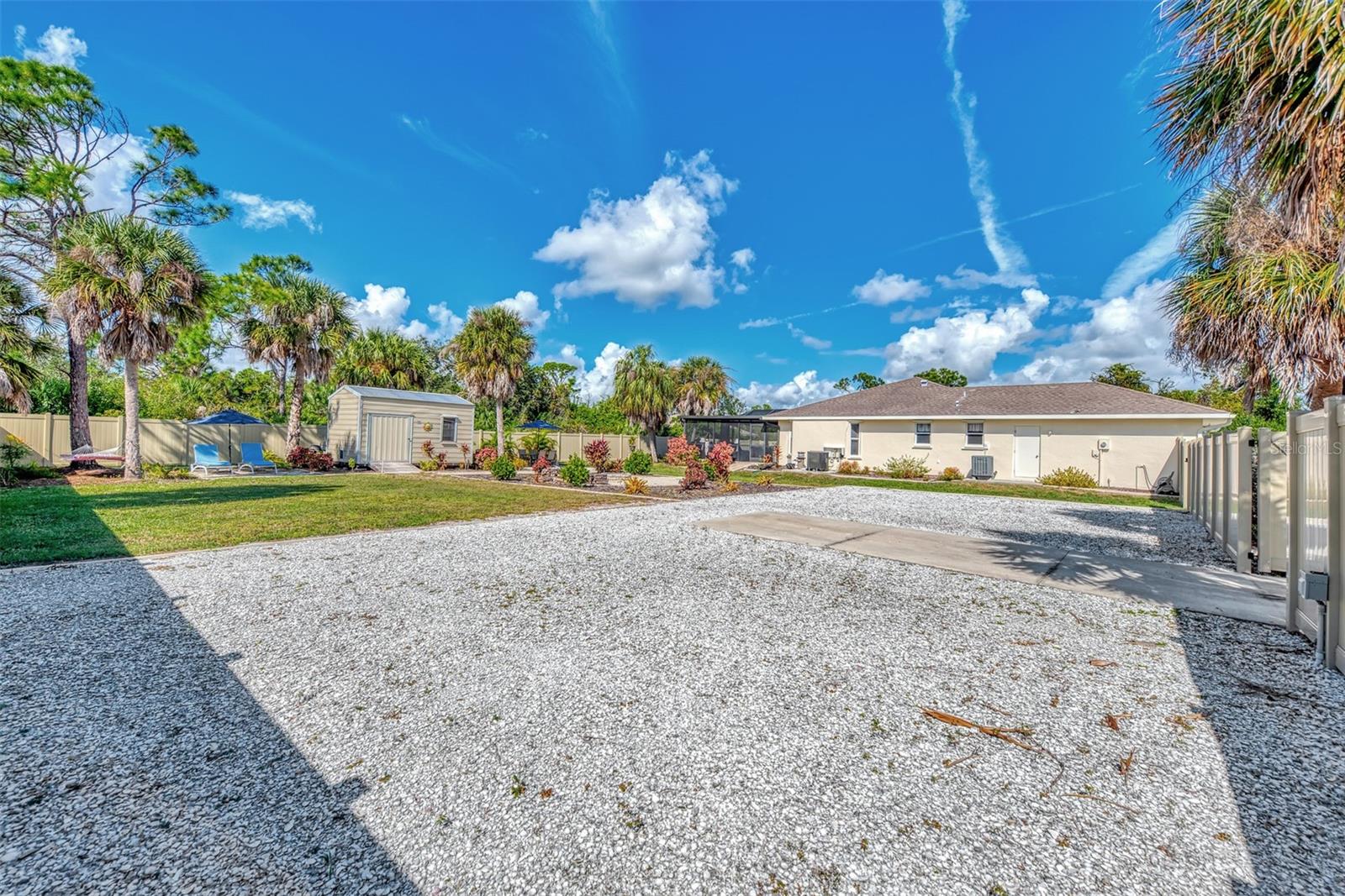 OUTSTANDING 3 bedroom, 2 bath, 2 car garage Heated POOL home with BRAND NEW ROOF JUST INSTALLED! Situated on 2 OVERSIZED LOTS (half acre!) beautifully landscaped, this home comes with loads of UPGRADES & EXTRAS including a separate 38X80 CONCRETE DRIVEWAY WITH RV HOOK UP (WATER & ELECTRIC) & gate. 3 gates in total. PUBLIC WATER UTILITY-NO HOA FEES! Compete new fencing around both lots (transferable to the new buyer) perfect for young children and all your pets! You'll fall in love with the 15x27 SALTWATER HEATED IN-GROUND POOL with WATERFALL and changing light program! The EXPANDED POOL DECK has an ADDITIONAL side covered roof area in addition to the covered lanai. Great entertaining patio! The full cage measures 30x44! The pool has a PAVER DECK patio in a herringbone pattern that has been recently sealed! Home is hurricane protected. ! More features include a detached hurricane rated , FIREPIT, STORAGE SHED, HAMMOCK, and a barbecue area. Inside, discover a remodeled kitchen with GRANITE COUNTERTOPS, WOOD CABINETS, and STAINLESS APPLIANCES ($10,000 value!). The master bedroom boasts engineered plank wood flooring recently added in 2021 and sliding doors that will lead you out to the pool deck! The master bathroom comes with a tiled walk-in shower with a glass door! The second bedroom also has access to the pool deck and the guest bath comes with a tub & shower combination and glass sliding doors! The back of the entire lanai and the front door area have ACCORDION SHUTTERS with HURRICANE SHUTTERS for the rest of the home! The exterior of the home has been freshly painted and comes with a 5-year warranty transferable to the new buyer! All furniture, decorations, and potted plants in the lanai are INCLUDED along with a John Deere riding mower, home generator, and more. This home is located in a quiet peaceful neighborhood with the Town Center mall, Twisted Fork restaurant, Harley dealership, shopping, schools and more all close by. Just minutes away from our beautiful Gulf beaches and public boat ramps! This is your chance to own your piece of Paradise. True pride in ownership. Home warranty for the new buyer! Call today for your private tour!