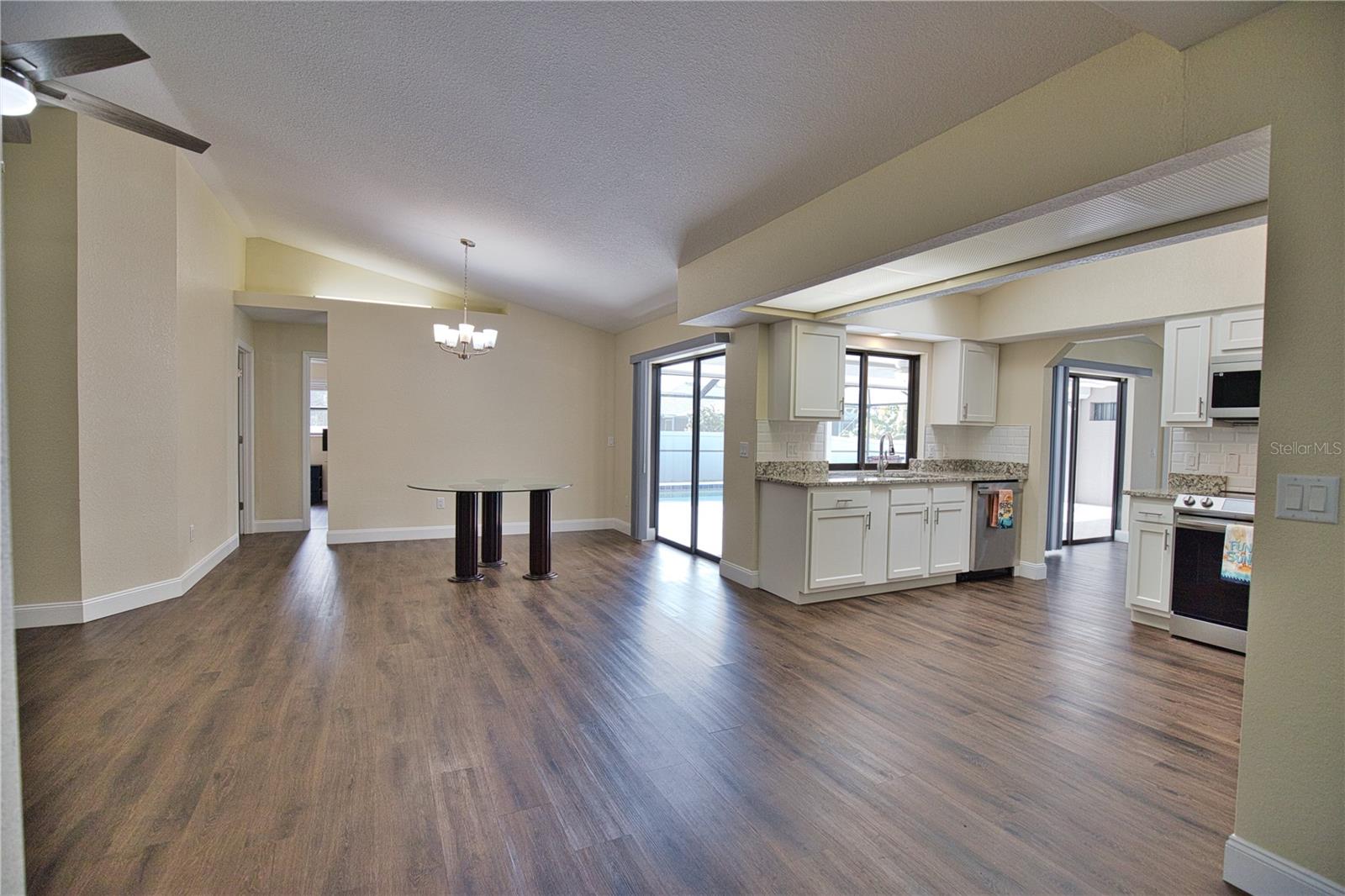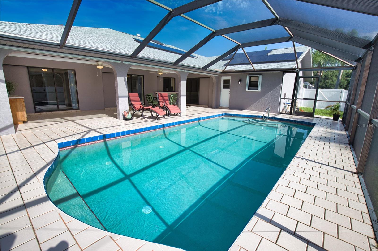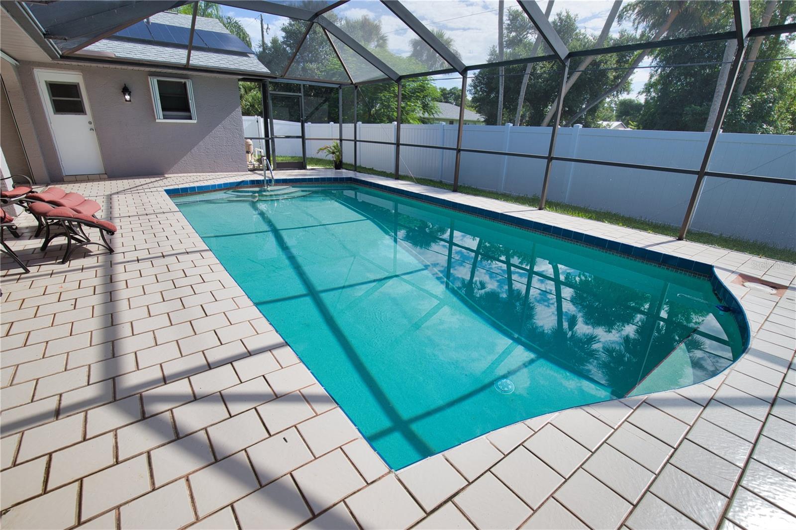 Short Sale. ***$450,000*** ****Welcome Home to Your Dream Oasis!***** !!!!!!Flood Zone "X" – No HOA!!!!!!!! This stunning 3-bedroom, 2-bathroom pool home boasts an impressive 2,393 sq. ft. of living space, perfect for your family. The split floor plan offers privacy and comfort, while the large 13x33 lanai is ideal for entertaining or enjoying quiet evenings by the pool. Step inside to find a bright, open layout with vaulted ceilings and luxury vinyl flooring throughout. The beautifully updated kitchen features granite countertops, complemented by granite in the bathrooms as well. Recent enhancements include fresh interior paint, 6-inch baseboards, and plantation shutters installed in 2024. Modern conveniences abound with electric hurricane shutters for both the lanai and front window, installed in 2024, as well as solar panels for energy efficiency. The home has been extensively updated with a new electric panel and rewiring completed in 2024, and the plumbing was replaced in 2009. The roof was recently upgraded in 2022, HVAC replaced 2022 and brand-new appliances were added in 2023. Additional features include an indoor laundry/utility room and a spacious, fenced yard. This home is move-in ready and waiting for its new owner! Don’t miss your chance to own this beautiful property. Schedule a viewing today!