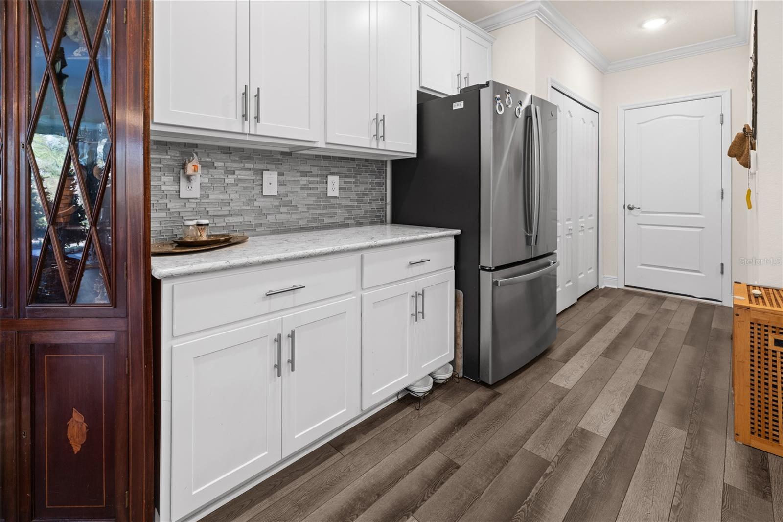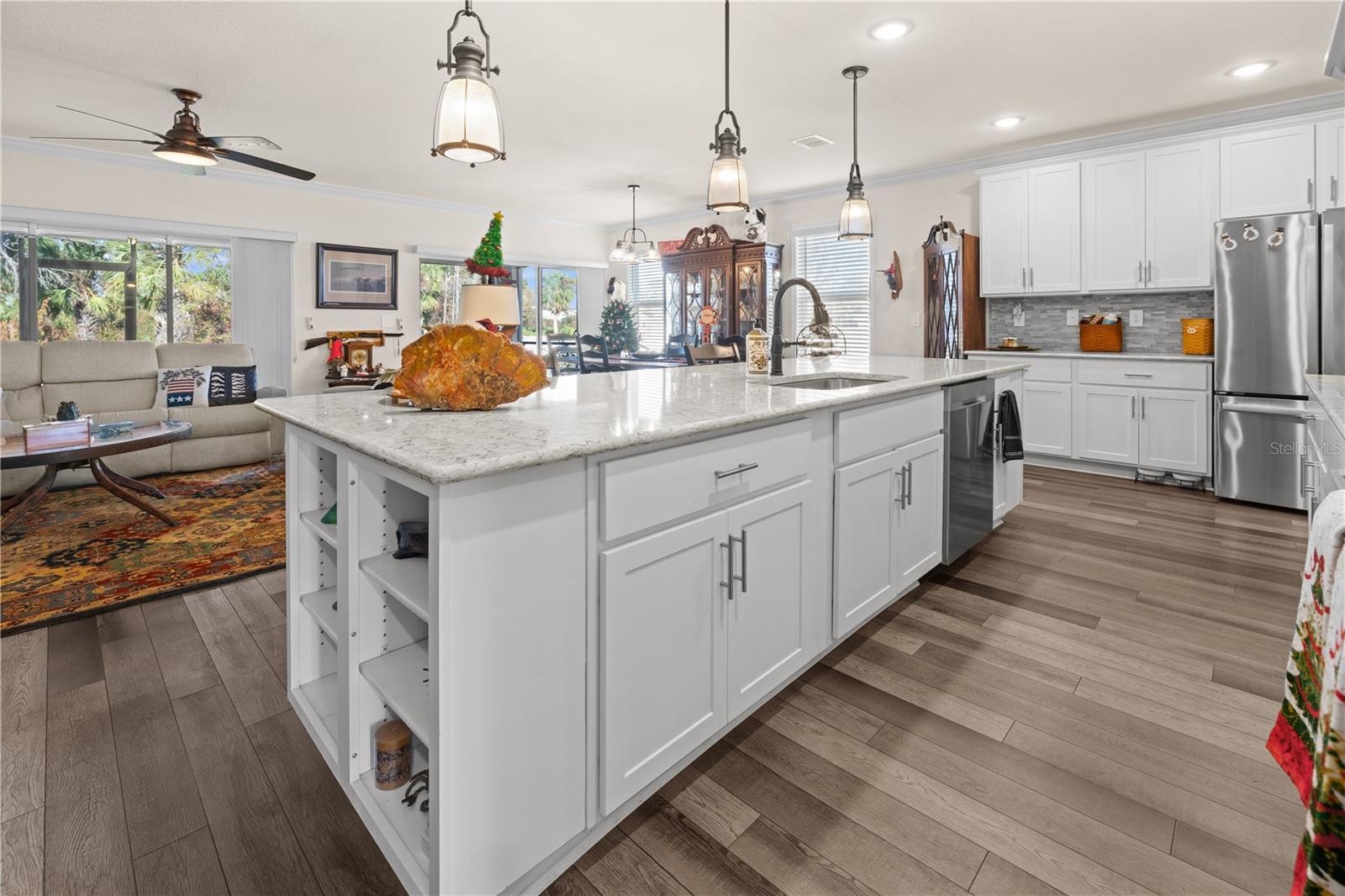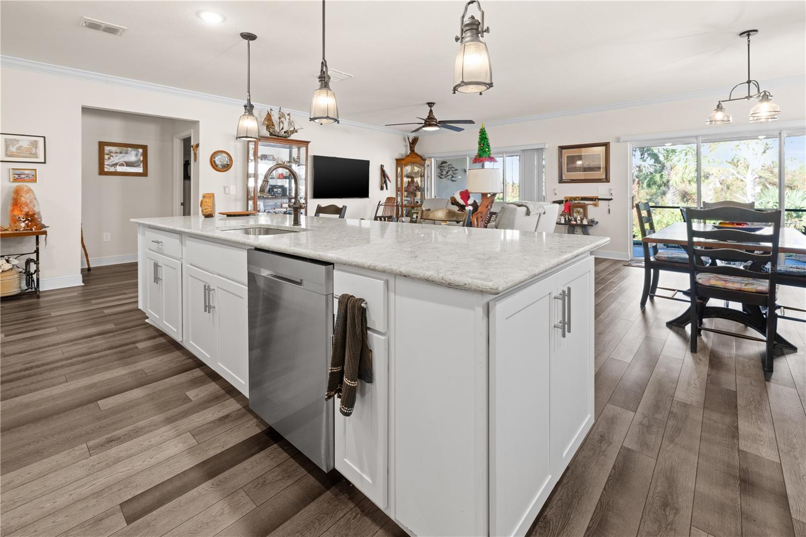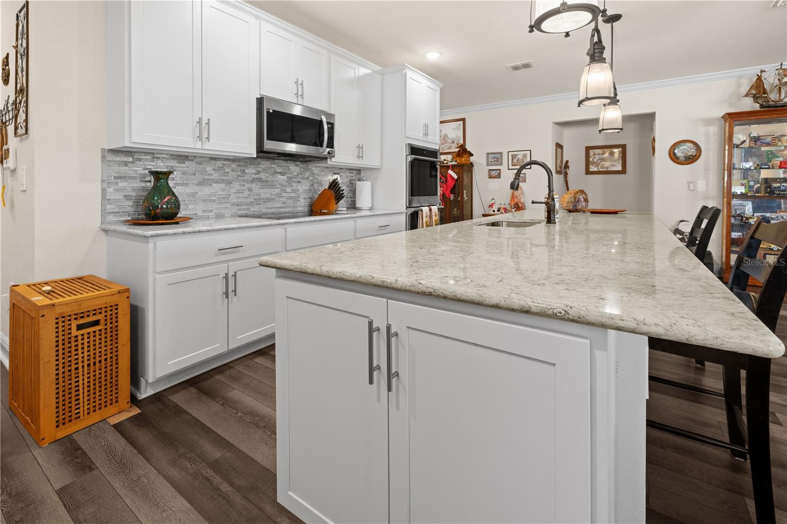 Why Wait For New Construction, when you can move right in to this beautiful 2023 built home with upgrades galore!! This tastefully designed home just may have everything on your Wishlist. Be Wowed as soon as you drive up by the architectural features of this 3-car garage home with stacked stone accents and “Craftsman” style rooflines all surrounded by a meticulously maintained landscape. Upon entering the home, you are welcomed by an extended foyer into the grand open plan living/kitchen/dining area. The entire space is accented with crown molding, wood trimmed energy efficient windows featuring wood sills and custom blinds, upgraded ceiling fans and light fixtures. Sliding doors allow views of the large lanai and the serene, wooded back yard with abundant wildlife. The exquisite kitchen features craftsman style solid wood cabinetry w/soft close doors & drawers, 42” upper cabinets, crown molding, Quartz counter tops, Glass tile backsplash, all stainless-steel appliances including a double oven, glass cooktop French door refrigerator, microwave, dishwasher and an amazing 46”X 11.5’ island that is perfect for casual dining as well as entertaining. The primary bedroom offers a very generous 7’X9’ walk in closet, crown molding, a tray ceiling and a large en-suite bathroom. The 10’X13’ Primary bath features craftsman style cabinet with quartz top, double sink and a huge shower with multiple shower heads including a “Rain” head. Two additional bedrooms, guest bath and a 6’X9’ laundry (Washer & Dryer included) complete the interior of this lovely home. Relax after a long day on the large, screened lanai which has 20/20screen to keep out biting insects. Additional features include Luxury Vinyl floors throughout the entire home, upgraded wall Tile in both showers, 8’8” ceilings throughout, Ceiling fans in all bedrooms, Screened front entry(20/20screen), Oversized garage, Storm rated garage doors, Garage ceiling insulated, Rain Gutters around entire home, Storm Shutters, oversized driveway and a large corner lot on county water and sewer. This home is conveniently located to all of Charlotte County amenities including, dining, boat launches, beaches and shopping. Put this one at the TOP of your list to see!
