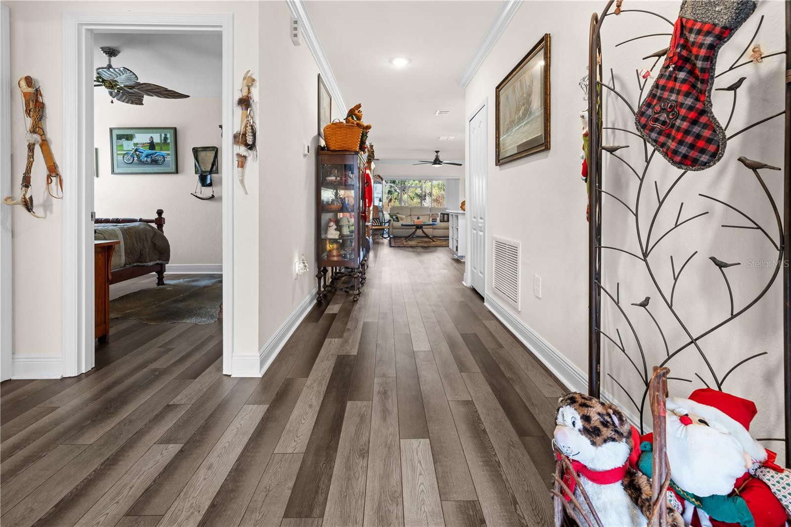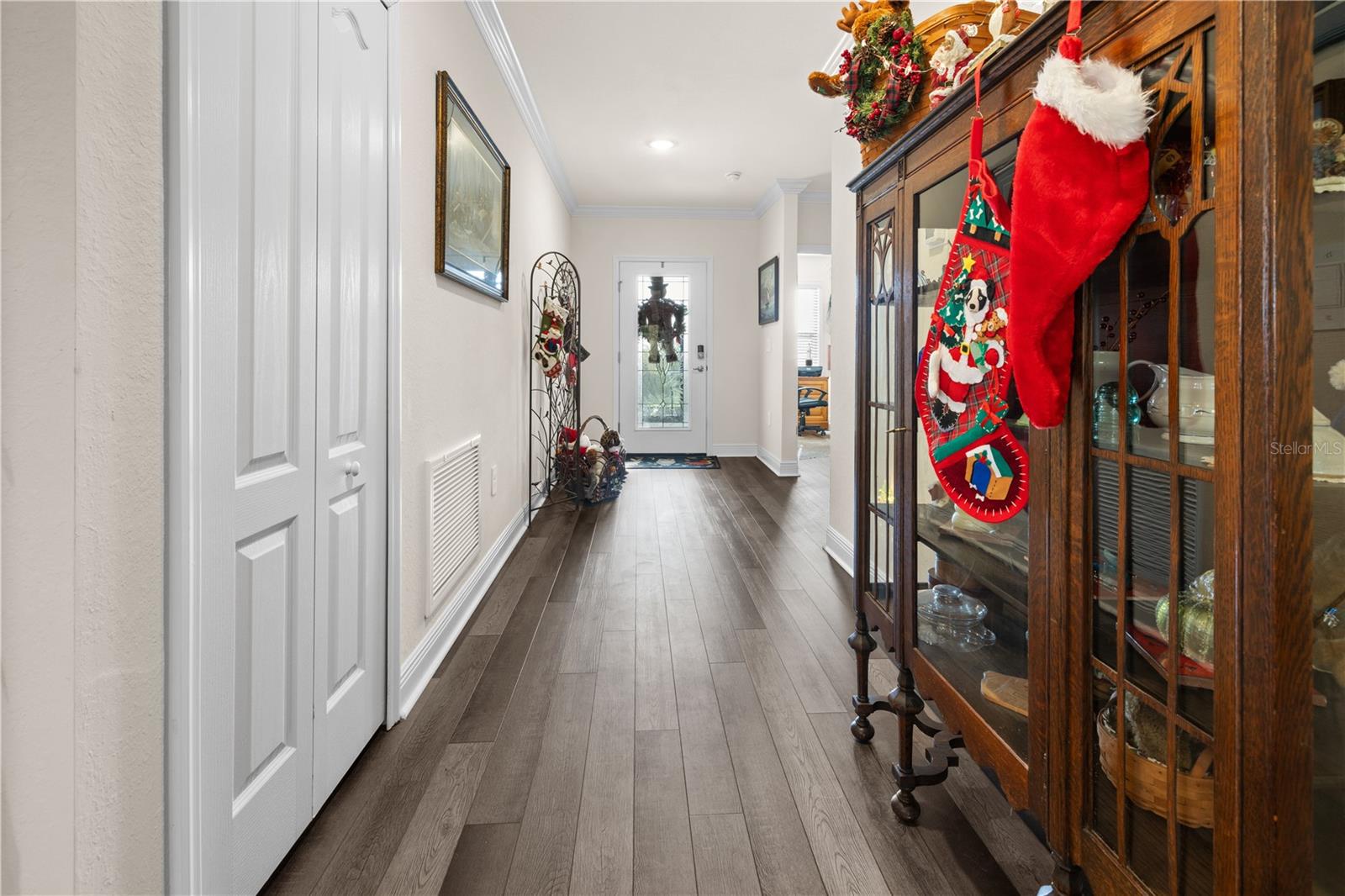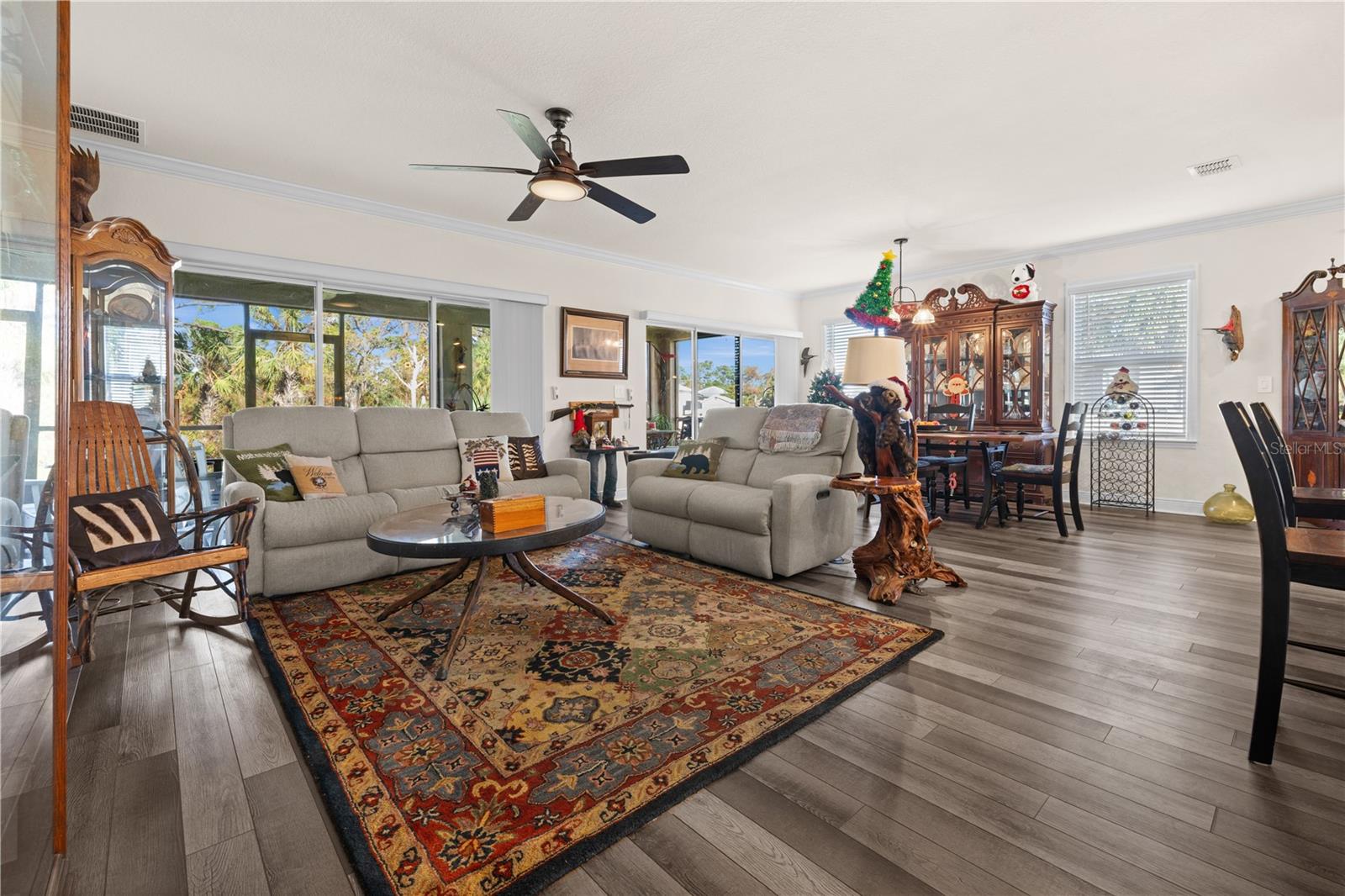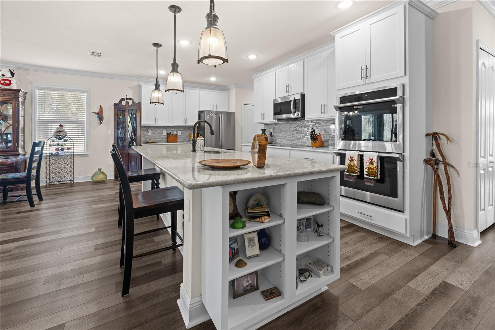 Why Wait For New Construction, when you can move right in to this beautiful 2023 built home with upgrades galore!! This tastefully designed home just may have everything on your Wishlist. Be Wowed as soon as you drive up by the architectural features of this 3-car garage home with stacked stone accents and “Craftsman” style rooflines all surrounded by a meticulously maintained landscape. Upon entering the home, you are welcomed by an extended foyer into the grand open plan living/kitchen/dining area. The entire space is accented with crown molding, wood trimmed energy efficient windows featuring wood sills and custom blinds, upgraded ceiling fans and light fixtures. Sliding doors allow views of the large lanai and the serene, wooded back yard with abundant wildlife. The exquisite kitchen features craftsman style solid wood cabinetry w/soft close doors & drawers, 42” upper cabinets, crown molding, Quartz counter tops, Glass tile backsplash, all stainless-steel appliances including a double oven, glass cooktop French door refrigerator, microwave, dishwasher and an amazing 46”X 11.5’ island that is perfect for casual dining as well as entertaining. The primary bedroom offers a very generous 7’X9’ walk in closet, crown molding, a tray ceiling and a large en-suite bathroom. The 10’X13’ Primary bath features craftsman style cabinet with quartz top, double sink and a huge shower with multiple shower heads including a “Rain” head. Two additional bedrooms, guest bath and a 6’X9’ laundry (Washer & Dryer included) complete the interior of this lovely home. Relax after a long day on the large, screened lanai which has 20/20screen to keep out biting insects. Additional features include Luxury Vinyl floors throughout the entire home, upgraded wall Tile in both showers, 8’8” ceilings throughout, Ceiling fans in all bedrooms, Screened front entry(20/20screen), Oversized garage, Storm rated garage doors, Garage ceiling insulated, Rain Gutters around entire home, Storm Shutters, oversized driveway and a large corner lot on county water and sewer. This home is conveniently located to all of Charlotte County amenities including, dining, boat launches, beaches and shopping. Put this one at the TOP of your list to see!