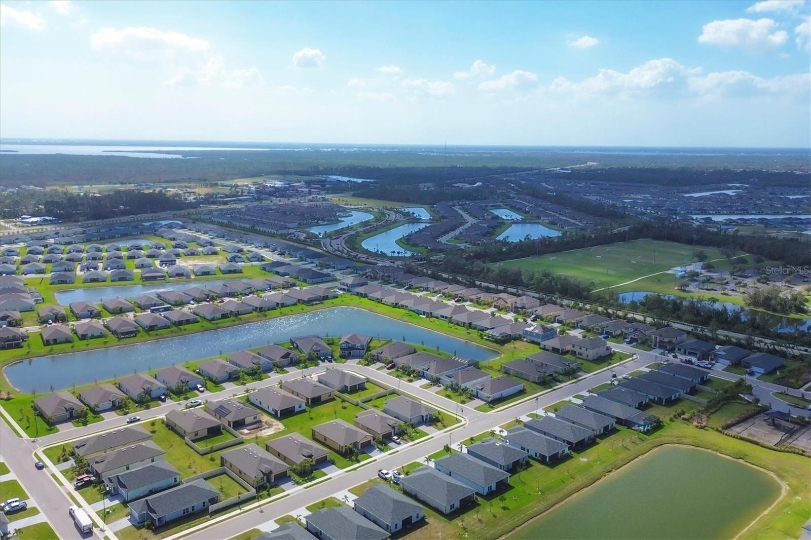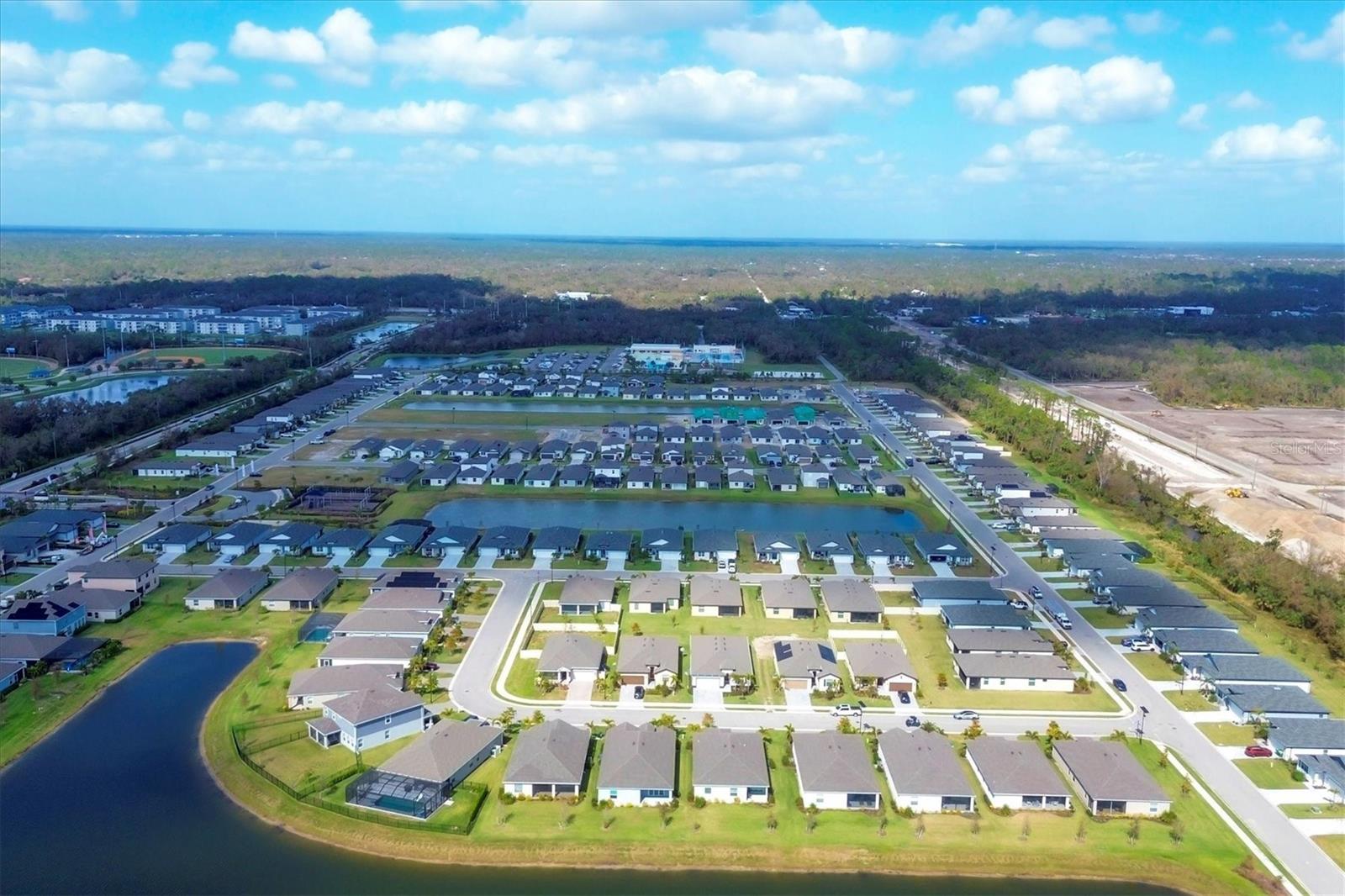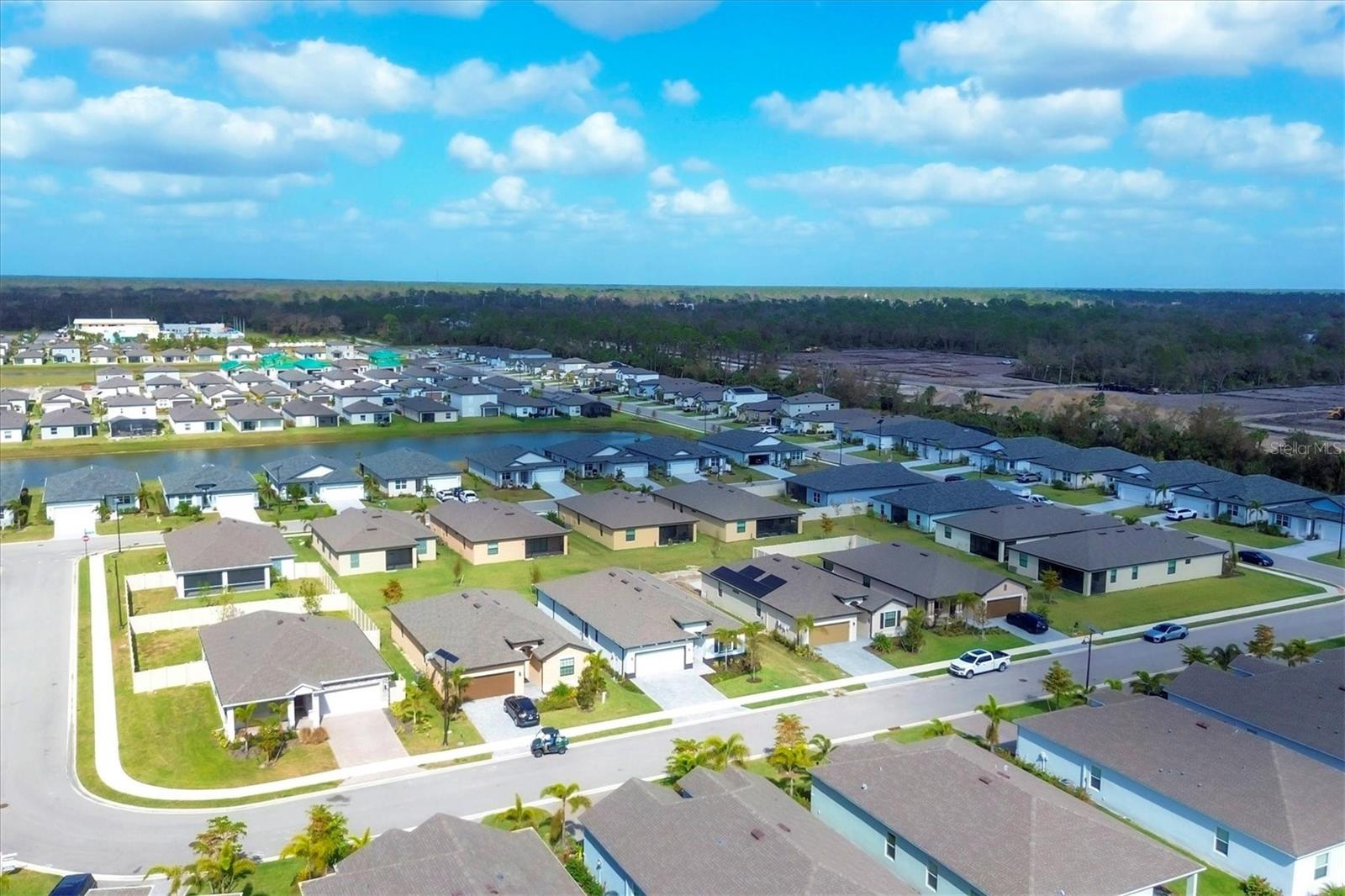 This barely lived in home is waiting just for you! If you crave space this is the one for you with an awesome, well thought out layaout. Perfect for larger family or those who like to do a bit of entertaining. You'll be pleased with tile throughout the home, wonderfully open great room, dining and kitchen area, providing you with the casual option of eating at the large breakfast bar on the island or a bit more formal in the dining area. Large open hallway off of entry provides you with 2 of the 3 bedrooms which are located adjacent to their own baths. Mid way down the entry hall is a double door den/office space for whatever you'd like to do use this bonus space for. At the rear of the home you'll find the primary suite with large en suite boasting walk in shower and more. In the open area of kitchen, there is a large island and against far wall a "butler style" work area with cabinets and granite also, a true chefs delight. Seller had drive extended 2' each side versus the standard, added gutters, glass doors to showers and their own paint choice on exterior rather than builder's standard. All fans throughout the home have remote controls. For enjoyment anytime of the day step through your sliders to the covered and screened lanai, great spot for morning coffee, evening drink or just enjoy a bit of nature. This community offers sidewalks and walking or biking distance if you so choose to Centennial park and Centennial aquatic center (add'l. fee) as well as Tampa Bay Rays Spring Training facility, Charlotte County fairgrounds that host a myriad of events as well as dining and shopping choices. The reasonable HOA fee is quarterly and includes lawn maintenance. Sellers loss can be your gain. Call to view this lovely home today!