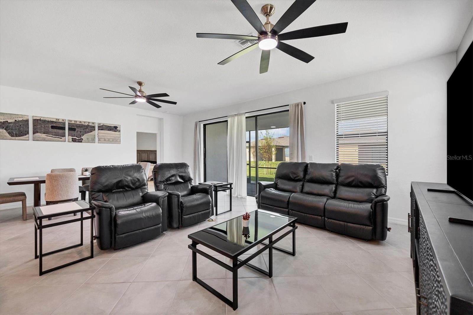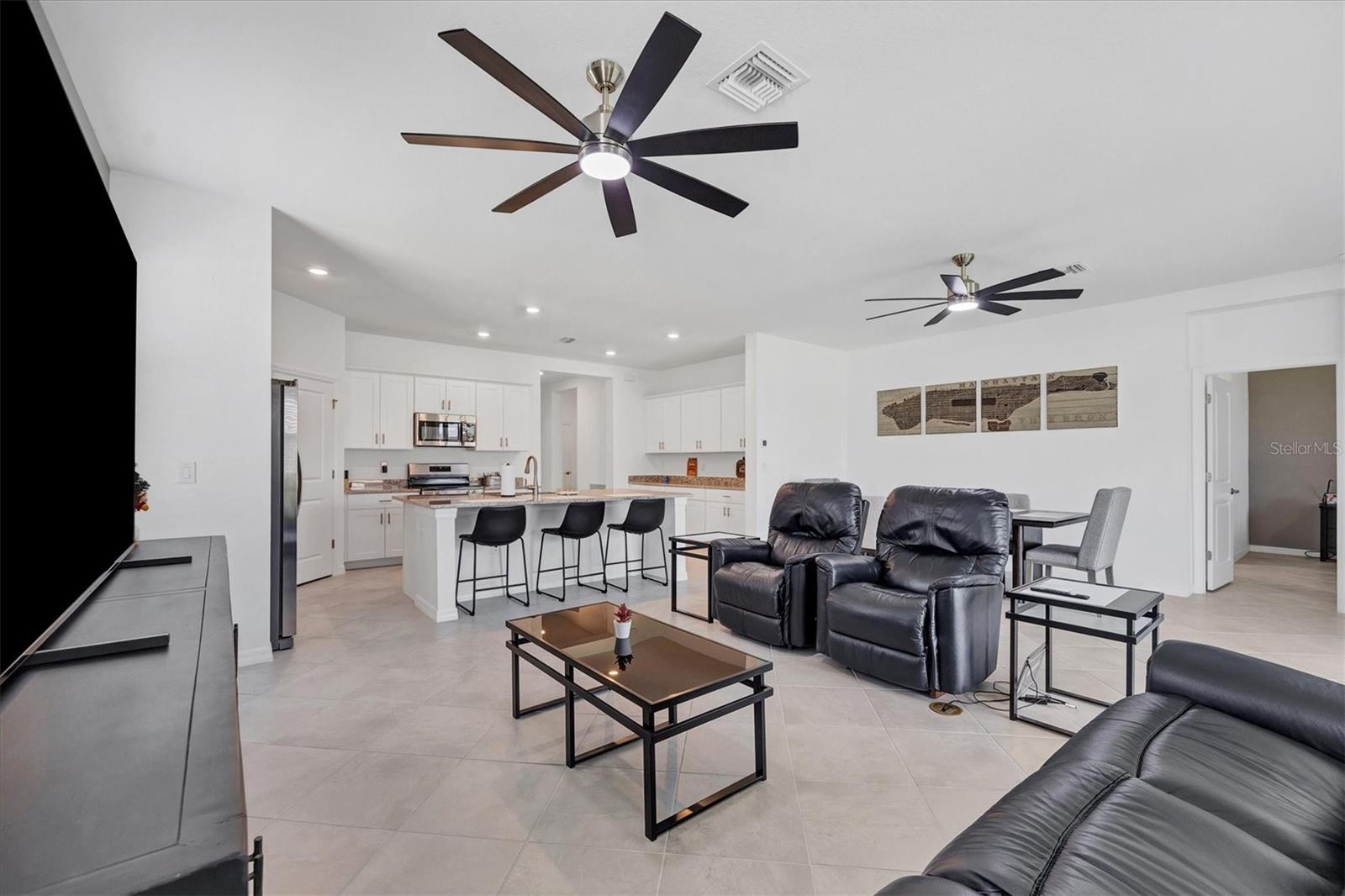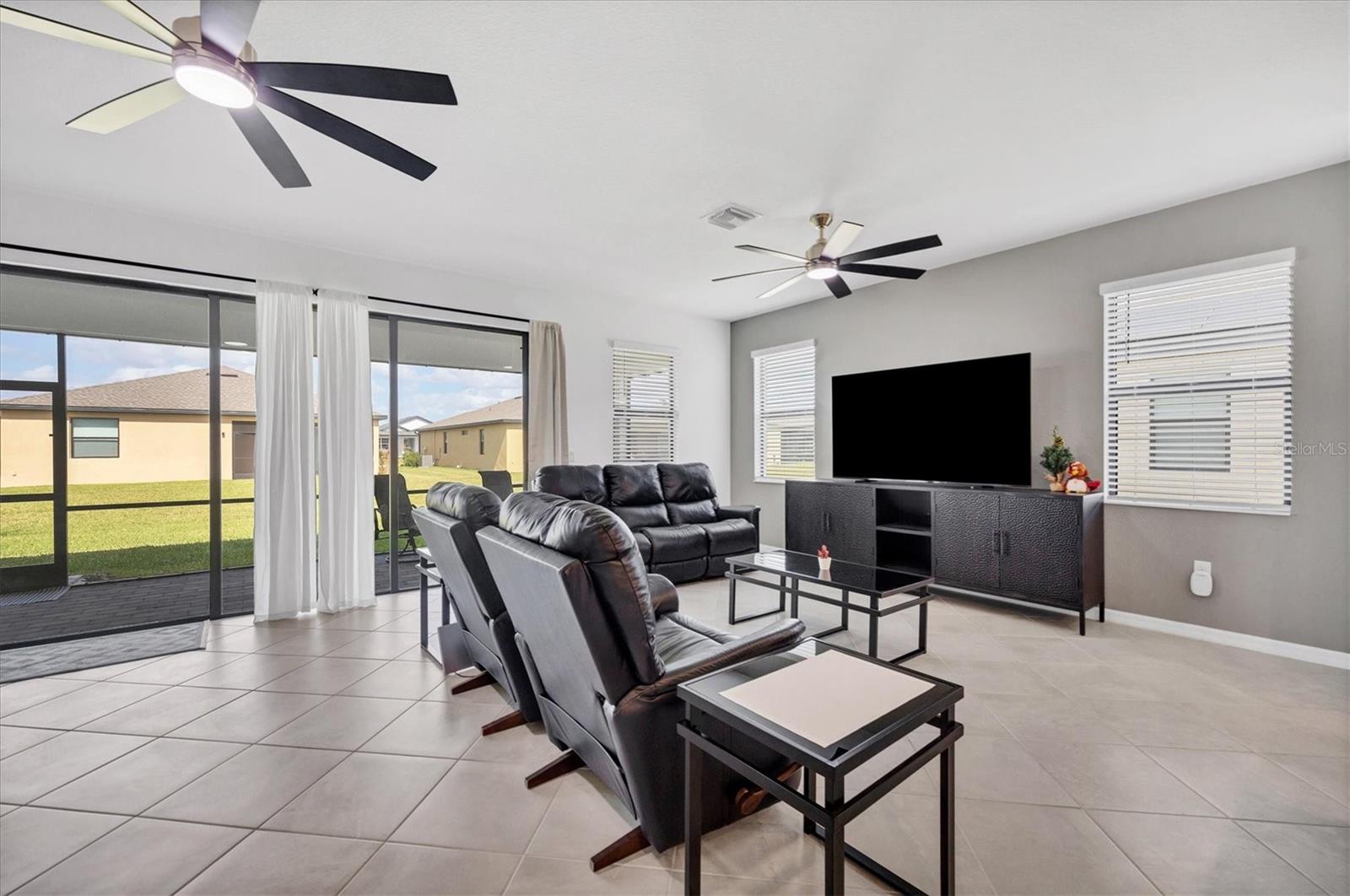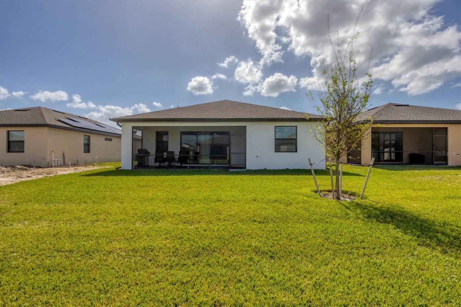 This barely lived in home is waiting just for you! If you crave space this is the one for you with an awesome, well thought out layaout. Perfect for larger family or those who like to do a bit of entertaining. You'll be pleased with tile throughout the home, wonderfully open great room, dining and kitchen area, providing you with the casual option of eating at the large breakfast bar on the island or a bit more formal in the dining area. Large open hallway off of entry provides you with 2 of the 3 bedrooms which are located adjacent to their own baths. Mid way down the entry hall is a double door den/office space for whatever you'd like to do use this bonus space for. At the rear of the home you'll find the primary suite with large en suite boasting walk in shower and more. In the open area of kitchen, there is a large island and against far wall a "butler style" work area with cabinets and granite also, a true chefs delight. Seller had drive extended 2' each side versus the standard, added gutters, glass doors to showers and their own paint choice on exterior rather than builder's standard. All fans throughout the home have remote controls. For enjoyment anytime of the day step through your sliders to the covered and screened lanai, great spot for morning coffee, evening drink or just enjoy a bit of nature. This community offers sidewalks and walking or biking distance if you so choose to Centennial park and Centennial aquatic center (add'l. fee) as well as Tampa Bay Rays Spring Training facility, Charlotte County fairgrounds that host a myriad of events as well as dining and shopping choices. The reasonable HOA fee is quarterly and includes lawn maintenance. Sellers loss can be your gain. Call to view this lovely home today!