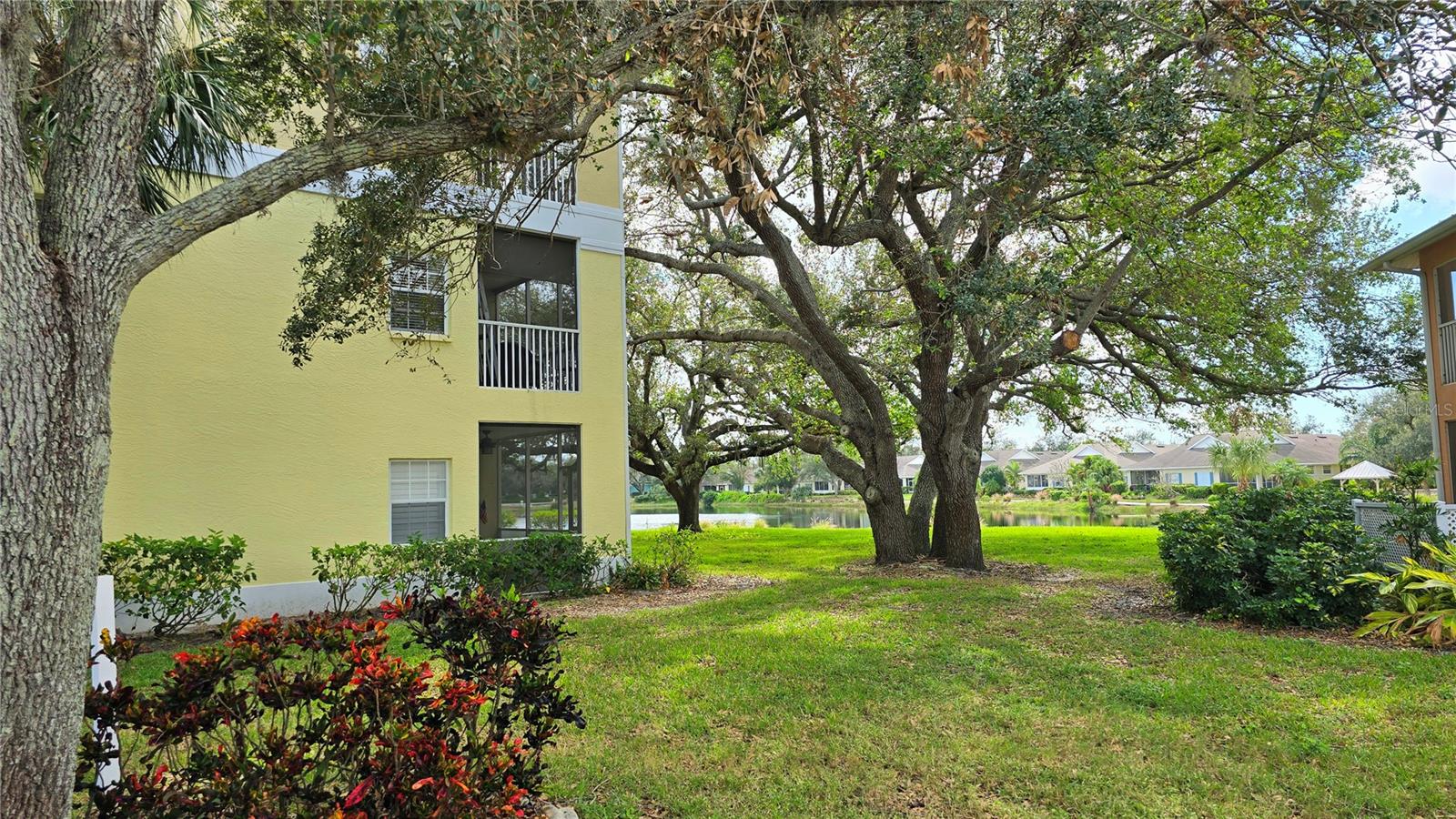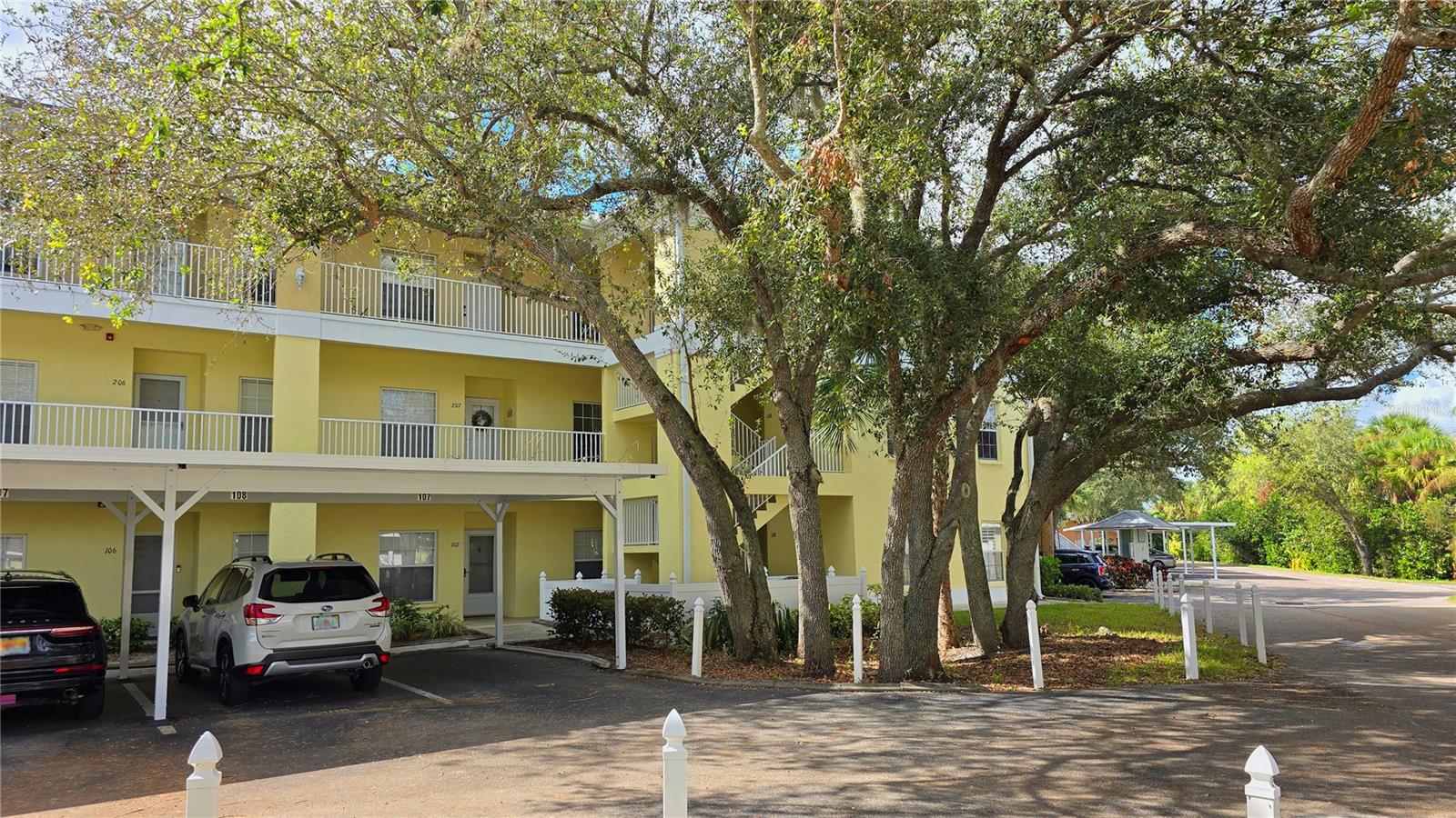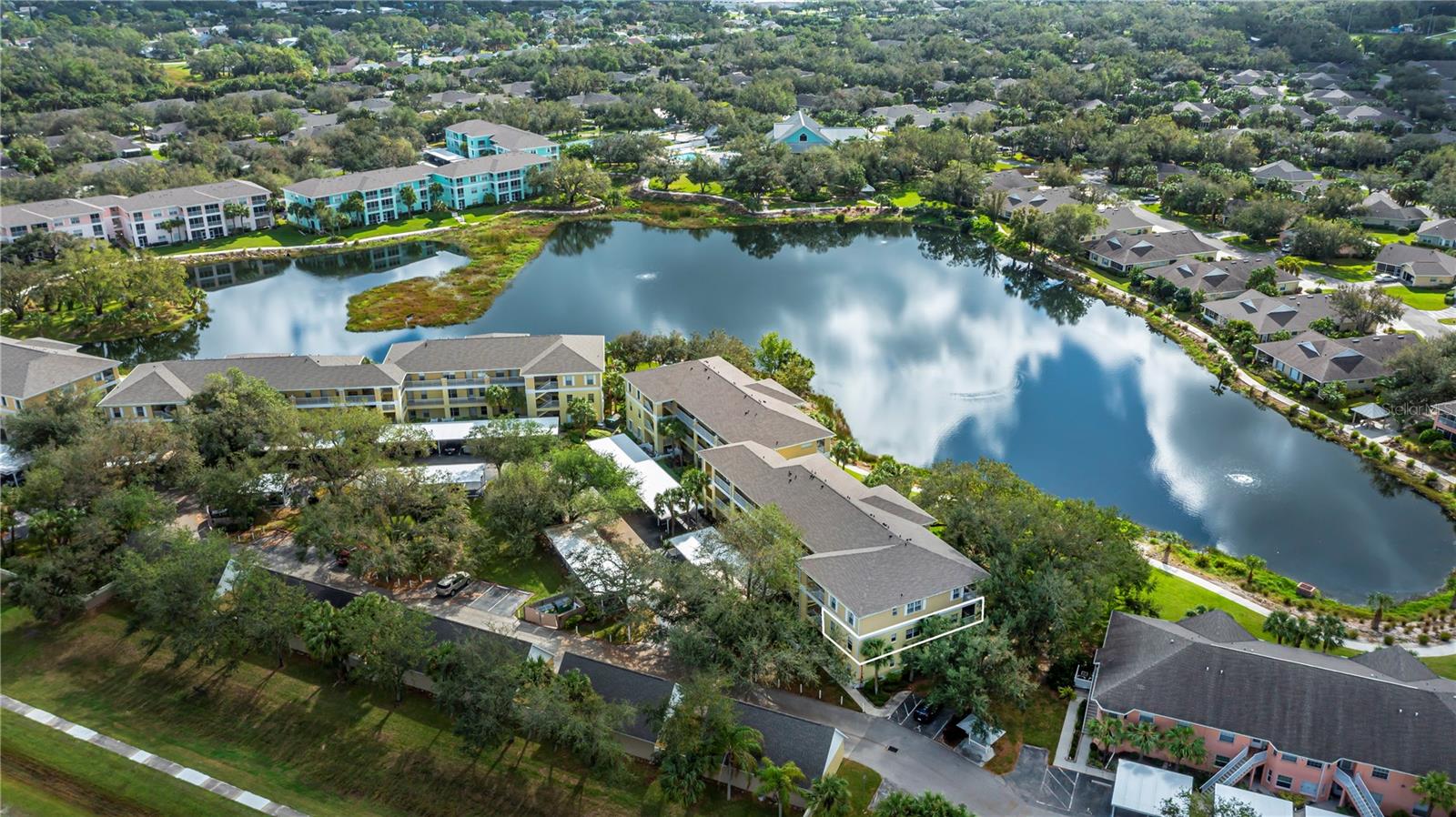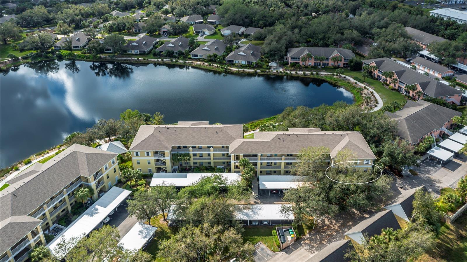 REDUCED!! Fantastic private view of the lake from this rarely available 3Br, 2Ba 2nd floor condo. located in the popular gated community of Heritage Oak Park! Condo. has been used by current owner for the season and has been meticulously maintained. Truly move in condition & comes Turnkey Furnished w/only a few exceptions. There is an elevator in the building and comes with a carport (new in 2024) & shingle roof was replaced in 2023. Condo. has an open floorplan w/good sized great room & dining area opening to the kitchen. Since it is an end unit there are addl. windows on the side which also add addl. light to an already light & bright unit. Kitchen offers tile floors, raised panel cabinets, granite countertops/w undercounter sink, stainless Samsung refrigerator, range & microwave & Bosch dishwasher. There are sliding doors from the great room out to the screened lanai which offers a great place to enjoy your morning coffee or a glass of wine in the evening. Master bedroom is off of the great room & has a large custom walk-in closet & pocket door to the ensuite master bath w/dual sinks, raised panel cabinets, tile floor & walk in shower. Interior laundry closet w/full size stacked newer Samsung washer & GE dryer. Split floor plan w/second bedroom adjacent to the second bath & 3rd bedroom is to the front & often used as a den/office. (Doors were removed but could easily put in.) Interior of the condo was recently painted & has 2 accent walls w/crown molding in the great room & master bedroom. Newer luxury plank floors in great room/dining & master bedroom & new 6" baseboards in the main areas. Other features are ceiling fans thru-out, custom lighting, & window treatments thru-out, & more! Heritage Oak Park is an active gated community with an activities director on staff planning many activities for your enjoyment. Built around all the old oak trees it feels like you are in the country yet just around the corner from shopping & restaurants. Amenities include a large clubhouse, heated pool, tennis courts, pickleball courts, bocce ball, shuffleboard, horseshoes, fitness room, billiards rom, lending library & walking path around the lake!!