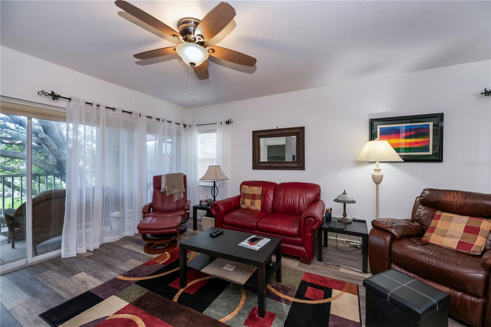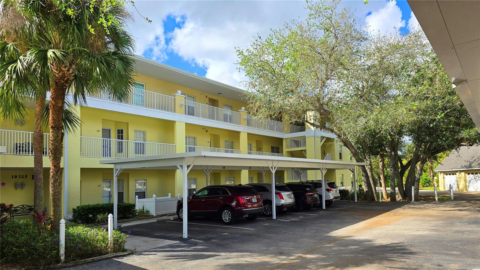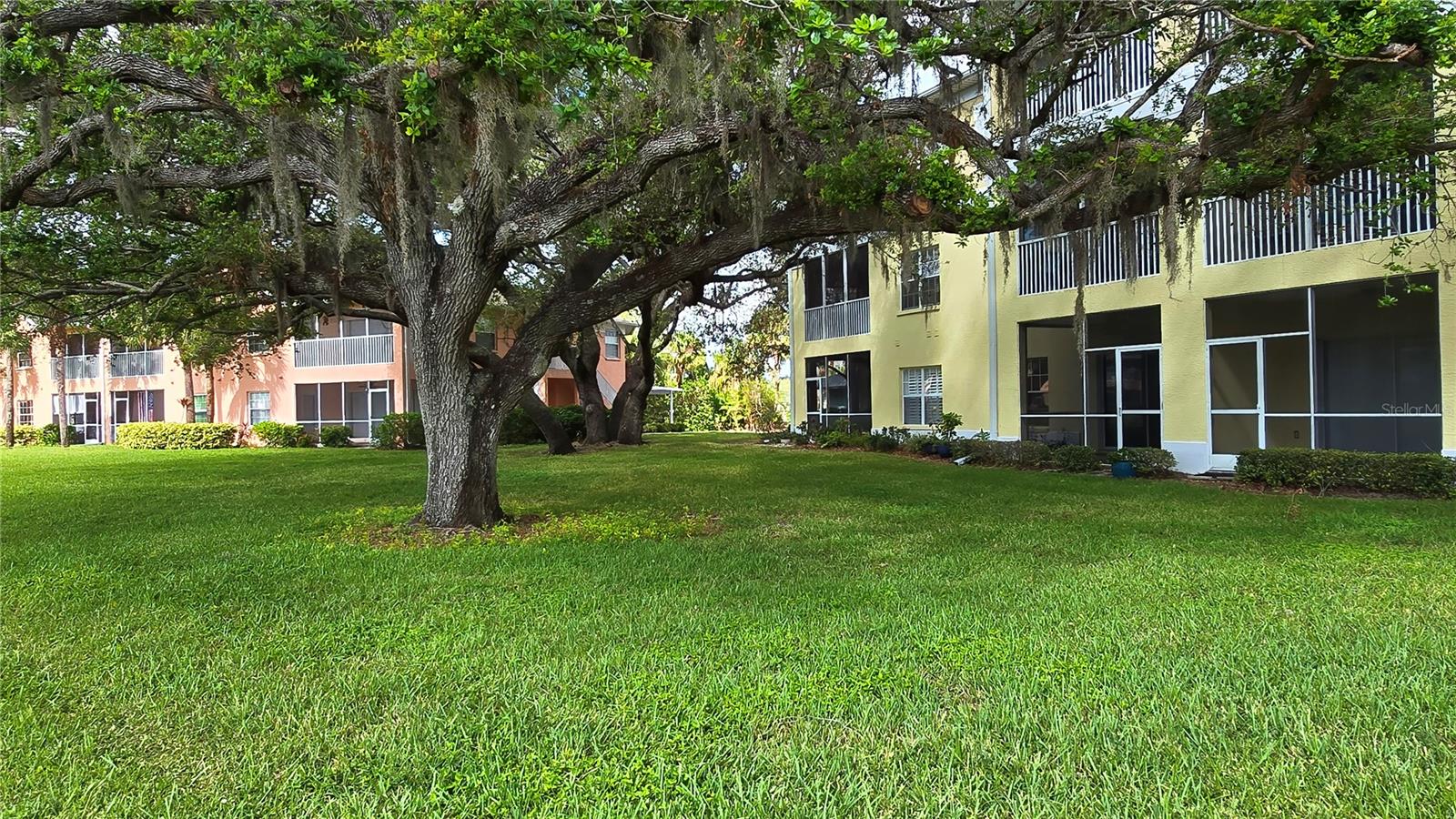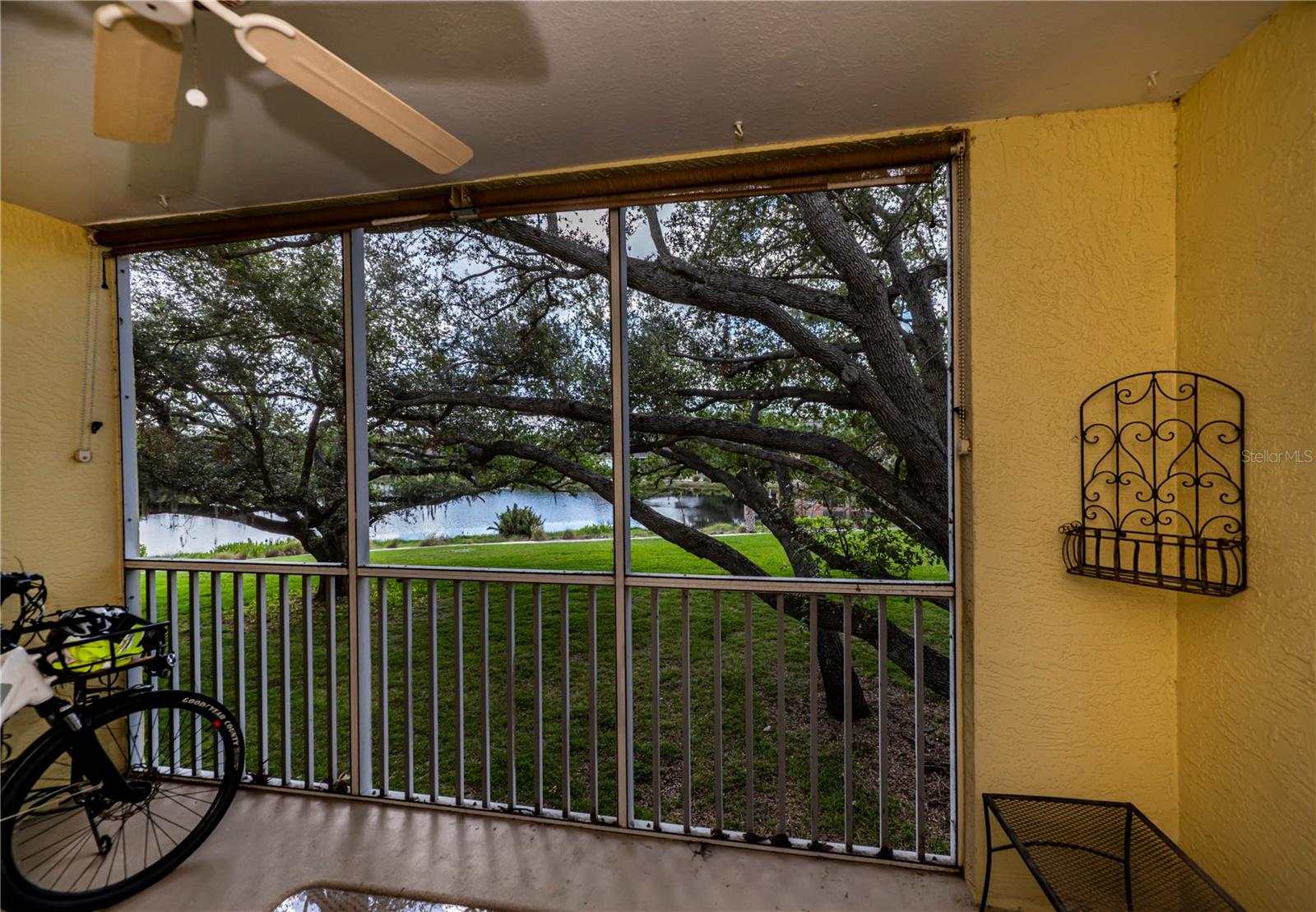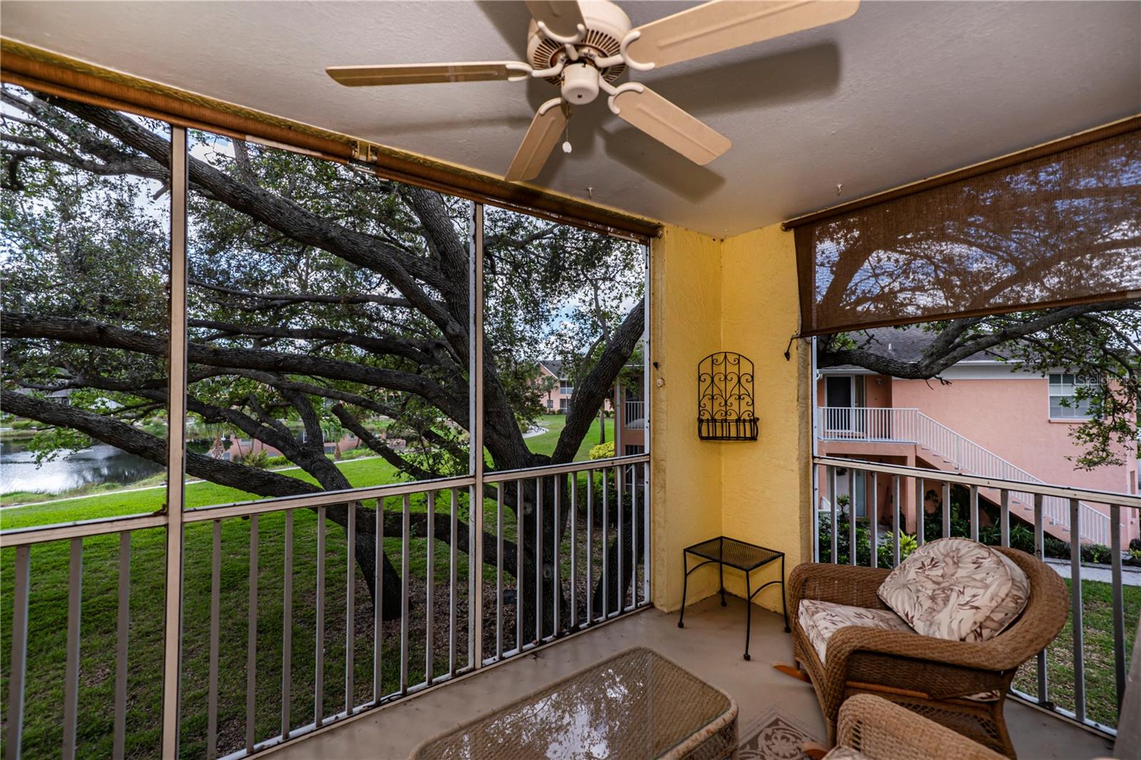 REDUCED!! Fantastic private view of the lake from this rarely available 3Br, 2Ba 2nd floor condo. located in the popular gated community of Heritage Oak Park! Condo. has been used by current owner for the season and has been meticulously maintained. Truly move in condition & comes Turnkey Furnished w/only a few exceptions. There is an elevator in the building and comes with a carport (new in 2024) & shingle roof was replaced in 2023. Condo. has an open floorplan w/good sized great room & dining area opening to the kitchen. Since it is an end unit there are addl. windows on the side which also add addl. light to an already light & bright unit. Kitchen offers tile floors, raised panel cabinets, granite countertops/w undercounter sink, stainless Samsung refrigerator, range & microwave & Bosch dishwasher. There are sliding doors from the great room out to the screened lanai which offers a great place to enjoy your morning coffee or a glass of wine in the evening. Master bedroom is off of the great room & has a large custom walk-in closet & pocket door to the ensuite master bath w/dual sinks, raised panel cabinets, tile floor & walk in shower. Interior laundry closet w/full size stacked newer Samsung washer & GE dryer. Split floor plan w/second bedroom adjacent to the second bath & 3rd bedroom is to the front & often used as a den/office. (Doors were removed but could easily put in.) Interior of the condo was recently painted & has 2 accent walls w/crown molding in the great room & master bedroom. Newer luxury plank floors in great room/dining & master bedroom & new 6" baseboards in the main areas. Other features are ceiling fans thru-out, custom lighting, & window treatments thru-out, & more! Heritage Oak Park is an active gated community with an activities director on staff planning many activities for your enjoyment. Built around all the old oak trees it feels like you are in the country yet just around the corner from shopping & restaurants. Amenities include a large clubhouse, heated pool, tennis courts, pickleball courts, bocce ball, shuffleboard, horseshoes, fitness room, billiards rom, lending library & walking path around the lake!!