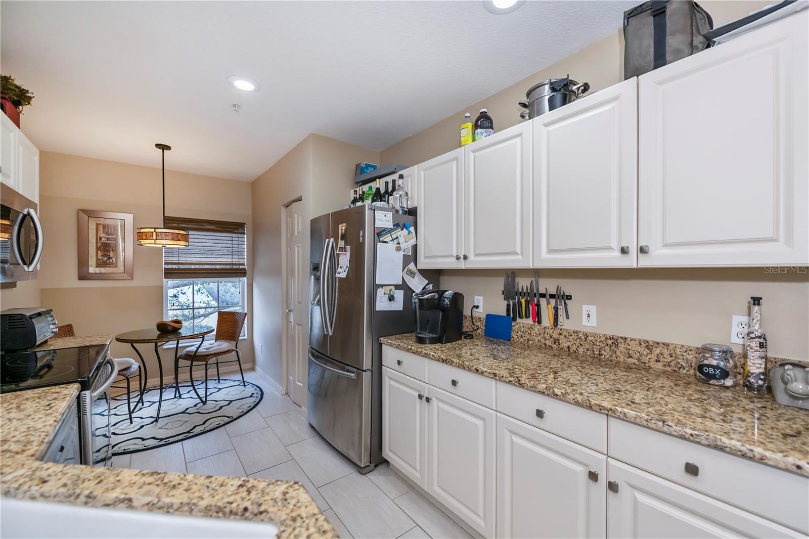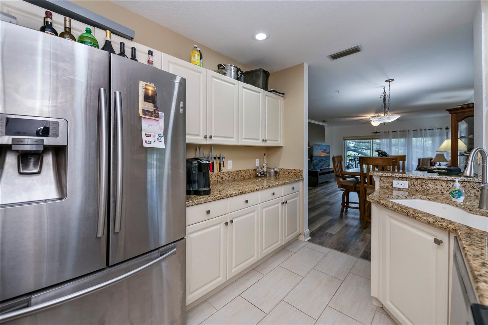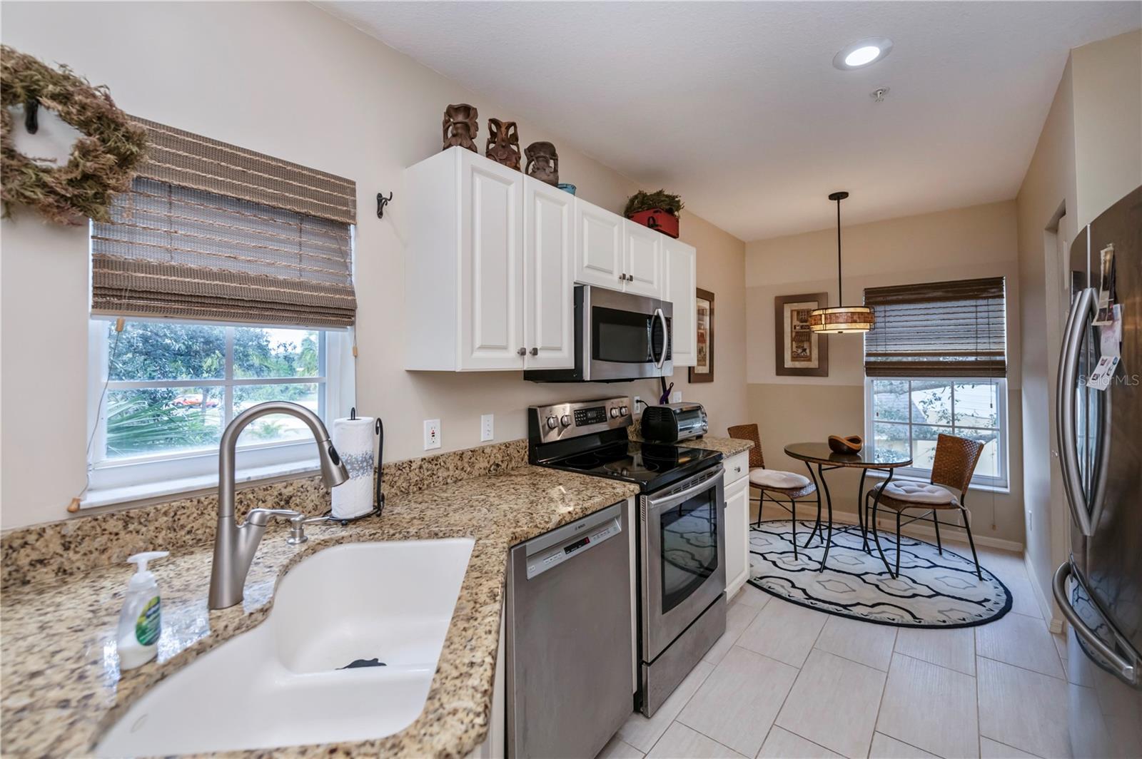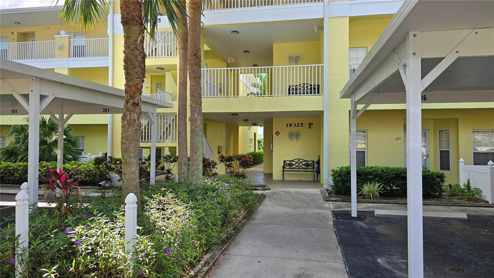 REDUCED!! Fantastic private view of the lake from this rarely available 3Br, 2Ba 2nd floor condo. located in the popular gated community of Heritage Oak Park! Condo. has been used by current owner for the season and has been meticulously maintained. Truly move in condition & comes Turnkey Furnished w/only a few exceptions. There is an elevator in the building and comes with a carport (new in 2024) & shingle roof was replaced in 2023. Condo. has an open floorplan w/good sized great room & dining area opening to the kitchen. Since it is an end unit there are addl. windows on the side which also add addl. light to an already light & bright unit. Kitchen offers tile floors, raised panel cabinets, granite countertops/w undercounter sink, stainless Samsung refrigerator, range & microwave & Bosch dishwasher. There are sliding doors from the great room out to the screened lanai which offers a great place to enjoy your morning coffee or a glass of wine in the evening. Master bedroom is off of the great room & has a large custom walk-in closet & pocket door to the ensuite master bath w/dual sinks, raised panel cabinets, tile floor & walk in shower. Interior laundry closet w/full size stacked newer Samsung washer & GE dryer. Split floor plan w/second bedroom adjacent to the second bath & 3rd bedroom is to the front & often used as a den/office. (Doors were removed but could easily put in.) Interior of the condo was recently painted & has 2 accent walls w/crown molding in the great room & master bedroom. Newer luxury plank floors in great room/dining & master bedroom & new 6" baseboards in the main areas. Other features are ceiling fans thru-out, custom lighting, & window treatments thru-out, & more! Heritage Oak Park is an active gated community with an activities director on staff planning many activities for your enjoyment. Built around all the old oak trees it feels like you are in the country yet just around the corner from shopping & restaurants. Amenities include a large clubhouse, heated pool, tennis courts, pickleball courts, bocce ball, shuffleboard, horseshoes, fitness room, billiards rom, lending library & walking path around the lake!!