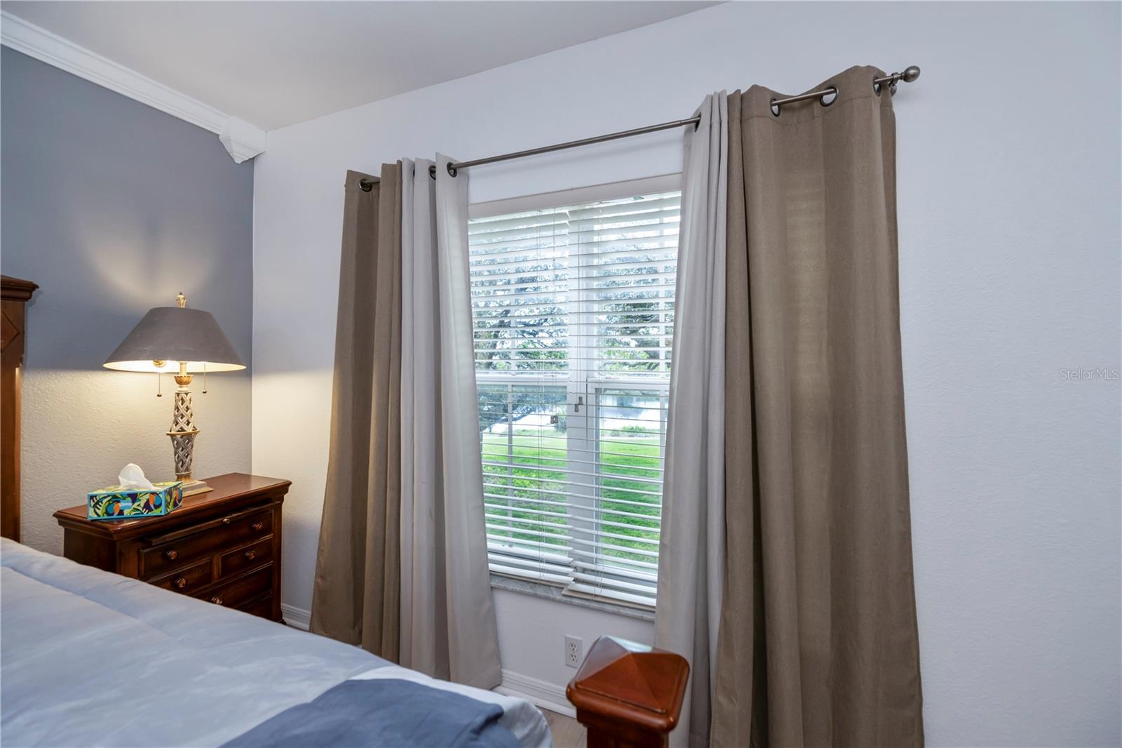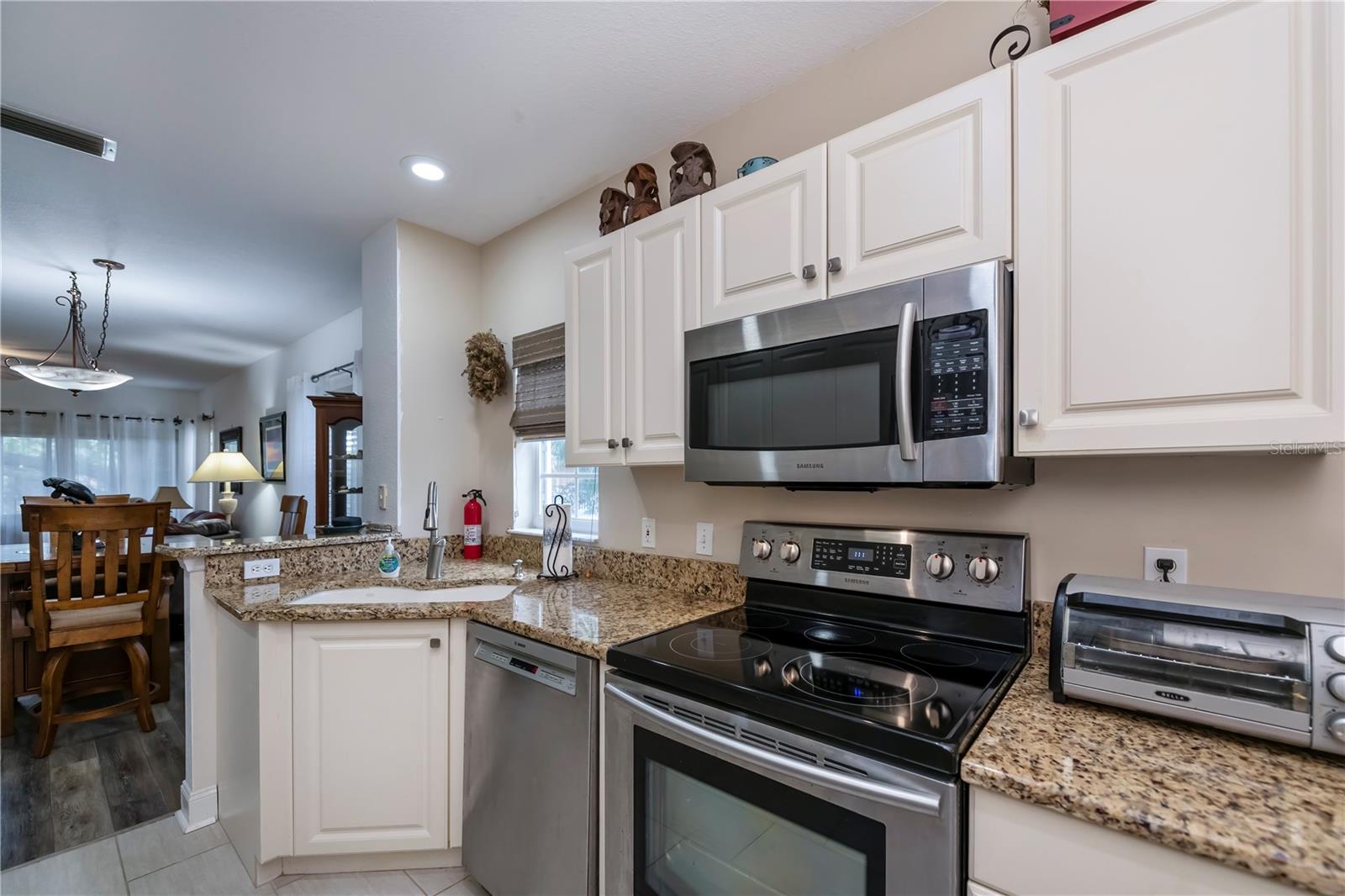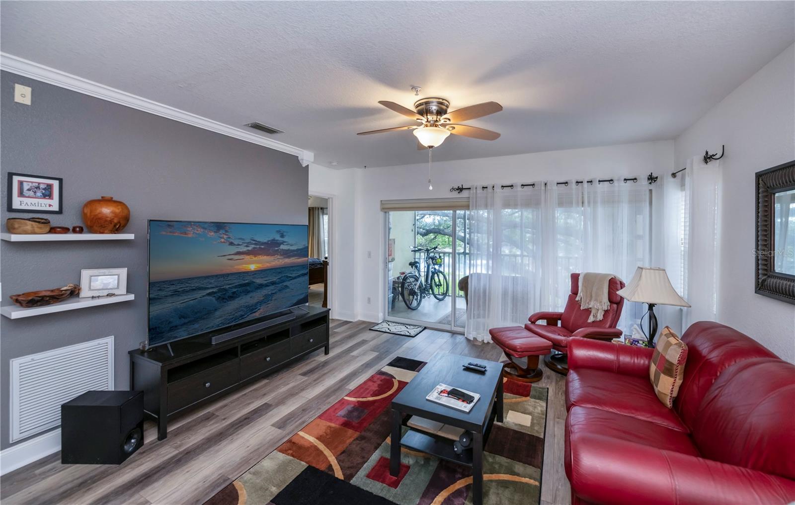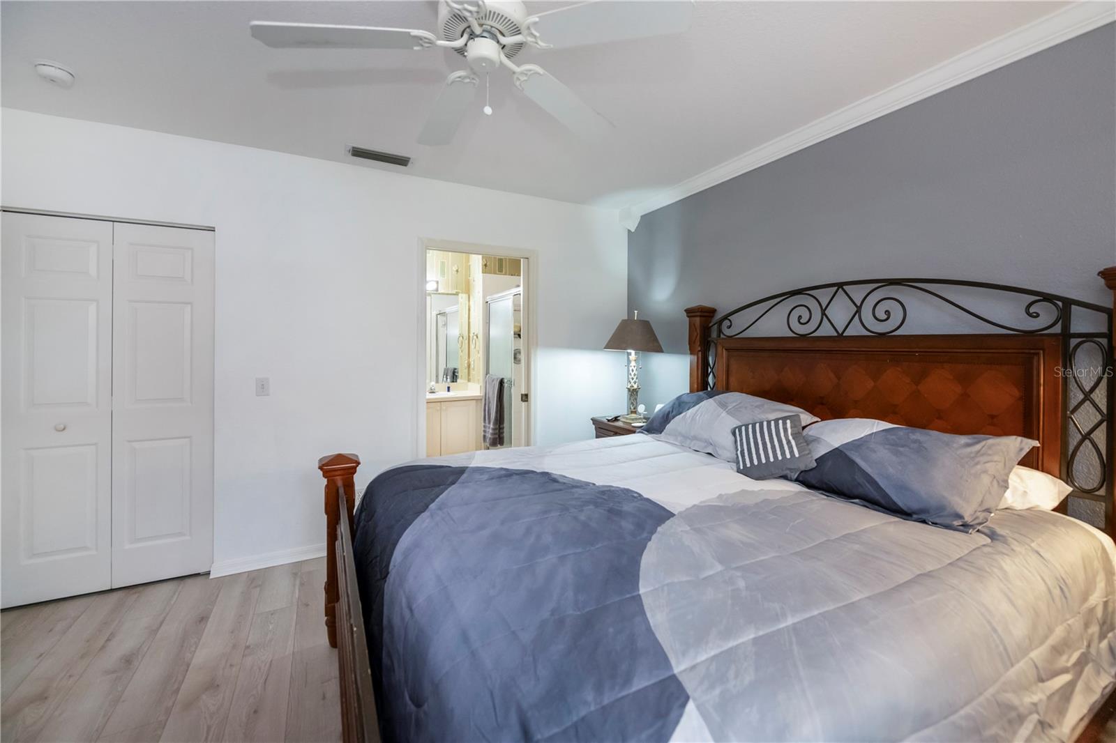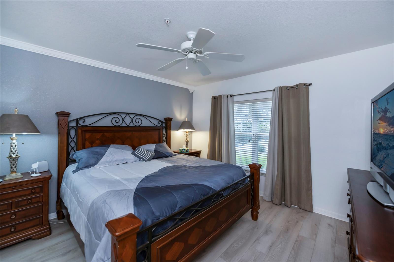 REDUCED!! Fantastic private view of the lake from this rarely available 3Br, 2Ba 2nd floor condo. located in the popular gated community of Heritage Oak Park! Condo. has been used by current owner for the season and has been meticulously maintained. Truly move in condition & comes Turnkey Furnished w/only a few exceptions. There is an elevator in the building and comes with a carport (new in 2024) & shingle roof was replaced in 2023. Condo. has an open floorplan w/good sized great room & dining area opening to the kitchen. Since it is an end unit there are addl. windows on the side which also add addl. light to an already light & bright unit. Kitchen offers tile floors, raised panel cabinets, granite countertops/w undercounter sink, stainless Samsung refrigerator, range & microwave & Bosch dishwasher. There are sliding doors from the great room out to the screened lanai which offers a great place to enjoy your morning coffee or a glass of wine in the evening. Master bedroom is off of the great room & has a large custom walk-in closet & pocket door to the ensuite master bath w/dual sinks, raised panel cabinets, tile floor & walk in shower. Interior laundry closet w/full size stacked newer Samsung washer & GE dryer. Split floor plan w/second bedroom adjacent to the second bath & 3rd bedroom is to the front & often used as a den/office. (Doors were removed but could easily put in.) Interior of the condo was recently painted & has 2 accent walls w/crown molding in the great room & master bedroom. Newer luxury plank floors in great room/dining & master bedroom & new 6" baseboards in the main areas. Other features are ceiling fans thru-out, custom lighting, & window treatments thru-out, & more! Heritage Oak Park is an active gated community with an activities director on staff planning many activities for your enjoyment. Built around all the old oak trees it feels like you are in the country yet just around the corner from shopping & restaurants. Amenities include a large clubhouse, heated pool, tennis courts, pickleball courts, bocce ball, shuffleboard, horseshoes, fitness room, billiards rom, lending library & walking path around the lake!!