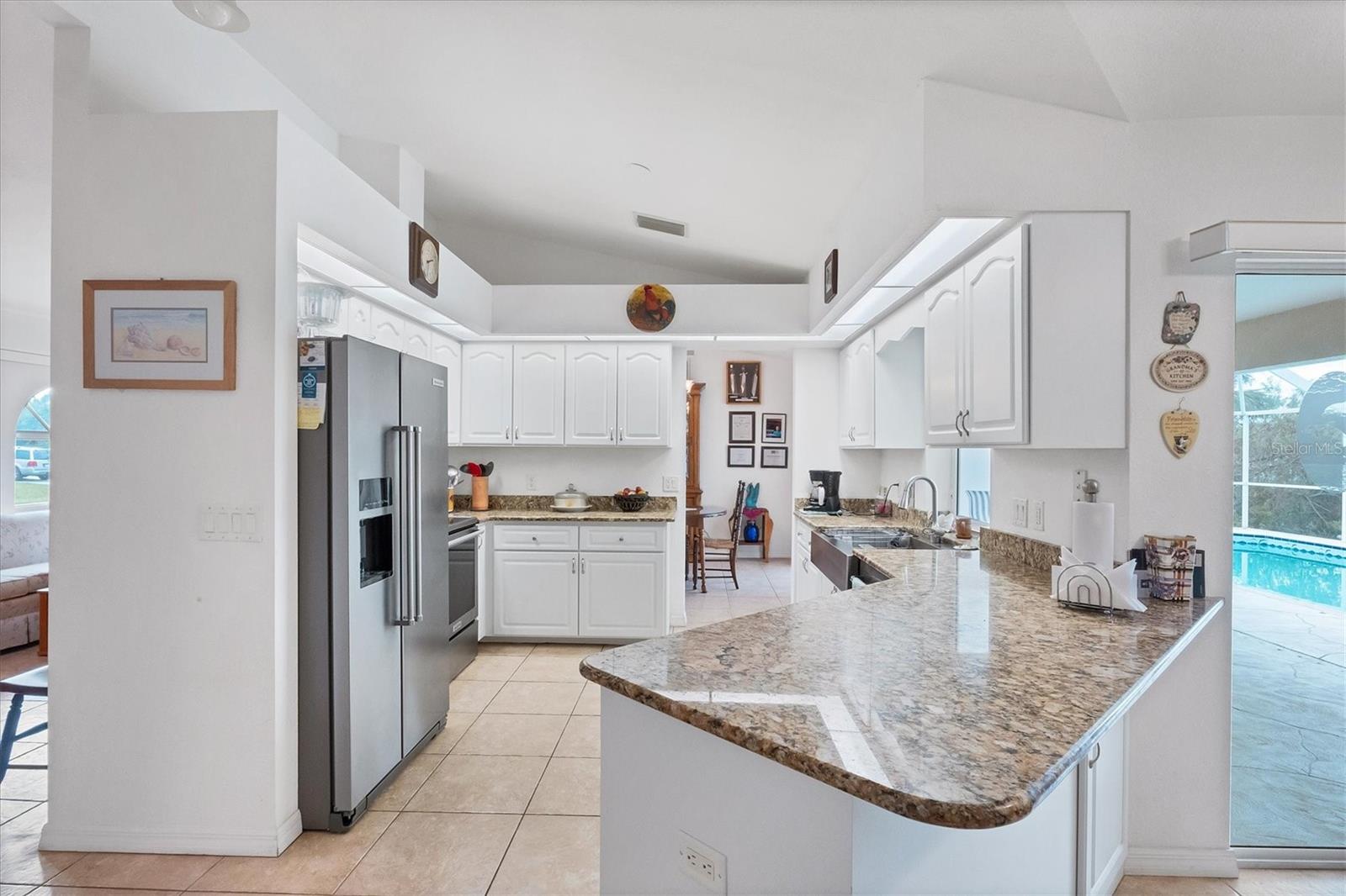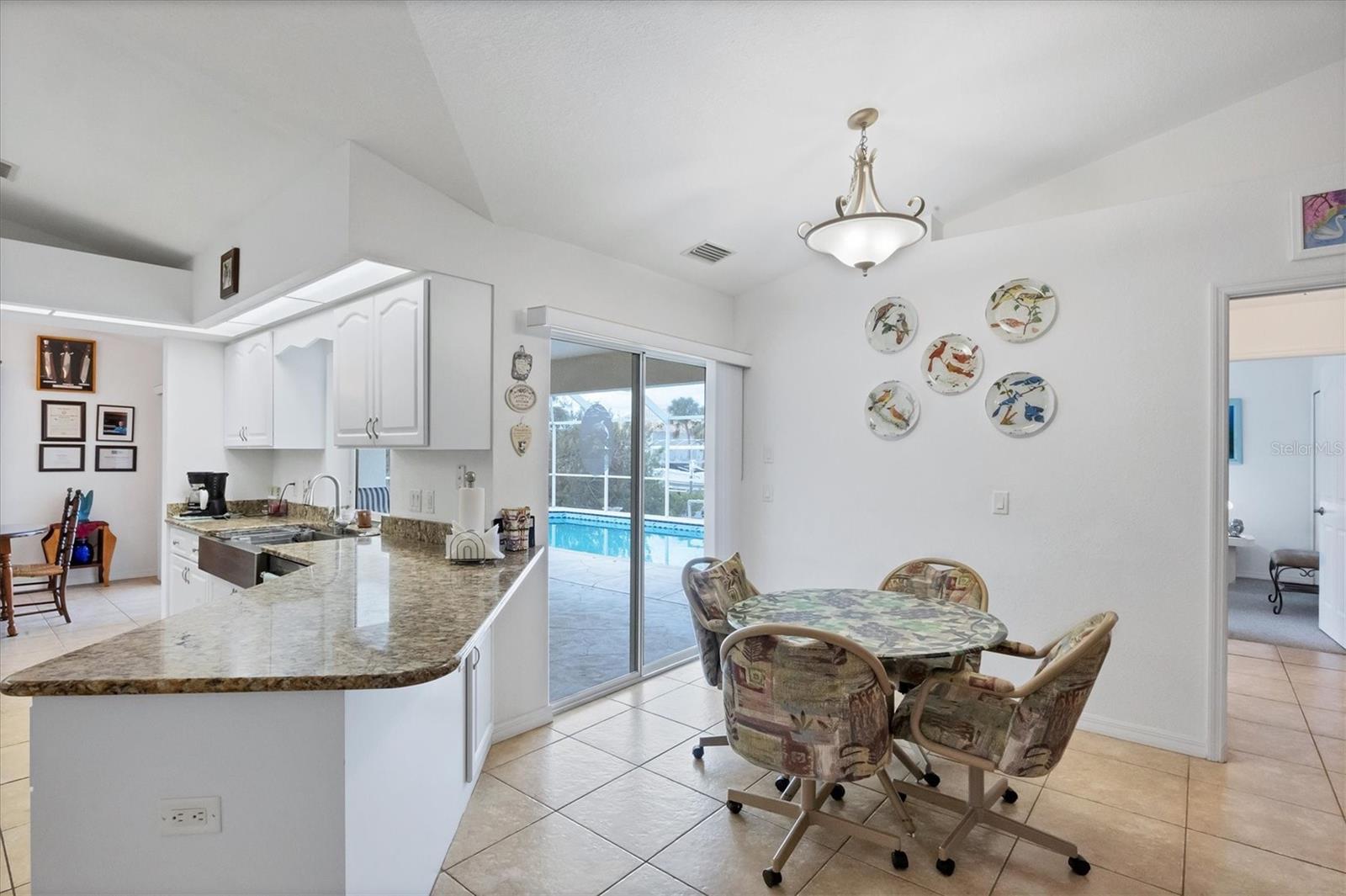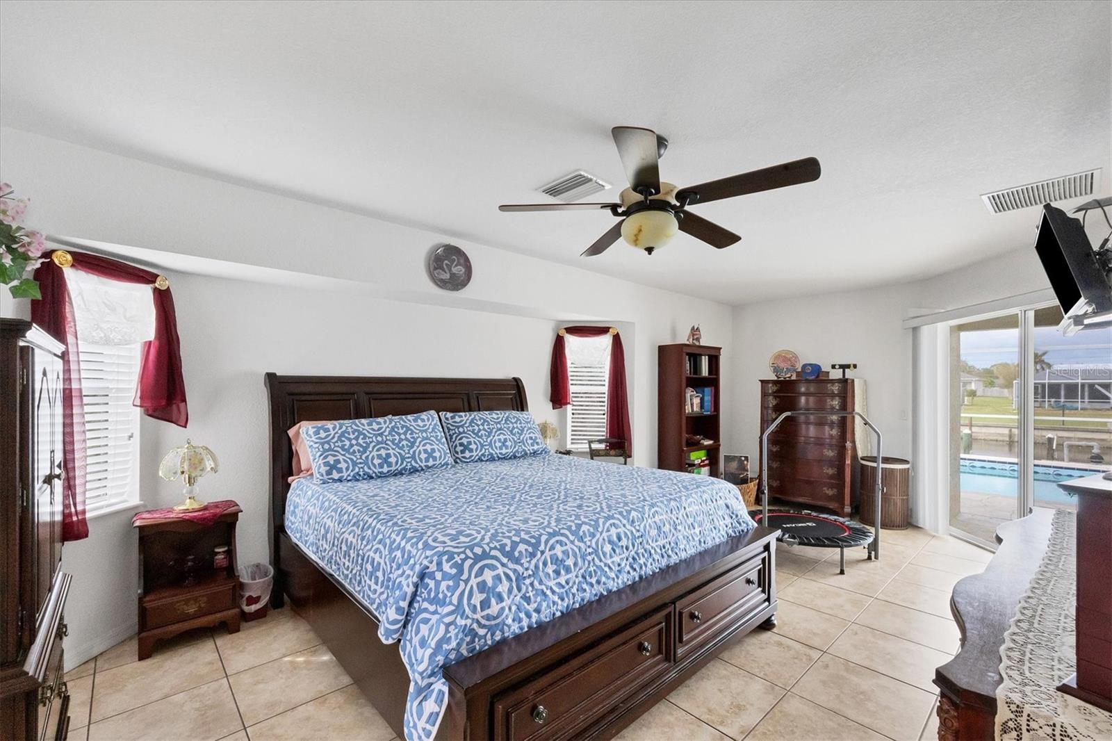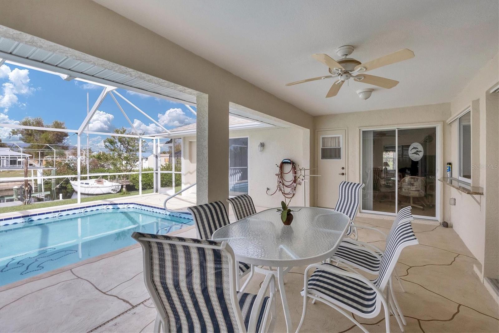 Waterfront pool home lovingly maintained is waiting for you to make it yours! You'll feel secure knowing the roof was replaced in 2022, HVAC system in 2022 and pool motor in 2021 and storm shutters for all openings. You'll also appreciate these features of this home that include but are not limited to self cleaning pool, granite counters in kitchen, support walls preventatively sprayed for bugs and mold when home was being built, 40' Trex dock, 10,000 lb. boat lift, whole house water filter, pool patio resurfaced 2020, generator thar runs propane or gas. This home is spacious and laid out well for family living or just those that may like to entertain. Step through your front door to find formal living/dining room floor plan. You'll move through the entrance to find your kitchen and adjacent family for more causal times. Your kitchen boast stainless appliances including a large stainless farm sink with a pass through window for passing charcuterie trays and drinks through to the lanai. Primary suite is also very spacious and open with sliders to your lanai ad pool and ensuite bath with walk in roman shower. Ever popular and desired split bedroom plan affords privacy for your guest as well as yourself. There are multiple dining choices with a breakfast nook, breakfast bar and formal dining area too. Exit through anyone of the 4 sliders in different rooms or the direct exit from 2nd bath to your beautiful pool, just the place to spend a beautiful Florida day. Head out to the back yard and enjoy cleaning the fish you caught on your boat that day with electric and water available at the TREX dock that boasts a 10,000 lb lift. or head out for a day on the water, no bridges to open water (sailboat water) with beautiful views along the way. Everything you need here to enjoy the true Florida lifestyle - sun, waterfront, pool, dock - just bring your furniture, bathing suits and boat. Do yourself a favor and put this on your must see list now and call to view!