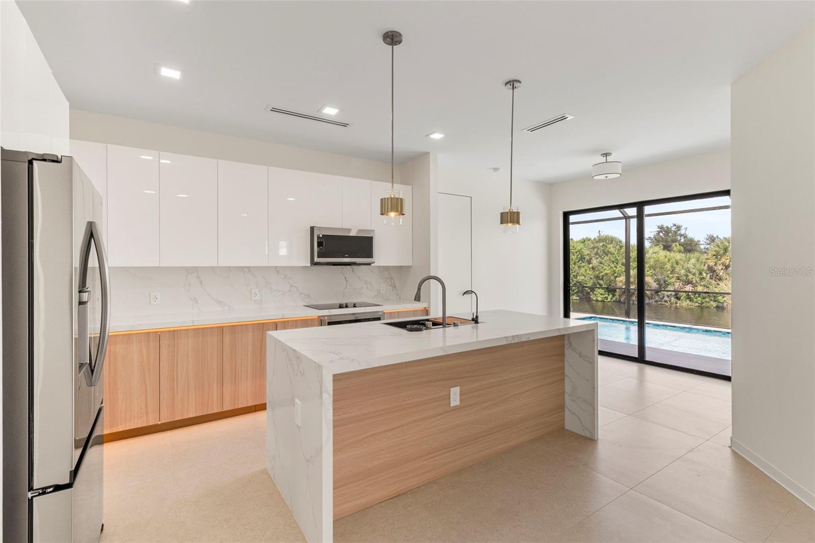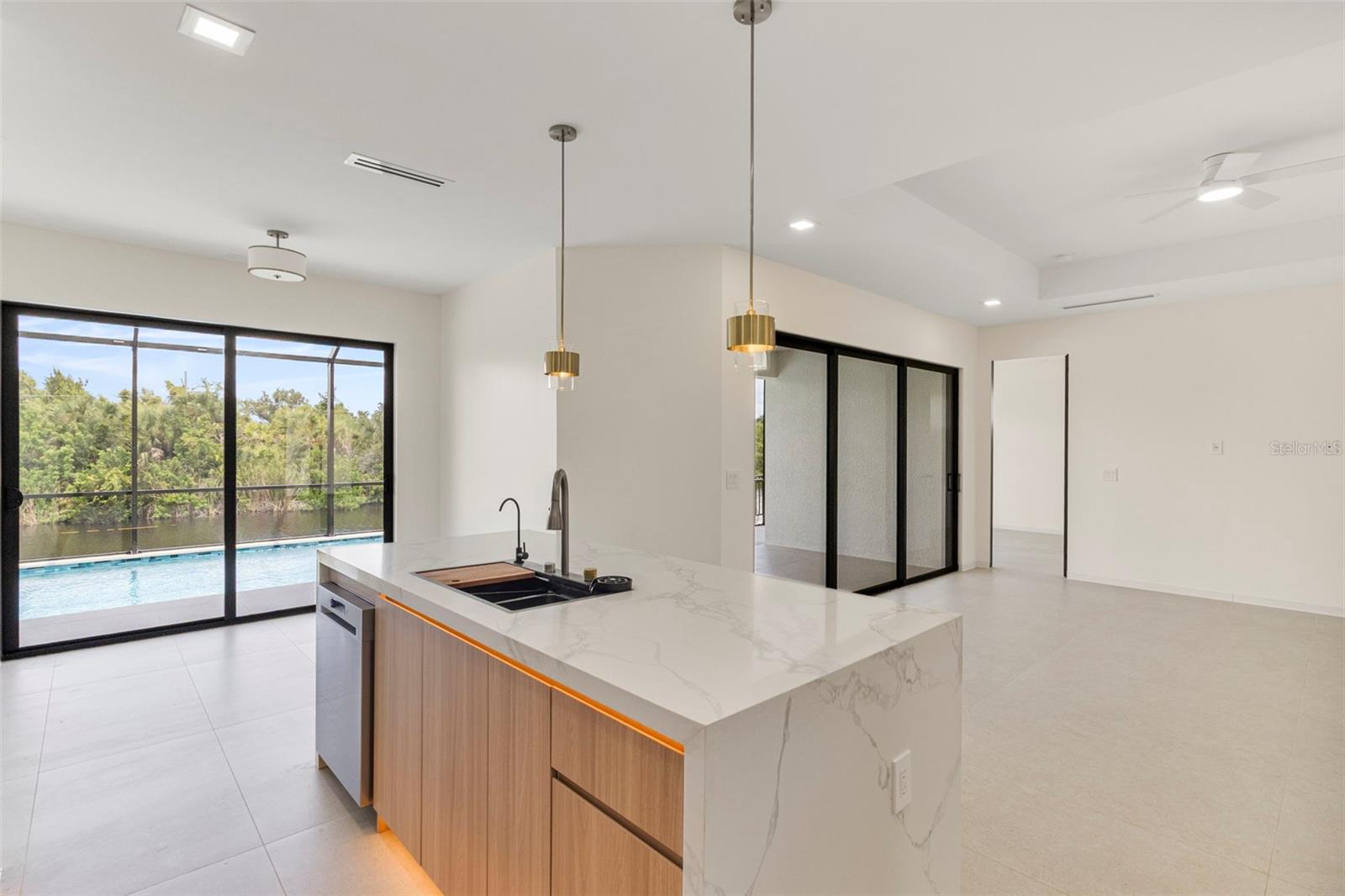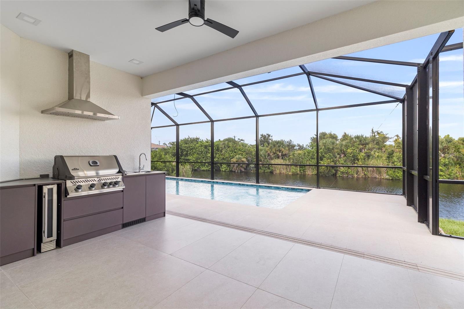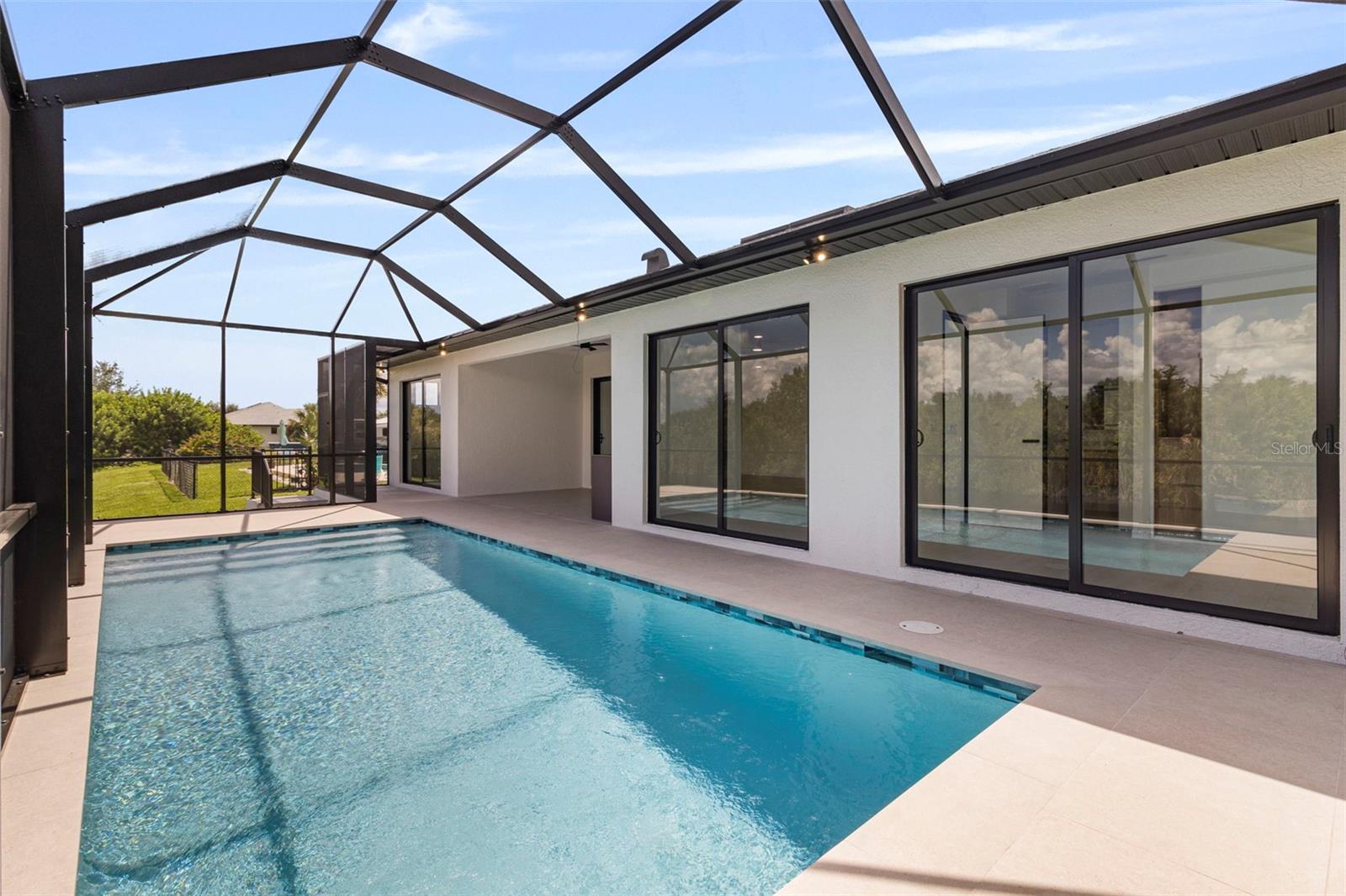 Construction Complete! Your dream home awaits!!! Move-In Ready Luxury Waterfront Home! Experience the pinnacle of luxurious coastal living in this stunning 3-bedroom, 3-bathroom home on a serene saltwater canal with direct access to Charlotte Harbor and the Gulf of Mexico, located in the highly sought-after South Gulf Cove community of Port Charlotte, Florida. No detail has been overlooked in this high-end home: large porcelain tile floors, tray ceilings, remote-control lighting, and a chef’s kitchen with high-end cabinetry, quartz countertops, premium stainless-steel appliances, and built-in custom kitchen organization systems. Each bathroom features dual vanities, walk-in showers, lighted anti-fog mirrors, and bidets, while all walk-in closets include custom shelving with built-in lighting. The open-concept design seamlessly connects living, dining, and kitchen areas, creating the perfect space for entertaining. A versatile den/home office adds functionality for work or guests. Step outside to your private oasis: a sparkling pool and spacious screened lanai, complete with a fully equipped outdoor kitchen, ideal for barbecues and relaxing while enjoying tranquil water views. An oversized 2-car garage provides ample parking and storage. Conveniently located near beaches, boating, fishing, golfing, shopping, and dining, this home combines luxury, comfort, and lifestyle. Brand new and move-in ready—don’t miss your chance to own this exceptional waterfront property!