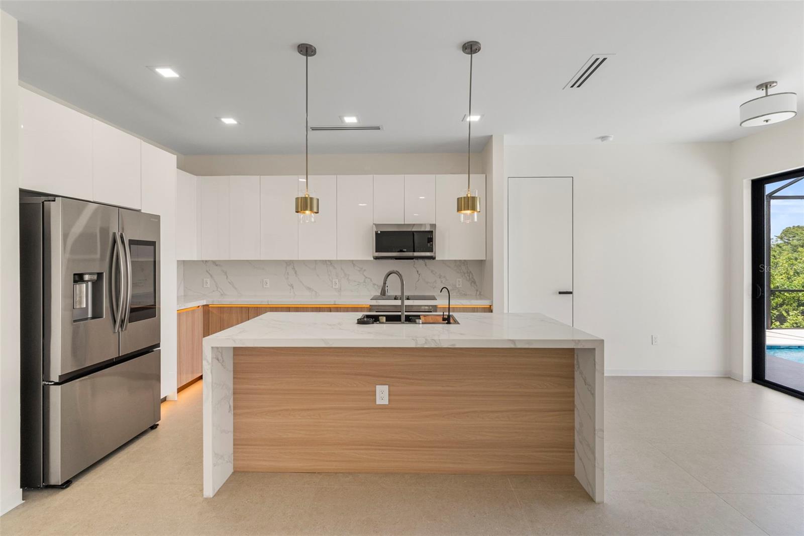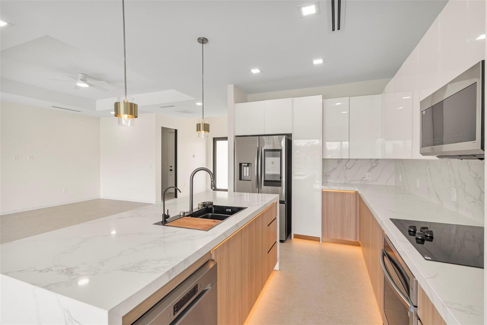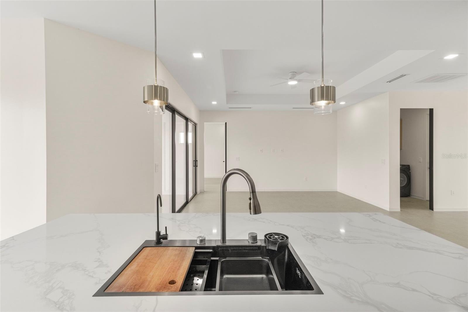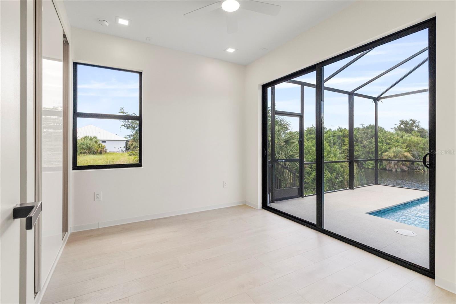 Construction Complete! Your dream home awaits!!! Move-In Ready Luxury Waterfront Home! Experience the pinnacle of luxurious coastal living in this stunning 3-bedroom, 3-bathroom home on a serene saltwater canal with direct access to Charlotte Harbor and the Gulf of Mexico, located in the highly sought-after South Gulf Cove community of Port Charlotte, Florida. No detail has been overlooked in this high-end home: large porcelain tile floors, tray ceilings, remote-control lighting, and a chef’s kitchen with high-end cabinetry, quartz countertops, premium stainless-steel appliances, and built-in custom kitchen organization systems. Each bathroom features dual vanities, walk-in showers, lighted anti-fog mirrors, and bidets, while all walk-in closets include custom shelving with built-in lighting. The open-concept design seamlessly connects living, dining, and kitchen areas, creating the perfect space for entertaining. A versatile den/home office adds functionality for work or guests. Step outside to your private oasis: a sparkling pool and spacious screened lanai, complete with a fully equipped outdoor kitchen, ideal for barbecues and relaxing while enjoying tranquil water views. An oversized 2-car garage provides ample parking and storage. Conveniently located near beaches, boating, fishing, golfing, shopping, and dining, this home combines luxury, comfort, and lifestyle. Brand new and move-in ready—don’t miss your chance to own this exceptional waterfront property!