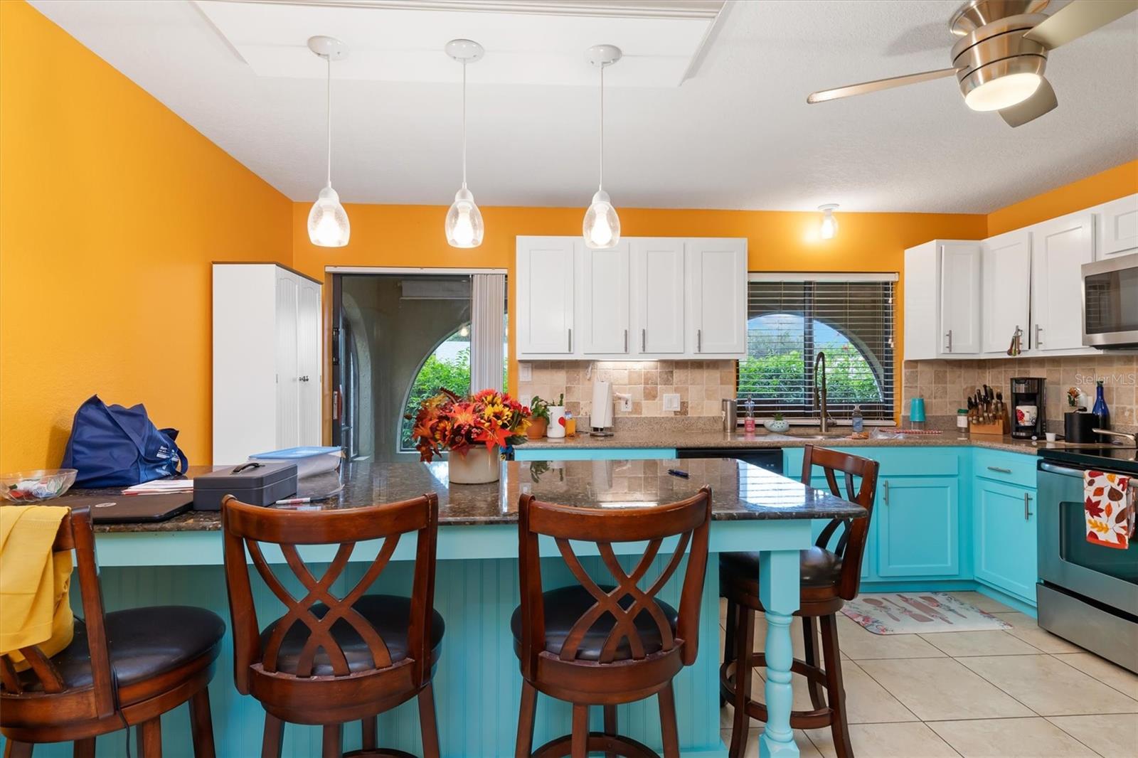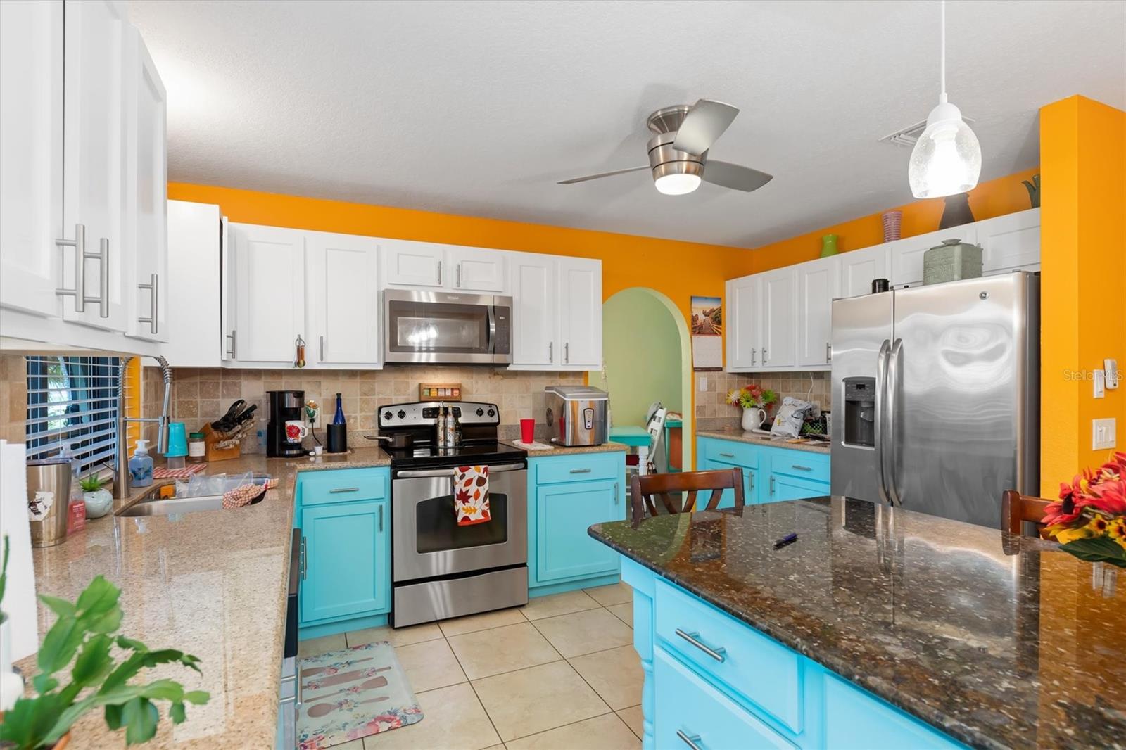 Price Reduced! Check out the virtual 3-D walk through above! Charming Florida Home with Modern Upgrades and RV Accommodations! Nestled onan oversized corner lot, this 2-bedroom, 2-bathroom home offers a thoughtfully designed split floorplan, perfect for privacy and functionality. Surrounded by lush landscaping, this property exudes curb appeal and features a variety of outdoor amenities, including a spacious deck, a garden, and a handy shed. The home boasts an impressive 25x14 RV pad, complete with water and electric hookups, as well as a sewer cleanout, making it an ideal spot for RV enthusiasts or guests. A covered lanai running the full length of the house provides a shaded retreat to relax or entertain, blending indoor and outdoor living seamlessly. Step inside to find a welcoming living room and dining room with freshly painted walls that create a bright and inviting atmosphere. The kitchen is a chef’s dream, featuring granite countertops, a stylish tile backsplash, stainless steel appliances, and a convenient island with barstools, perfect for casual meals or entertaining. This home has been meticulously maintained with significant updates, including: New roof installed in October 2021 Brand-new AC unit installed in October 2023 by Hoffs Air Conditioning New water lines throughout the house in January 2024 Don’t miss your chance to own this Florida gem that perfectly balances comfort, functionality, and outdoor living. Schedule your showing today!