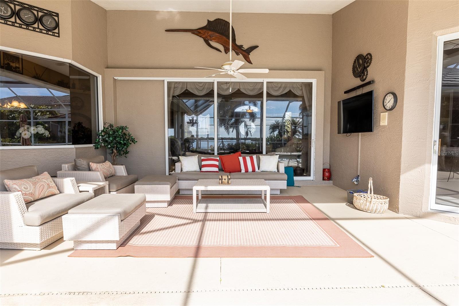 Please view the video tour. This luxury estate home boasts expansive water views. A haven for boaters, it features 116 feet of waterfront, a large wooden dock equipped with water and electricity, and a 16,000-pound boat lift. With direct sailboat access to Charlotte Harbor and the Gulf of Mexico, this half-acre property hosts a custom-built home with a three-car garage, an imposing double door entry, a heated pool with a spa, an outdoor wet bar, and a whole-house propane generator. The gourmet kitchen includes solid wood cabinets, granite countertops, dual stainless steel sinks, an island with a sink and wine fridge, a Thermador six-burner gas stove with a griddle and hood, a double oven, and an oversized KitchenAid stainless refrigerator-freezer. It also has a walk-in pantry and a desk/recipe station. The dinette area features a three-panel aquarium window with views of the lanai and pool. The executive home office is fitted with a built-in desk and bookcase, wood flooring, and blinds. The formal living room