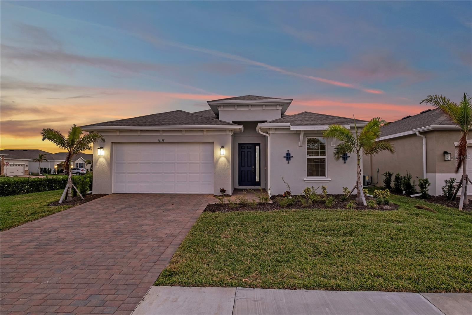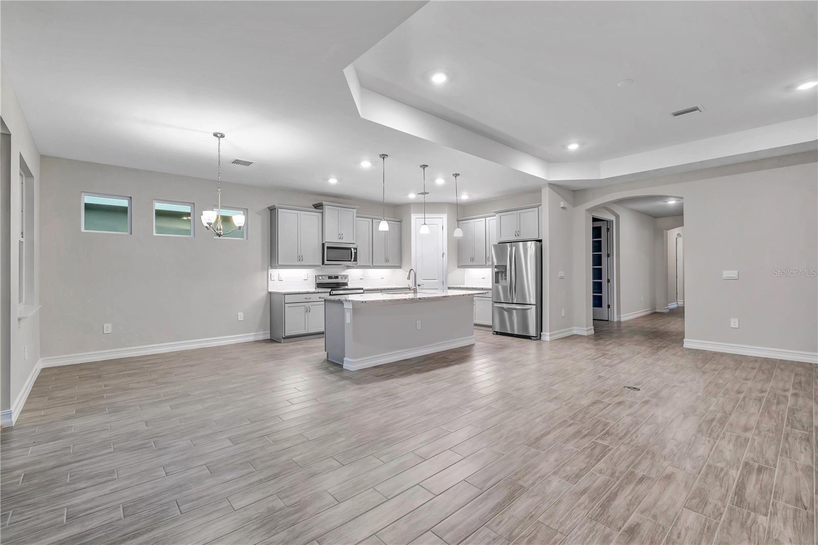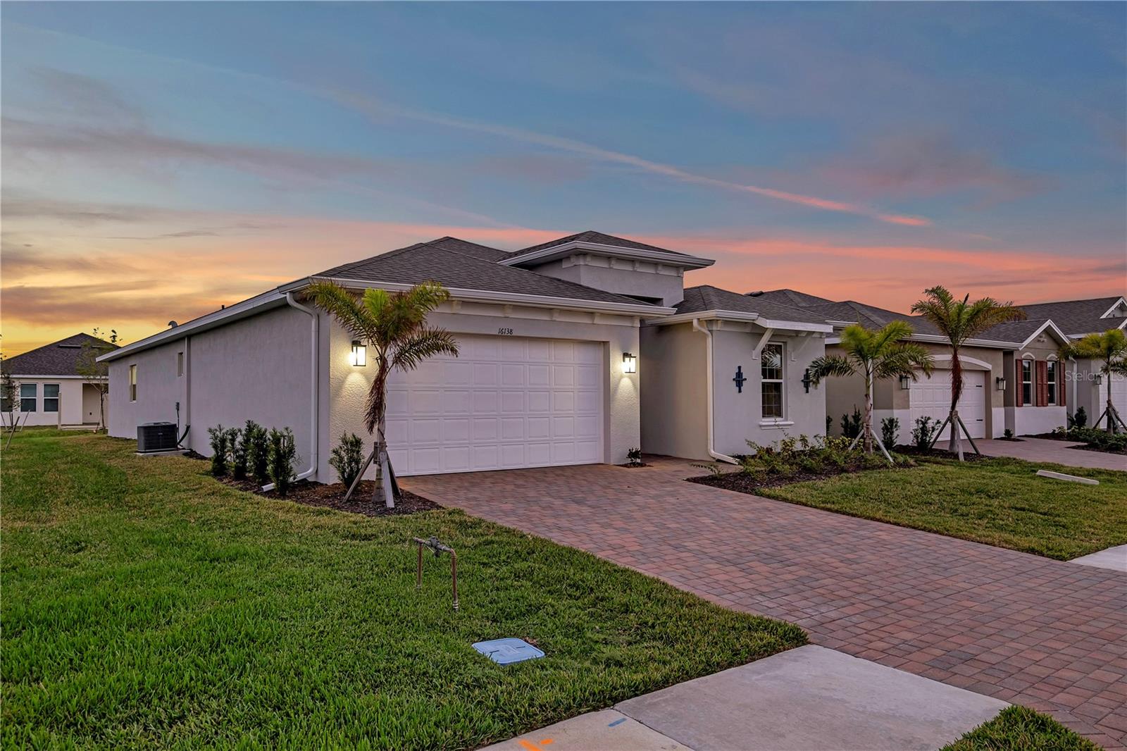 Welcome to the Cove of West Port Community, where you'll enjoy a variety of fantastic amenities, including a resort-style heated pool, clubhouse, pickleball courts, bocce ball, fitness center, and a dog park. The community also offers sidewalks on both sides of the street and easy access to I-75, shopping, and nearby beaches, making it a prime location for both relaxation and convenience. This brand-new, open-concept home features 3 bedrooms, 2.5 baths, and spacious living areas. Elegant tray ceilings throughout enhance the home's bright and airy feel. The kitchen is well-equipped with a corner pantry and a large island that overlooks the great room and dining area. A formal dining room provides extra seating for guests, or it can be customized into a den with double French doors. The primary suite offers a private retreat with a walk-in closet, dual vanities, a garden tub, and a separate shower. The large walk-in closet conveniently connects to the laundry room. The two additional bedrooms and full bath are located at the front of the home, offering privacy from the primary suite. An expansive covered lanai is perfect for outdoor living, and an optional pool bath adds convenience. This home combines modern comfort with the best of community living, making it the ideal place to call home.