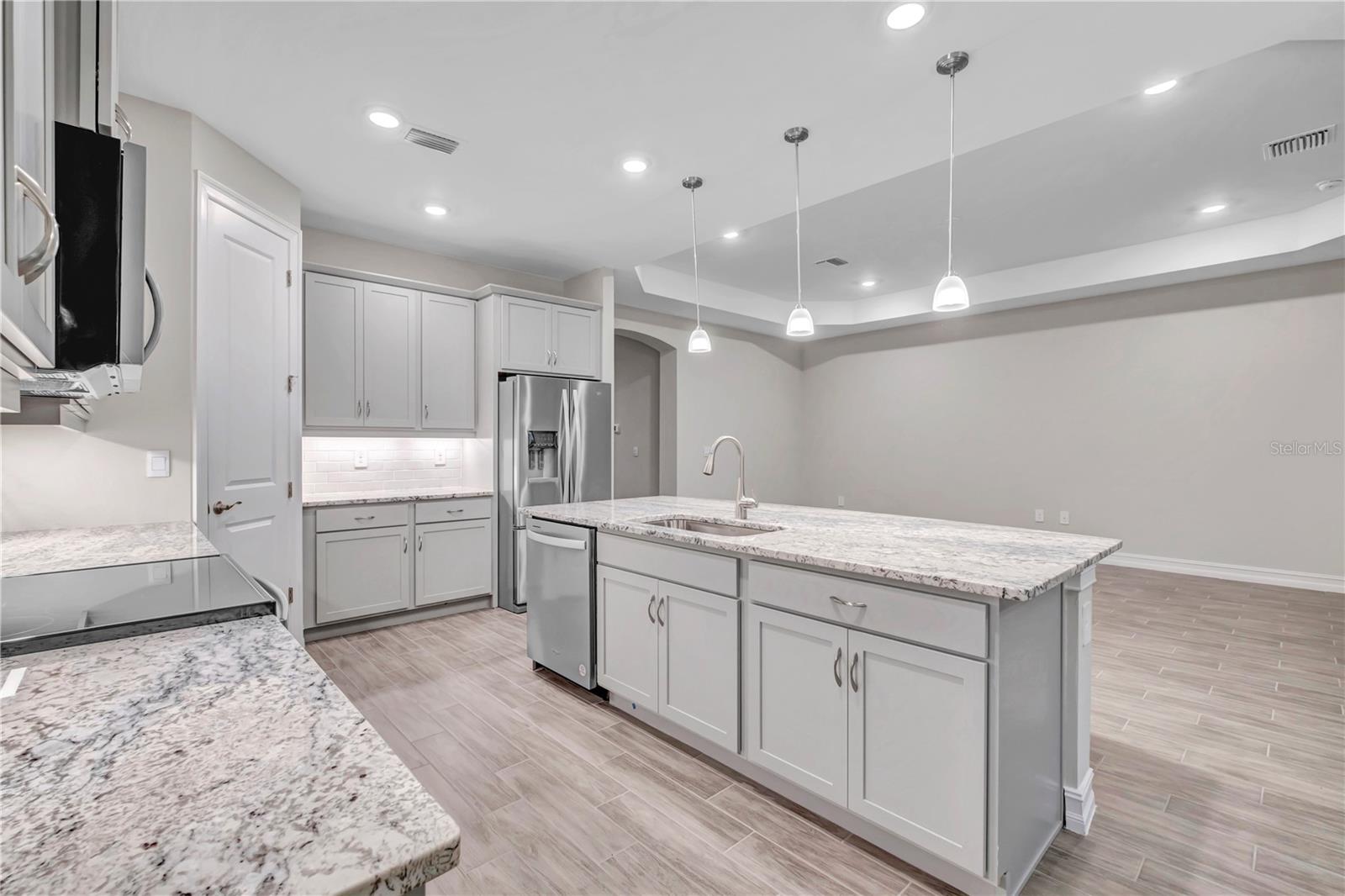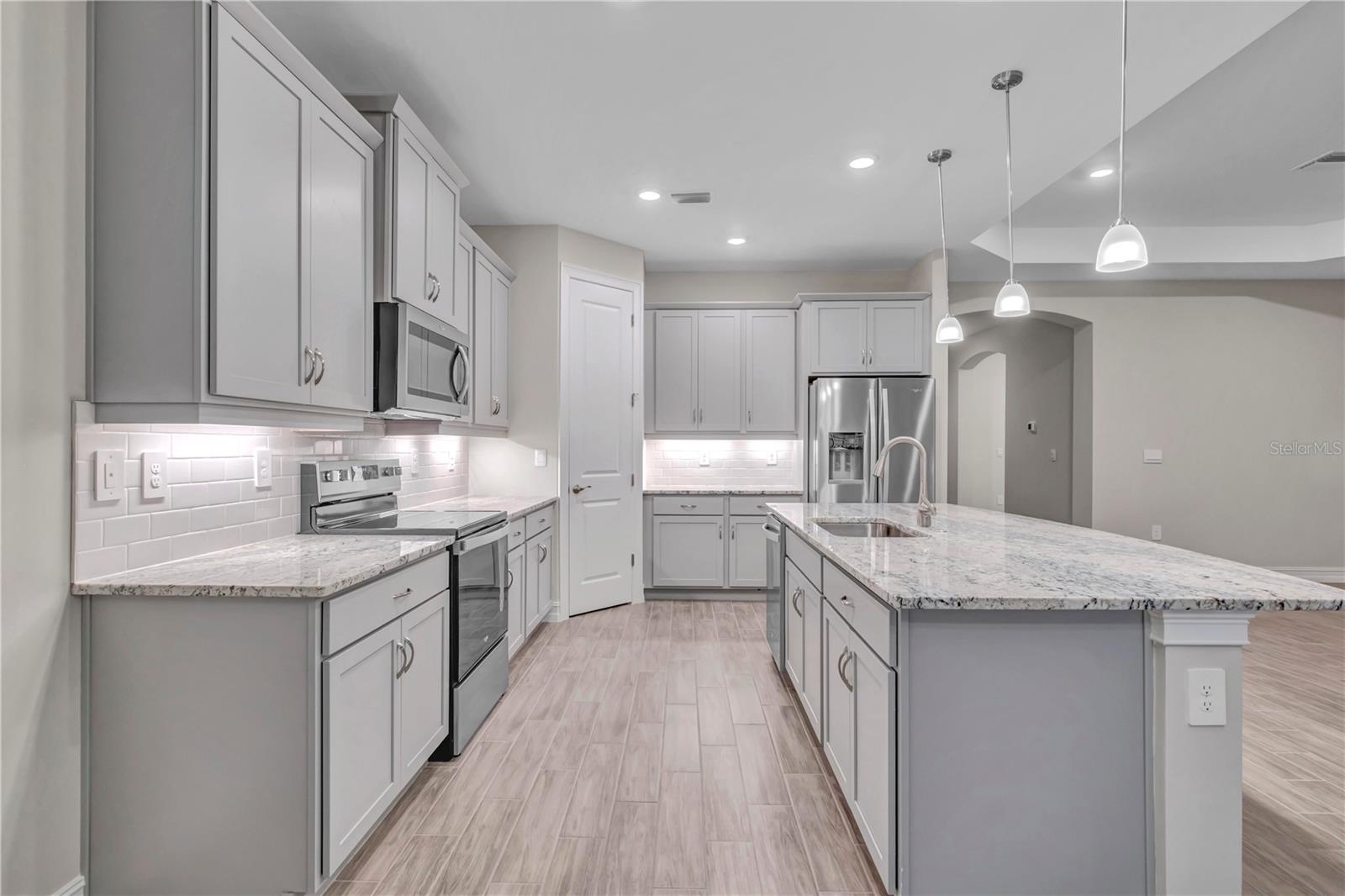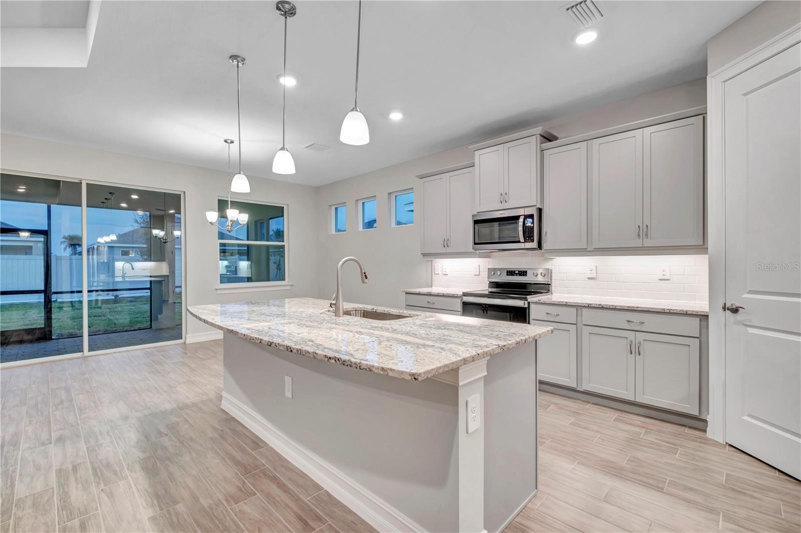Welcome to the Cove of West Port Community, where you'll enjoy a variety of fantastic amenities, including a resort-style heated pool, clubhouse, pickleball courts, bocce ball, fitness center, and a dog park. The community also offers sidewalks on both sides of the street and easy access to I-75, shopping, and nearby beaches, making it a prime location for both relaxation and convenience. This brand-new, open-concept home features 3 bedrooms, 2.5 baths, and spacious living areas. Elegant tray ceilings throughout enhance the home's bright and airy feel. The kitchen is well-equipped with a corner pantry and a large island that overlooks the great room and dining area. A formal dining room provides extra seating for guests, or it can be customized into a den with double French doors. The primary suite offers a private retreat with a walk-in closet, dual vanities, a garden tub, and a separate shower. The large walk-in closet conveniently connects to the laundry room. The two additional bedrooms and full bath are located at the front of the home, offering privacy from the primary suite. An expansive covered lanai is perfect for outdoor living, and an optional pool bath adds convenience. This home combines modern comfort with the best of community living, making it the ideal place to call home.