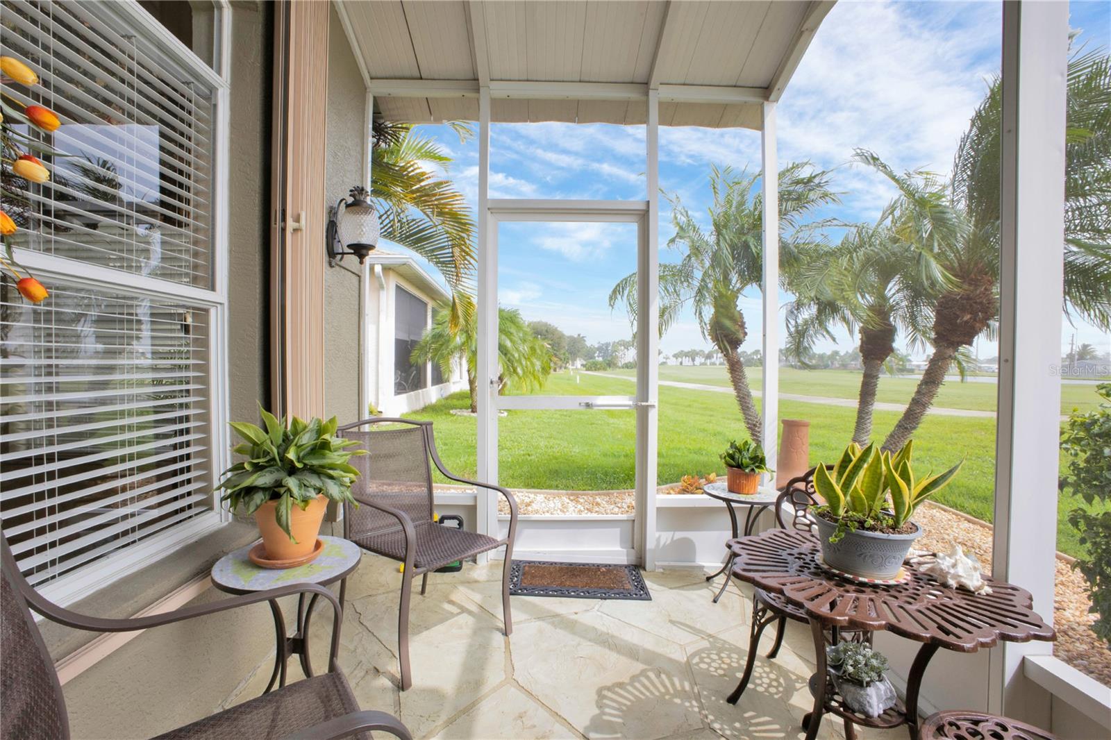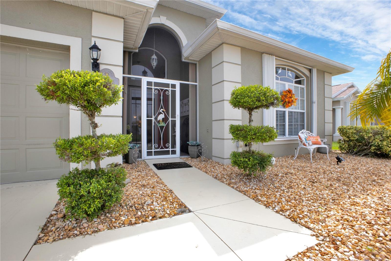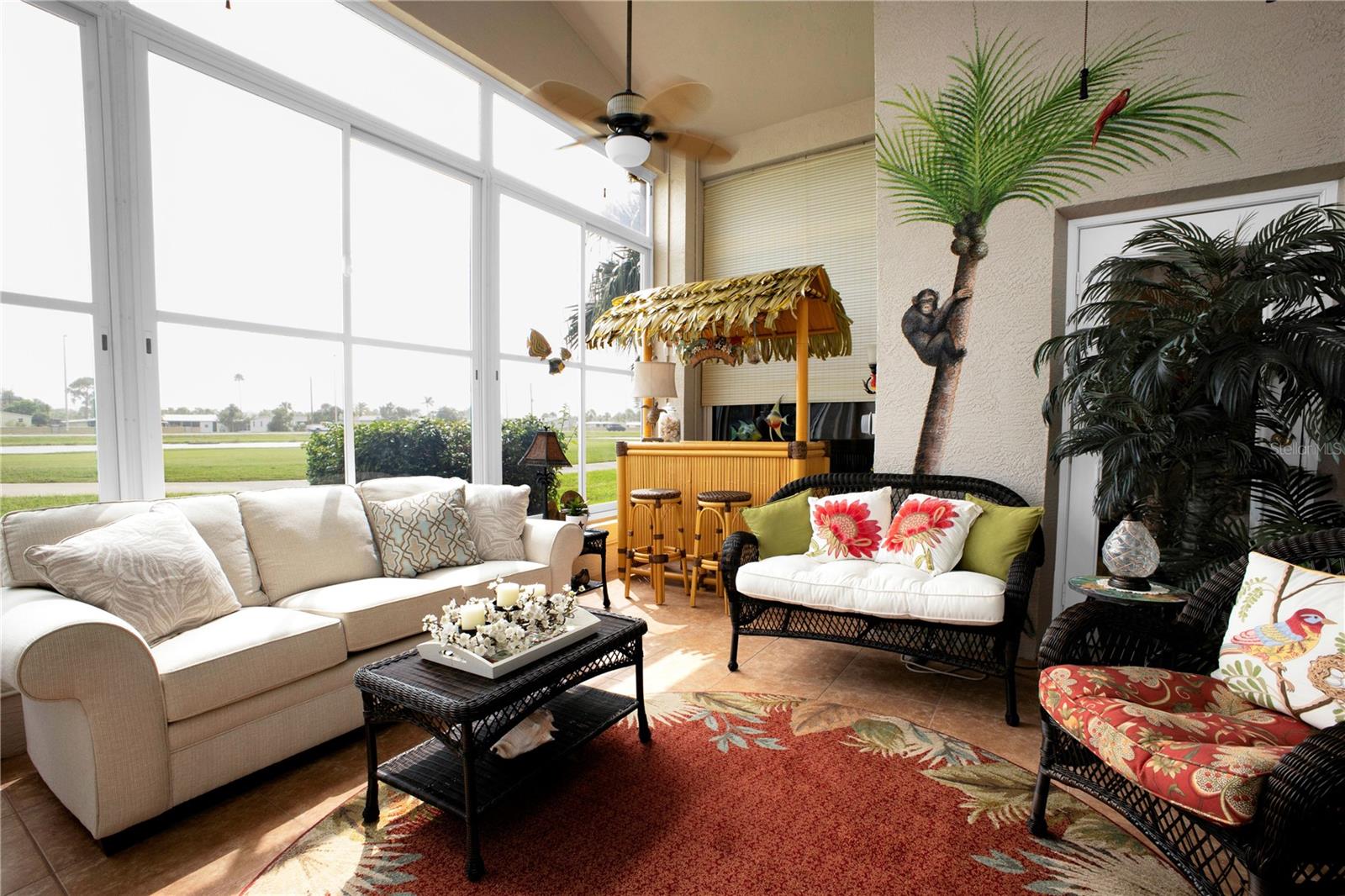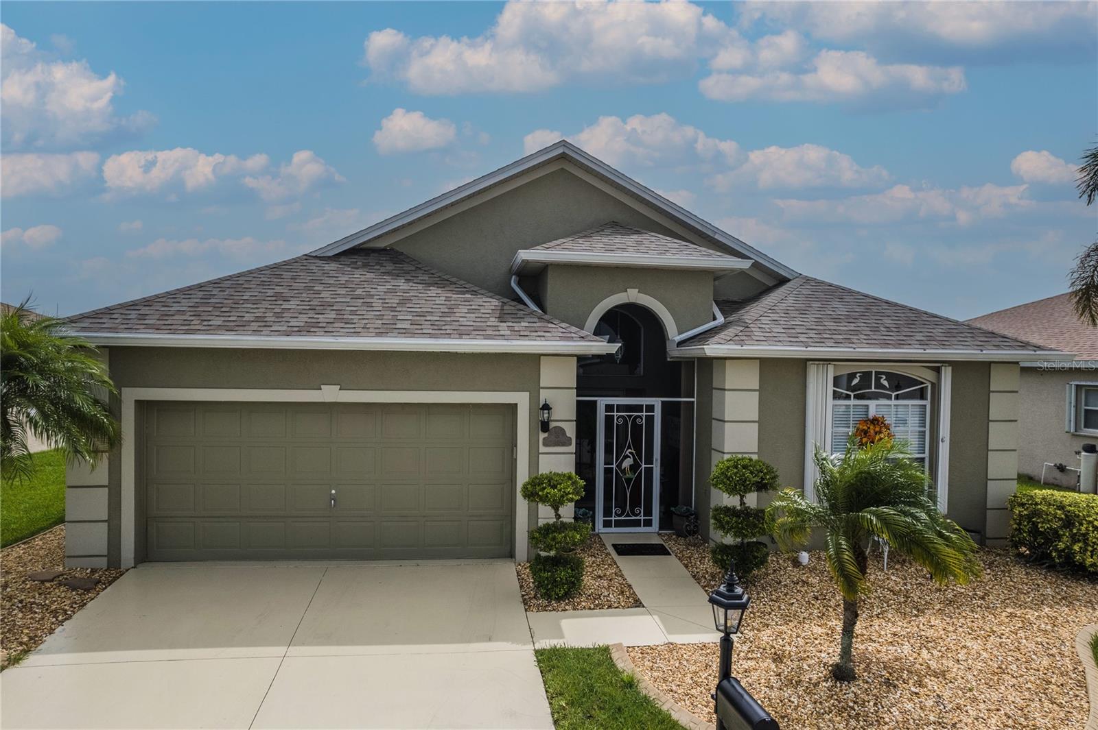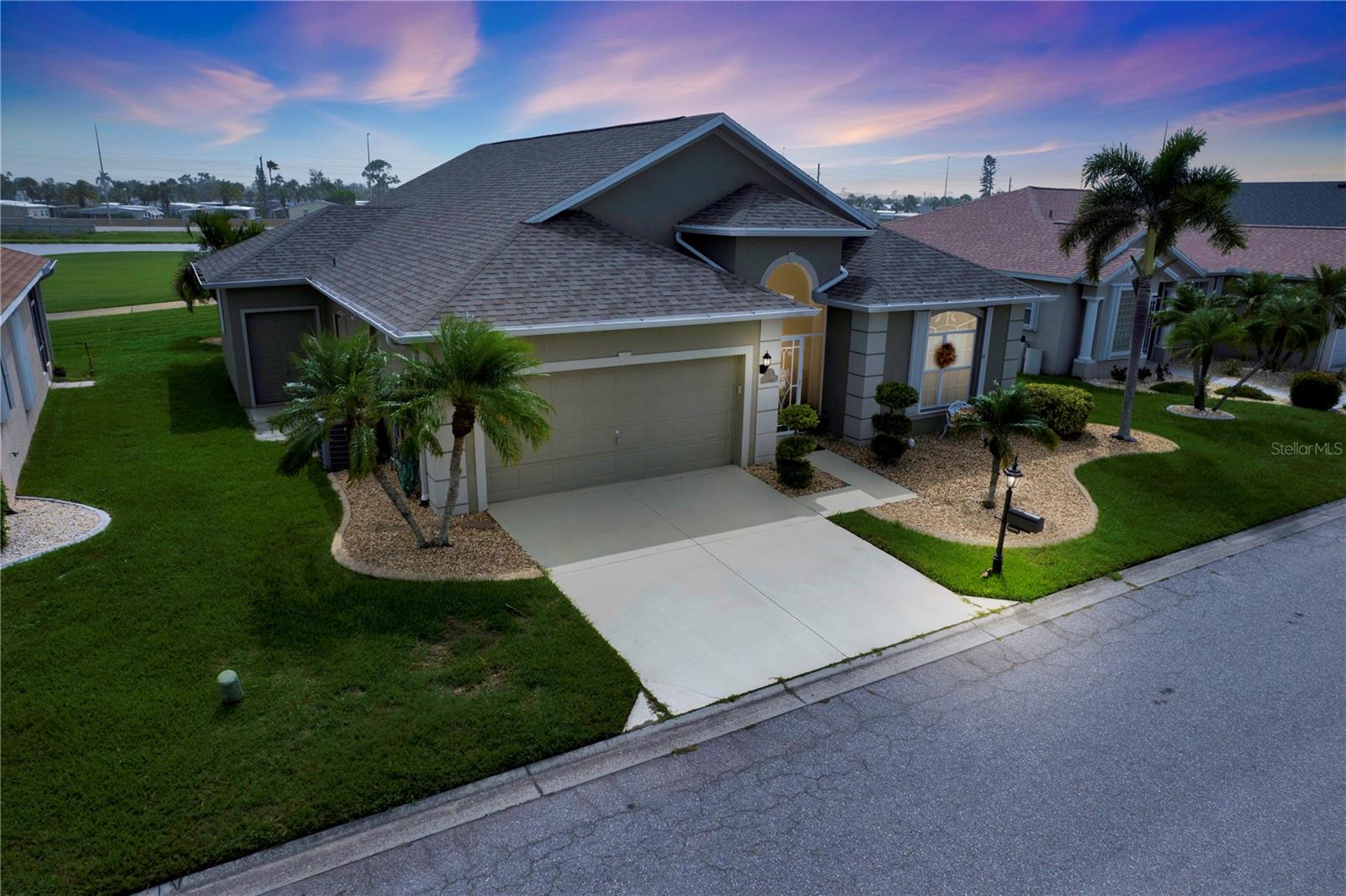 SENSATIONAL ASHTON II floor plan (with VA assumable loan at 2.25%) available in the gated golf course/active resort of highly desirable Kings Gate, a 55+ community (NOT IN A FLOOD ZONE, more than 20 ft above sea level - have never experience storm surge, in evacuation zone D and have never been under an evacuation order). SUPER ACTIVE COMMUNITY and this house is FUN FUN FUN - with lots of ENTERTAIANMEN OPTIONS. This one checks all the boxes...2 1/2 CAR GARAGE***LARGE and ENCLOSED LANAI (with bar)***MASSIVE KITCHEN***SCREENED IN PATIO***VIEW OF GOLF COURSE AND WATER***CONTENTS NEGOTIABLE. ROOF FROM 2022 - STAINLESS APPLIANCES - Epoxy floor in Garage with hanging storage. This home provides awesome curb appeal - but when you finally step inside you're going to notice the towering height of the ceilings when combined with the windows and slider doors provide a bright/airy and open feeling. The large living room interacts nicely with the dining room, kitchen, and lanai....and OH what a lanai that is....tiled floor with windows offers plenty of seating and your very own bar. And the lanai connects to an outdoor screened in patio area. This home offers a lot of possibilities for entertainment and/or relaxation. The massive kitchen offers plenty of cabinet space and counter space - with granite and solid wood cabinets. The master bedroom is to the back right of the home with the guest bedroom to the front right of the home providing tremendous privacy for you and your guests. The den features French doors that allow you to use that room as a private office, 3rd bedroom, or even a second TV room - whatever fits your lifestyle. And if you haven't been to Kings Gate before - you're going to love the options for activity (Olympic size heated swimming pool and spa, tennis courts, pickle ball, lawn bowling, shuffle board, bocce, horseshoes, gym, billiards, library, euchre, bingo, bridge, Texas hold em, poker, mahjong and more). The onsite and recently remodeled Lions Den restaurant and bar is super convenient and also offers Tuesday night Karaoke and monthly trivia contests. Many residents love the fact that they are just a golf cart ride away from the Winn Dixie shopping plaza that provides you access to grocery store, drug store, bank, restaurants and shopping. Want to explore outside of Kings Gate - your minutes away from the restaurants and shops of downtown Punta Gorda and Fisherman's village. And if you want to explore more of Florida's fun spots you’re near I75 to quickly head north or south. An AWESOME home with tremendous ENTERTAINMENT and/or RELAXATION options plus a 2 1/2 car garage in a PREMIER gated community is a MUST SEE. Call today for a private showing and a golf cart tour of the community/amenities.