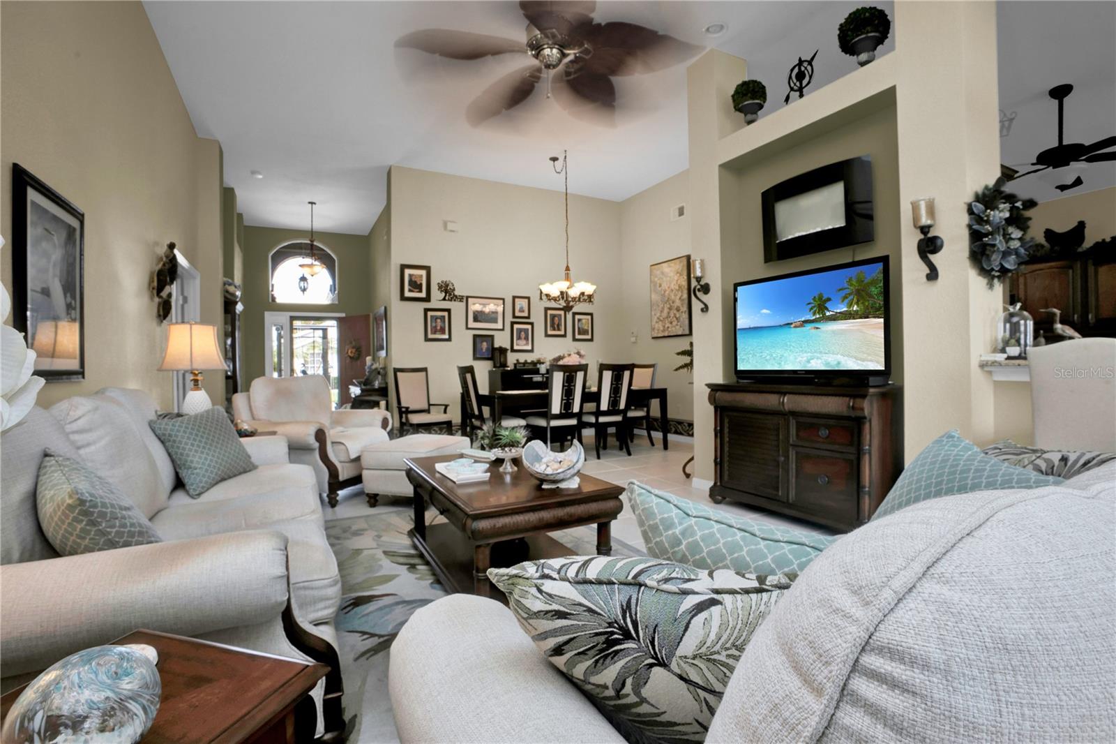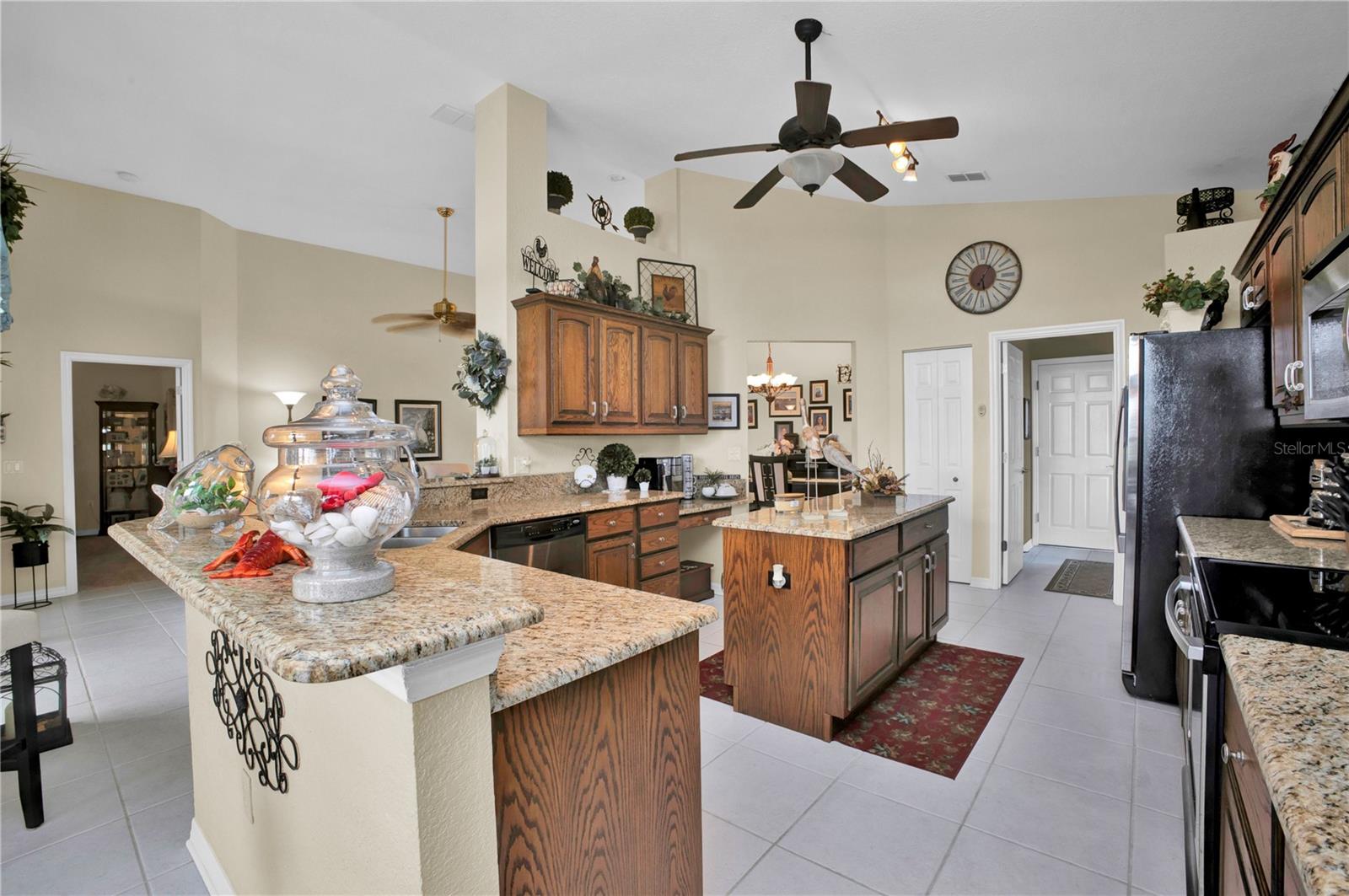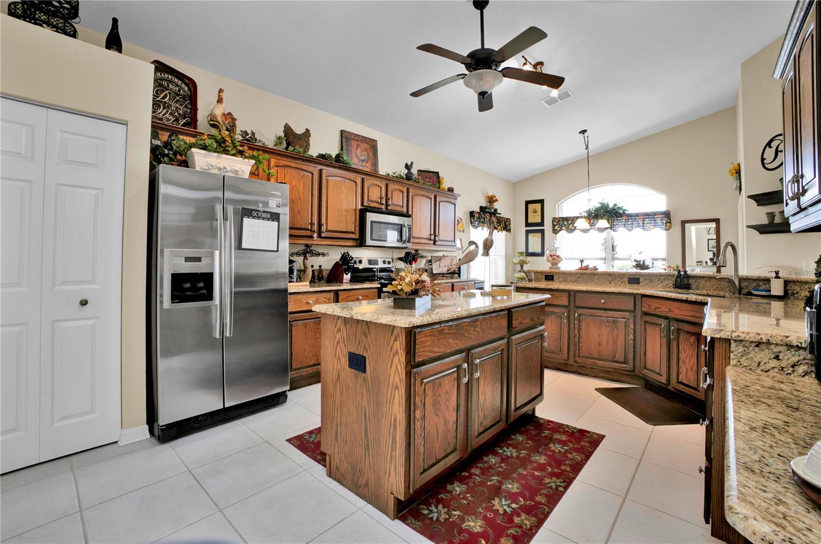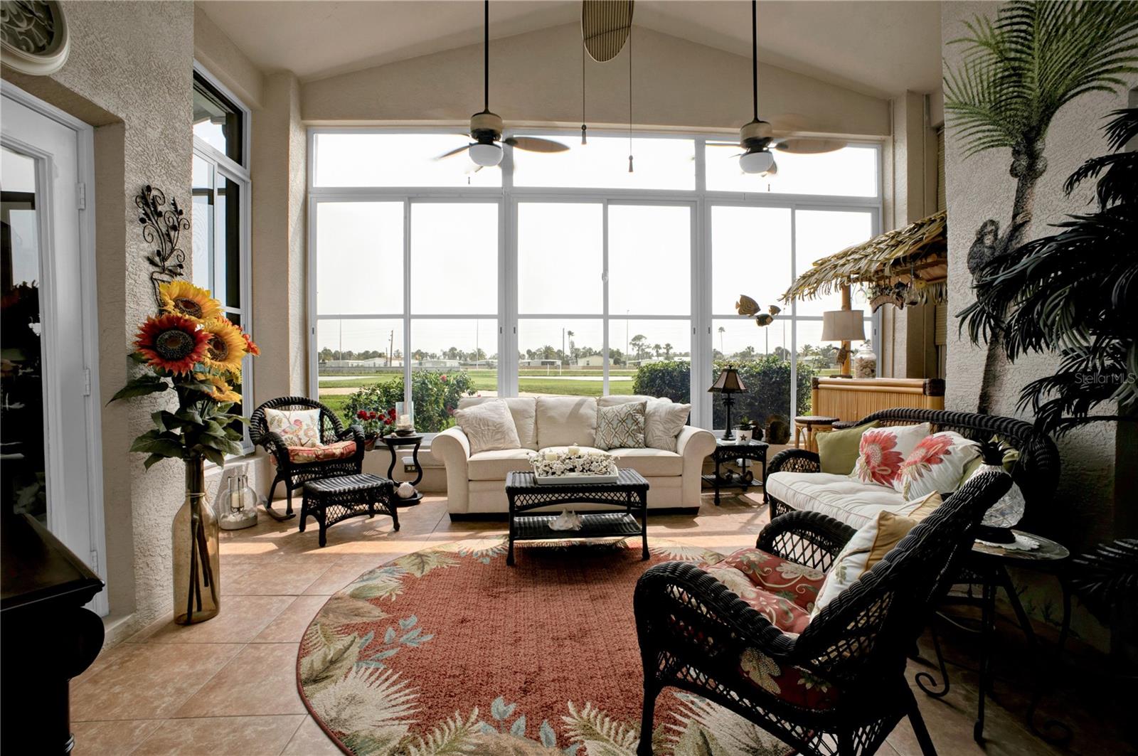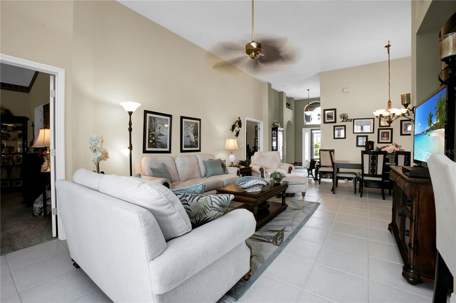 SENSATIONAL ASHTON II floor plan (with VA assumable loan at 2.25%) available in the gated golf course/active resort of highly desirable Kings Gate, a 55+ community (NOT IN A FLOOD ZONE, more than 20 ft above sea level - have never experience storm surge, in evacuation zone D and have never been under an evacuation order). SUPER ACTIVE COMMUNITY and this house is FUN FUN FUN - with lots of ENTERTAIANMEN OPTIONS. This one checks all the boxes...2 1/2 CAR GARAGE***LARGE and ENCLOSED LANAI (with bar)***MASSIVE KITCHEN***SCREENED IN PATIO***VIEW OF GOLF COURSE AND WATER***CONTENTS NEGOTIABLE. ROOF FROM 2022 - STAINLESS APPLIANCES - Epoxy floor in Garage with hanging storage. This home provides awesome curb appeal - but when you finally step inside you're going to notice the towering height of the ceilings when combined with the windows and slider doors provide a bright/airy and open feeling. The large living room interacts nicely with the dining room, kitchen, and lanai....and OH what a lanai that is....tiled floor with windows offers plenty of seating and your very own bar. And the lanai connects to an outdoor screened in patio area. This home offers a lot of possibilities for entertainment and/or relaxation. The massive kitchen offers plenty of cabinet space and counter space - with granite and solid wood cabinets. The master bedroom is to the back right of the home with the guest bedroom to the front right of the home providing tremendous privacy for you and your guests. The den features French doors that allow you to use that room as a private office, 3rd bedroom, or even a second TV room - whatever fits your lifestyle. And if you haven't been to Kings Gate before - you're going to love the options for activity (Olympic size heated swimming pool and spa, tennis courts, pickle ball, lawn bowling, shuffle board, bocce, horseshoes, gym, billiards, library, euchre, bingo, bridge, Texas hold em, poker, mahjong and more). The onsite and recently remodeled Lions Den restaurant and bar is super convenient and also offers Tuesday night Karaoke and monthly trivia contests. Many residents love the fact that they are just a golf cart ride away from the Winn Dixie shopping plaza that provides you access to grocery store, drug store, bank, restaurants and shopping. Want to explore outside of Kings Gate - your minutes away from the restaurants and shops of downtown Punta Gorda and Fisherman's village. And if you want to explore more of Florida's fun spots you’re near I75 to quickly head north or south. An AWESOME home with tremendous ENTERTAINMENT and/or RELAXATION options plus a 2 1/2 car garage in a PREMIER gated community is a MUST SEE. Call today for a private showing and a golf cart tour of the community/amenities.