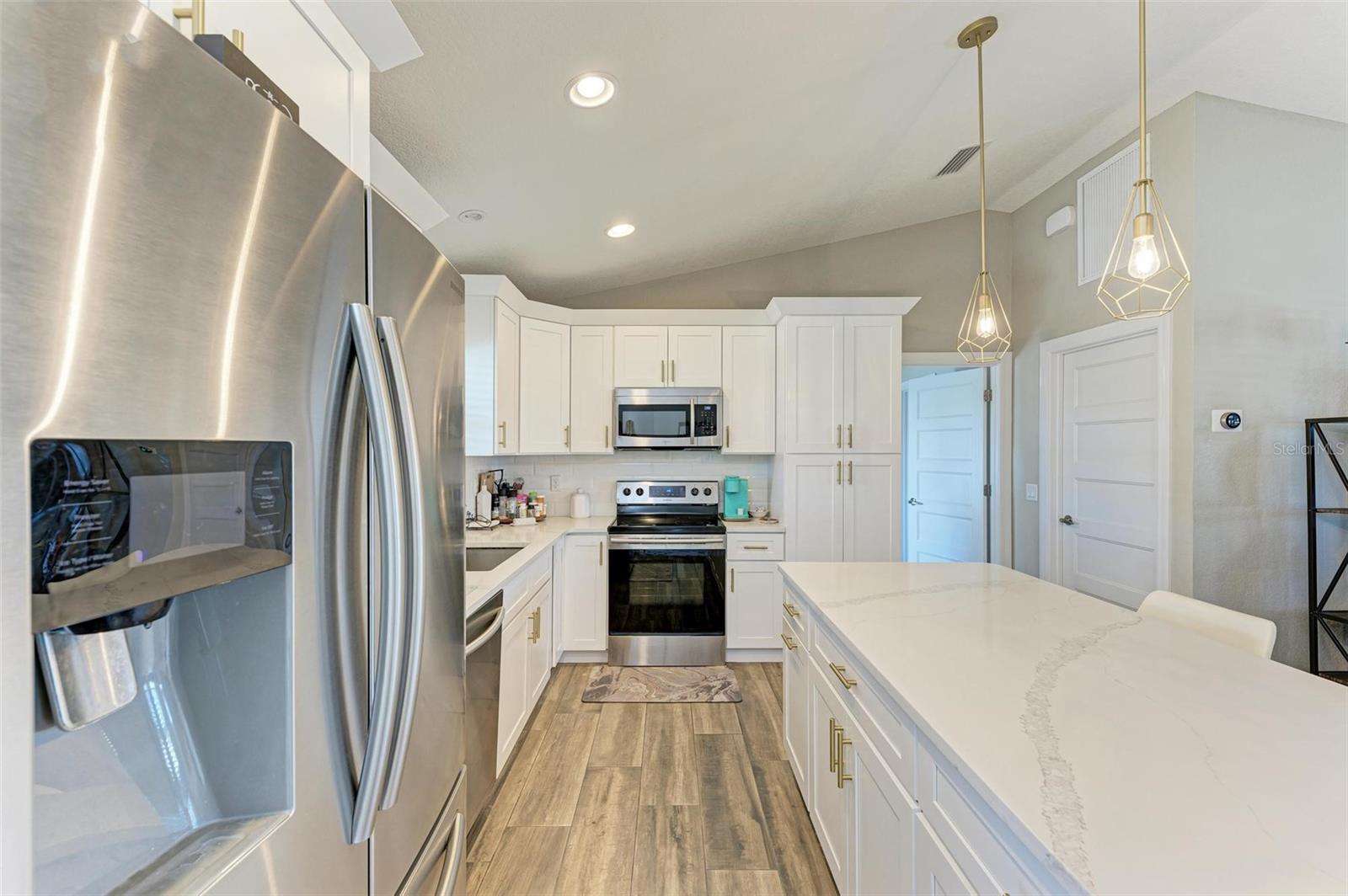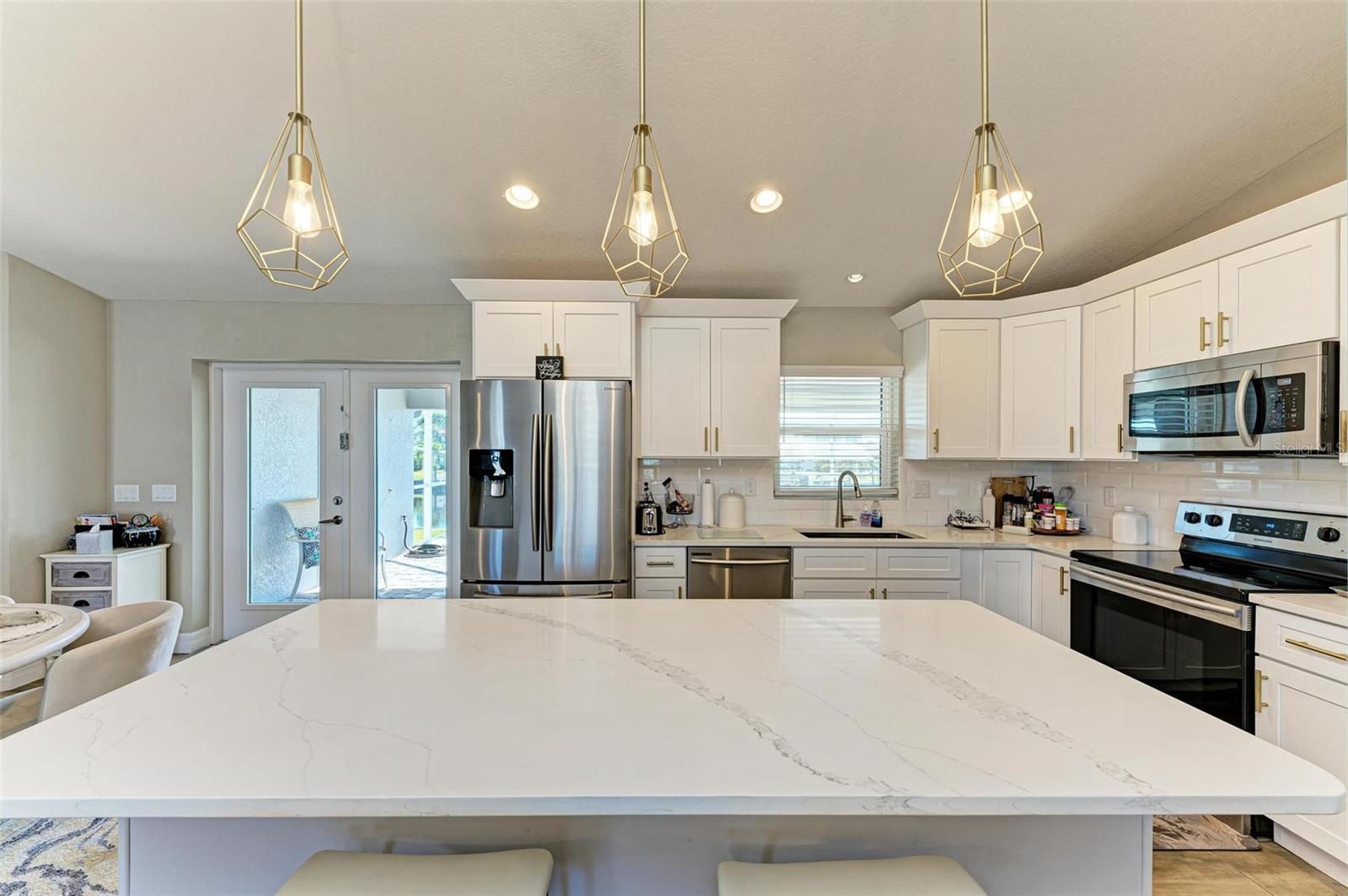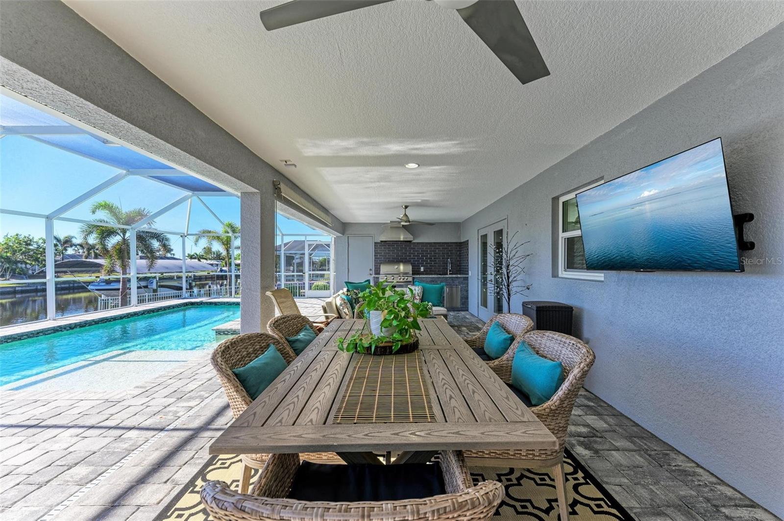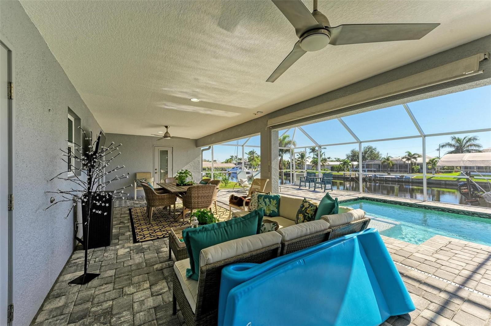 This exquisite home, built in 2019, features THREE GENEROUSLY SIZED BEDROOMS and TWO BATHROOMS with a DEN/OFFICE, complemented by a HEATED POOL and beautiful SUMMER KITCHEN. Boaters will enjoy easy access to Charlotte Harbor via DEEP WATER SAILBOAT ACCESS that takes you to open water in JUST 5 MINUTES. So, bring your boat and tie off to the 45-FOOT CONCRETE DOCK equipped with a COVERED 10,000-POUND BOAT LIFT. The exterior is fitted with IMPACT-RESISTANT WINDOWS AND DOORS for added safety and efficiency. Inside, the large primary bedroom features TWO WALK-IN CLOSETS and access directly to the pool deck with a lavish primary bathroom that includes a WALK-IN SHOWER AND A FREESTANDING TUB for relaxation. Each guest bedroom is generously sized and boasts a walk-in closet. While the guest bathroom doubles as a pool bath and is equipped with a TILED-WALL SHOWER/TUB COMBO AND QUARTZ COUNTERTOP VANITY. The well-situated kitchen has NEWER APPLIANCES, STUNNING QUARTZ COUNTERTOPS, and a LARGE ISLAND, perfect for meal preparation and hosting guests. The expansive pool deck offers an abundance of shaded space under the COVERED PATIO, along with plenty of room around the pool to enjoy all day SOUTHERN EXPOSURE sunshine and amazing sunsets. The pool features a PEBBLE TECH SURFACE and includes a SUN SHELF, ideal for lounging right in the water. This area is perfect for both relaxation and entertainment, making it an ideal spot to unwind with family and friends. A spacious CIRCULAR PAVED DRIVEWAY ensures convenient entry and exit to the 2-car garage. NO FLOODING from the last storms and Just minutes away from DOWNTOWN PUNTA GORDA, this location can’t get any better.