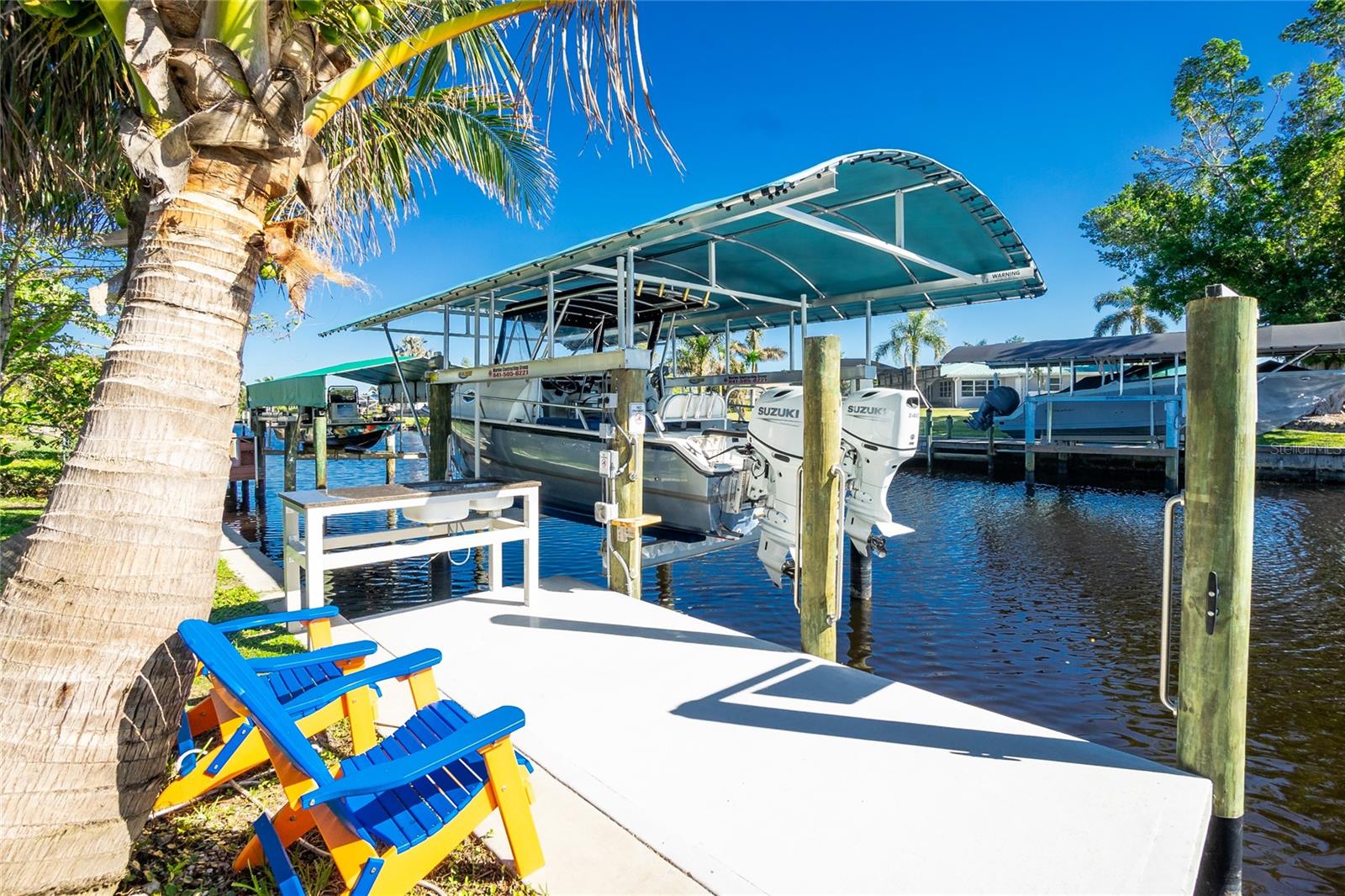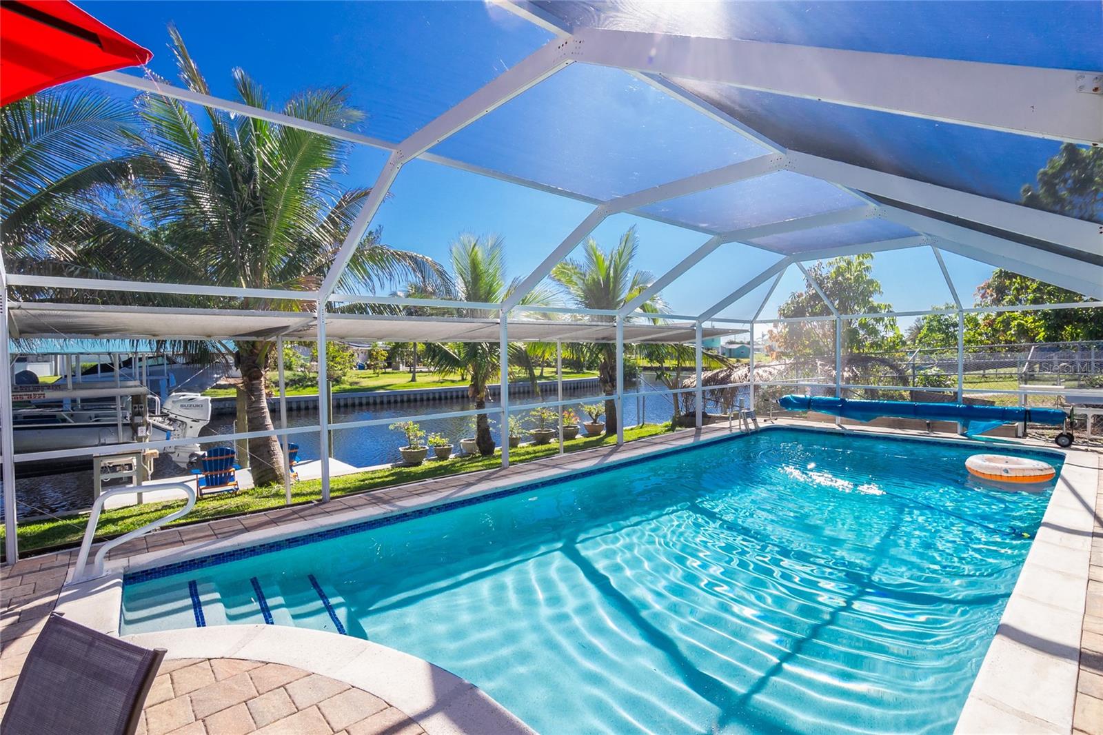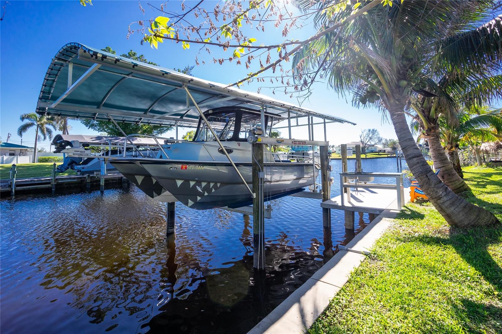 Price Adjustment! This stunning waterfront home is now priced at $540,000, a $45,000 savings! TO ALL BOATERS!!! Don't miss this amazing opportunity to experience the epitome of Florida waterfront living. This Fully Renovated*WATERFRONT HOME IN PORT CHARLOTTE W/80 FEET OF NEW CONCRETE SEAWALL & QUICK BOATING ACCESS TO CHARLOTTE HARBOR*. *GULF ACCESS*. *NO FLOOD*. NO WATER INTRUSION FROM EITHER HURRICANE HELENE OR MILTON. This property is a true waterfront paradise with its impressive features and unbeatable location. The home boasts a prime location with both harbor and gulf access. With only one fixed bridge in the vicinity, you have convenient access to the open waters without any major obstructions. You're just a 10-minute boat ride away from the pristine waters of Charlotte Harbor, offering endless opportunities for a great day of fun in the sun, fishing, or just relaxing on the water. With 3 bedrooms and 2 bathrooms, this home offers comfortable living for you and your family. The home features a new metal roof (2023), a Newer Seawall (2019), a New 2024 Concrete boat dock outfitted with a 10000 lb lift with cover for the fisherman or boater, and a relatively newer HVAC system. The open-concept kitchen and family room combo create a warm and inviting atmosphere, perfect for entertaining. Step out onto your enclosed spacious lanai and large pool with an extended sundeck and newer brick pavers, where you can take in breathtaking views after a relaxing swim, entertain guests, or unwind in your private oasis. Impact doors and windows are installed for added peace of mind during storm season. This property is centrally located in Port Charlotte, offering easy access to shopping, dining, and local amenities. You're never far from everything you need. Don't miss this incredible opportunity to own a waterfront home. Immerse yourself in the Southwest Florida lifestyle, where every day feels like a vacation. Schedule a viewing today and make this waterfront dream your reality!
