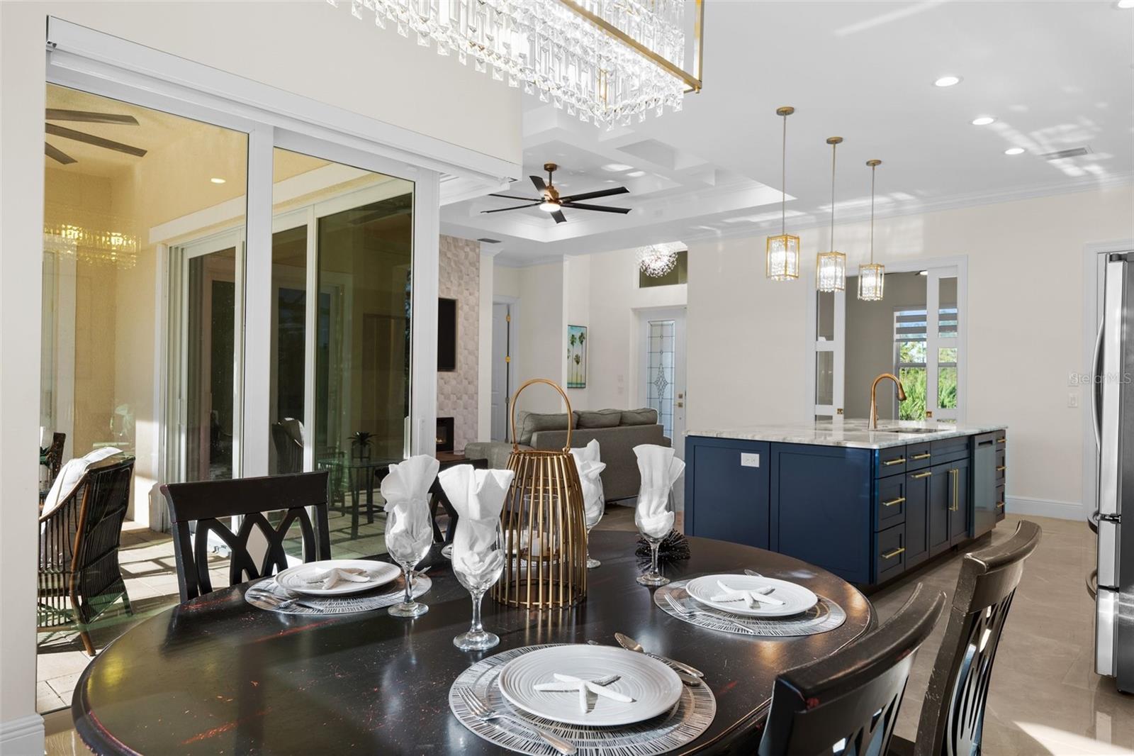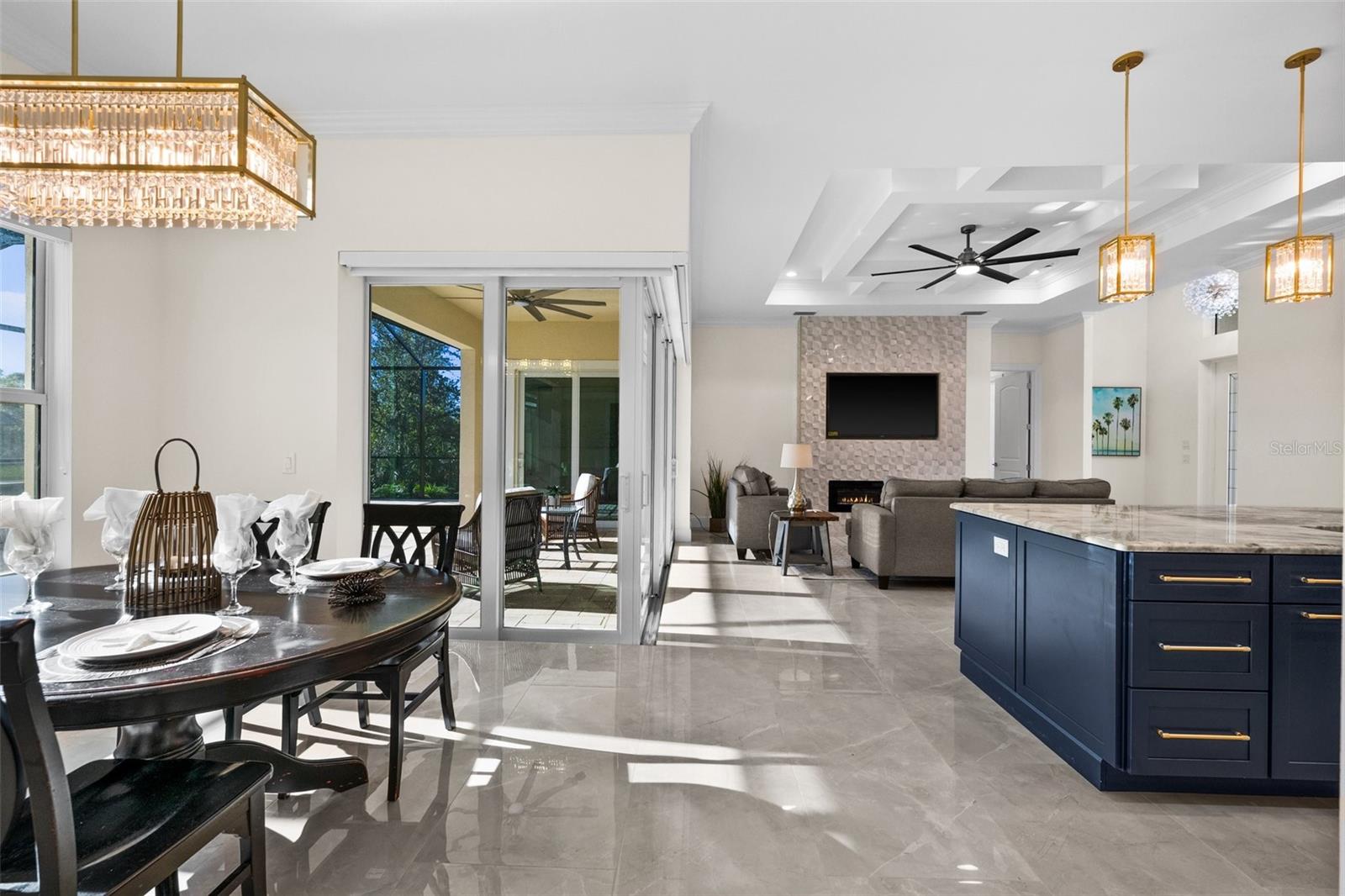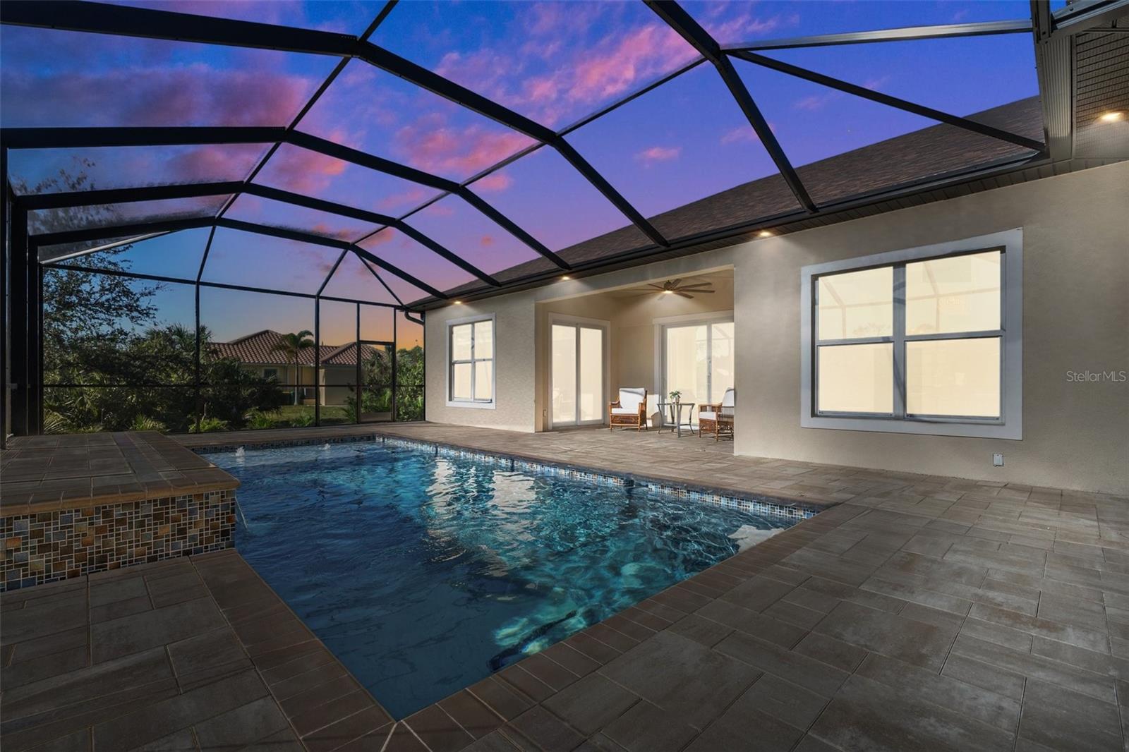 STUNNING 2024 WATERFRONT 3 Bedroom, 2 Bathroom, 2 Car Garage, Pool home with a Den and a PRIVATE Dock located in South Gulf Cove. CLICK ON THE VIRTUAL TOUR LINK 1 FOR THE VIDEO AND VIRTUAL LINK 2 FOR THE 3D TOUR. This beautiful home features a bright & open floor plan, Porcelain tile flooring throughout, crown molding, recessed & pendant lighting, tray & coffered ceilings, and SO MUCH MORE! Host unforgettable gatherings with an open living room with a large ZERO CORNER slider to the lanai BEAUTIFUL water views, and an electric fireplace. A GOURMET kitchen offers ALL Stainless-steel appliances, granite countertops, a tiled backsplash, an island with a breakfast bar, a cabinet pantry, and an off-kitchen dining room with water views. The spacious master bedroom has GORGEOUS water views, a tray ceiling, a glass slider to the lanai, HIS & HERS walk-in closets, and a private en-suite bathroom with a dual sink vanity, Roman ALL tile walk-in shower with dual shower heads, and a linen & water closet. The guest bedrooms are on a split floor plan providing plenty of privacy with built-in closets and a shared guest bathroom with lanai access nearby. The den off the kitchen is perfect for a home office, media room or additional guest room. Expand your living and entertaining space to the lanai where you can sip your morning coffee or unwind with your favorite evening beverage while enjoying water views. Take a dip in your private pool with a Baja shelf or soak up the sun from the pool deck. Cast a line or set sail for endless water adventures from a private dock in your backyard. South Gulf Cove is a deed-restricted neighborhood with an optional HOA that offers members a clubhouse, waterfront park with playground, and private boat ramp. Conveniently located close to local shopping & boutiques, fine & casual dining, LIVE entertainment, and AWARD-WINNING BEACHES!! Schedule your showing TODAY!
