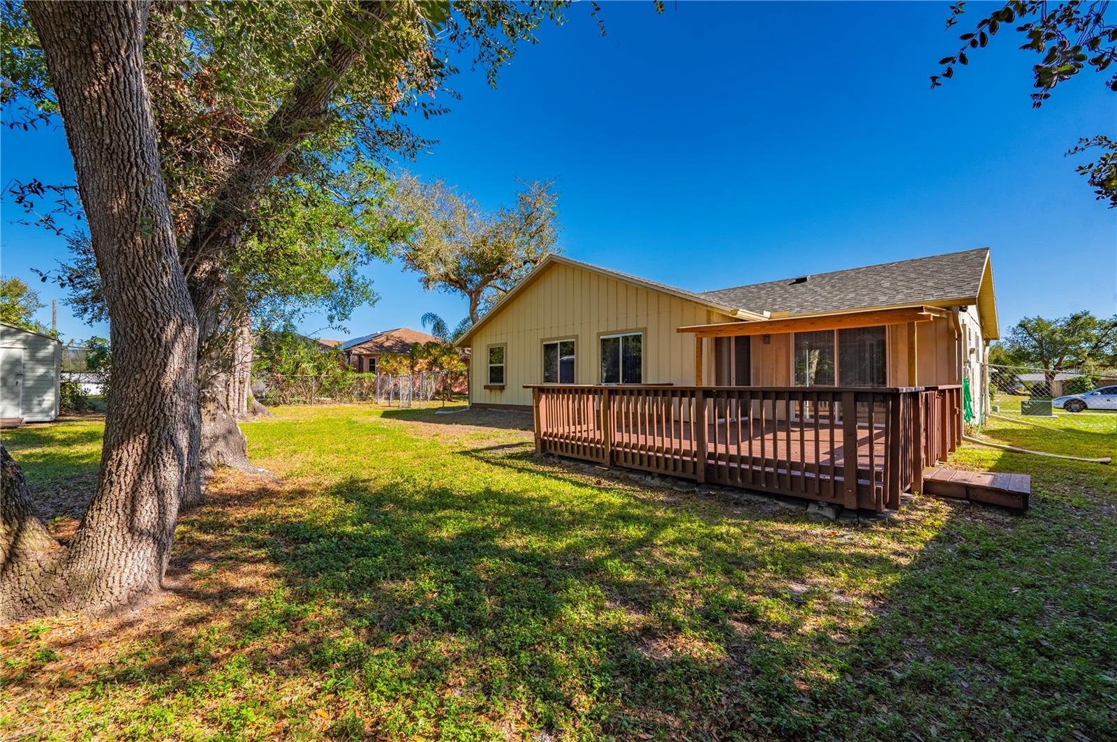 REDUCED!!Bright, Open, and Full of Potential—Your Perfect First Home or Investment Awaits! NO HOA AND FLOOD ZONE X! Step inside this 3-bedroom, 2-bathroom home that checks all the boxes for comfort, style, and convenience. From its open and airy layout to hard flooring throughout, this home offers everything you need for modern living. The updated kitchen boasts 42" cabinets, granite countertops, and stainless steel appliances, including a brand-new dishwasher (2024). An oversized utility room provides valuable extra storage space, adding to the home’s functionality. Outside, the fully fenced backyard is your private retreat. A large deck offers the perfect spot for entertaining or relaxing, while the utility shed ensures you have plenty of room for outdoor storage. With a newer roof (2022) and a bright, inviting interior, this home is move-in ready and packed with potential. Conveniently located near shopping, amenities, and with quick access to I-75, it’s the ideal property. Schedule your showing today!