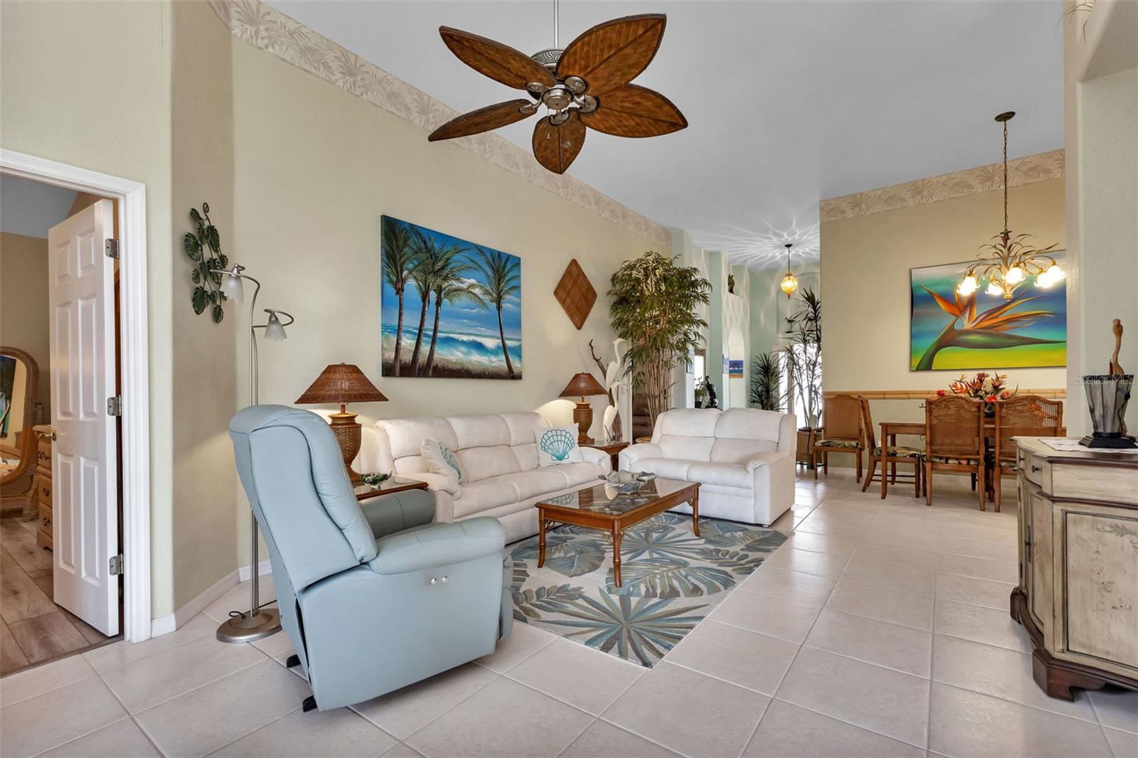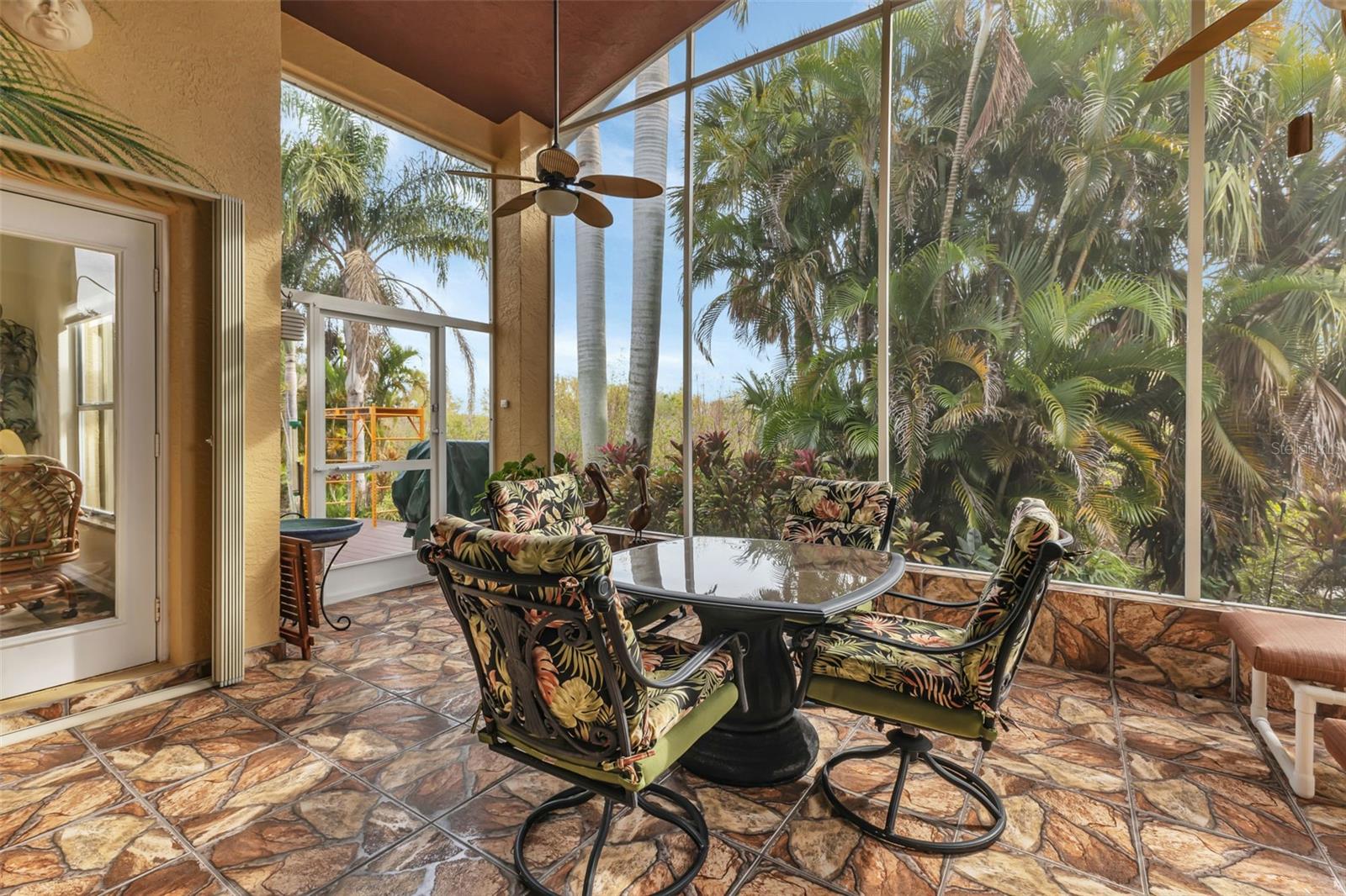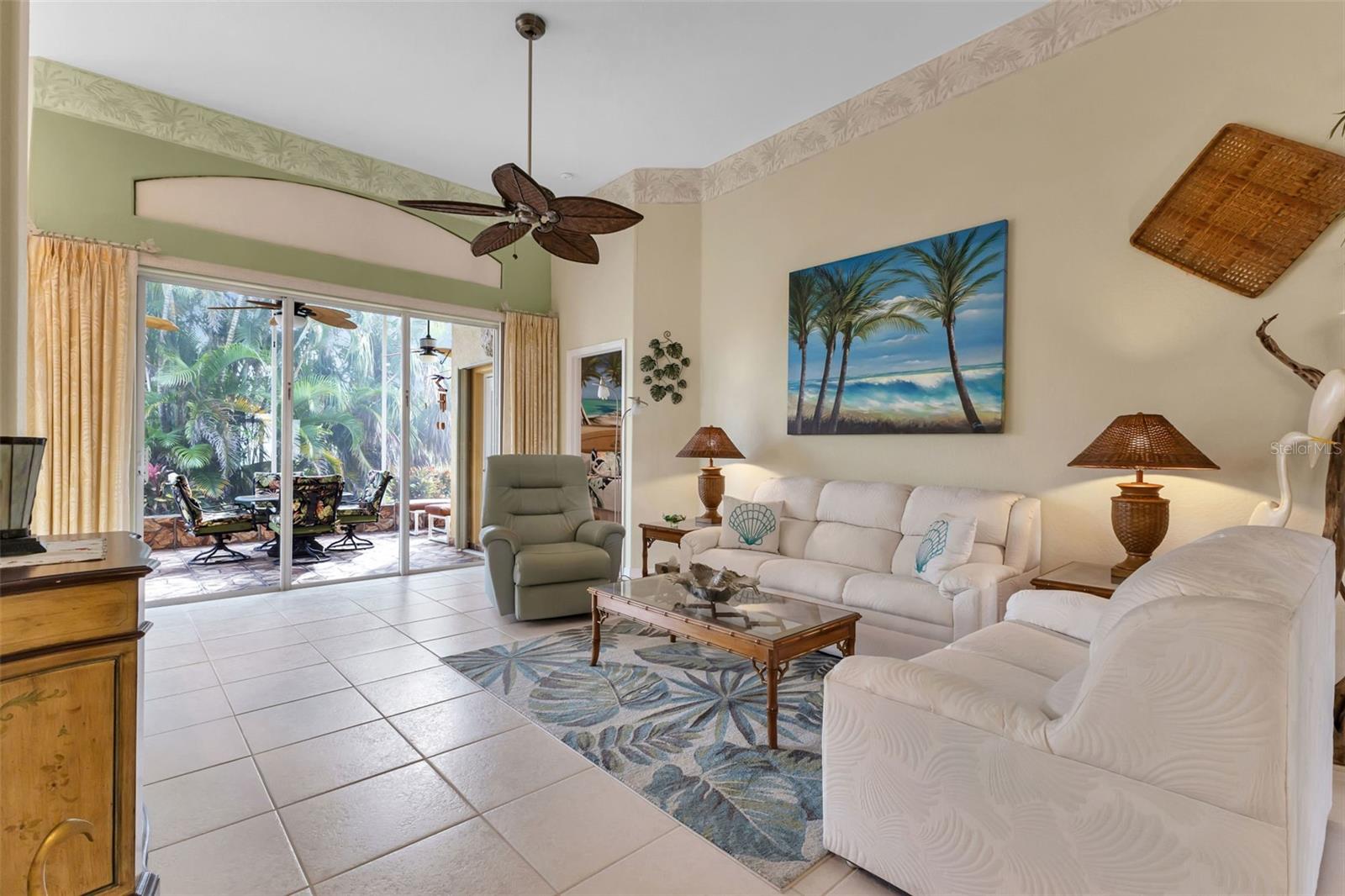 AWESOME ASHTON with AMAZING ZEN/PRIVATE Lanai in the gated golf course/resort of Kings Gate, a 55+ community that is more than 20 feet above sea level, has never had storm surge, NO FLOOD insurance required and in evacuation zone D (have never been under an evacuation order). This FULLY FURNISHED/TURNKEY house has an IMPRESSIVE amount of UPGRADES/UPDATES - including granite counters, pull out shelving upper & lower, stainless appliances, marble counter in master, marine decking around the lanai, decorative tile flooring in lanai, freshly landscaped, accordion shutters, 2022 ROOF and 2018 AC plus a finished floor in pull down attic for extra storage. WOW - all you have to do is enjoy the dream retirement. The LANAI is UNBELIEVABLE - with a tropical and private feeling created by the lush landscaping - it provides and incredible EXPERIENCE. And with the marine decking surrounding the lanai you can enjoy the Zen like atmosphere from within or just outside the lanai. Step into this Ashton - and you'll be greeted by towering 13 foot ceilings - providing a bright airy atmosphere and a spacious living room. Move into the kitchen and even the most demanding of chefs will smile at the abundance of cabinet and counter space and two sinks with one on the island. No question though - that ZEN like lanai is going to demand your attention and time. Relax or entertain in an environment that your friends/family aren't going to want to leave. And with the guest bedroom/bathroom in the front right of the house with the master in the back right of the house there is plenty of privacy for both you and your guests. And if you haven't been to Kings Gate before - you're going to love the options for activity (Olympic size heated swimming pool and spa, tennis courts, PICKLE BALL, lawn bowling, shuffle board, bocce, horseshoes, gym, billiards, library, euchre, bingo, bridge, Texas hold em, poker, mahjong and more). The onsite Lions Den restaurant and bar is super convenient and also offers Tuesday night Karaoke and monthly trivia contests. Many residents love the fact that they are just a golf cart ride away from the Winn Dixie shopping plaza that provides you access to grocery store, drug store, bank, restaurants and shopping. Want to explore outside of Kings Gate - your minutes away from the restaurants and shops of downtown Punta Gorda and Fisherman's village - and even closer to the newly opened Sunseeker resort. And if you want to explore more of Florida's fun spots you’re near I75 to quickly head north or south. An AMAZINMG home with an UNREAL LANAI and tons of updates in a PREMIER gated community is a must see. Call today for a private showing and a golf cart tour of the community/amenities.