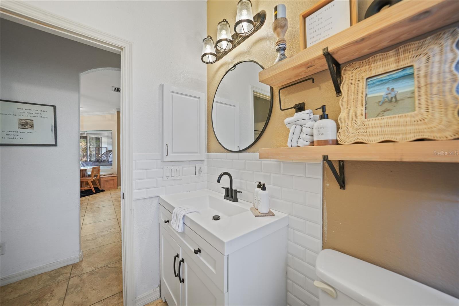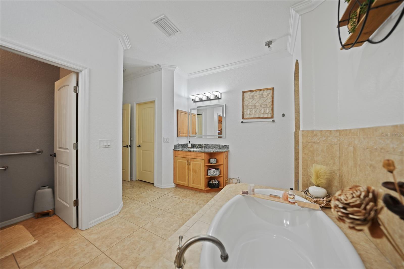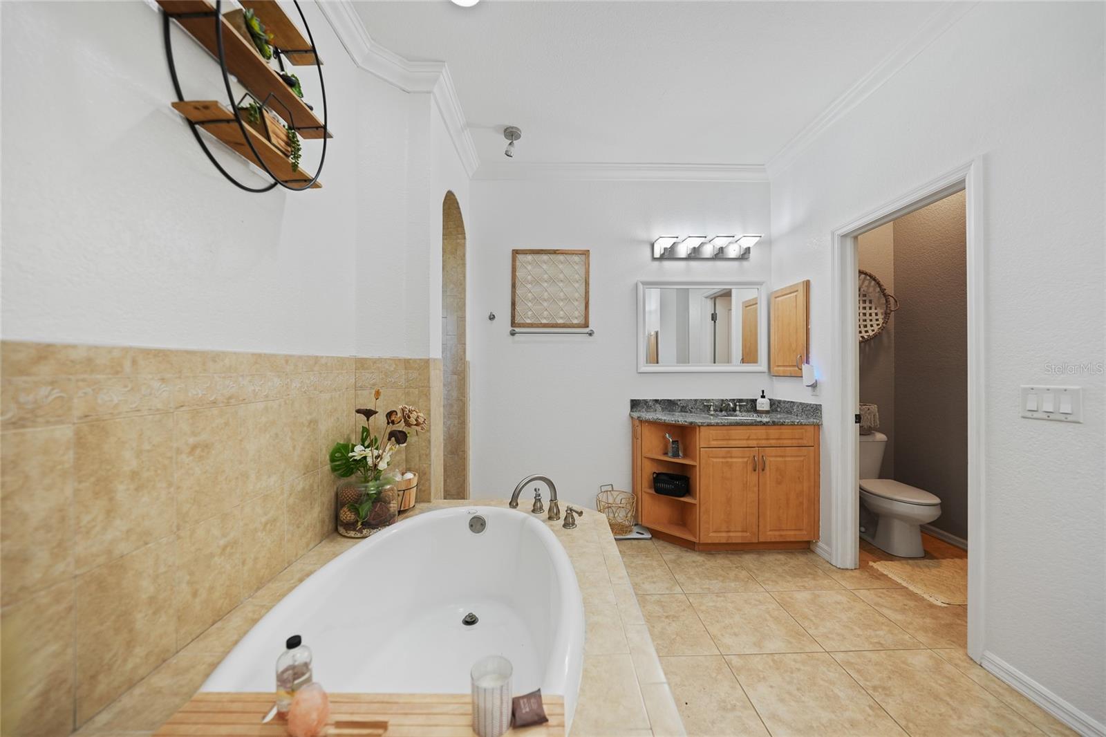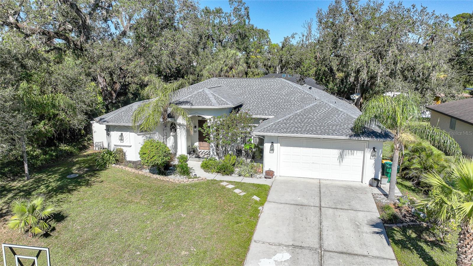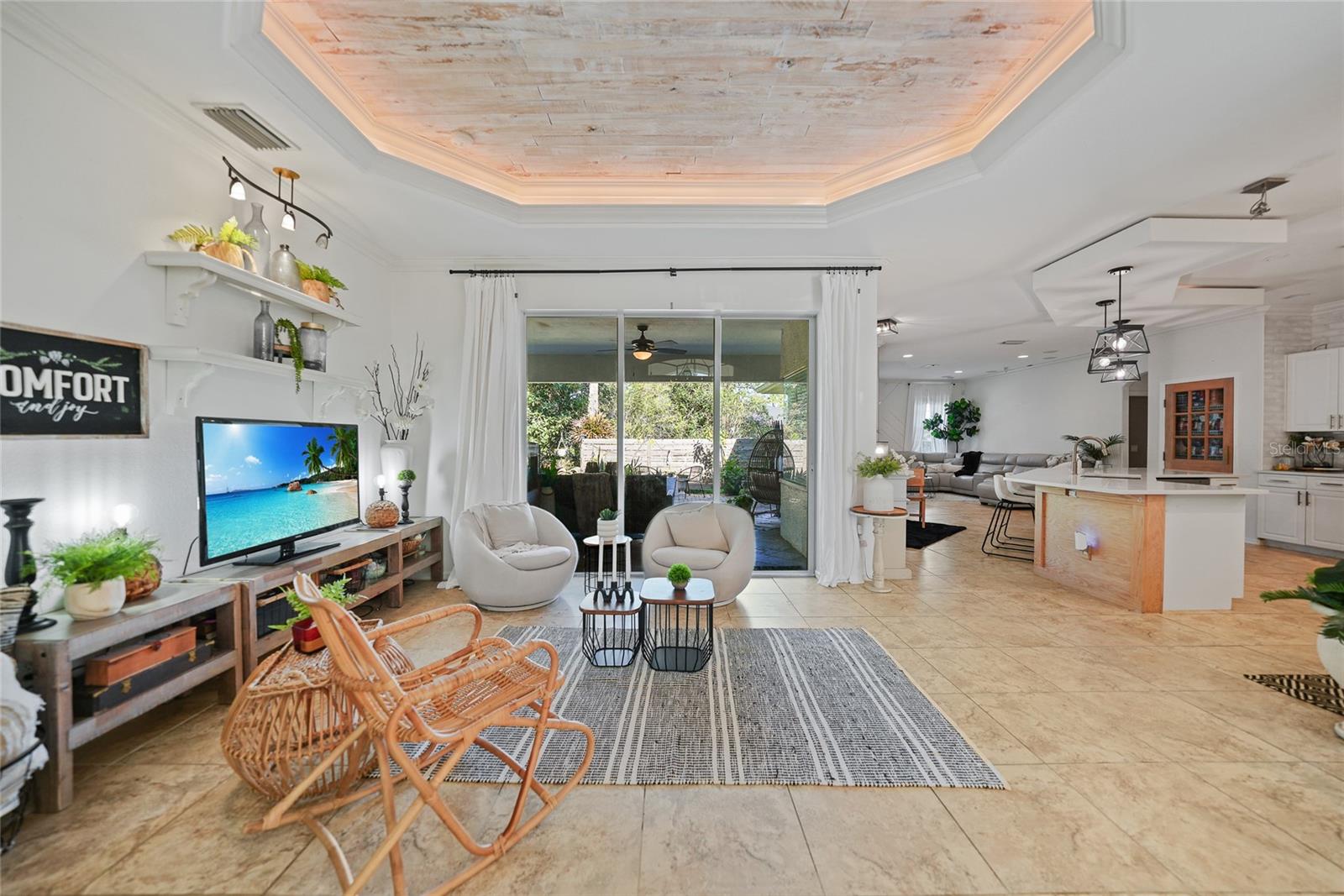 This stunning home captivates from the moment you arrive. The elegant design features a stately columned, brick-paved entryway, complemented by a magnificent solid wood double-door entrance and upgraded exterior lighting with a NEW ROOF as of 2023. Step inside, and the extraordinary details continue to impress. The soaring volume ceiling in the foyer sets the stage, showcasing interior columns, tray ceilings with accent lighting, a dramatic backlit reverse tray ceiling, and a combination of recessed, pendant, and track lighting. Additional architectural touches include a frameless breakfast nook window, pre-wired built-in speakers, built-in nooks, integrated plant shelves, and rounded bull-nose corners—all meticulously crafted for a luxurious feel. A show-stopping glass-enclosed wine cellar adds a modern flair and is perfectly positioned near the gourmet kitchen and dining room for effortless entertaining. The upgraded kitchen is a chef’s dream, complete with stainless steel appliances, quartz countertops, raised-panel cabinetry, and bar seating. The spacious master suite is a retreat of its own, featuring separate his-and-her walk-in closets, a spa-like bathroom with a walk-through double-head shower, a Roman tub, dual sinks, and a private water closet. The guest bathroom has also been renovated to give a more modern feel. Step outside to the brick-paved rear lanai, where lush foliage and a semi-private setting create the perfect backdrop for relaxation or entertaining. Every detail of this home has been thoughtfully designed to leave you in awe. Current owners would consider including furnishings for the right price! Don’t miss the opportunity to experience it for yourself—schedule your private showing today before it’s gone!