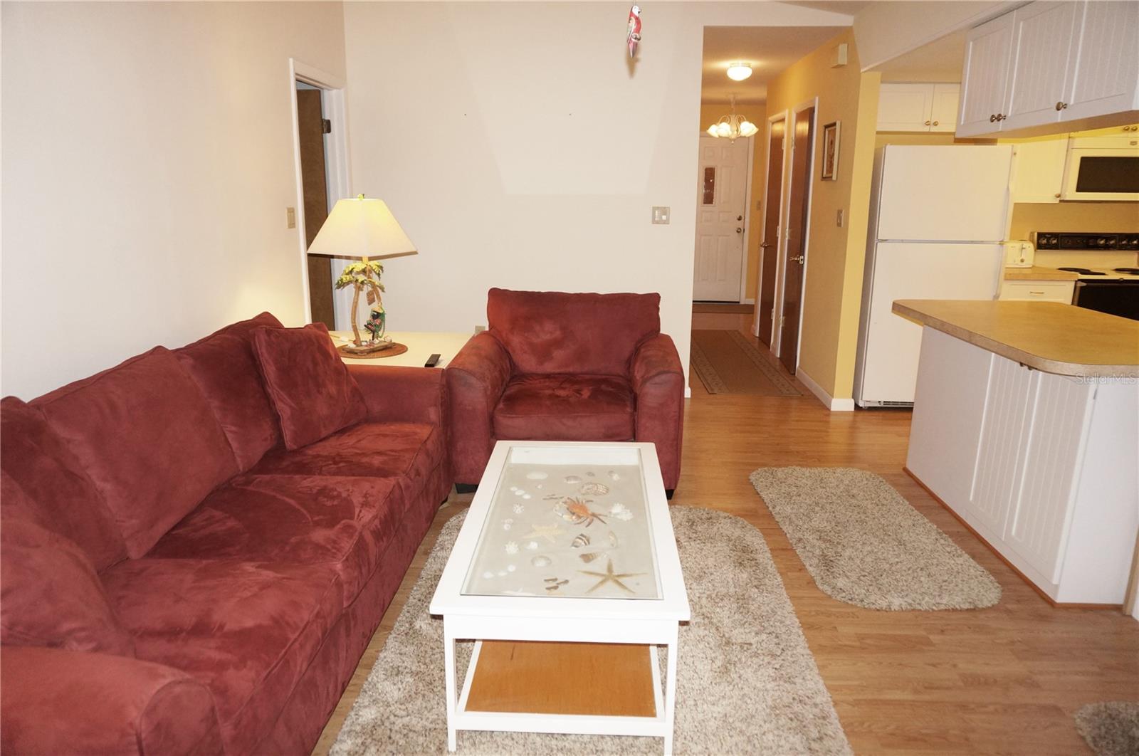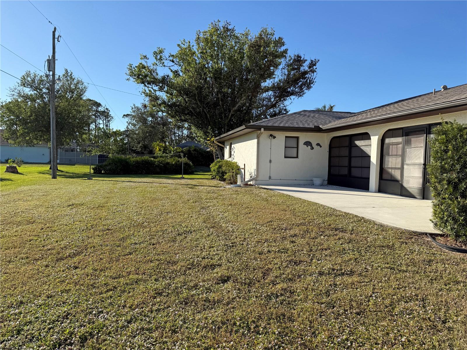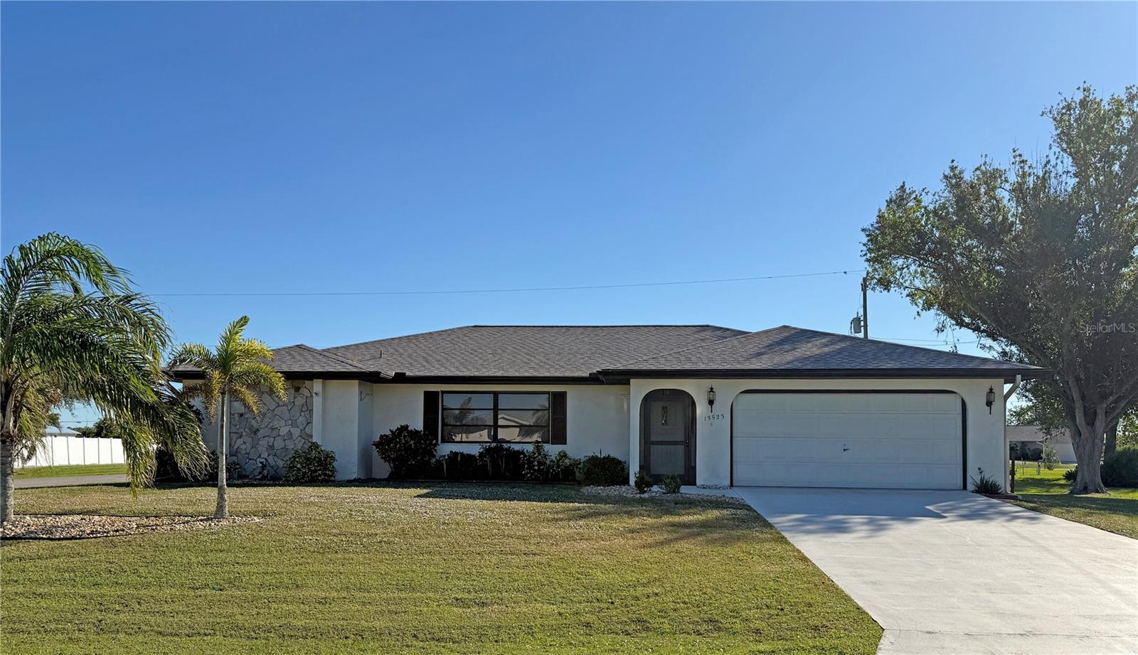 Spacious 3 Bedroom, 2 full Bathroom * FURNISHED* home with attached 2 Car Garage situated on a large corner lot in the desirable community of GULF COVE. This impressive home offers an open and split bedroom floor plan with Living Room, Dining Room, Family Room, well equipped Kitchen, Inside Laundry and 34 x 9 Lanai with screens, vinyl windows and diagonal lay Mexican tile flooring. The Living Room features laminate flooring and cathedral ceiling. The Dining Room offers laminate floors and lanai access. The Family room is just beyond the Kitchen and features laminate flooring, lanai access and vaulted ceiling. The Kitchen has white wood cabinetry, laminate floor, great storage and counter space, double sink and pass thru to the Lanai. Appliances include refrigerator, oven/range, built in microwave and dishwasher. The Inside Laundry has a washer, dryer, cabinets, laundry tub and tile floor. The spacious Master Bedroom has a large walk in closet and private bathroom with dual sinks and walk in shower. There are two generous sized guest bedrooms, one with two double closets. All bedrooms have carpet. The guest bathroom has a tub/shower combo. Your living space extends to the enclosed Lanai and from there to a good sized patio. Other features include rain gutters, screened front entry. Workbench, cabinets and garage door opener in the garage. Utilities are public water and septic. *NEW ROOF 2022.....NEW A/C 2018* Gulf Cove POA membership dues are optional. POGC membership dues are $75 per year and afford you access to their private waterfront park and playground for your personal use throughout the year.....From their private boat ramp you have direct boating access to Charlotte Harbor and the Gulf of Mexico. Your yearly purchase of a $75 boat ramp decal provides you boat ramp access and on-site parking. Social Events are held at the Gulf Cove private park with new park benches, new playground and new grill. This home is close to shopping, dining, entertainment, golf and boating. This is a wonderful home for those expecting winter visitors.