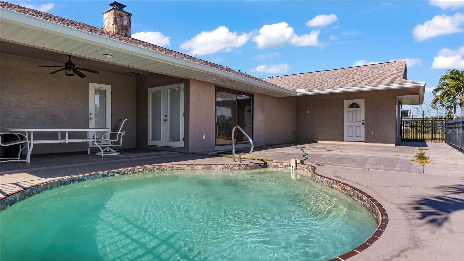 Exceptional Waterfront Living at Its Finest! Start generating income from day one with this beautifully furnished, turnkey home. This stunning property offers everything you’ve been searching for and more. Step inside to a spacious great room featuring a cozy fireplace, seamlessly connected to a formal dining room with an elegant tray ceiling—perfect for entertaining. The open-concept kitchen boasts stainless steel appliances, a breakfast bar, and plenty of space for both casual meals and hosting gatherings. French doors lead to your private outdoor oasis, complete with a heated pool, spacious patio, and breathtaking views of the canal and majestic royal palm trees. The tile floors throughout the home are perfect for pet owners. This thoughtfully designed home features 4 bedrooms, including one of the rooms has a separate entrance and private bath. The master suite overlooking the tranquil canal, offers serene water views, a walk-in closet, and a luxurious en-suite bath. Two additional bedrooms share a beautifully appointed bath, and all rooms come with generous walk-in closets for ample storage. Convenience is key, with an indoor laundry room and an oversized 21' x 22' side-entry garage complete with a workbench, sink, and expansive attic space for additional storage. Need space for your RV or travel trailer? The property features a 50-amp charging station, and the yard is fully fenced for extra privacy. A heavy-duty storage shed provides plenty of room for all your outdoor equipment. Plus, with a new roof installed in 2021, peace of mind is included. While the home is currently on city water and septic, a sewer line is already in place for future connection. This property must be sold with the adjacent 80' x 125' lot MLS# C7501508 for even more potential! Don't miss your chance to see this exceptional waterfront home. Schedule your private showing today!
