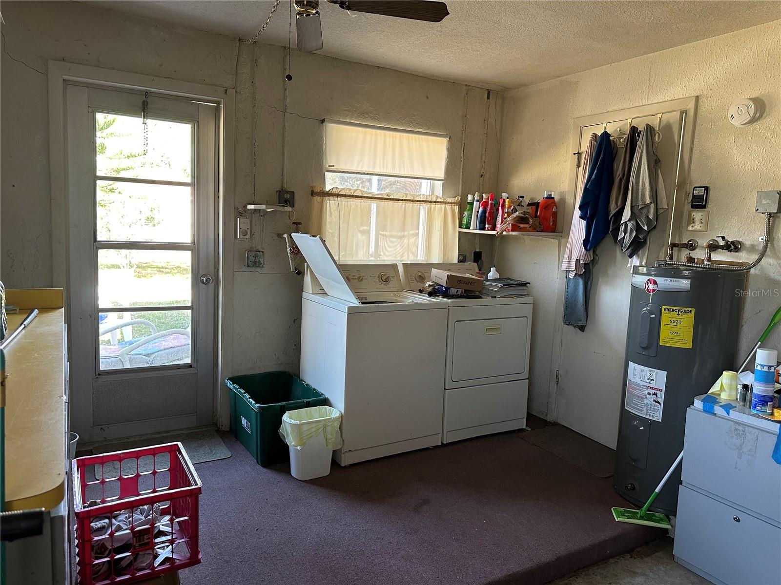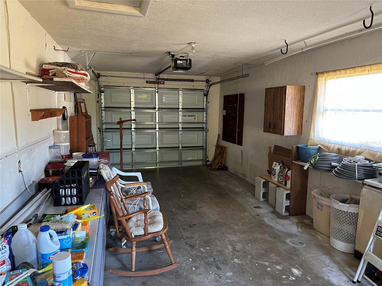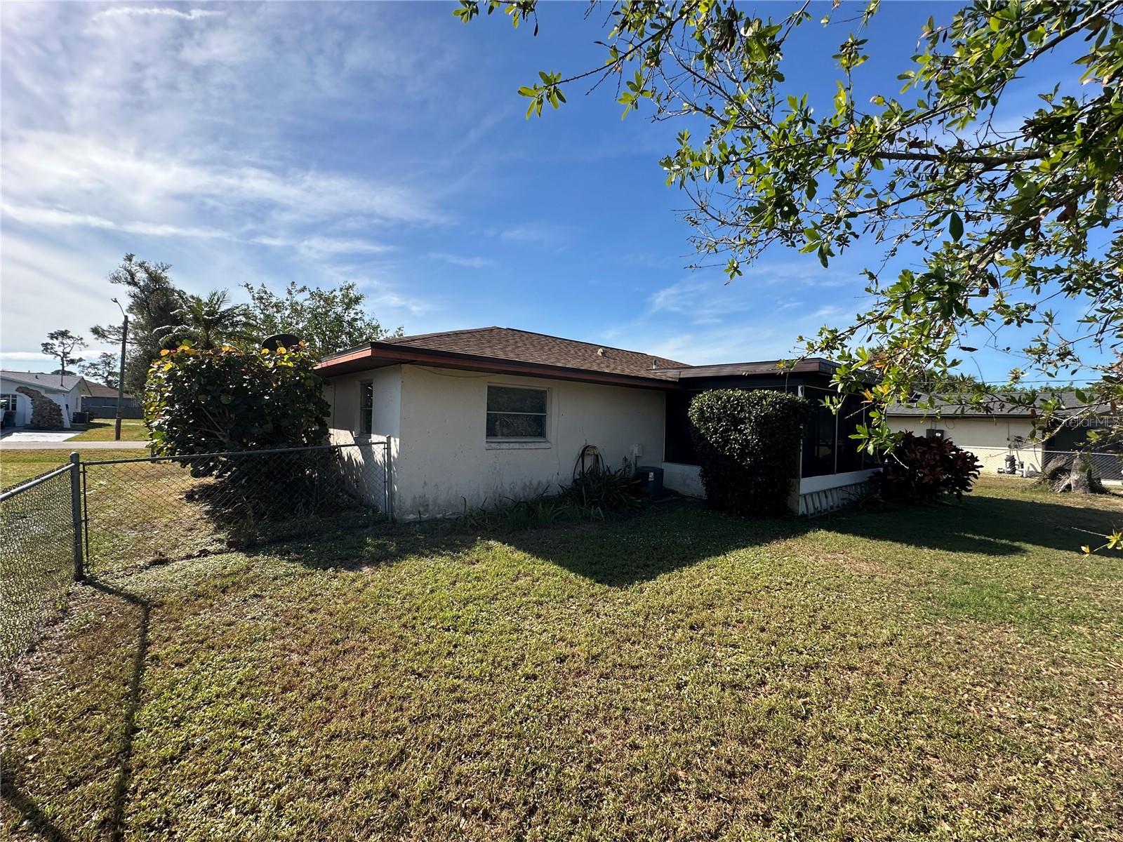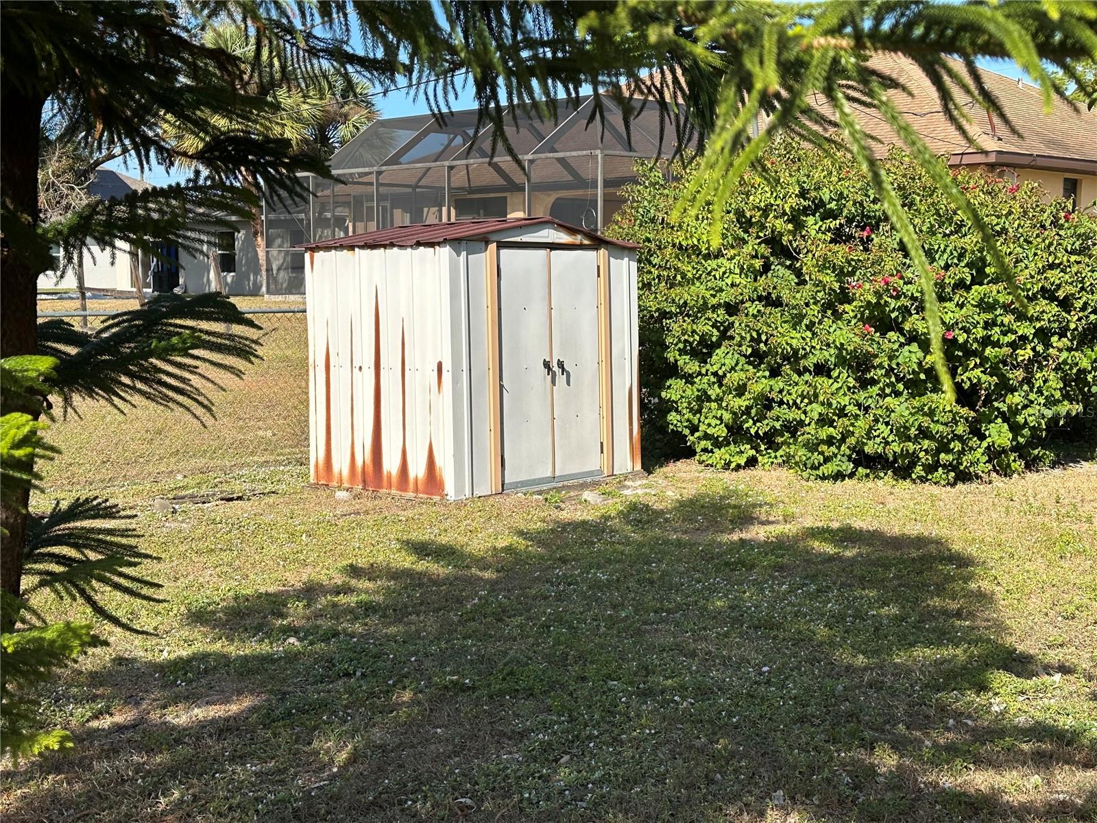 Welcome to your new home! This open floorplan 2-bedroom residence offers comfortable living with a lovely fenced backyard setting. Located in a pleasant neighborhood with public water, there are no deed restrictions or homeowners association fees to deal with. Tile flooring throughout the living areas makes cleaning easier with your Florida lifestyle. The bedrooms are a bit cozier with neutral colored carpets. A large front window and the pocket sliding glass doors allow ample sunlight to brighten the living areas. A nice-sized window over the kitchen sink, with a pass through counter, takes advantage of the serene backyard view. The washer, dryer, and utility sink are all located by the garage entry door and are included with the home. Both bedrooms are a nice size, with built-in closets and ceiling fans. The bathroom has a tub/shower combo with glass doors and a wide countertop. Roof - 2022, Garage Door - 2021, A/C - 2005, Water Heater - 2014. This house is built with durable concrete block construction, and is not located in a flood zone, making insurance more affordable. A covered, screened-in front porch is perfect for all of those package deliveries! The private backyard offers a peaceful retreat, with a screen enclosed lanai with glass windows, making it a great place to relax all year long. A metal shed out back will provide some extra needed storage space. With an attached one-car garage for storage and parking, this home could be exactly what you are looking for. Conveniently located and close to everything... a very short distance to many shopping, dining, entertainment, and outdoor recreation areas. The new and popular CoolToday Park and Wellen Park areas are less than 20 miles away. Additionally, plenty of public boat launches and beaches are within a short drive, so you can pick and choose where you want to play, relax, swim, and/or fish for the day! Schedule a viewing today and see if this home is the right fit for you!