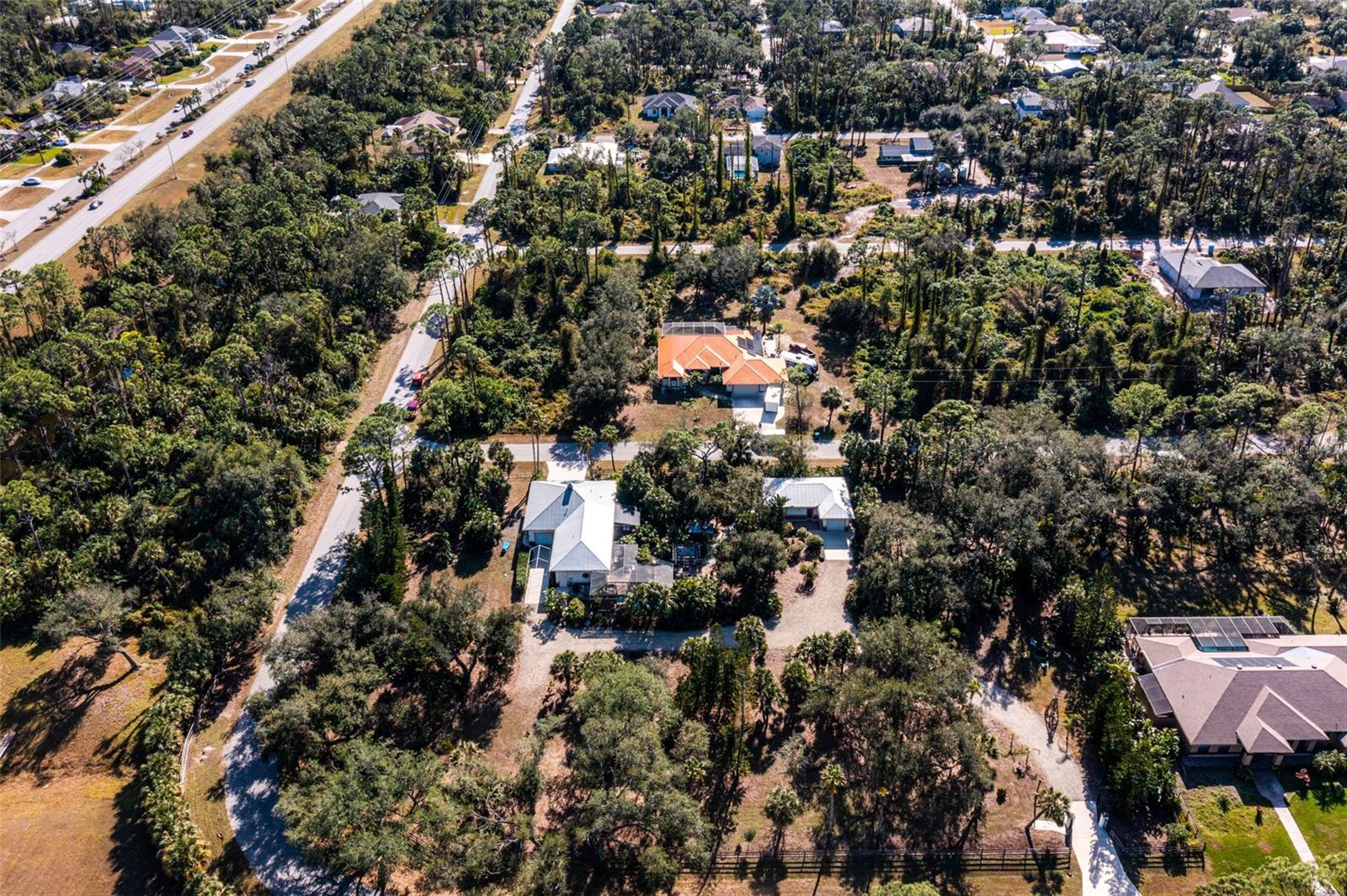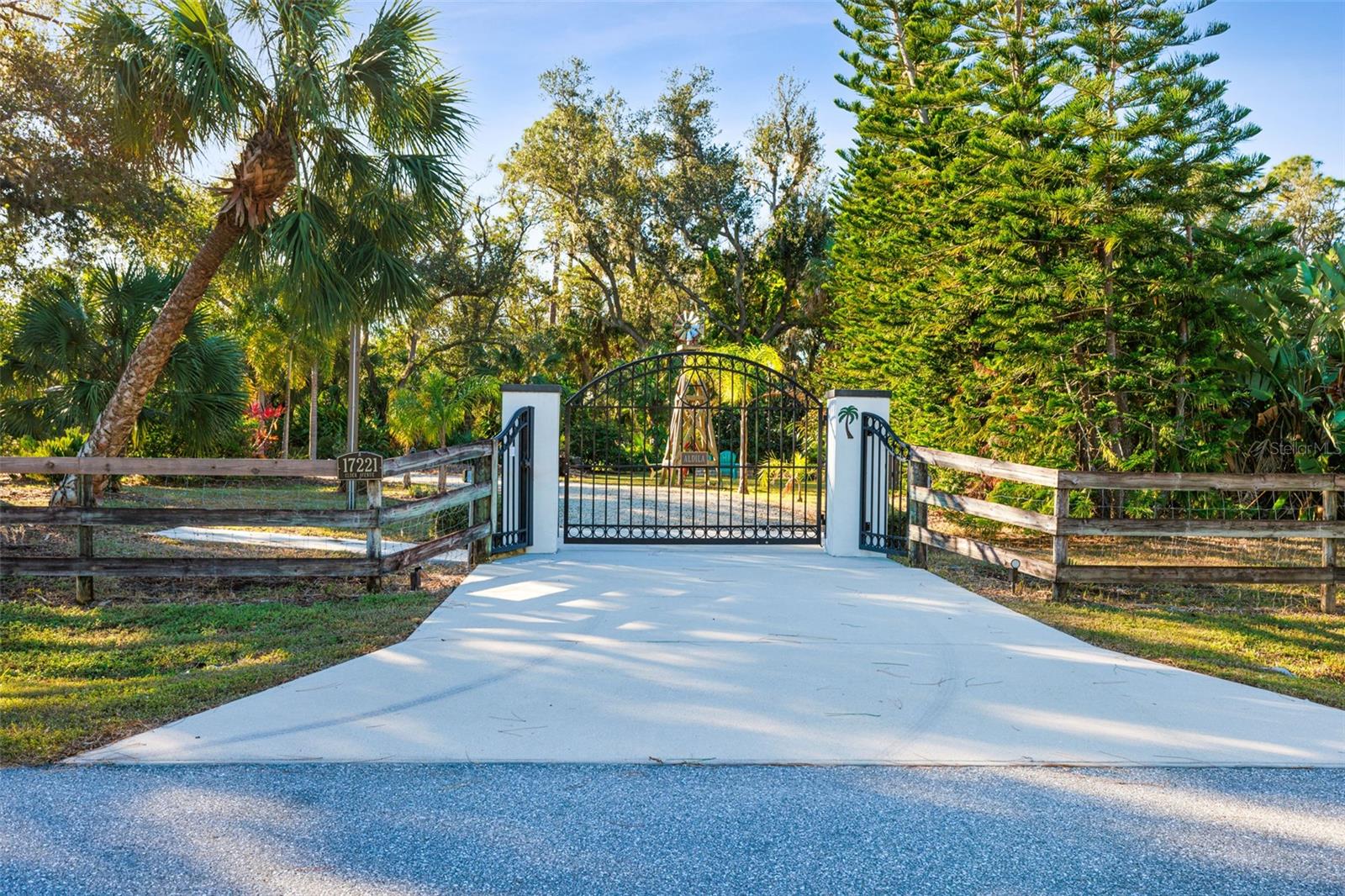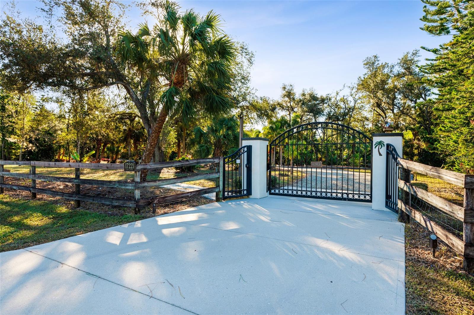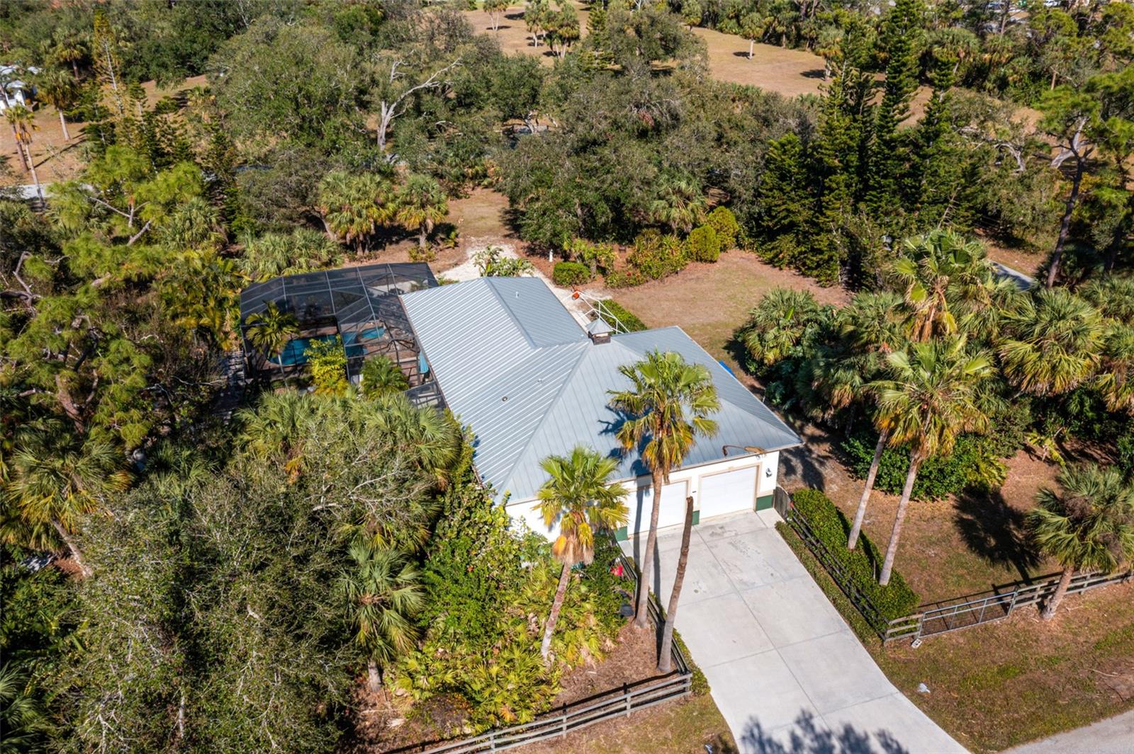 Resort-Style Living on Nearly 2 Acres of Tropical Paradise! Welcome to your private sanctuary, offering the best of luxury and practicality. This custom-built property is surrounded by lush, mature palms and tropical landscaping, fully fenced for security and accessed via a private entry gate. The resort style estate includes a main home with 2 car tandem garage and a separate detached guest apt with 1 car garage perfectly designed for privacy, entertaining, and versatile living. Spacious Design: Open floor plan featuring a living room, dining room, and bright office/den with custom wood cabinetry. • 2 Bedrooms & 2 Baths: • Master suite with lighted tray ceiling, sliders to the pool, custom walk-in closet, and a marble-and-granite bathroom featuring a dual-head walk-in shower, soaking tub, and double vanity. • Split-plan second bedroom with easy access to the second full bathroom. • Gourmet Kitchen: • Thomasville 42” cabinets with pull-out drawers, stainless steel appliances, large pantry, and tube skylight for natural lighting. • High-Quality Features:• 12’ ceilings with crown molding. • Hurricane-impact windows and sliders. • Metal roof, insulated block construction, and underground utilities. • deep artesian well with updated equipment (2020). • Security camera system and exterior lighting. Outdoor Oasis: • Heated Saltwater Pool: Grotto spa, waterfall, and sundeck with pavers, all enclosed within a screened lanai. • Outdoor Kitchen & Bar: • Wood-burning pizza oven, stainless-steel grill, sink, refrigerator, storage, and Dekton countertops. • Herb garden and adjacent custom pergola with lighting and fan. • Additional screened in pavers patio by front entry. Separate Guest Suite/Building (Built in 2014) • 940 sq. ft. of Possibilities: • Living area w/French Doors accessing a private patio, a kitchenette, bedroom, full bathroom including marble shower, wet bar, laundry and garage. • Metal roof, 10’ ceilings, foam insulation, and its own septic and electric meter. • Private entrance, fully air-conditioned perfect for a guests, workshop, office, or recreational space. • Pathways to pool, tiki bar, outdoor kitchen & beautiful grounds. Additional Highlights: • Main Home Garage: Tandem setup, 38 ft in length with a 7,000 lb asymmetric auto lift and separate electric meter and an air-conditioned storage room off garage ideal for your Harley Davidson room. • Extras: • 5HP Dayton commercial compressor. • Car canopy. • Tiki bar, fire pit, windmill, and garden arbor, New A/C installed Nov 2024 with 12 yr transferrable warranty • Parking: Ample space for RVs with electric & water with compressor, boats & trailers. The Rear of property faces South and it backs up to Fallkirk Ave for additional rear parking and rear gate access and the front of the property enters on Elder Ave with private gate access. Convenient Location: • Only 3 miles from major retailers, dining, and Port Charlotte Town Center. • Minutes from medical offices, three hospitals (including a VA Clinic), and I-75. • Located in FEMA Zone X, reducing the need for flood insurance. This property is an entertainer’s dream and a private haven. With no HOA and endless possibilities for both the main home and separate building on nearly 2 private acres of true beloved tropical botanical gardens with birds and butterflies, while living close to nature, it offers a rare combination of resort-style living and practical versatility. Please see the two picture tours linked including floor plans