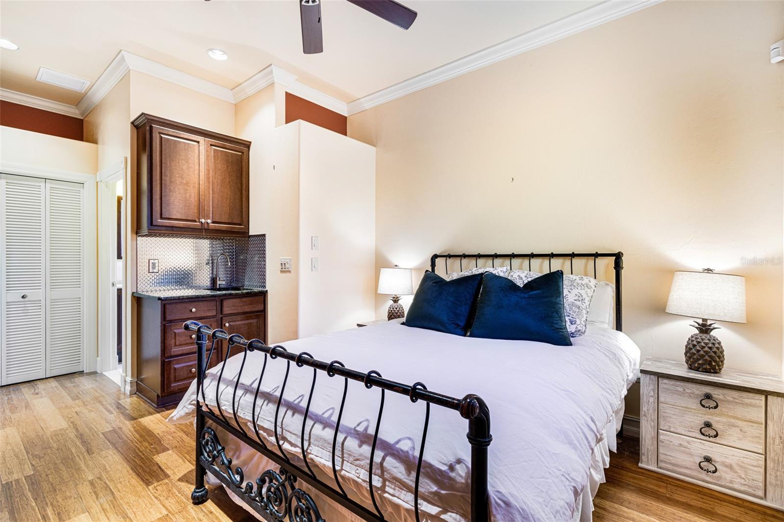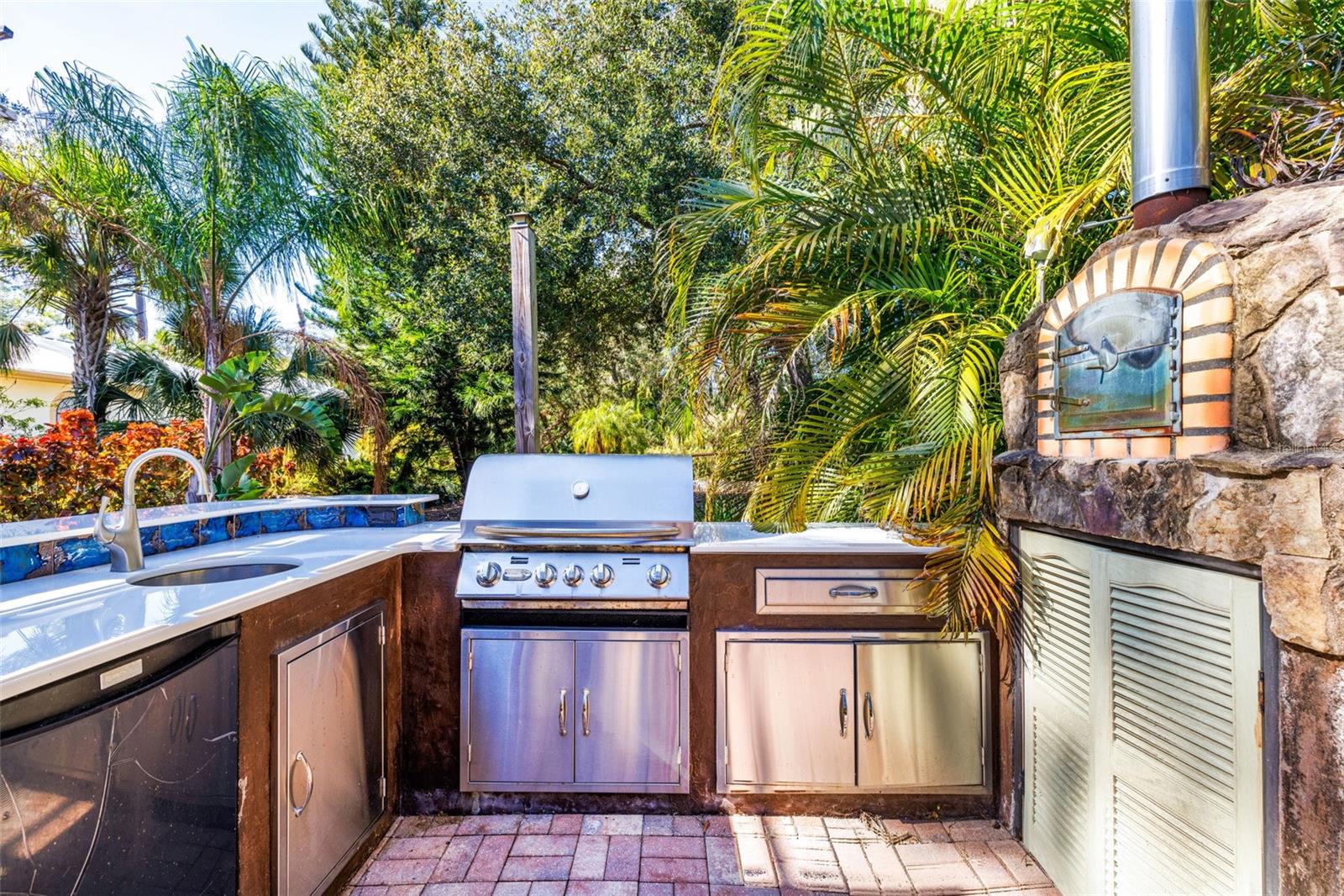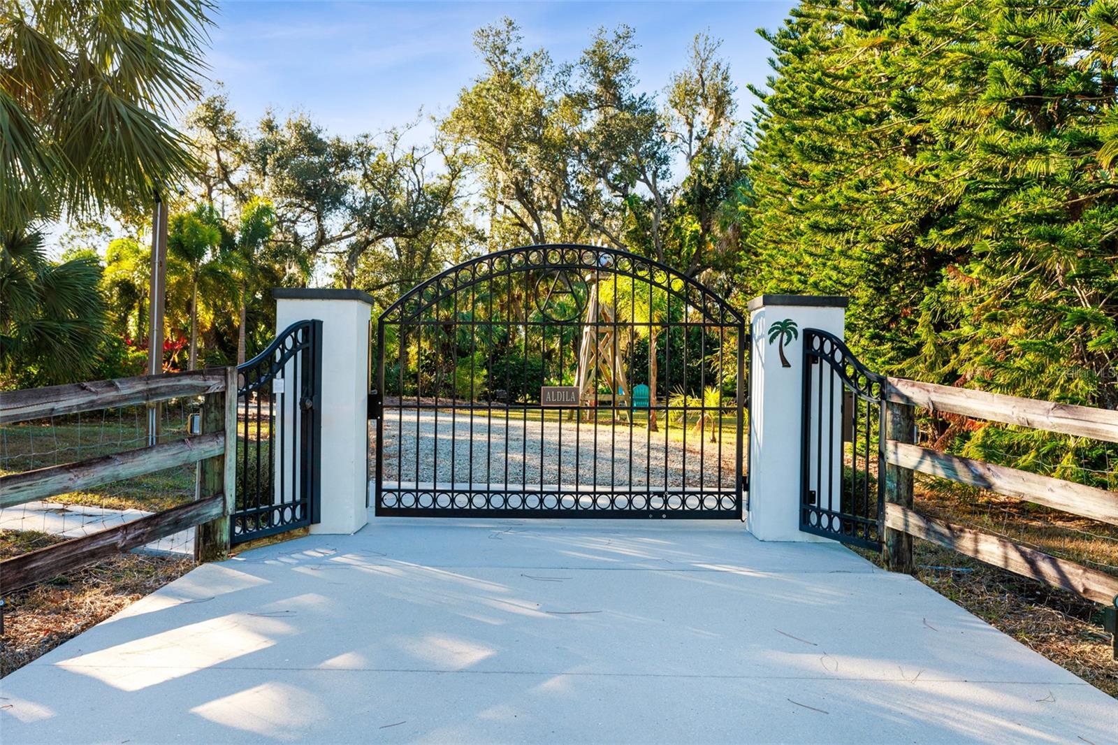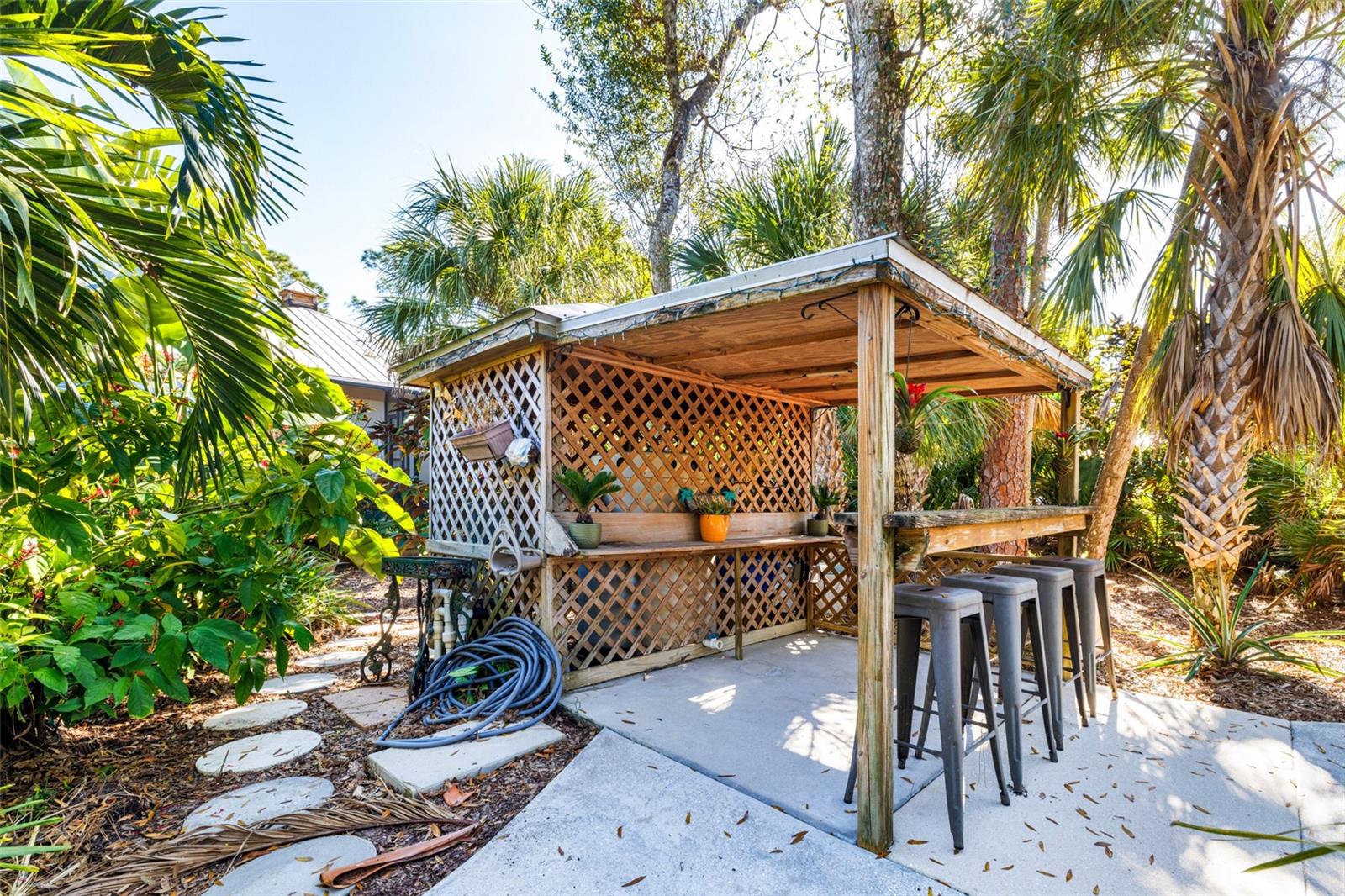 Resort-Style Living on Nearly 2 Acres of Tropical Paradise! Welcome to your private sanctuary, offering the best of luxury and practicality. This custom-built property is surrounded by lush, mature palms and tropical landscaping, fully fenced for security and accessed via a private entry gate. The resort style estate includes a main home with 2 car tandem garage and a separate detached guest apt with 1 car garage perfectly designed for privacy, entertaining, and versatile living. Spacious Design: Open floor plan featuring a living room, dining room, and bright office/den with custom wood cabinetry. • 2 Bedrooms & 2 Baths: • Master suite with lighted tray ceiling, sliders to the pool, custom walk-in closet, and a marble-and-granite bathroom featuring a dual-head walk-in shower, soaking tub, and double vanity. • Split-plan second bedroom with easy access to the second full bathroom. • Gourmet Kitchen: • Thomasville 42” cabinets with pull-out drawers, stainless steel appliances, large pantry, and tube skylight for natural lighting. • High-Quality Features:• 12’ ceilings with crown molding. • Hurricane-impact windows and sliders. • Metal roof, insulated block construction, and underground utilities. • deep artesian well with updated equipment (2020). • Security camera system and exterior lighting. Outdoor Oasis: • Heated Saltwater Pool: Grotto spa, waterfall, and sundeck with pavers, all enclosed within a screened lanai. • Outdoor Kitchen & Bar: • Wood-burning pizza oven, stainless-steel grill, sink, refrigerator, storage, and Dekton countertops. • Herb garden and adjacent custom pergola with lighting and fan. • Additional screened in pavers patio by front entry. Separate Guest Suite/Building (Built in 2014) • 940 sq. ft. of Possibilities: • Living area w/French Doors accessing a private patio, a kitchenette, bedroom, full bathroom including marble shower, wet bar, laundry and garage. • Metal roof, 10’ ceilings, foam insulation, and its own septic and electric meter. • Private entrance, fully air-conditioned perfect for a guests, workshop, office, or recreational space. • Pathways to pool, tiki bar, outdoor kitchen & beautiful grounds. Additional Highlights: • Main Home Garage: Tandem setup, 38 ft in length with a 7,000 lb asymmetric auto lift and separate electric meter and an air-conditioned storage room off garage ideal for your Harley Davidson room. • Extras: • 5HP Dayton commercial compressor. • Car canopy. • Tiki bar, fire pit, windmill, and garden arbor, New A/C installed Nov 2024 with 12 yr transferrable warranty • Parking: Ample space for RVs with electric & water with compressor, boats & trailers. The Rear of property faces South and it backs up to Fallkirk Ave for additional rear parking and rear gate access and the front of the property enters on Elder Ave with private gate access. Convenient Location: • Only 3 miles from major retailers, dining, and Port Charlotte Town Center. • Minutes from medical offices, three hospitals (including a VA Clinic), and I-75. • Located in FEMA Zone X, reducing the need for flood insurance. This property is an entertainer’s dream and a private haven. With no HOA and endless possibilities for both the main home and separate building on nearly 2 private acres of true beloved tropical botanical gardens with birds and butterflies, while living close to nature, it offers a rare combination of resort-style living and practical versatility. Please see the two picture tours linked including floor plans