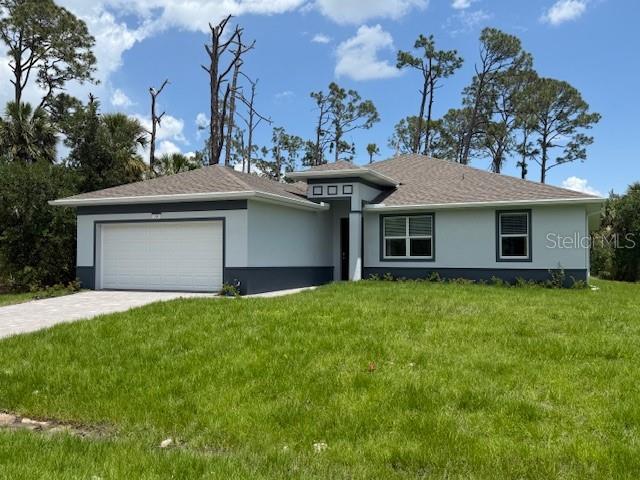 Under Construction. Gorgeous and BRAND NEW 4/2/2, 1914sf, split floorplan home located in a great neighborhood in Port Charlotte. This concrete block home stood strong through the hurricane with no damage. The builder is offering a $5000 closing cost credit if you work with their approved lender. This home has a grand great room entrance into a beautiful open floor plan. You’ll notice in the foyer, that the home has high (9’4”) ceilings, a tray in both the great room and master, gorgeous wood plank tile flooring throughout, granite countertops, stainless appliances, and much more. The Master Suite two walk in closets and leads to the Master Bath with double sinks, soaker tub and an all tile shower. The second and third bedrooms share a large guest bath. All of the rooms are spacious and comfortable. If entertaining is your thing, the back sliders lead out to a huge covered lanai. In Port Charlotte, you are always near world class beaches (Siesta Key, Englewood, etc), surrounded by golf courses, restaurants, shopping, boating, fishing, and even Minor League and Spring Training baseball! The builder is offering the 2/10 extended warranty at no charge. This home will not last long with the builder incentives being offered.