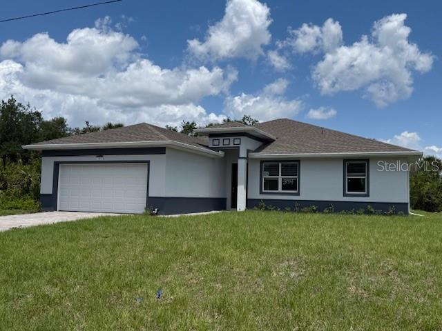 One or more photo(s) has been virtually staged. Under Construction. Gorgeous and BRAND NEW 4/2/2, 1914sf, split floorplan home located in a great neighborhood in Port Charlotte. This concrete block home stood strong through the hurricane with no damage. The builder is offering a $5000 closing cost credit if you work with their approved lender. This home has a grand great room entrance into a beautiful open floor plan. You’ll notice in the foyer, that the home has high (9’4”) ceilings, a tray in both the great room and master, gorgeous wood plank tile flooring throughout, granite countertops, stainless appliances, and much more. The Master Suite two walk in closets and leads to the Master Bath with double sinks, soaker tub and an all tile shower. The second and third bedrooms share a large guest bath. All of the rooms are spacious and comfortable. If entertaining is your thing, the back sliders lead out to a huge covered lanai. In Port Charlotte, you are always near world class beaches (Siesta Key, Englewood, etc), surrounded by golf courses, restaurants, shopping, boating, fishing, and even Minor League and Spring Training baseball! The builder is offering the 2/10 extended warranty at no charge. This home will not last long with the builder incentives being offered.