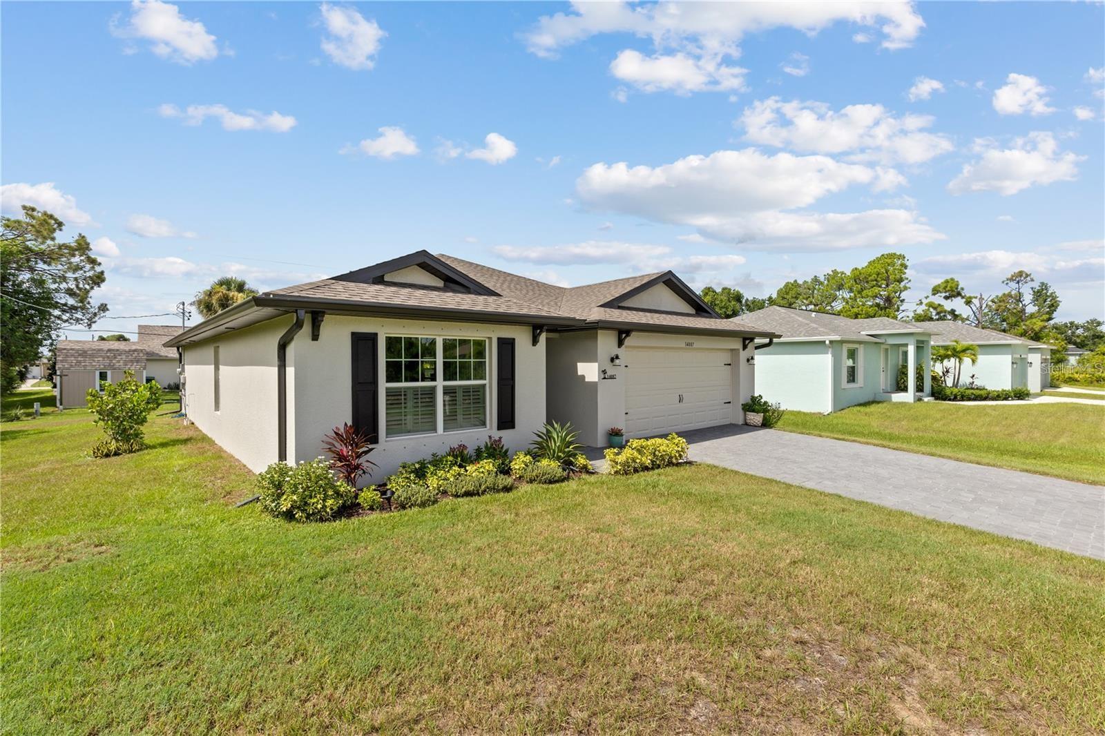 WOW! NO HOA / NO CDD, 2 YEAR OLD meticulously maintained AFFORDABLE HOME with a modern OPEN FLOOR PLAN, vaulted ceiling, plenty of sunlight -and lots of upgrades! Boating and fishing are just a few blocks away at the PRIVATE Community Park w/ BOAT LAUNCH onto the Myakka River* ~just 1 bridge and you're boating in Charlotte Harbor ~or on to the Gulf of Mexico. This home is on City Water (not well) has ALL TILE FLOORS (no carpeting), Large QUARTZ Island & Countertops, large Walk-in Pantry, ALL APPLIANCES STAY including washer & dryer. Entertain on the 12 ft x 18 ft Paver PATIO ~with plenty of room in the backyard for a fire pit -or future pool. Additional features include; Paver Driveway, Irrigation System, Gutters ~Fiber Optic Internet is available! This home is located on a nice quiet street, yet just 15 minutes from Boca Grande Island's beaches, shopping, dining, and world famous fishing ~or 20 minutes to Englewood Beach for parasailing, dining with live music and fun in the sun. For the sports fans, the Tampa Bay Rays spring training facility is just 5 miles away ~several other teams spring trainings happens in nearby towns. When you're ready to mingle with your neighbors there are a variety of informal community get-togethers at the Gulf Cove's riverside Park, and nearby Farmers Markets and plenty of other local events to check out. Come discover Florida living at its best! Realtor is part owner and will be happy to recommend several local lenders currently offering great loan programs ~including a no money down option. *Optional Community Boat Launch Fee is just $65 per year.