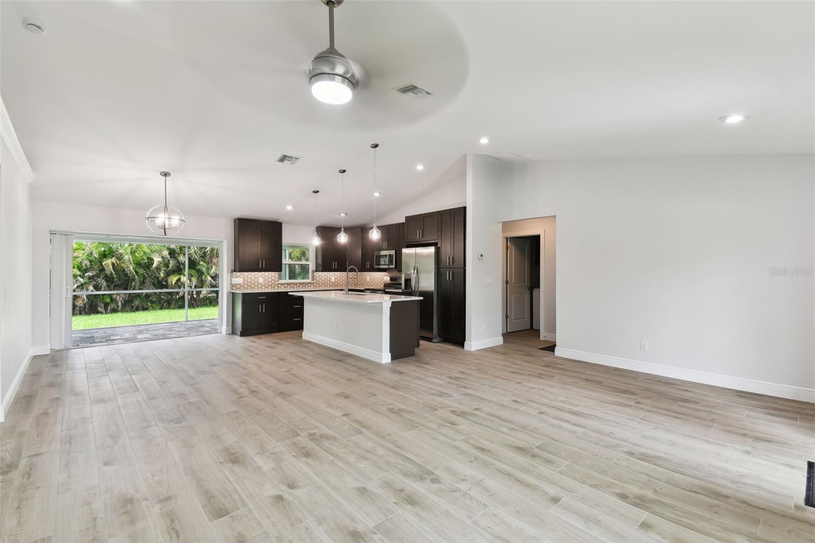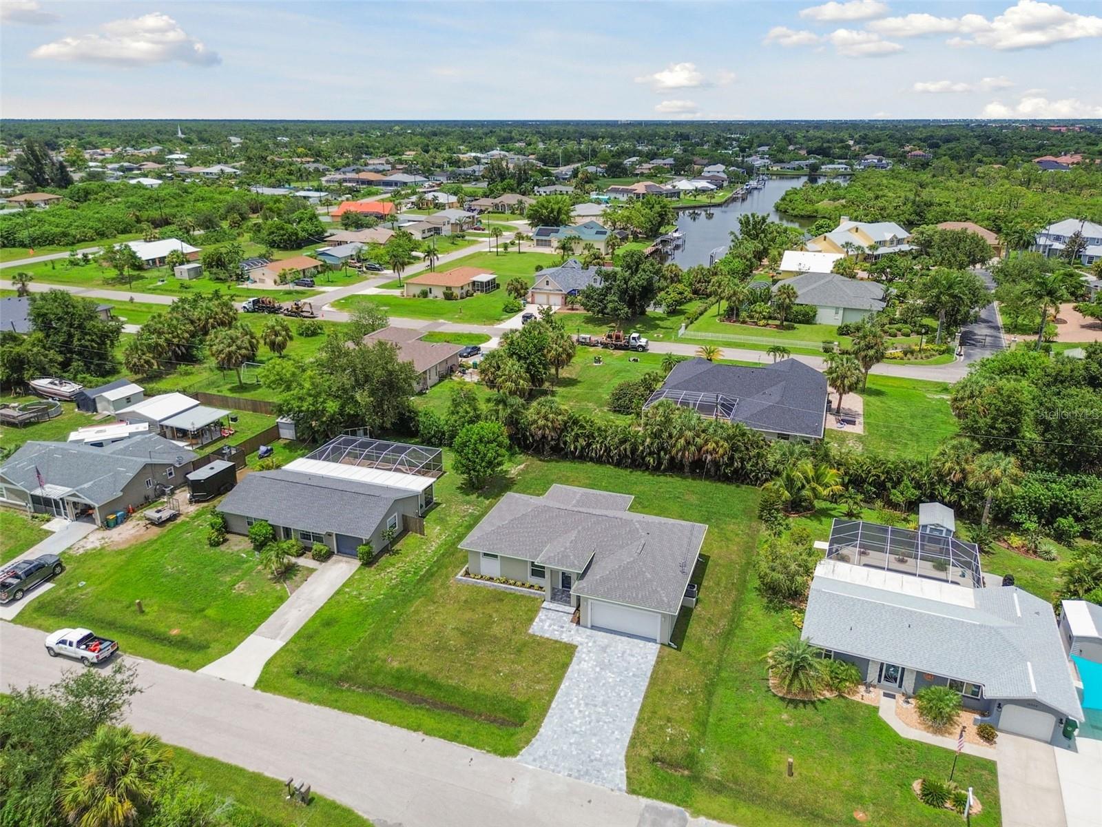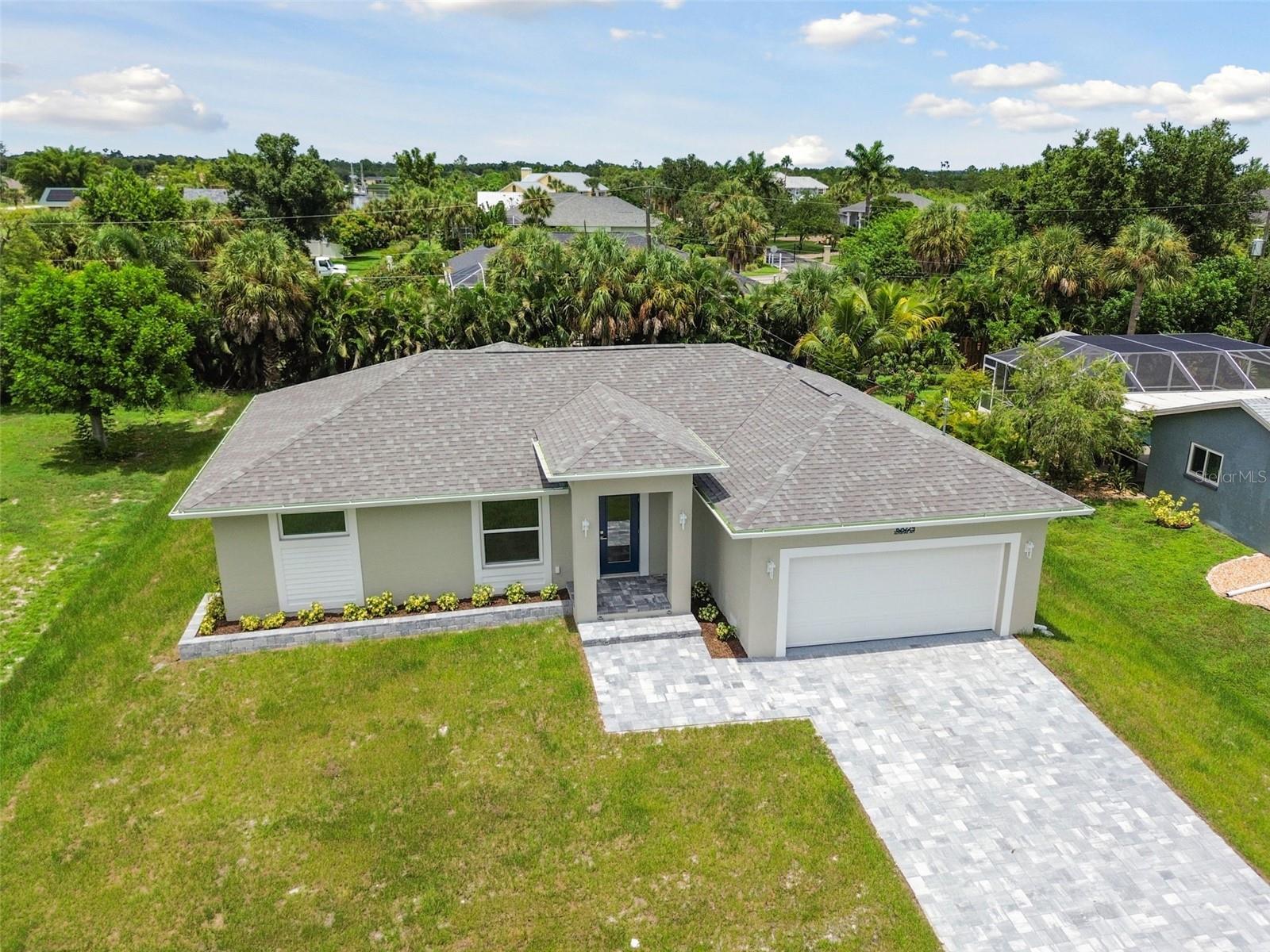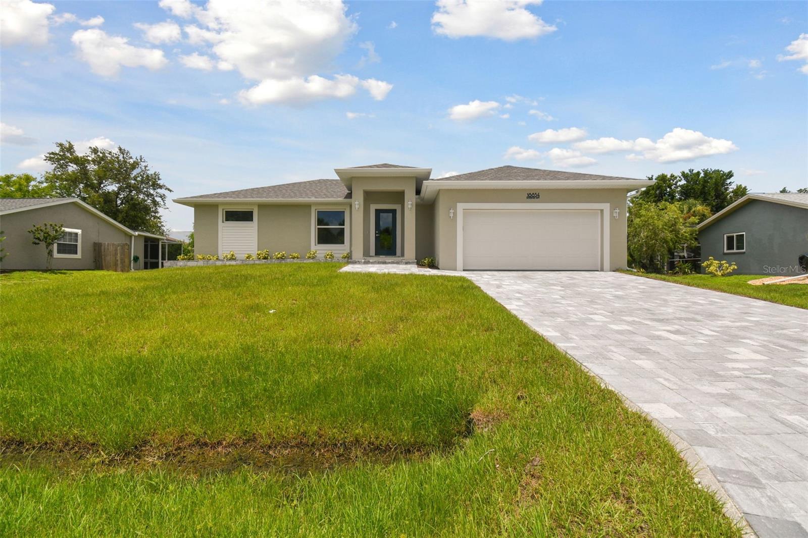Motivated Seller! CUSTOM BUILT NEW CONSTRUCTION with NEW IMPROVED PRICE! Move In Ready on CITY WATER AND SEWER. Open Floor Plan with Vaulted Ceilings in Main Living Area and Recessed Lighting. Just imagine cooking and entertaining in this Gourmet Kitchen with 42" Upper Cabinets, Deep Cabinets providing Additional storage space, Pantry, Large Island, Stainless Appliances and Designer TILE Backsplash. Living, Dining and Kitchen Area Slider Door opens to Screened and Paver Lanai Area, Great for relaxing. Primary Bedroom offers a tranquil retreat with TWO Walk In Closets, EnSuite Bath with Dual Vanities and Large Walk In TILED Shower. There are Two Additional Large Bedrooms on opposite side of home with Walk In Closets and Hall Bath with TILED Tub Shower Combo. Enjoy the Benefits of New Construction with Beautiful Wood Plank Porcelain Flooring Throughout, IMPACT WINDOWS AND DOORS, STEM WALL, OVERHEAD PLUMBING, Gutters all around home, Paver Driveway, Walk with Flower Bed, Paver Lanai, INDOOR LAUNDRY Area that Includes NEW Washer and Dryer, Ceiling Fans in all Bedrooms, Two Car Garage with Remote and Epoxy Floor. Close to Shopping, Restaurants, Beaches, Fishing, Golfing, Boating, Sports Stadium and More!