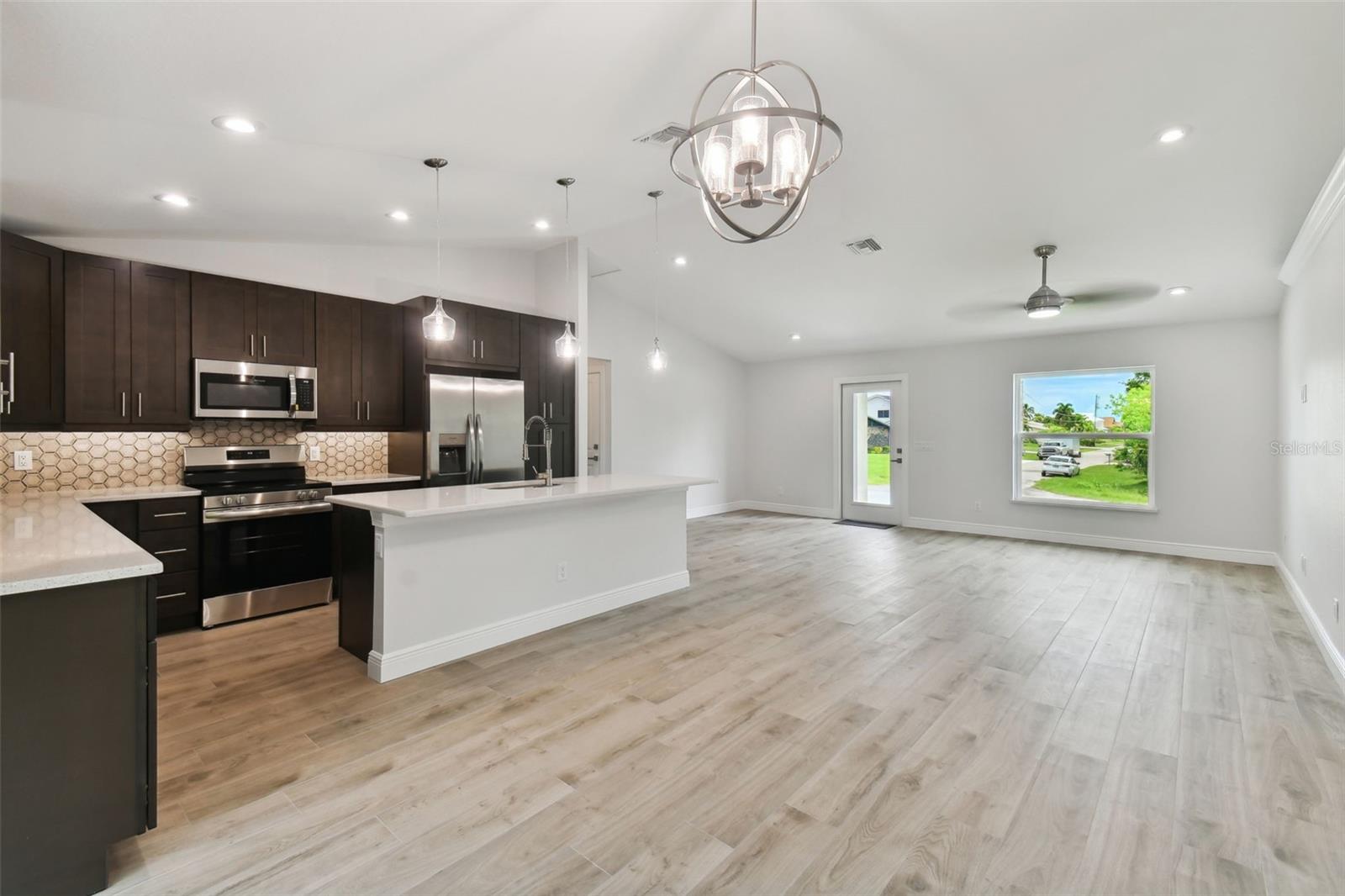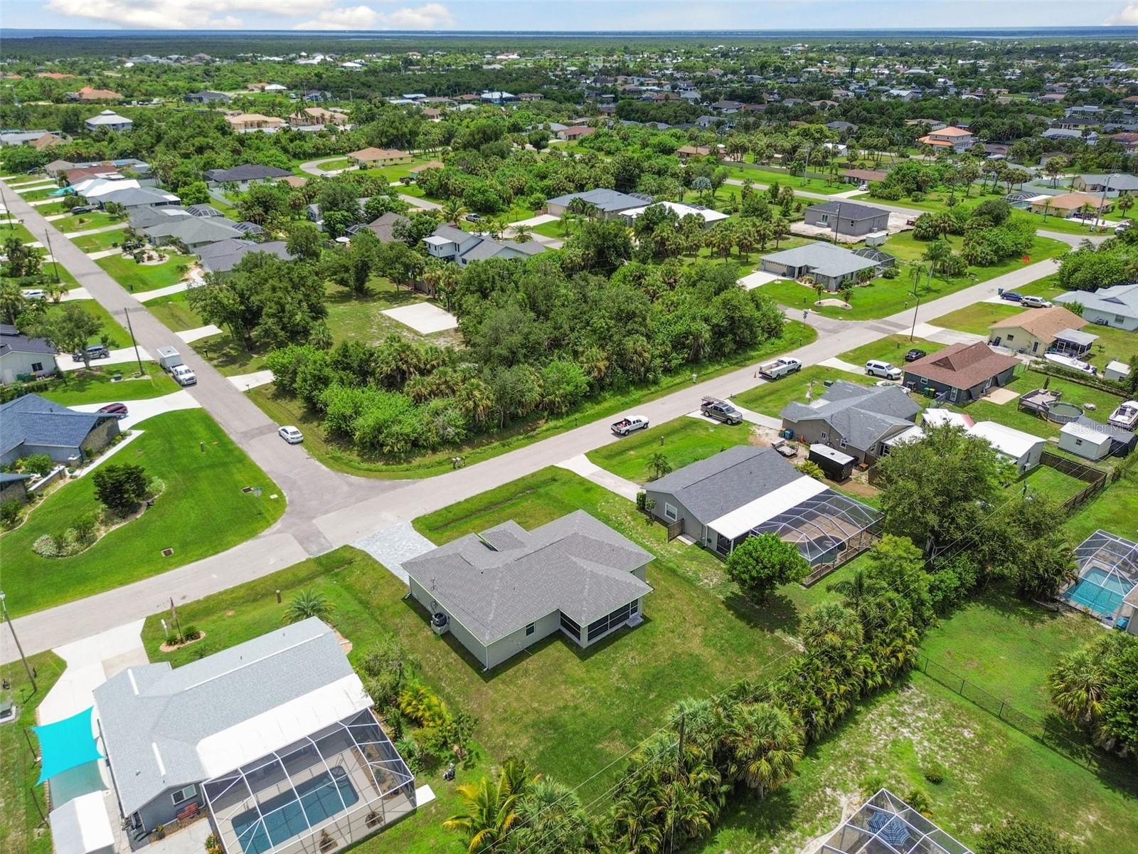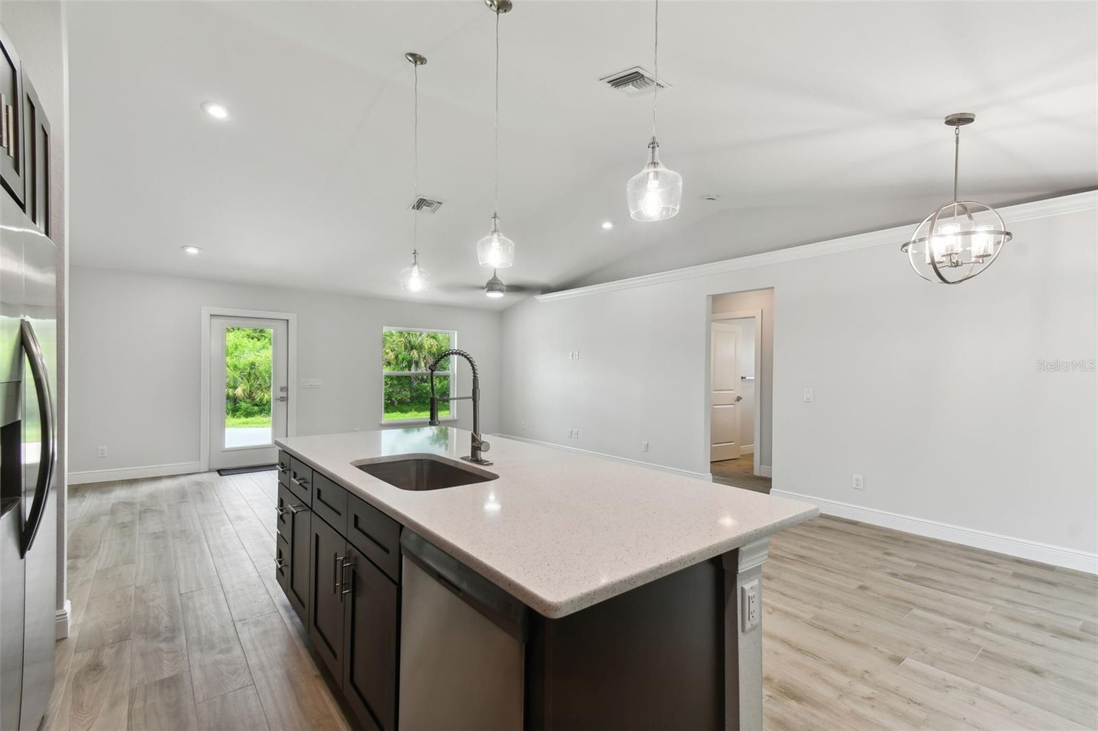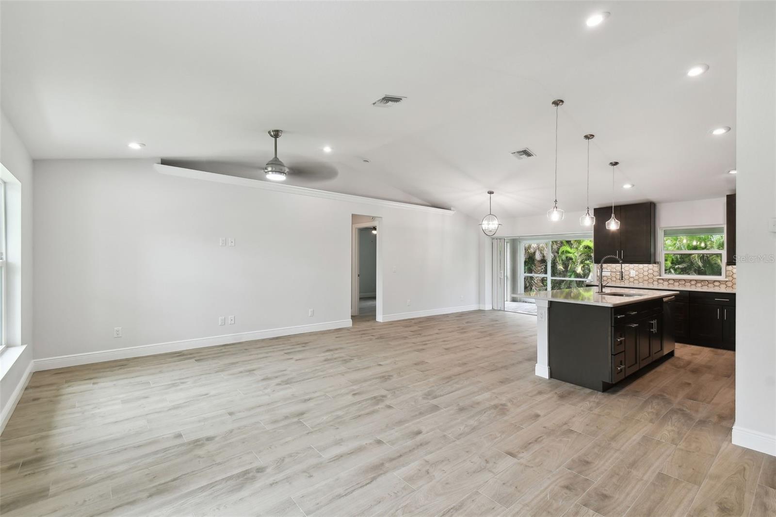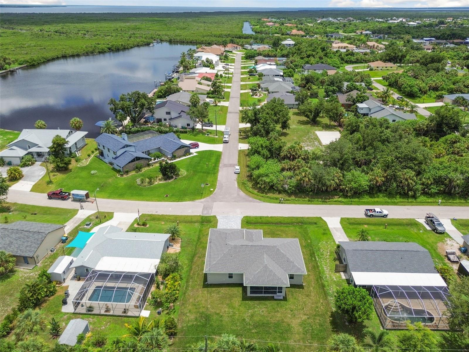 Motivated Seller! CUSTOM BUILT NEW CONSTRUCTION with NEW IMPROVED PRICE! Move In Ready on CITY WATER AND SEWER. Open Floor Plan with Vaulted Ceilings in Main Living Area and Recessed Lighting. Just imagine cooking and entertaining in this Gourmet Kitchen with 42" Upper Cabinets, Deep Cabinets providing Additional storage space, Pantry, Large Island, Stainless Appliances and Designer TILE Backsplash. Living, Dining and Kitchen Area Slider Door opens to Screened and Paver Lanai Area, Great for relaxing. Primary Bedroom offers a tranquil retreat with TWO Walk In Closets, EnSuite Bath with Dual Vanities and Large Walk In TILED Shower. There are Two Additional Large Bedrooms on opposite side of home with Walk In Closets and Hall Bath with TILED Tub Shower Combo. Enjoy the Benefits of New Construction with Beautiful Wood Plank Porcelain Flooring Throughout, IMPACT WINDOWS AND DOORS, STEM WALL, OVERHEAD PLUMBING, Gutters all around home, Paver Driveway, Walk with Flower Bed, Paver Lanai, INDOOR LAUNDRY Area that Includes NEW Washer and Dryer, Ceiling Fans in all Bedrooms, Two Car Garage with Remote and Epoxy Floor. Close to Shopping, Restaurants, Beaches, Fishing, Golfing, Boating, Sports Stadium and More!