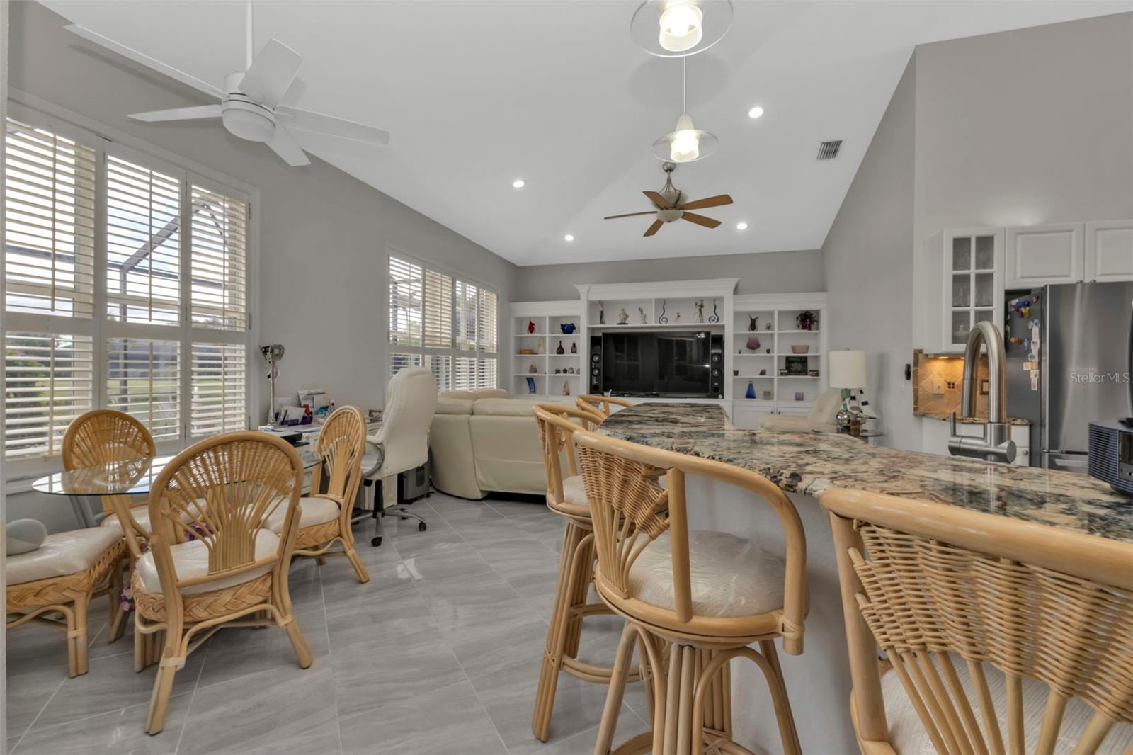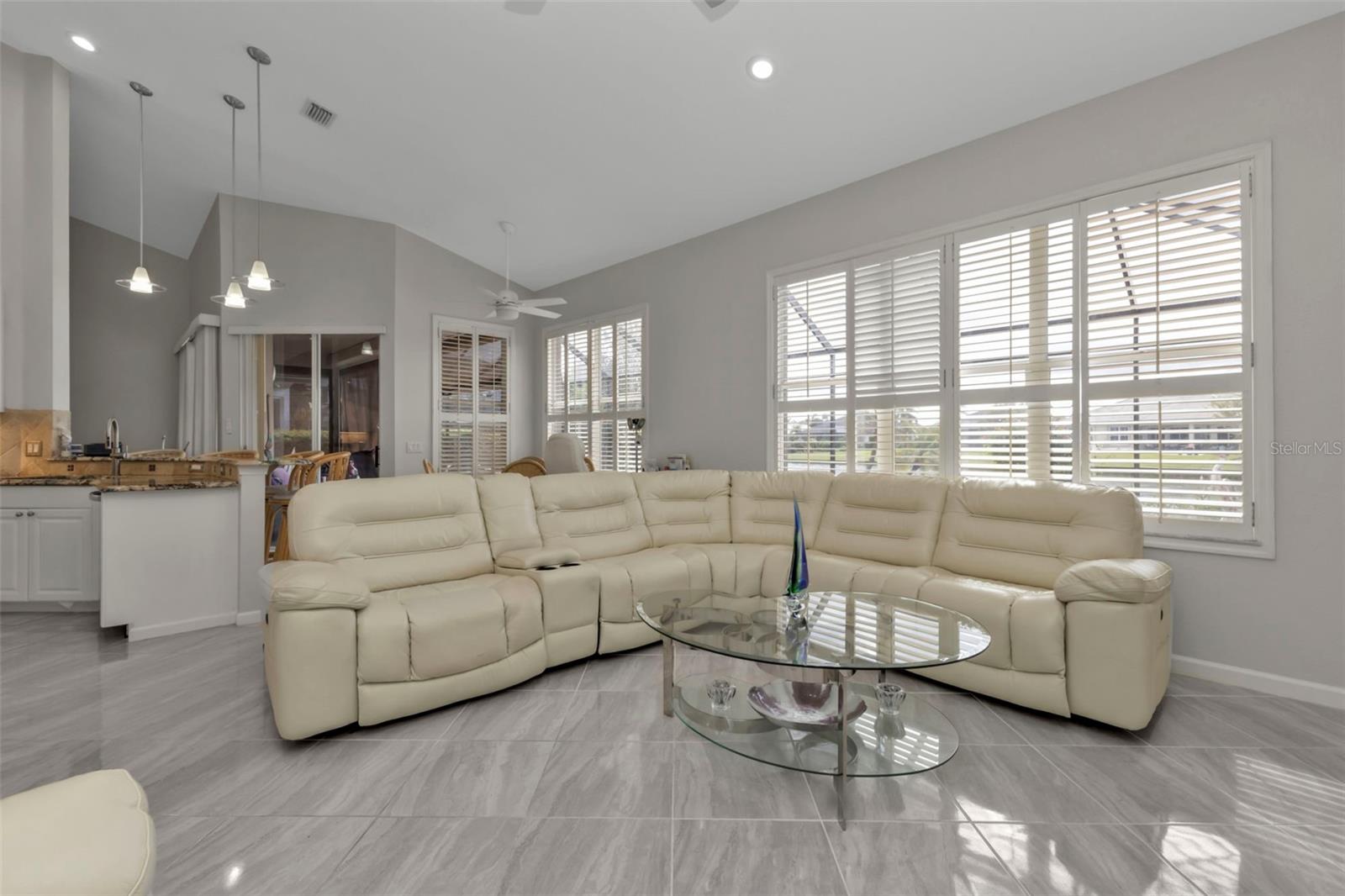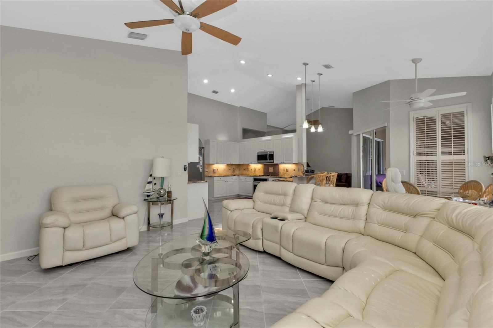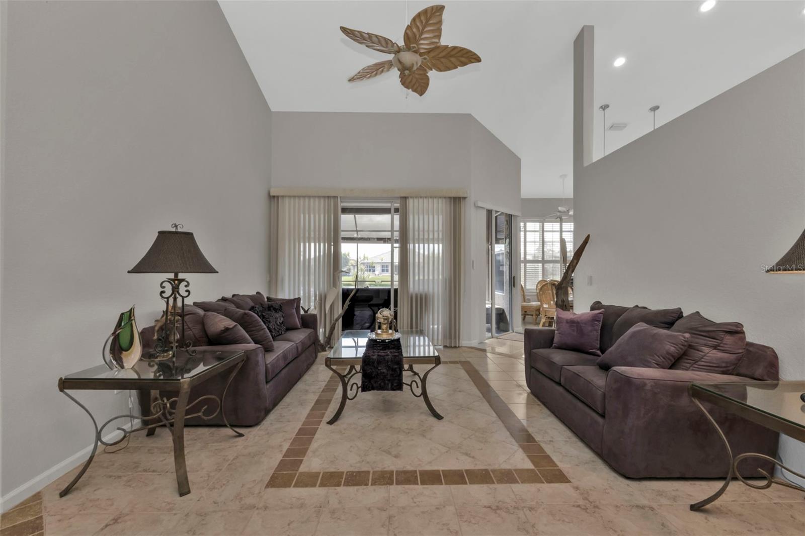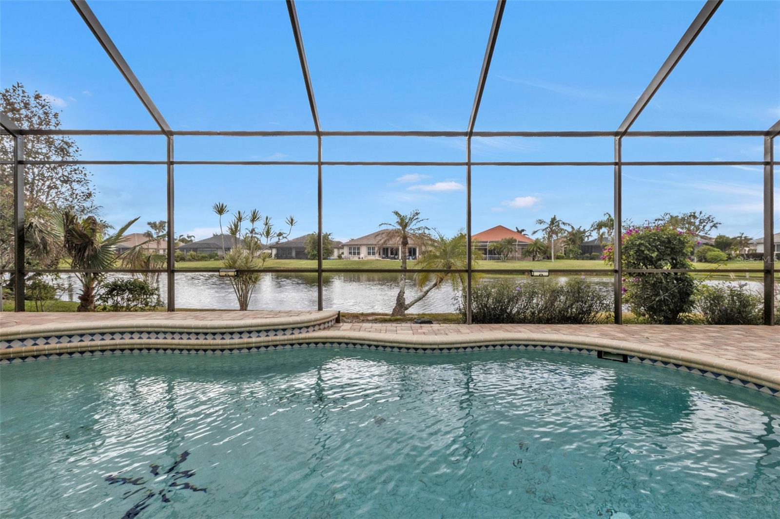 Enjoy RESORT STYLE livingin this SPACIOUS 3 Bedroom, 2 Bathroom, 2 Car Garage, Pool home with a 2024 ROOF, Family room & LAKE VIEWS located in the Active Riverwood Community. CLICK ON THE VIRTUAL TOUR LINK 1 FOR THE VIDEO AND VIRTUAL LINK 2 FOR THE 3D TOUR. This lovely home features a bright & airy floor plan with high vaulted ceilings, tile flooring throughout, recessed & pendant lighting, plantation shutters, and MUCH MORE! Entertain friends and family with an open living and dining room with a glass slider to the lanai and a BEAUTIFUL lake view. The kitchen offers ALL stainless-steel appliances, granite countertops, tiled backsplash, closet pantry, breakfast counter and dinette. A family off the kitchen allows you to expand your living and entertaining space. The master bedroom has a walk-in closet, a glass slider to the lanai, and an en-suite bathroom with split vanities, a soaking tub, a walk-in shower, and a water closet. The guest bedrooms are on a split floor plan providing plenty of privacy with walk-in closets and a jack-and-jill-styled shared guest bathroom. Sip your morning coffee or unwind with your favorite evening beverage with lake views from the lanai. Dip in a private pool, with a water fountain, or soak up the sun from the pool deck. Riverwood is a gated and deed-restricted community offering a Clubhouse, two community pools, tennis & pickleball courts, bocce ball, a croquet field, as well as a fitness center, library, arts & crafts room, and a variety of scheduled community events and activities! Conveniently located close to US-41 with easy access to local shopping, fine & casual dining spots, LIVE entertainment, biking, boating, and Englewood's beautiful beaches are just a short drive away, providing an opportunity to soak up the sun, swim in crystal-clear waters, or indulge in beachfront dining. Schedule your showing TODAY!