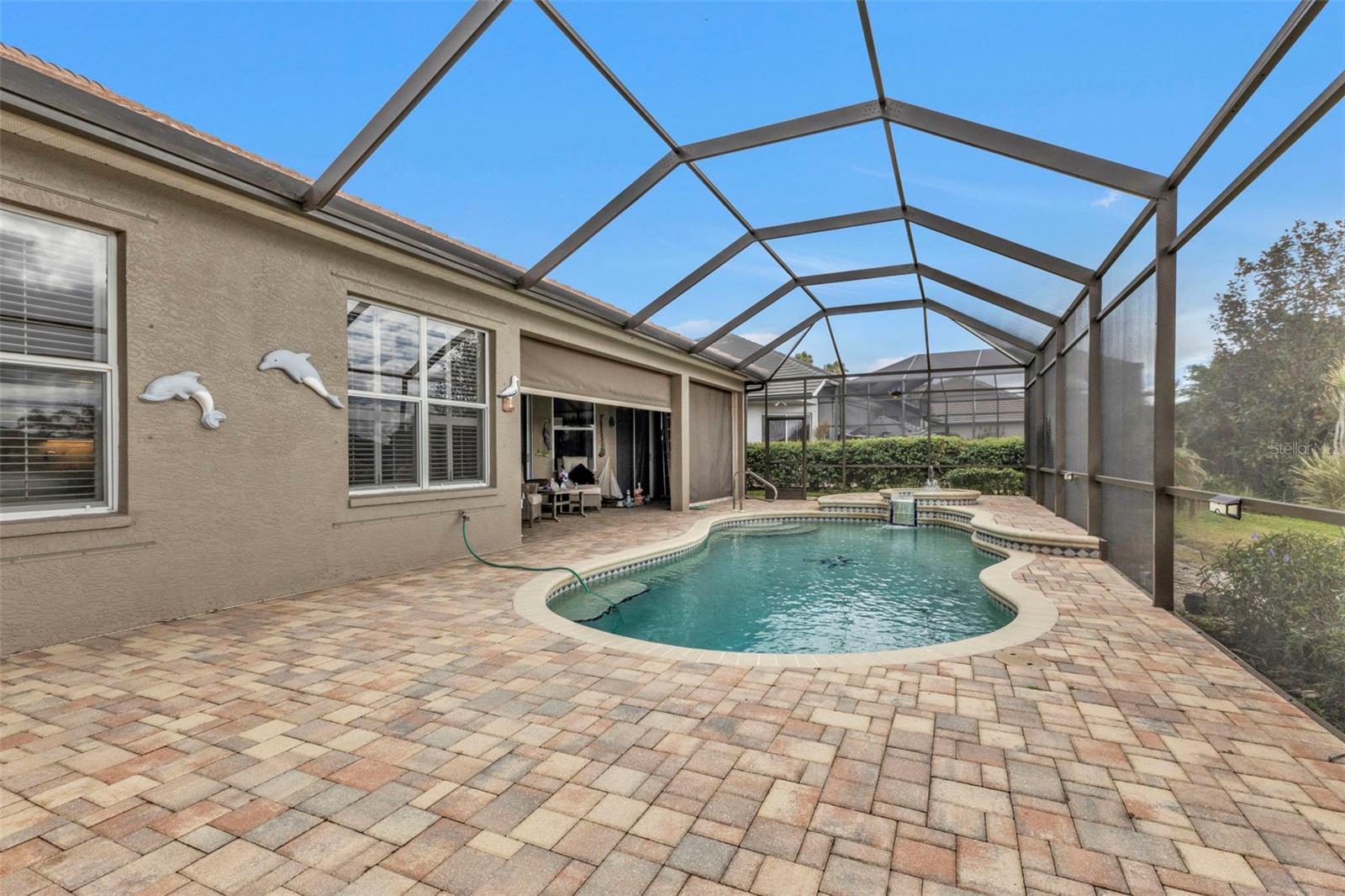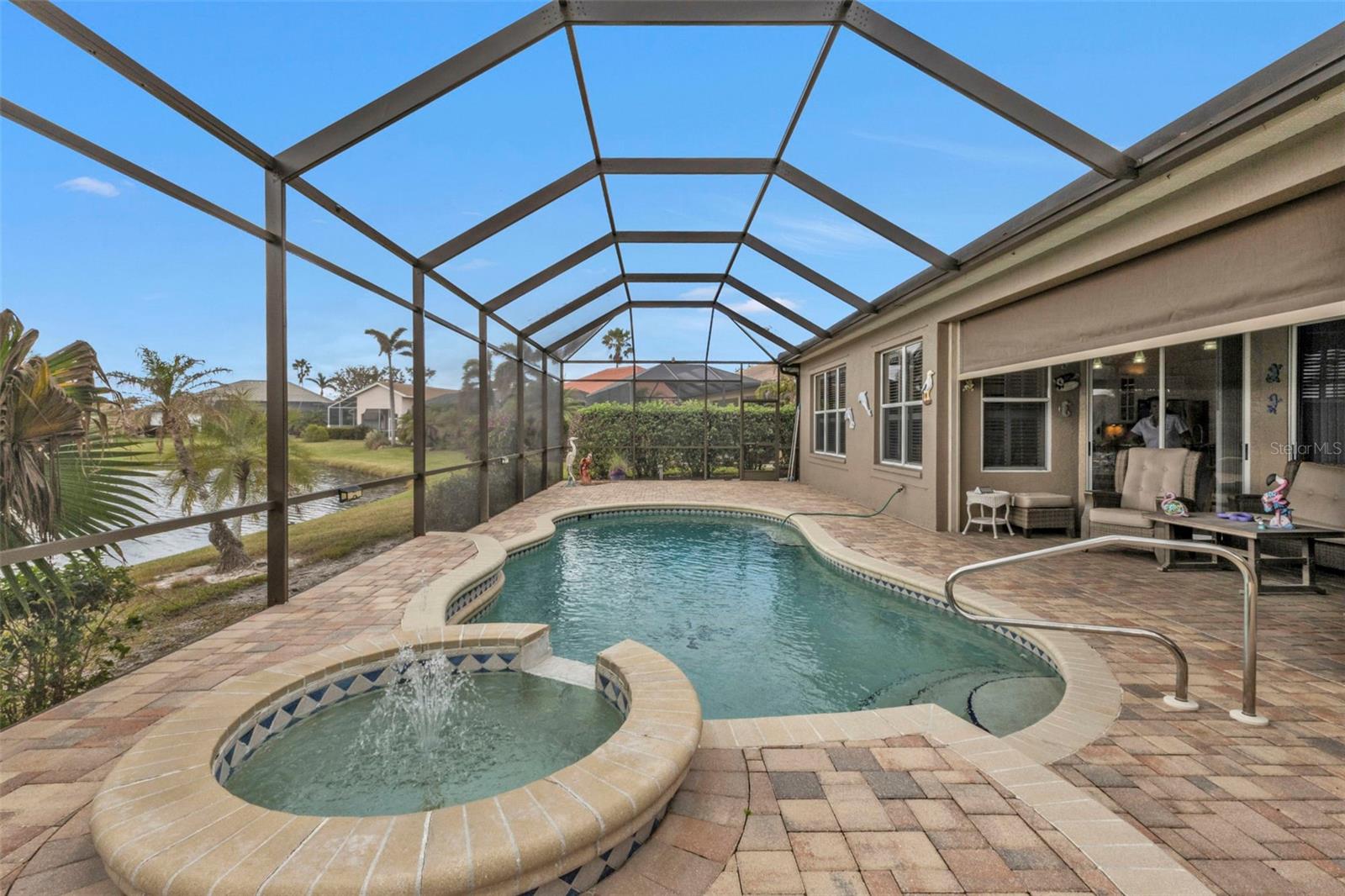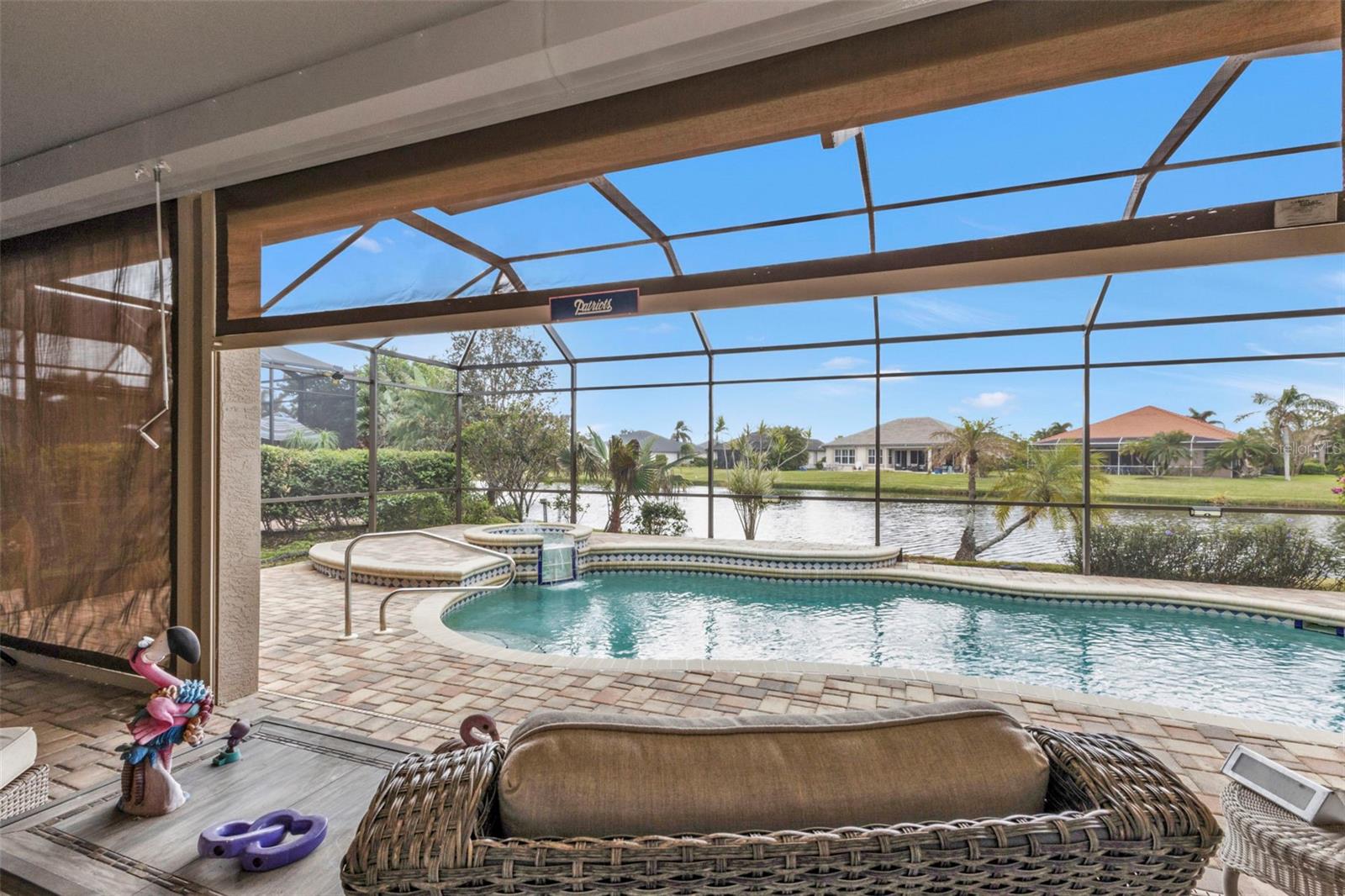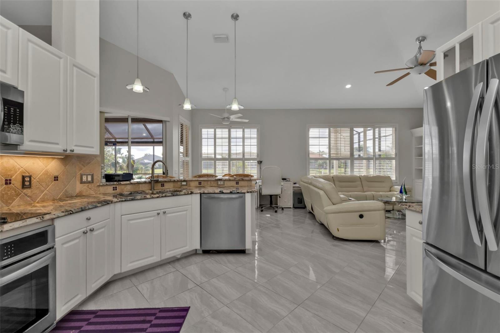 Enjoy RESORT STYLE livingin this SPACIOUS 3 Bedroom, 2 Bathroom, 2 Car Garage, Pool home with a 2024 ROOF, Family room & LAKE VIEWS located in the Active Riverwood Community. CLICK ON THE VIRTUAL TOUR LINK 1 FOR THE VIDEO AND VIRTUAL LINK 2 FOR THE 3D TOUR. This lovely home features a bright & airy floor plan with high vaulted ceilings, tile flooring throughout, recessed & pendant lighting, plantation shutters, and MUCH MORE! Entertain friends and family with an open living and dining room with a glass slider to the lanai and a BEAUTIFUL lake view. The kitchen offers ALL stainless-steel appliances, granite countertops, tiled backsplash, closet pantry, breakfast counter and dinette. A family off the kitchen allows you to expand your living and entertaining space. The master bedroom has a walk-in closet, a glass slider to the lanai, and an en-suite bathroom with split vanities, a soaking tub, a walk-in shower, and a water closet. The guest bedrooms are on a split floor plan providing plenty of privacy with walk-in closets and a jack-and-jill-styled shared guest bathroom. Sip your morning coffee or unwind with your favorite evening beverage with lake views from the lanai. Dip in a private pool, with a water fountain, or soak up the sun from the pool deck. Riverwood is a gated and deed-restricted community offering a Clubhouse, two community pools, tennis & pickleball courts, bocce ball, a croquet field, as well as a fitness center, library, arts & crafts room, and a variety of scheduled community events and activities! Conveniently located close to US-41 with easy access to local shopping, fine & casual dining spots, LIVE entertainment, biking, boating, and Englewood's beautiful beaches are just a short drive away, providing an opportunity to soak up the sun, swim in crystal-clear waters, or indulge in beachfront dining. Schedule your showing TODAY!