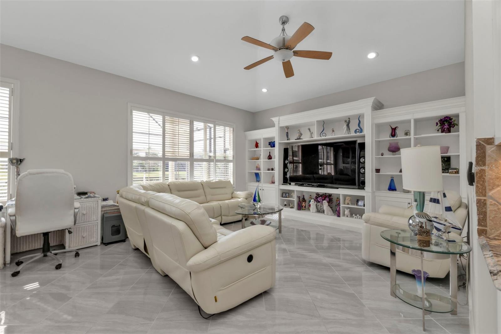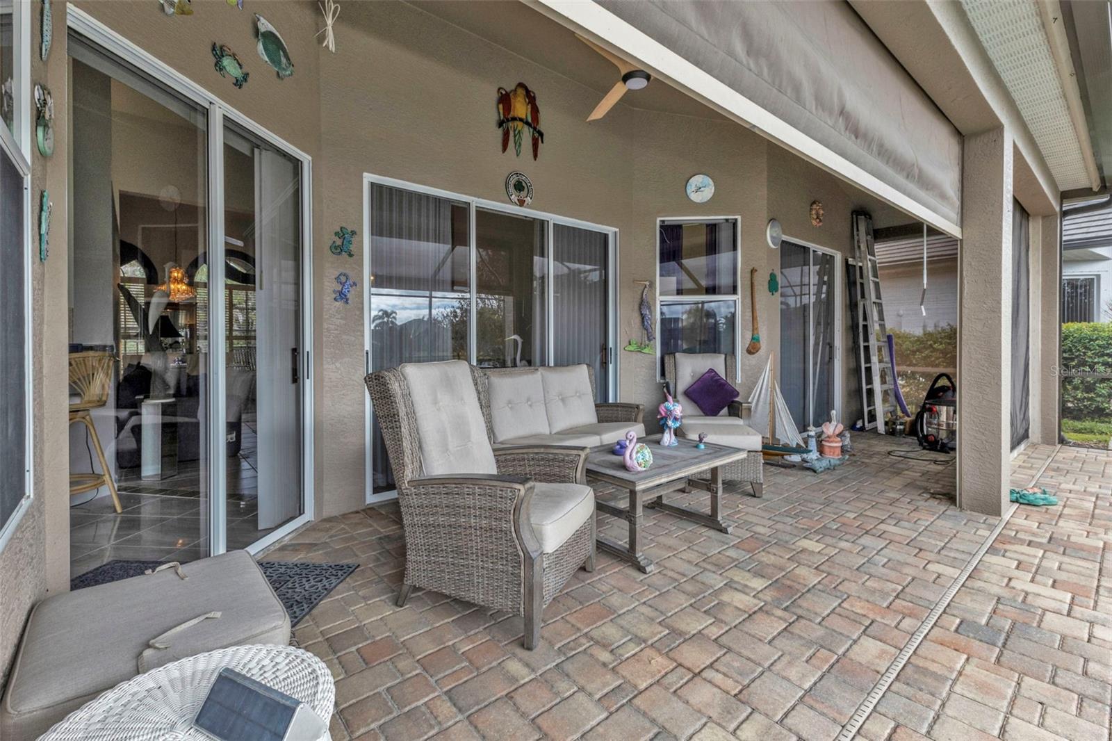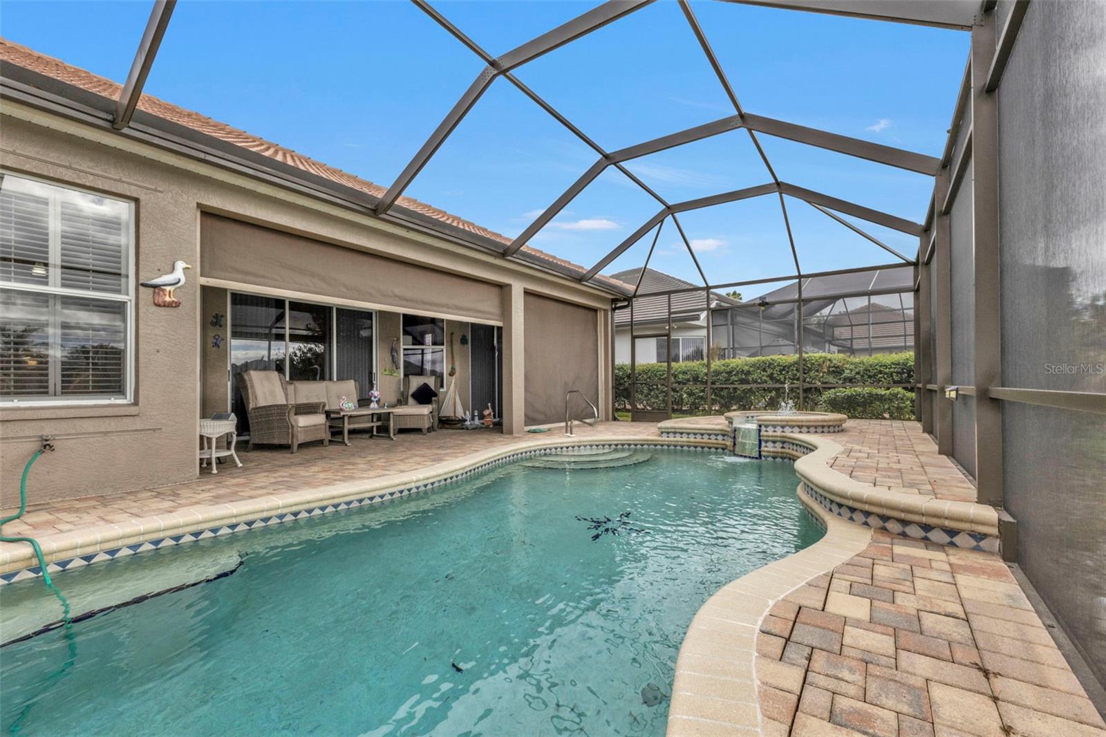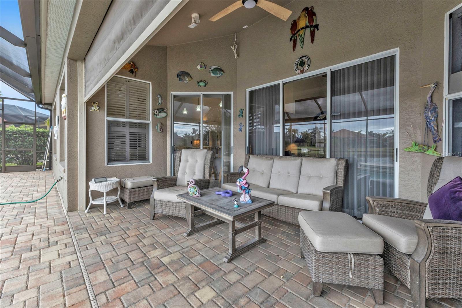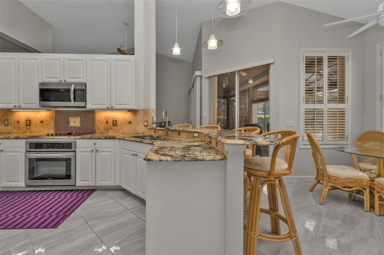 Enjoy RESORT STYLE livingin this SPACIOUS 3 Bedroom, 2 Bathroom, 2 Car Garage, Pool home with a 2024 ROOF, Family room & LAKE VIEWS located in the Active Riverwood Community. CLICK ON THE VIRTUAL TOUR LINK 1 FOR THE VIDEO AND VIRTUAL LINK 2 FOR THE 3D TOUR. This lovely home features a bright & airy floor plan with high vaulted ceilings, tile flooring throughout, recessed & pendant lighting, plantation shutters, and MUCH MORE! Entertain friends and family with an open living and dining room with a glass slider to the lanai and a BEAUTIFUL lake view. The kitchen offers ALL stainless-steel appliances, granite countertops, tiled backsplash, closet pantry, breakfast counter and dinette. A family off the kitchen allows you to expand your living and entertaining space. The master bedroom has a walk-in closet, a glass slider to the lanai, and an en-suite bathroom with split vanities, a soaking tub, a walk-in shower, and a water closet. The guest bedrooms are on a split floor plan providing plenty of privacy with walk-in closets and a jack-and-jill-styled shared guest bathroom. Sip your morning coffee or unwind with your favorite evening beverage with lake views from the lanai. Dip in a private pool, with a water fountain, or soak up the sun from the pool deck. Riverwood is a gated and deed-restricted community offering a Clubhouse, two community pools, tennis & pickleball courts, bocce ball, a croquet field, as well as a fitness center, library, arts & crafts room, and a variety of scheduled community events and activities! Conveniently located close to US-41 with easy access to local shopping, fine & casual dining spots, LIVE entertainment, biking, boating, and Englewood's beautiful beaches are just a short drive away, providing an opportunity to soak up the sun, swim in crystal-clear waters, or indulge in beachfront dining. Schedule your showing TODAY!