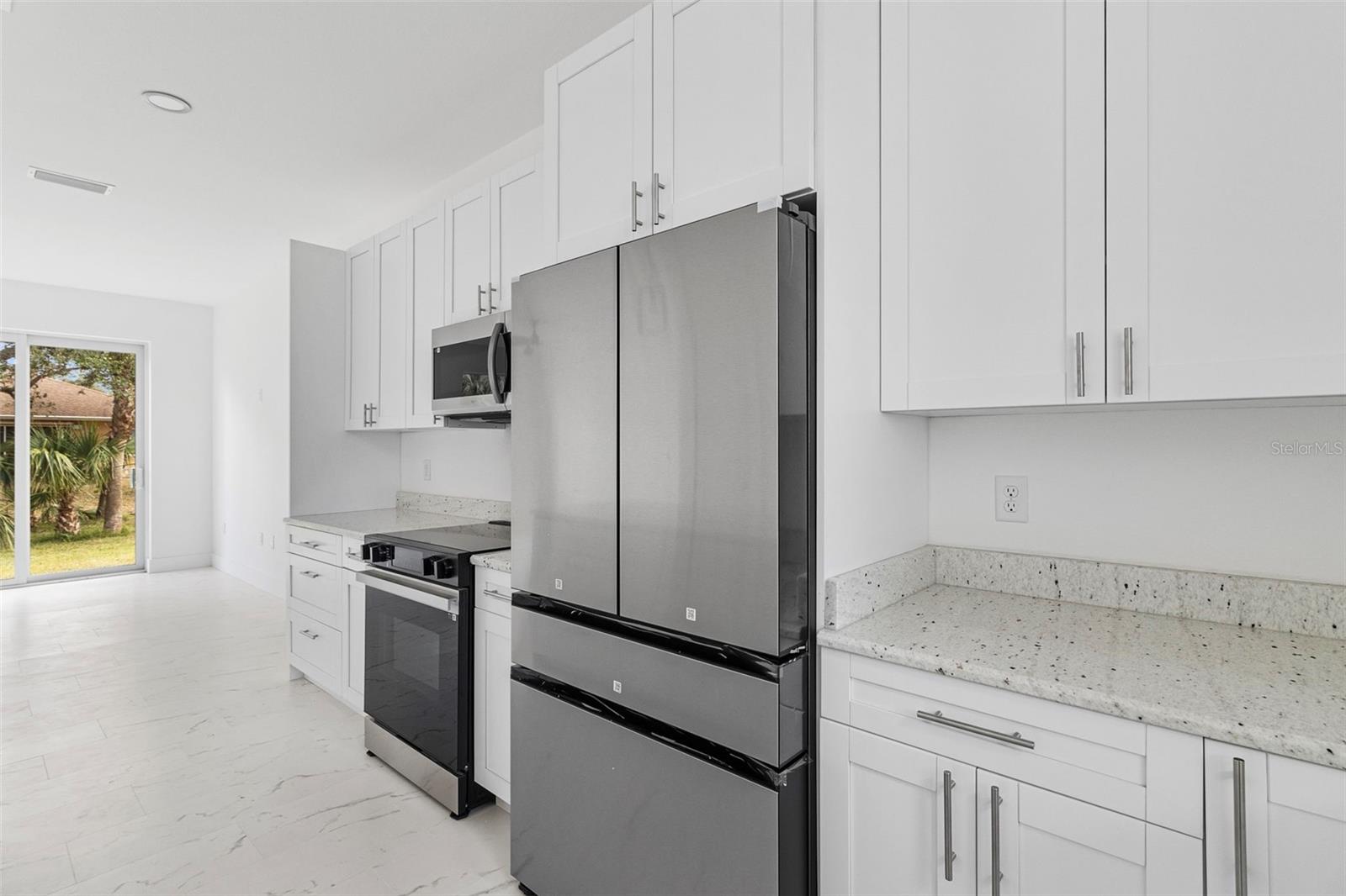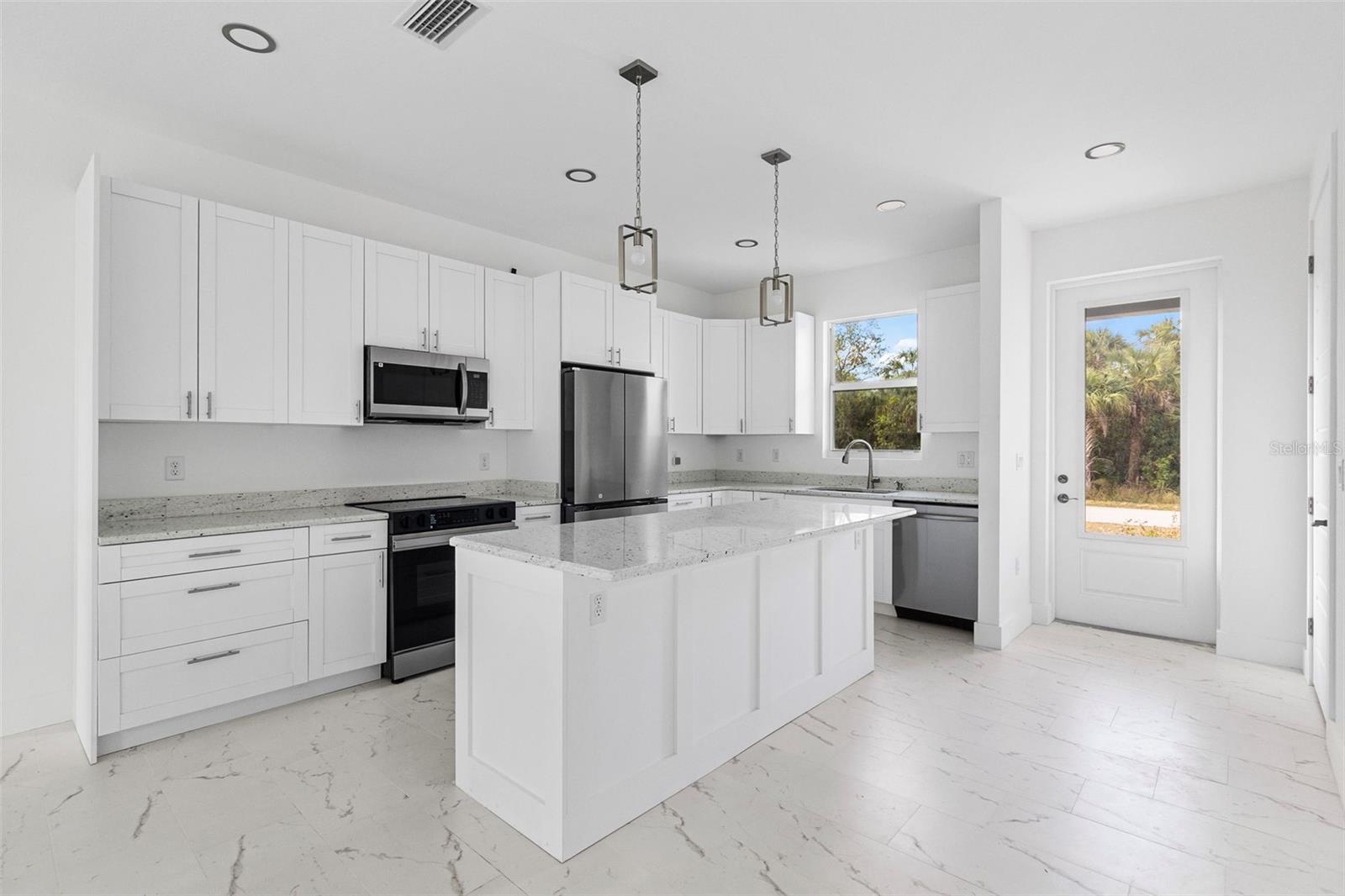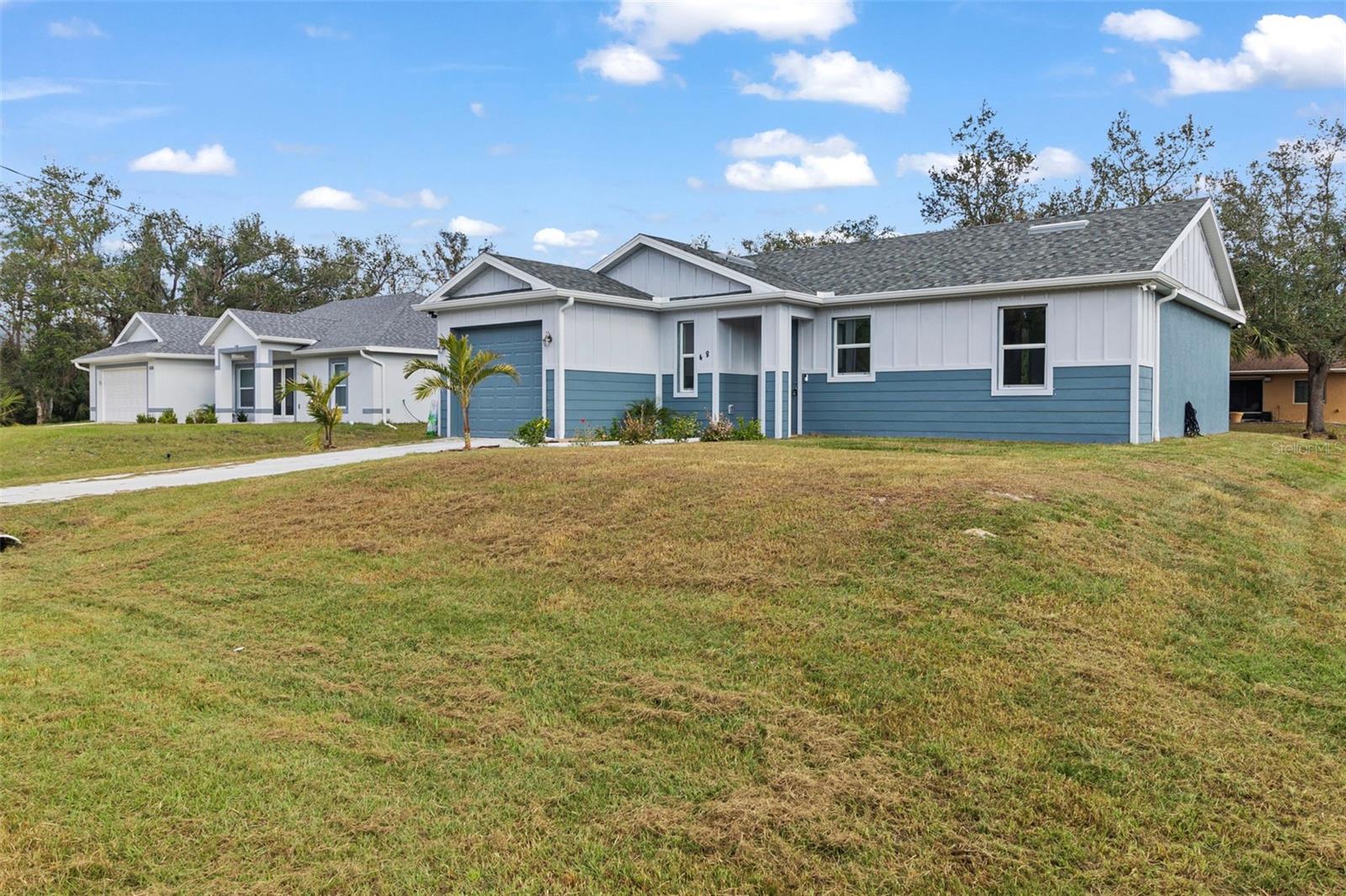 Welcome to 438 Leona Street, a brand-new 3-bedroom, 2-bathroom masterpiece in the heart of Port Charlotte! Designed with modern elegance and thoughtful details, this 1,379 sqft single-story home features a desirable open floor plan that’s perfect for modern living and entertaining. The interior shines with a sleek kitchen featuring wood cabinets, stone countertops, and brand-new stainless steel appliances, including a dishwasher, range, and refrigerator/freezer. The spacious living, dining, and kitchen areas flow seamlessly, creating an inviting space to host guests or enjoy family time. The luxurious primary bathroom offers a tub and shower combo, providing the perfect blend of comfort and style. Built for peace of mind, this home is equipped with impact-resistant doors and windows and is not in a flood zone. With no HOA fees and a prime location near Veterans Blvd and Highway 41, you’ll love the convenience of easy access to shopping, dining, and outdoor activities. Nestled between Punta Gorda and Englewood, Port Charlotte offers the best of Florida’s Southwest Coast. Enjoy stunning Gulf sunsets, explore miles of waterways, and experience world-class fishing and boating. This is more than a home—it’s your gateway to the Florida lifestyle! Don’t wait—schedule your private showing today and make it yours!