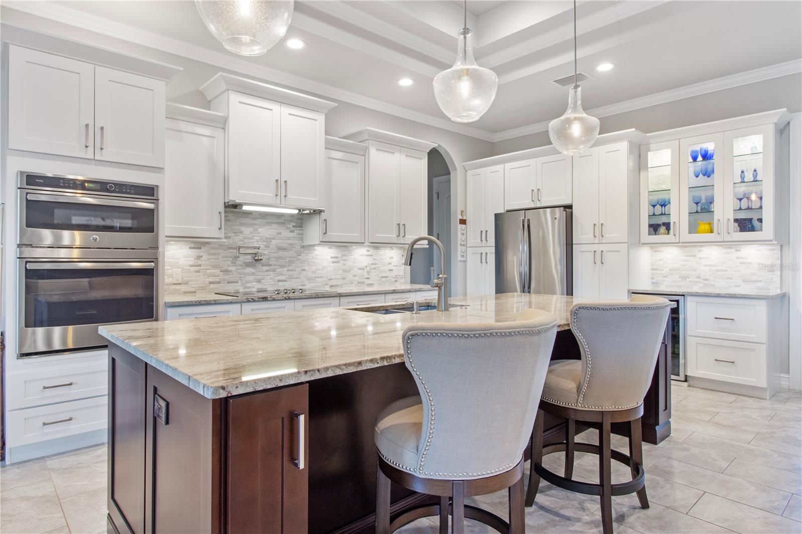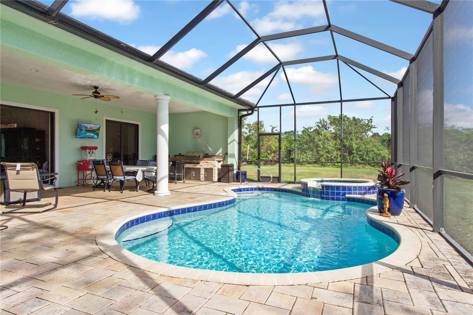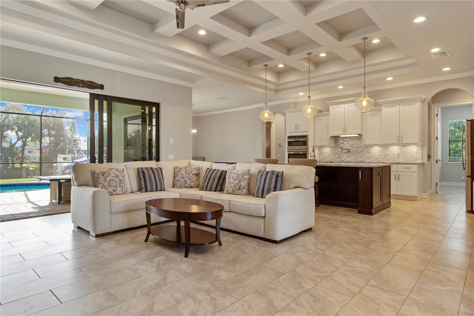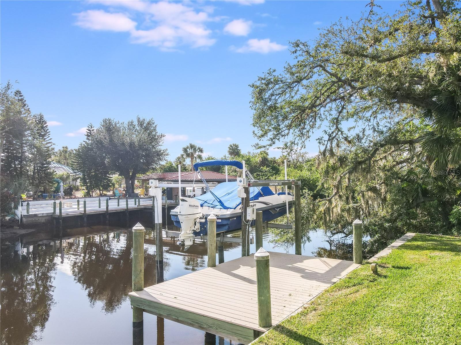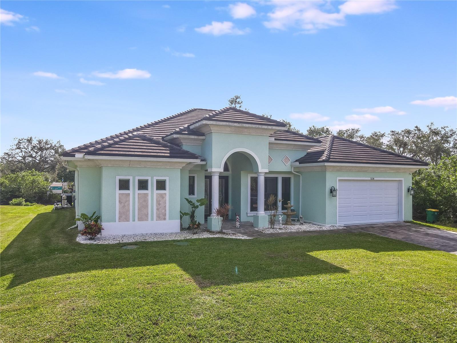 *AVAILABLE FULLY FURNISHED* Welcome home to your picture perfect CUSTOM BUILT Driftwood Model POOL HOME w/GULF ACCESS on a DOUBLE LOT! This beautifully crafted home combines elegance & comfort, while featuring 3 bedrooms + DEN, 2 baths & a 2 car garage. Open the double front doors & be greeted with a grand entrance that's sure to please with gorgeous water views from every room! Warm, neutral colors, crown molding, 8' doorways, modern fixtures, & high coffered ceilings make this home one you don't want to miss! The inviting Great Room captivates you as you enter, complete with tall ceilings & natural sunlight beaming through the triple sliding doors, tile floors flow freely throughout the main living areas making cleaning a breeze & pet friendly. The open-concept floor plan showcases the gourmet chef's kitchen with an expansive center island aligned with designer pendant lights, 42" staggered cabinets featuring crown molding, built-in pantry, granite countertops, ornate backsplash, soft close drawers & a wine fridge. The Stainless Steel appliances including a flat top stove with pot filler make cooking more enjoyable! The dining room is currently being used as an entertainment area for pool & ping pong. The remarkable owners suite has an impressive tray ceiling, private lanai access, crown molding, ceiling fan & dual walk-in-closets featuring ventilated wood shelving. Indulge in pure relaxation as you enter the bath, it boasts double split vanities, separate water closet, linen closet & a Roman walk-in-shower w/dual showerheads, custom tile & built in's. The split bedroom floor plan offers privacy & comfort to family & guests alike. Both bedrooms are spacious with a ceiling fan, window & private closet. The guest bath is well appointed and located between the two guest bedrooms. The den would make an excellent office, playroom or craft room - the possibilites are endless! The laundry room has been upgraded with 42" inch cabinets, sink with granite countertops, and a frontload washer & dryer. Sliders from the Great Room open to your peaceful screened in lanai showcasing panoramic water views, the epitome of Florida living! Boasting over 400sf of covered area, featuring the custom stone stacked chef's OUTDOOR KITCHEN, fully equipped with SS "BULL BBQ" grill/rotisserie, refrigerator, sink, prep area & concealed propane tanks. Entertain family & friends all while enjoying the HEATED, SALTWATER POOL & SPA w/waterfall feature, and the pool cage is upgraded with "No See Um" screening. Love to fish? Enjoy the 80' CONCRETE SEAWALL with composite dock & BOAT LIFT on the Jupiter Waterway! Grab your boat & enjoy a picturesque ride to the Myakka River, Charlotte Harbor & the Gulf of Mexico with only 1 bridge, and it is only 10 MINUTES TO OPEN WATER! Upgrades galore including: SPRAY FOAM INSULATION, Epoxy coated garage floor, overhead storage, tankless hot water heater, Viega Manabloc plumbing manifold, and whole house surge protector. All windows & doors PGT WinGuard IMPACT RESISTANT tinted GLASS. Impressive whole house 22K "GENERAC" WHOLE HOUSE GENERATOR, with a 500 gallon underground propane tank, regularly maintained and serviced. WHOLE HOUSE "Kinetico" REVERSE OSMOSIS SYSTEM with a 300 gallon tank. TEAXX pest defense tubes in the walls provided by Hometeam Pest Defense. Irrigation system with timer & rain sensor. Roof is CEMENT TILE ROOF which is impressively resistant to weather, pest & fire. This home won't last long, so make your appt today!