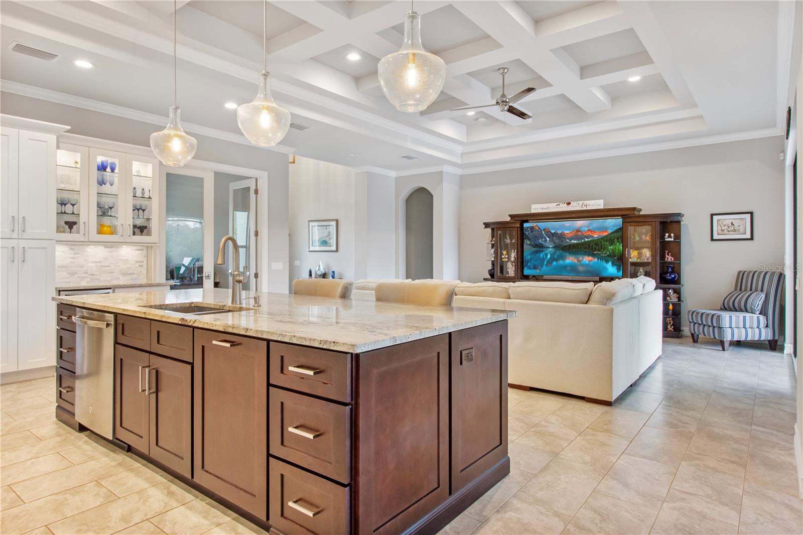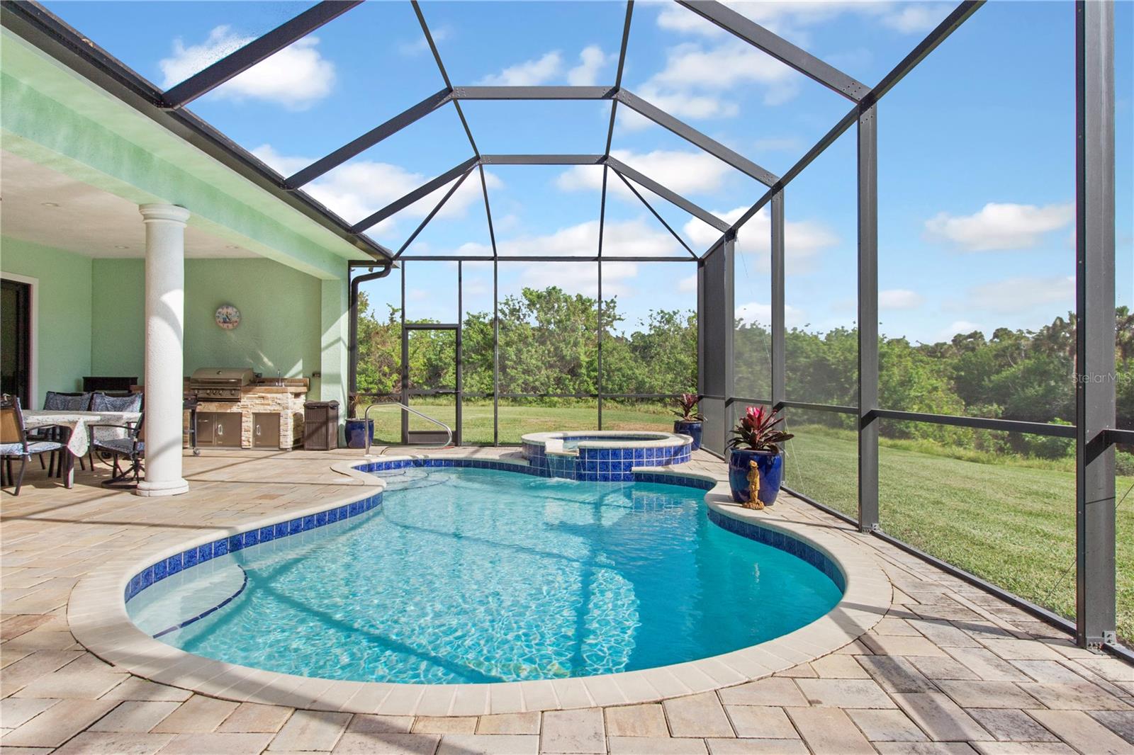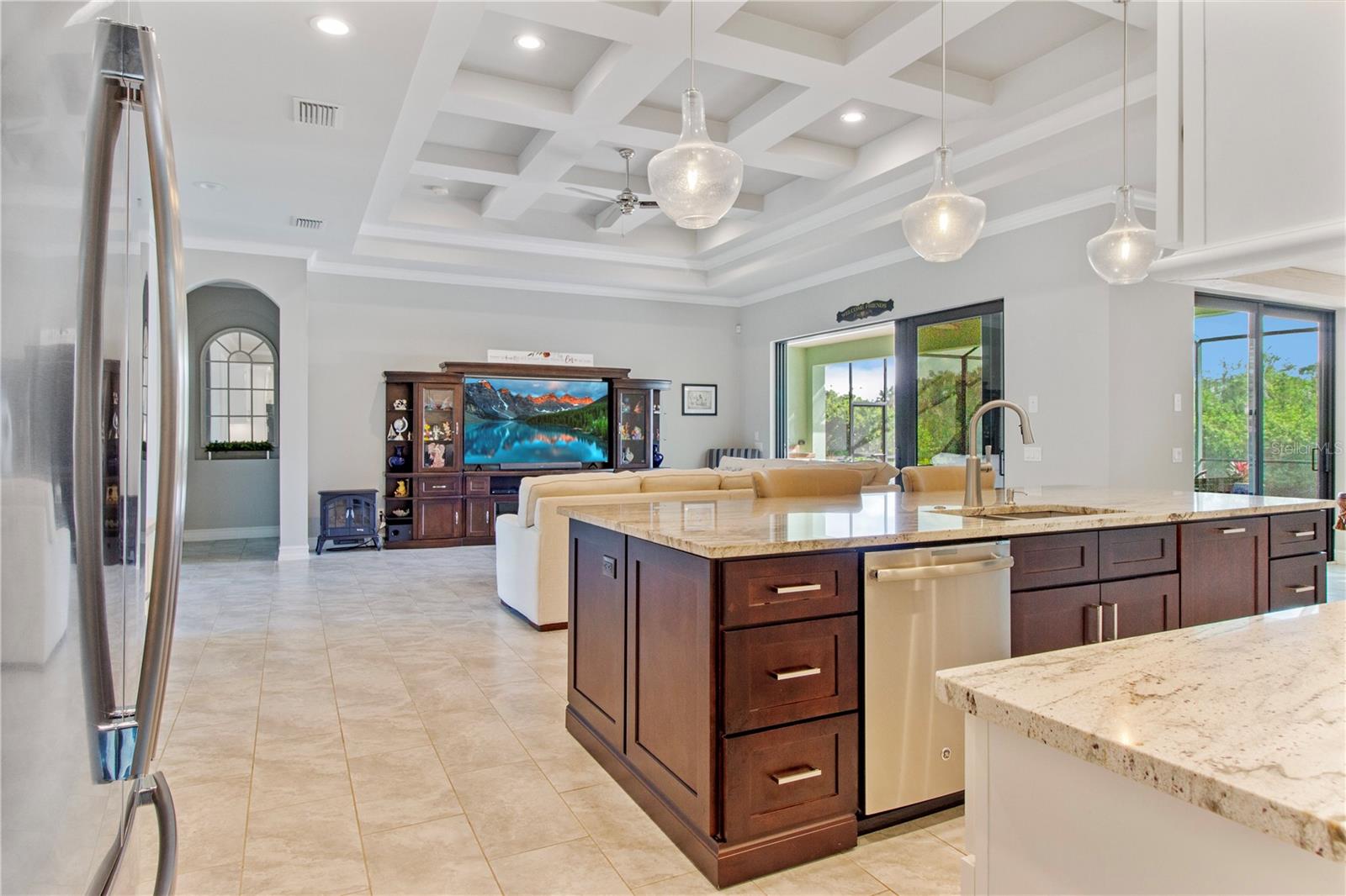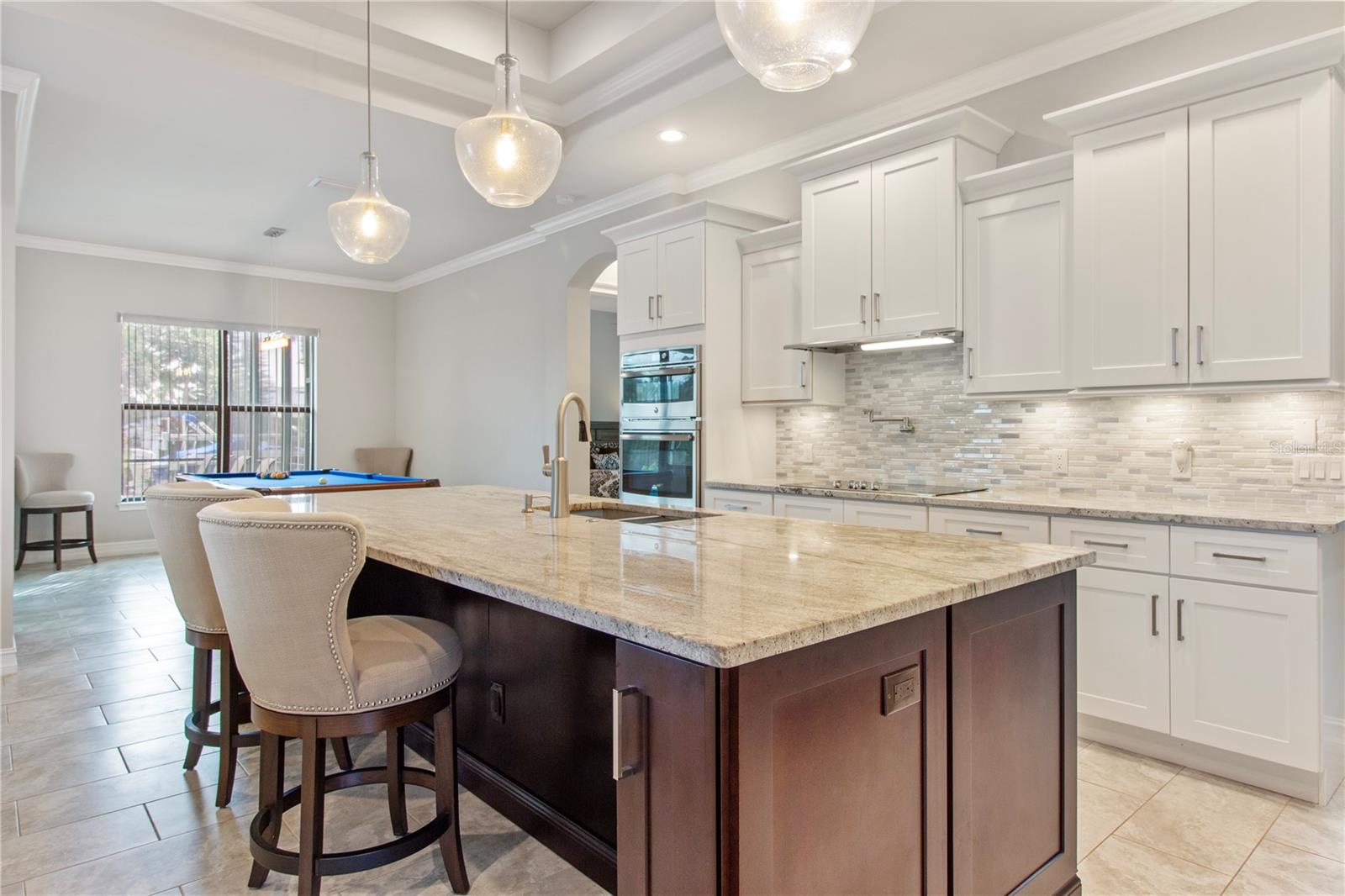*AVAILABLE FULLY FURNISHED* Welcome home to your picture perfect CUSTOM BUILT Driftwood Model POOL HOME w/GULF ACCESS on a DOUBLE LOT! This beautifully crafted home combines elegance & comfort, while featuring 3 bedrooms + DEN, 2 baths & a 2 car garage. Open the double front doors & be greeted with a grand entrance that's sure to please with gorgeous water views from every room! Warm, neutral colors, crown molding, 8' doorways, modern fixtures, & high coffered ceilings make this home one you don't want to miss! The inviting Great Room captivates you as you enter, complete with tall ceilings & natural sunlight beaming through the triple sliding doors, tile floors flow freely throughout the main living areas making cleaning a breeze & pet friendly. The open-concept floor plan showcases the gourmet chef's kitchen with an expansive center island aligned with designer pendant lights, 42" staggered cabinets featuring crown molding, built-in pantry, granite countertops, ornate backsplash, soft close drawers & a wine fridge. The Stainless Steel appliances including a flat top stove with pot filler make cooking more enjoyable! The dining room is currently being used as an entertainment area for pool & ping pong. The remarkable owners suite has an impressive tray ceiling, private lanai access, crown molding, ceiling fan & dual walk-in-closets featuring ventilated wood shelving. Indulge in pure relaxation as you enter the bath, it boasts double split vanities, separate water closet, linen closet & a Roman walk-in-shower w/dual showerheads, custom tile & built in's. The split bedroom floor plan offers privacy & comfort to family & guests alike. Both bedrooms are spacious with a ceiling fan, window & private closet. The guest bath is well appointed and located between the two guest bedrooms. The den would make an excellent office, playroom or craft room - the possibilites are endless! The laundry room has been upgraded with 42" inch cabinets, sink with granite countertops, and a frontload washer & dryer. Sliders from the Great Room open to your peaceful screened in lanai showcasing panoramic water views, the epitome of Florida living! Boasting over 400sf of covered area, featuring the custom stone stacked chef's OUTDOOR KITCHEN, fully equipped with SS "BULL BBQ" grill/rotisserie, refrigerator, sink, prep area & concealed propane tanks. Entertain family & friends all while enjoying the HEATED, SALTWATER POOL & SPA w/waterfall feature, and the pool cage is upgraded with "No See Um" screening. Love to fish? Enjoy the 80' CONCRETE SEAWALL with composite dock & BOAT LIFT on the Jupiter Waterway! Grab your boat & enjoy a picturesque ride to the Myakka River, Charlotte Harbor & the Gulf of Mexico with only 1 bridge, and it is only 10 MINUTES TO OPEN WATER! Upgrades galore including: SPRAY FOAM INSULATION, Epoxy coated garage floor, overhead storage, tankless hot water heater, Viega Manabloc plumbing manifold, and whole house surge protector. All windows & doors PGT WinGuard IMPACT RESISTANT tinted GLASS. Impressive whole house 22K "GENERAC" WHOLE HOUSE GENERATOR, with a 500 gallon underground propane tank, regularly maintained and serviced. WHOLE HOUSE "Kinetico" REVERSE OSMOSIS SYSTEM with a 300 gallon tank. TEAXX pest defense tubes in the walls provided by Hometeam Pest Defense. Irrigation system with timer & rain sensor. Roof is CEMENT TILE ROOF which is impressively resistant to weather, pest & fire. This home won't last long, so make your appt today!