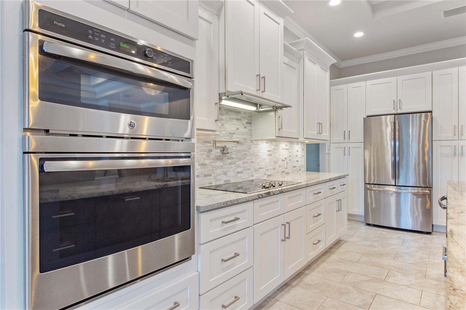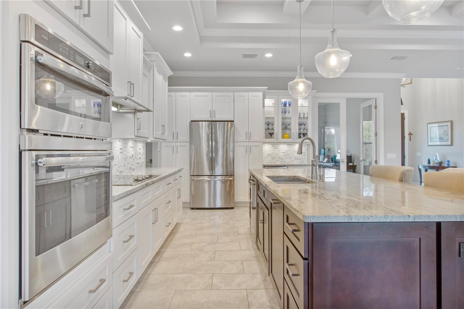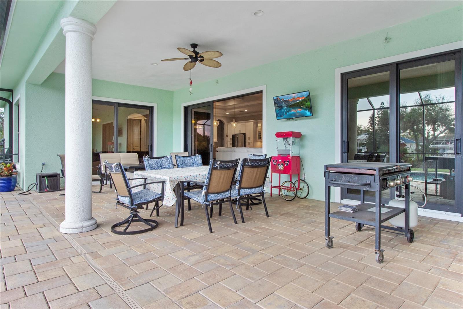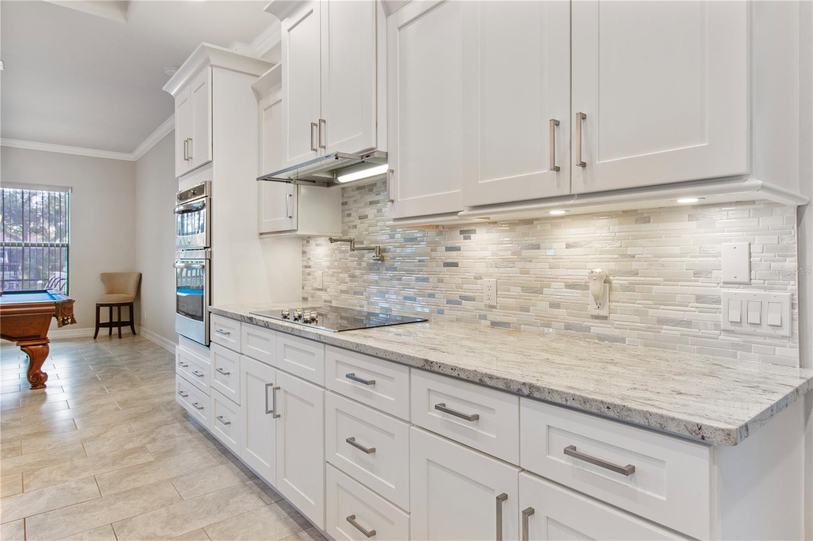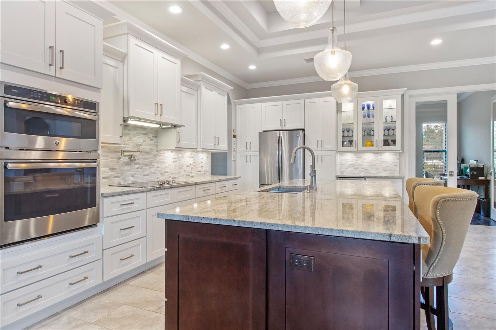 *AVAILABLE FULLY FURNISHED* Welcome home to your picture perfect CUSTOM BUILT Driftwood Model POOL HOME w/GULF ACCESS on a DOUBLE LOT! This beautifully crafted home combines elegance & comfort, while featuring 3 bedrooms + DEN, 2 baths & a 2 car garage. Open the double front doors & be greeted with a grand entrance that's sure to please with gorgeous water views from every room! Warm, neutral colors, crown molding, 8' doorways, modern fixtures, & high coffered ceilings make this home one you don't want to miss! The inviting Great Room captivates you as you enter, complete with tall ceilings & natural sunlight beaming through the triple sliding doors, tile floors flow freely throughout the main living areas making cleaning a breeze & pet friendly. The open-concept floor plan showcases the gourmet chef's kitchen with an expansive center island aligned with designer pendant lights, 42" staggered cabinets featuring crown molding, built-in pantry, granite countertops, ornate backsplash, soft close drawers & a wine fridge. The Stainless Steel appliances including a flat top stove with pot filler make cooking more enjoyable! The dining room is currently being used as an entertainment area for pool & ping pong. The remarkable owners suite has an impressive tray ceiling, private lanai access, crown molding, ceiling fan & dual walk-in-closets featuring ventilated wood shelving. Indulge in pure relaxation as you enter the bath, it boasts double split vanities, separate water closet, linen closet & a Roman walk-in-shower w/dual showerheads, custom tile & built in's. The split bedroom floor plan offers privacy & comfort to family & guests alike. Both bedrooms are spacious with a ceiling fan, window & private closet. The guest bath is well appointed and located between the two guest bedrooms. The den would make an excellent office, playroom or craft room - the possibilites are endless! The laundry room has been upgraded with 42" inch cabinets, sink with granite countertops, and a frontload washer & dryer. Sliders from the Great Room open to your peaceful screened in lanai showcasing panoramic water views, the epitome of Florida living! Boasting over 400sf of covered area, featuring the custom stone stacked chef's OUTDOOR KITCHEN, fully equipped with SS "BULL BBQ" grill/rotisserie, refrigerator, sink, prep area & concealed propane tanks. Entertain family & friends all while enjoying the HEATED, SALTWATER POOL & SPA w/waterfall feature, and the pool cage is upgraded with "No See Um" screening. Love to fish? Enjoy the 80' CONCRETE SEAWALL with composite dock & BOAT LIFT on the Jupiter Waterway! Grab your boat & enjoy a picturesque ride to the Myakka River, Charlotte Harbor & the Gulf of Mexico with only 1 bridge, and it is only 10 MINUTES TO OPEN WATER! Upgrades galore including: SPRAY FOAM INSULATION, Epoxy coated garage floor, overhead storage, tankless hot water heater, Viega Manabloc plumbing manifold, and whole house surge protector. All windows & doors PGT WinGuard IMPACT RESISTANT tinted GLASS. Impressive whole house 22K "GENERAC" WHOLE HOUSE GENERATOR, with a 500 gallon underground propane tank, regularly maintained and serviced. WHOLE HOUSE "Kinetico" REVERSE OSMOSIS SYSTEM with a 300 gallon tank. TEAXX pest defense tubes in the walls provided by Hometeam Pest Defense. Irrigation system with timer & rain sensor. Roof is CEMENT TILE ROOF which is impressively resistant to weather, pest & fire. This home won't last long, so make your appt today!