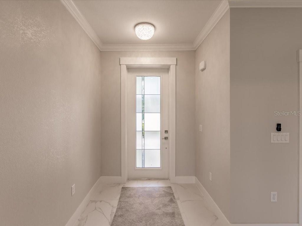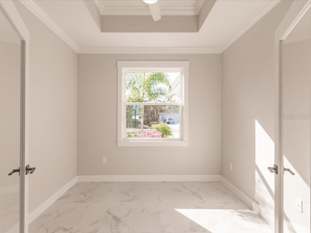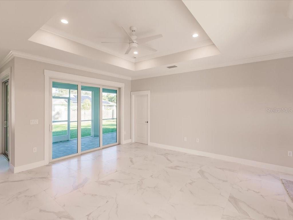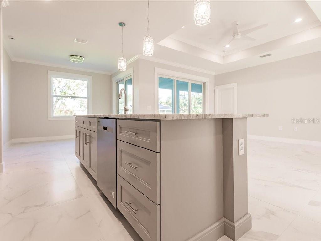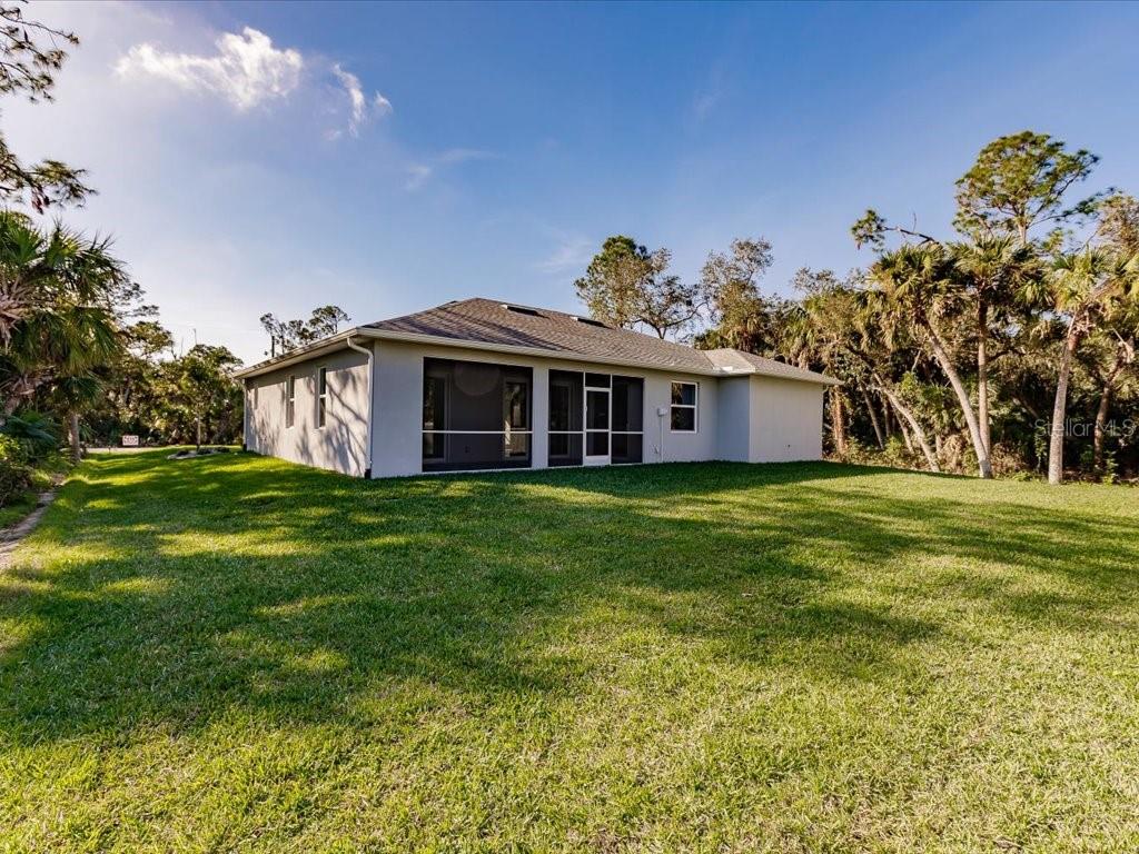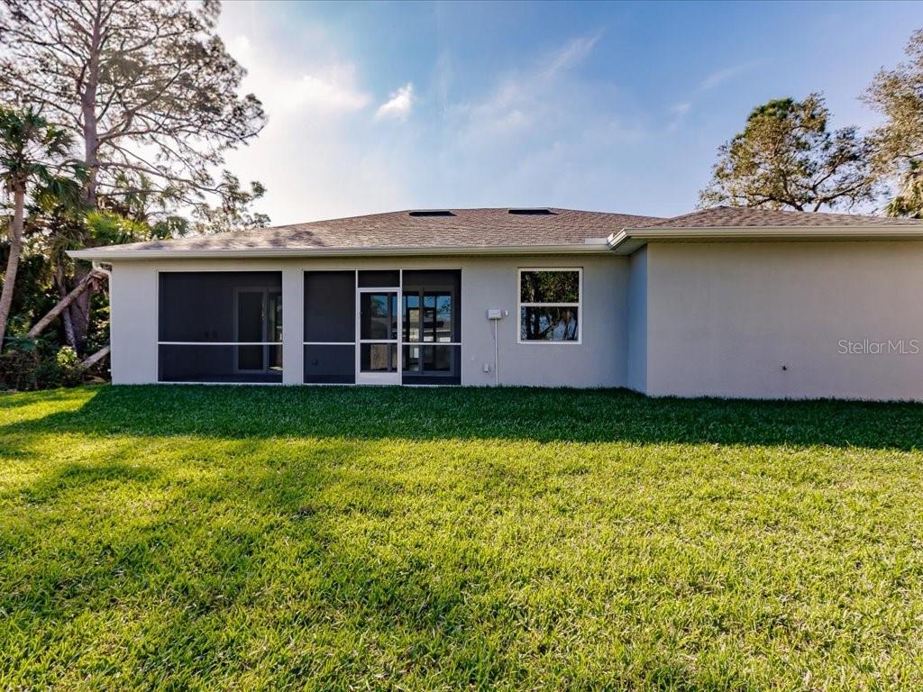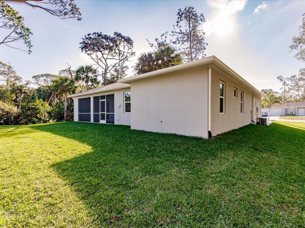 BRAND NEW, MOVE-IN-READY HOME WITH MANY UPGRADES, NOT YOUR STANDARD HOME - MUST SEE! At the end of Chamberlain in a very quiet area. Not in a flood zone and on public water. This home offers 3 bedrooms, 2 bathrooms, a study/den, and an oversized 2 car garage. This stunning residence boasts contemporary design elements throughout, featuring spacious living areas flooded with natural light, an Island kitchen with beautiful granite countertops, 42" upper custom cabinets with soft close doors, a slide-in convection range with built-in range hood and stainless steel appliances. Exquisite large floor tile throughout with the exception of the two guest bedrooms which have carpet. The spacious screened lanai with pavers overlooks the large backyard which is partially fenced and perfect for entertaining. Extra special features include 9.4 tray ceilings, St. Augustine sod and an irrigation system to keep it looking green and plush. Insulated windows and doors. Added bonus, all windows are trimmed out. This home has close proximity to Aldi's, Publix, Walmart, Restaurants and the Coco Plum Plaza. Only 16 miles to Englewood Beach. Don't miss out on this fantastic home - schedule a tour today!