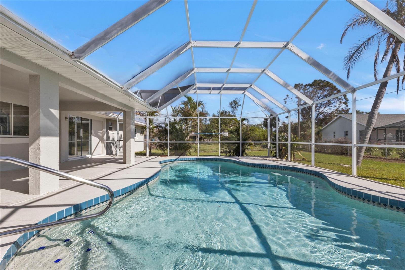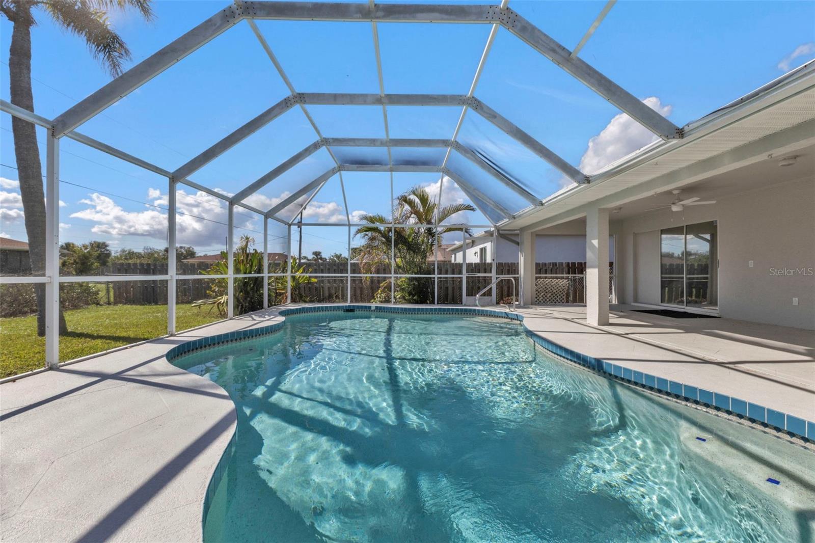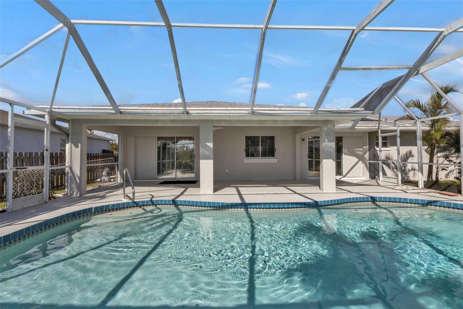 LOWEST PRICED REMODELED POOL HOME IN THIS PART OF PORT CHARLOTTE!**NEWLY REMODELED POOL HOME IN FANTASTIC LOCATION! Beautiful move-in ready home! Brand new custom 2-tone paint outside, newer roof and solar heat for the pool, newer A.C. system & newer water heater. Inside features soaring vaulted ceilings, brand new wood-like tile floors in living, dining & kitchen, new carpet in the bedrooms, complete brand-new kitchen w/ solid wood raised panel mission style cabinets with slow close doors & drawers, beautiful quartz countertops, brand new 4-piece Whirlpool stainless steel appliances and there is a pantry. Both bathrooms are fully updated with matching cabinets & quartz tops, new toilets and tile showers. Lighted ceiling fans in all rooms and all new switches & outlets too. The main feature is the gorgeous POOL area which features an under-truss lanai, free-form pool with a brand-new diamond brite marcite finish, nearly new solar heat, and a large screened cage. The yard is mostly fenced and features landscape curbing and mature palm trees. This home is located in an area of all gulf-access homes and almost nothing ever goes up for sale in this neighborhood so be sure to check out this listing and make your offer today! You will not be disappointed!!!