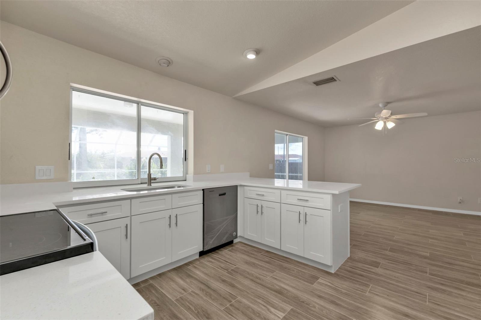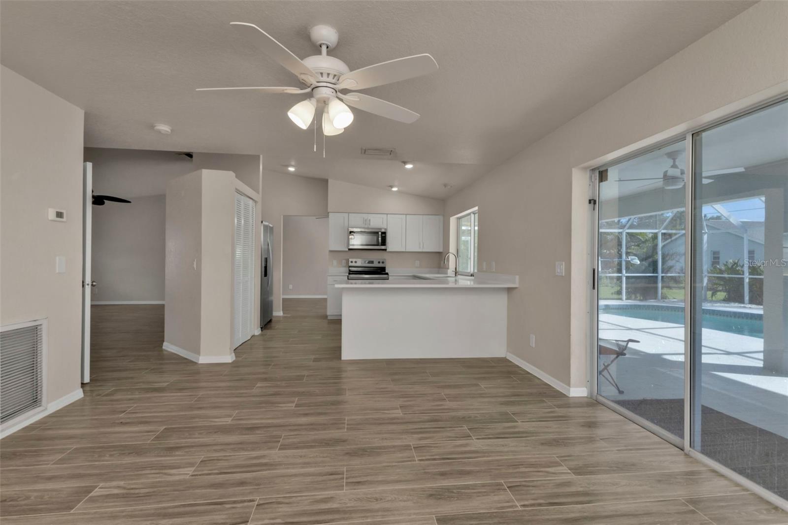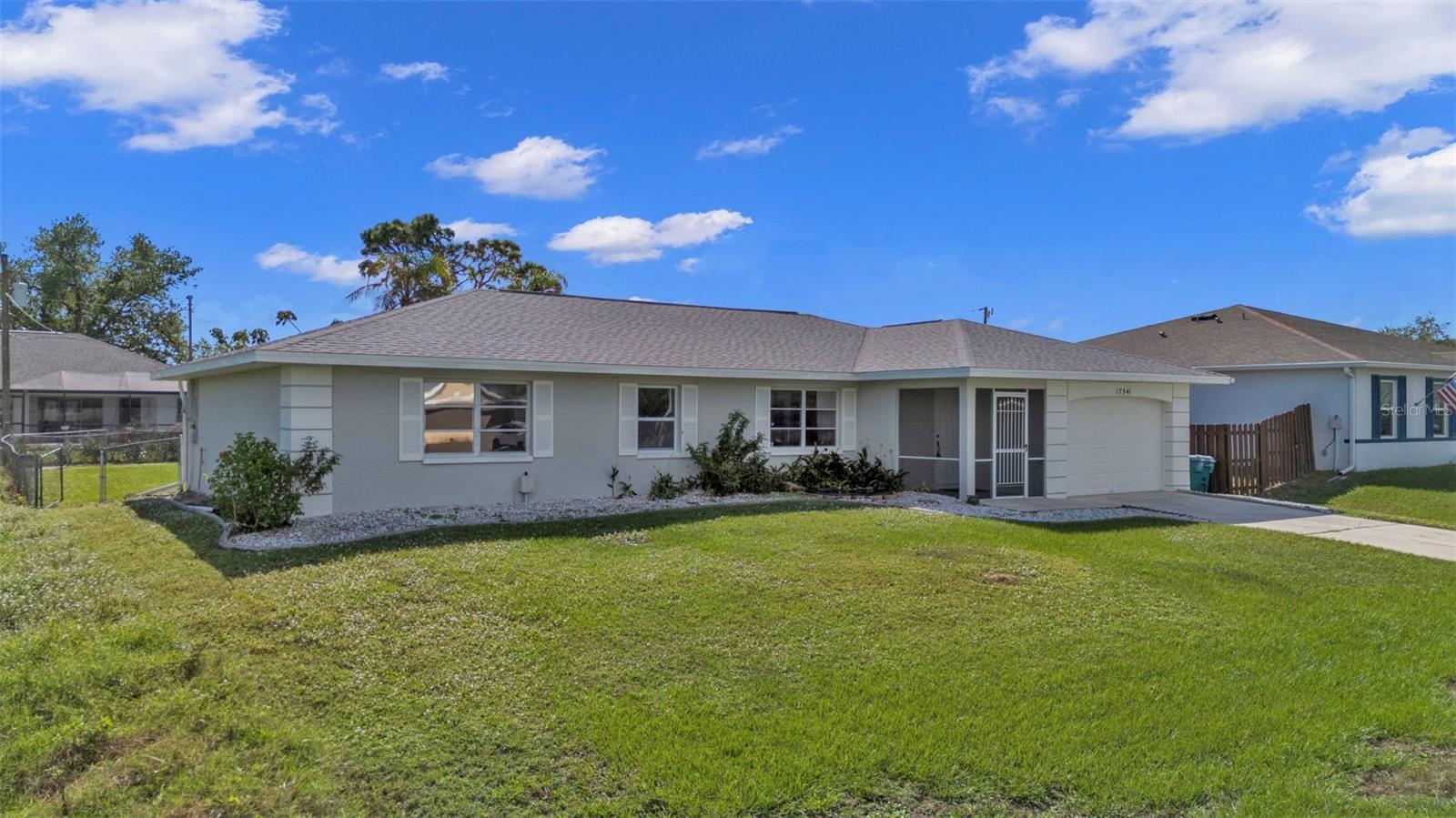 LOWEST PRICED REMODELED POOL HOME IN THIS PART OF PORT CHARLOTTE!**NEWLY REMODELED POOL HOME IN FANTASTIC LOCATION! Beautiful move-in ready home! Brand new custom 2-tone paint outside, newer roof and solar heat for the pool, newer A.C. system & newer water heater. Inside features soaring vaulted ceilings, brand new wood-like tile floors in living, dining & kitchen, new carpet in the bedrooms, complete brand-new kitchen w/ solid wood raised panel mission style cabinets with slow close doors & drawers, beautiful quartz countertops, brand new 4-piece Whirlpool stainless steel appliances and there is a pantry. Both bathrooms are fully updated with matching cabinets & quartz tops, new toilets and tile showers. Lighted ceiling fans in all rooms and all new switches & outlets too. The main feature is the gorgeous POOL area which features an under-truss lanai, free-form pool with a brand-new diamond brite marcite finish, nearly new solar heat, and a large screened cage. The yard is mostly fenced and features landscape curbing and mature palm trees. This home is located in an area of all gulf-access homes and almost nothing ever goes up for sale in this neighborhood so be sure to check out this listing and make your offer today! You will not be disappointed!!!