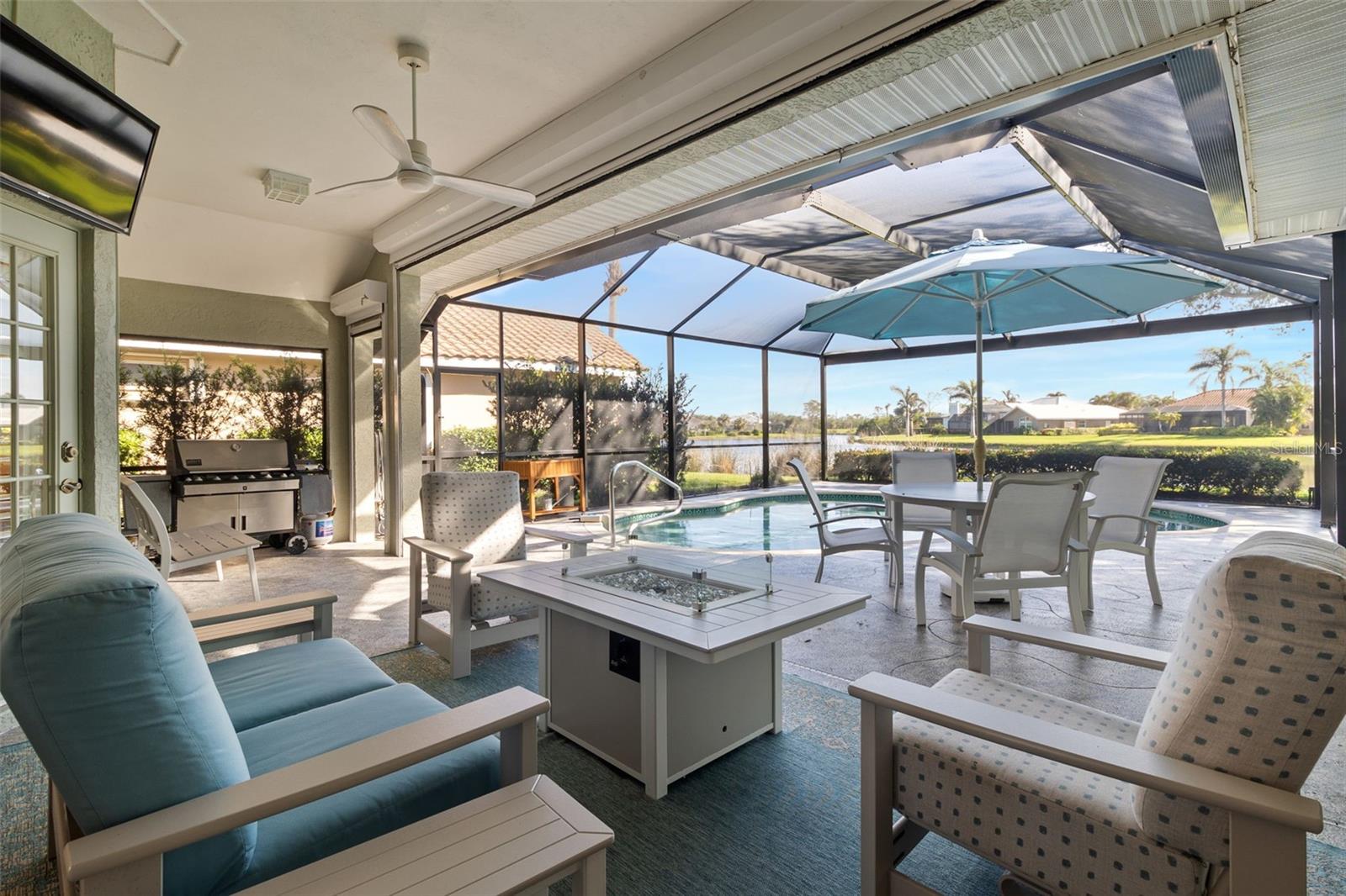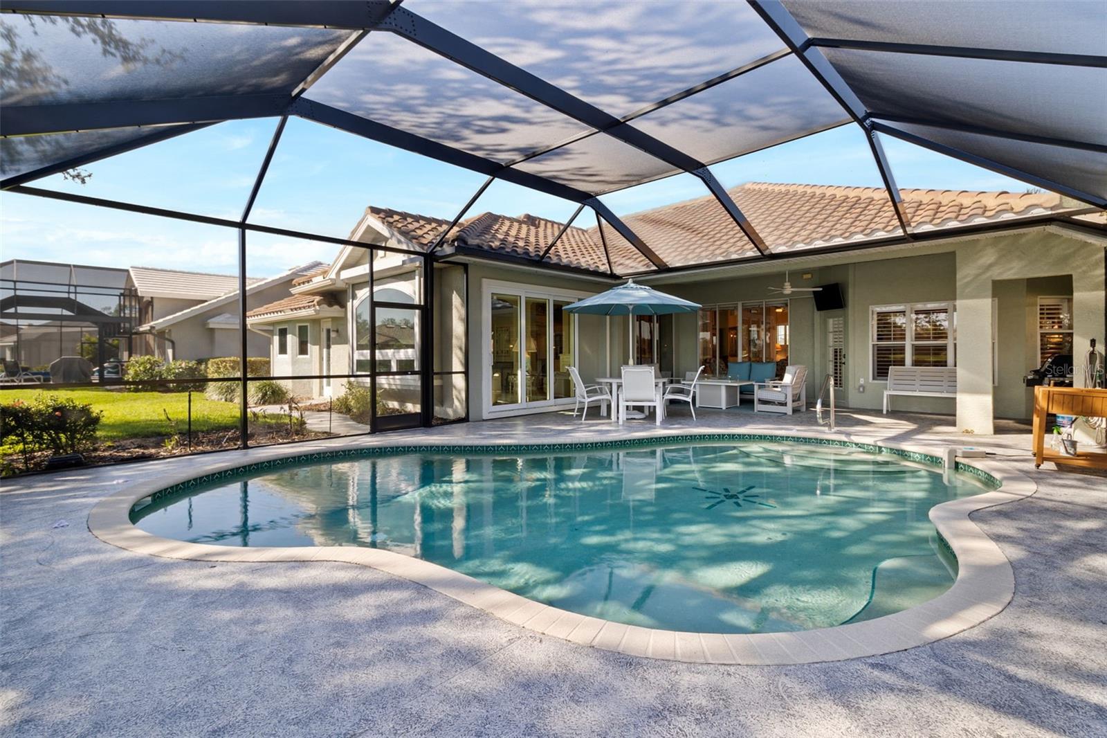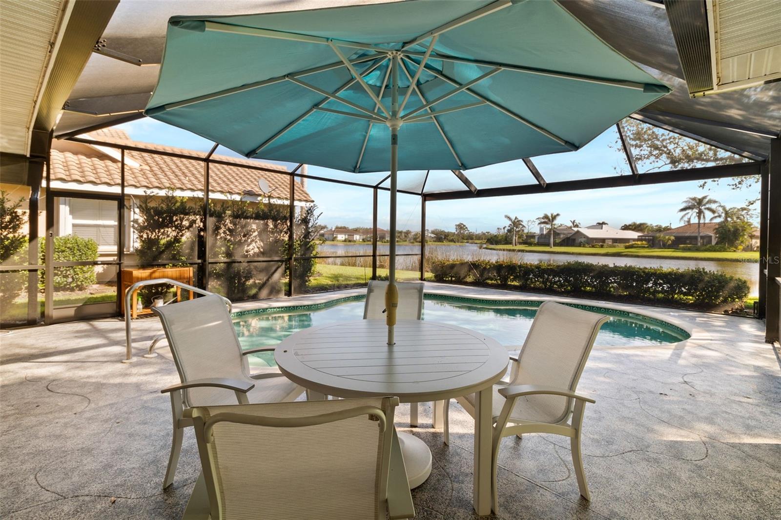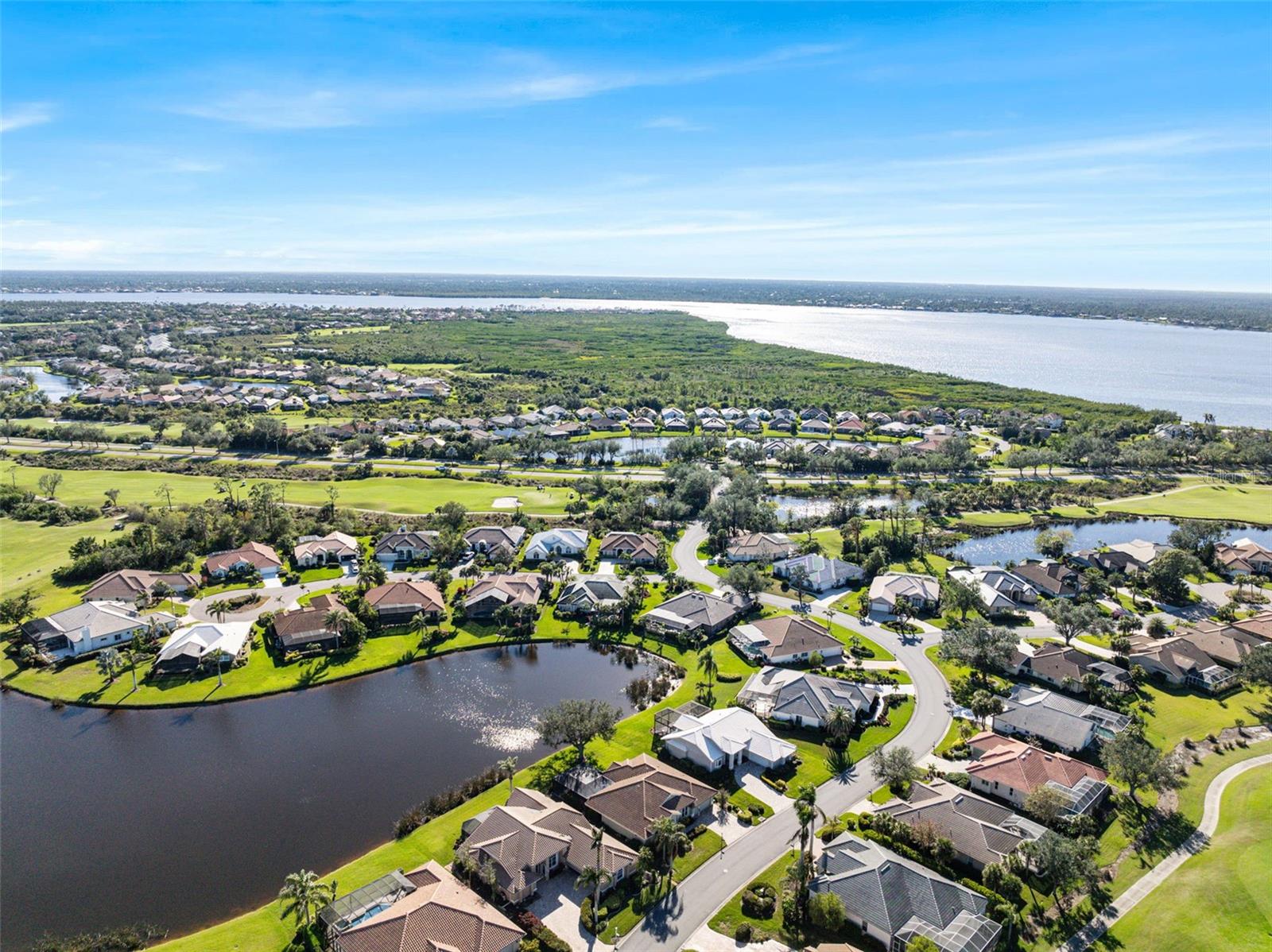 3 Bedrooms | 2 Bathrooms | 2-Car Garage | 2 Flex Rooms Indulge in a lakeside lifestyle with this stunning home nestled within the highly sought-after, resort-style, gated community of Riverwood. It features panoramic views of tranquil Long Lake from nearly every room. The home has been thoughtfully upgraded with a new roof, hurricane windows, pool cage and paver driveway. Upon entering, you are treated to a decorator-designed formal living room and dining room, perfect for entertaining. Beyond, you enter a chef’s kitchen, which is both functional and elegant. It features a granite island, an induction stovetop, stainless steel appliances, travertine flooring and abundant cabinetry. The spacious kitchen opens up to a cozy family room. Two additional bedrooms are located off of the family room as well as a second bath with a shower. The bedrooms are spacious, carpeted and have high ceilings. Two additional flex rooms can be used as offices or hobby rooms. The large master bedroom suite features a tray ceiling,two- walk-in closets and an upgraded bathroom with a spa-like soaking tub. All rooms have either plantation shutters or Hunter Douglass window treatments. The screened lanai can be accessed from the master bedroom, living room, kitchen or family room and has a heated pool. Sliding doors can be opened from the living room, kitchen and family room to allow for seamless entertaining from indoors to the beautiful outdoor pool and outdoor kitchen grilling area. Beyond the home the owner can enjoy the many features of Riverwood, including a large well equipped gym, exercise classes, pickleball and tennis courts, dog park, meeting rooms and more. Additionally, residents can choose to join the renowned Riverwood Golf Club and the beach club.