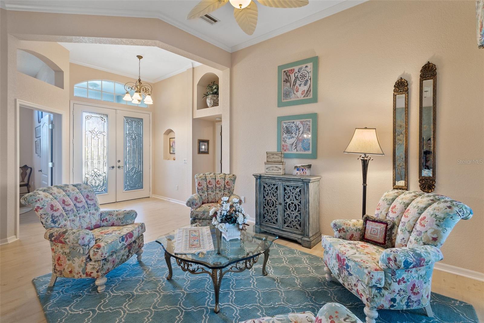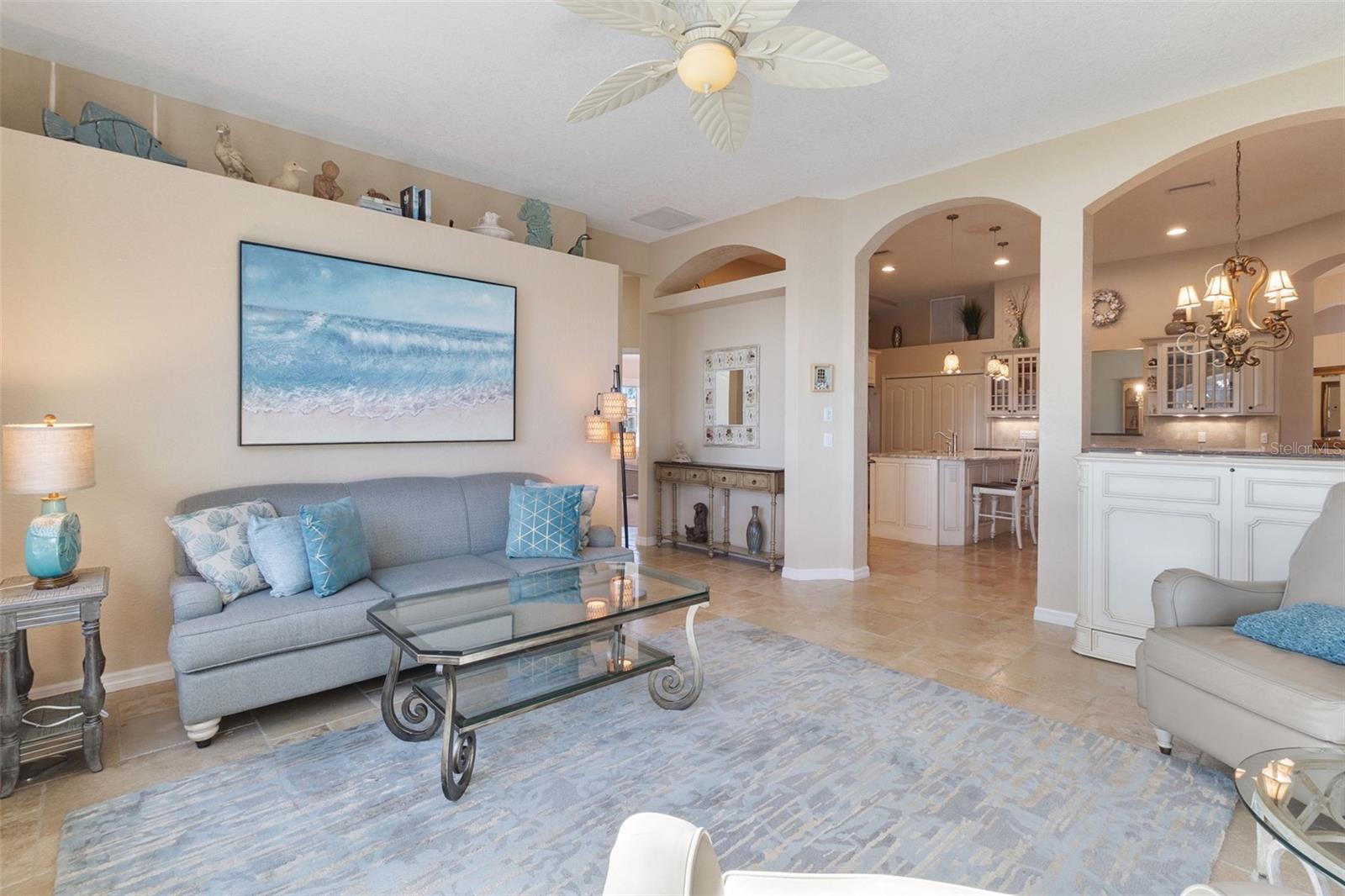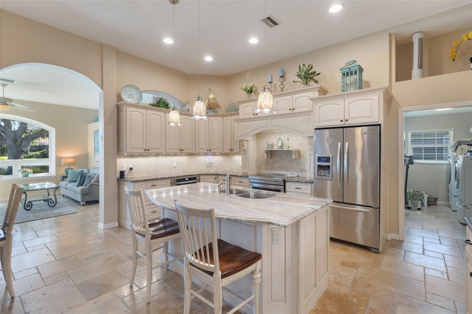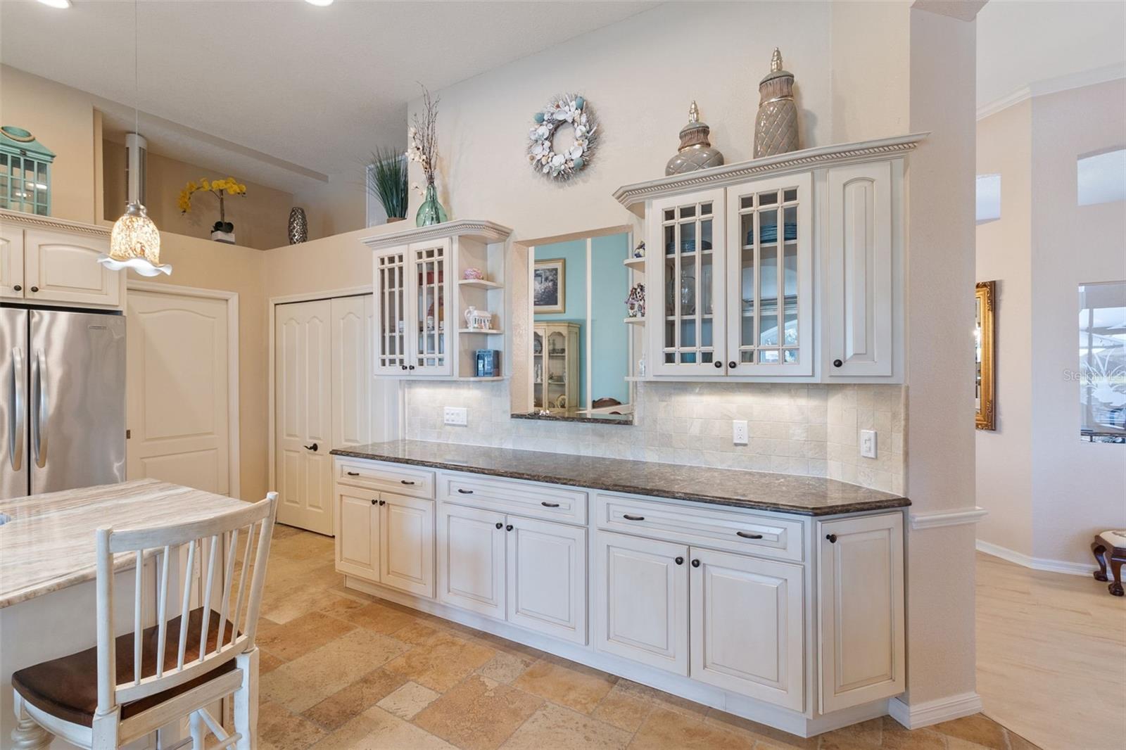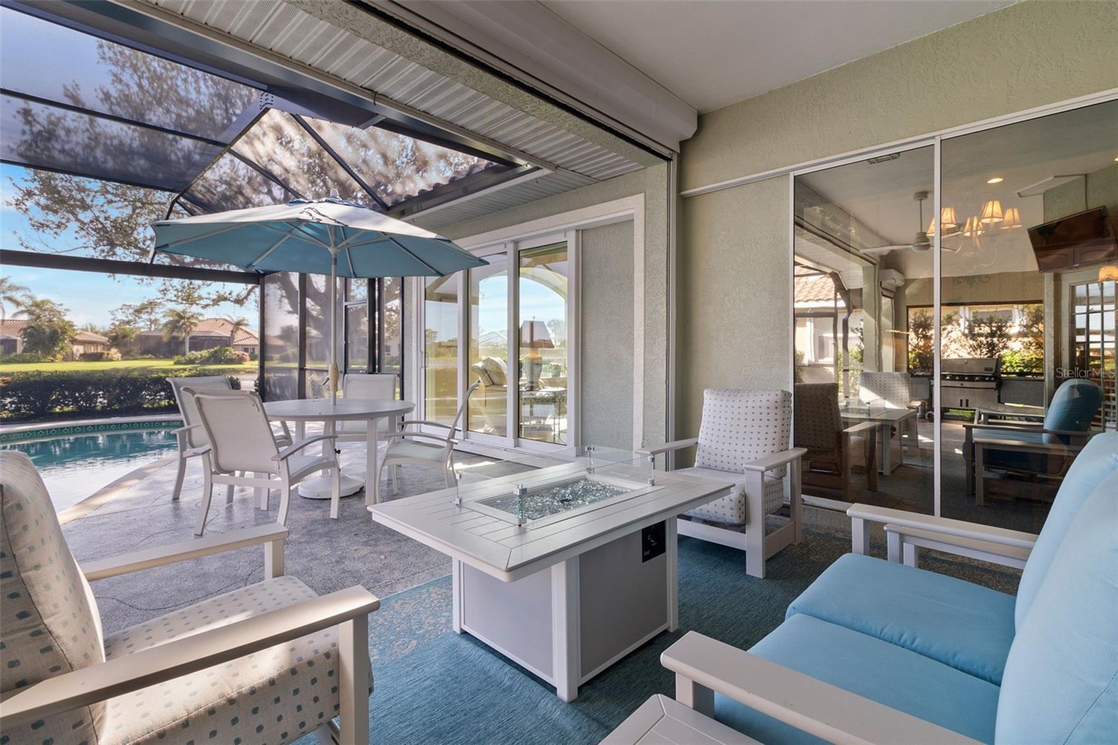 3 Bedrooms | 2 Bathrooms | 2-Car Garage | 2 Flex Rooms Indulge in a lakeside lifestyle with this stunning home nestled within the highly sought-after, resort-style, gated community of Riverwood. It features panoramic views of tranquil Long Lake from nearly every room. The home has been thoughtfully upgraded with a new roof, hurricane windows, pool cage and paver driveway. Upon entering, you are treated to a decorator-designed formal living room and dining room, perfect for entertaining. Beyond, you enter a chef’s kitchen, which is both functional and elegant. It features a granite island, an induction stovetop, stainless steel appliances, travertine flooring and abundant cabinetry. The spacious kitchen opens up to a cozy family room. Two additional bedrooms are located off of the family room as well as a second bath with a shower. The bedrooms are spacious, carpeted and have high ceilings. Two additional flex rooms can be used as offices or hobby rooms. The large master bedroom suite features a tray ceiling,two- walk-in closets and an upgraded bathroom with a spa-like soaking tub. All rooms have either plantation shutters or Hunter Douglass window treatments. The screened lanai can be accessed from the master bedroom, living room, kitchen or family room and has a heated pool. Sliding doors can be opened from the living room, kitchen and family room to allow for seamless entertaining from indoors to the beautiful outdoor pool and outdoor kitchen grilling area. Beyond the home the owner can enjoy the many features of Riverwood, including a large well equipped gym, exercise classes, pickleball and tennis courts, dog park, meeting rooms and more. Additionally, residents can choose to join the renowned Riverwood Golf Club and the beach club.