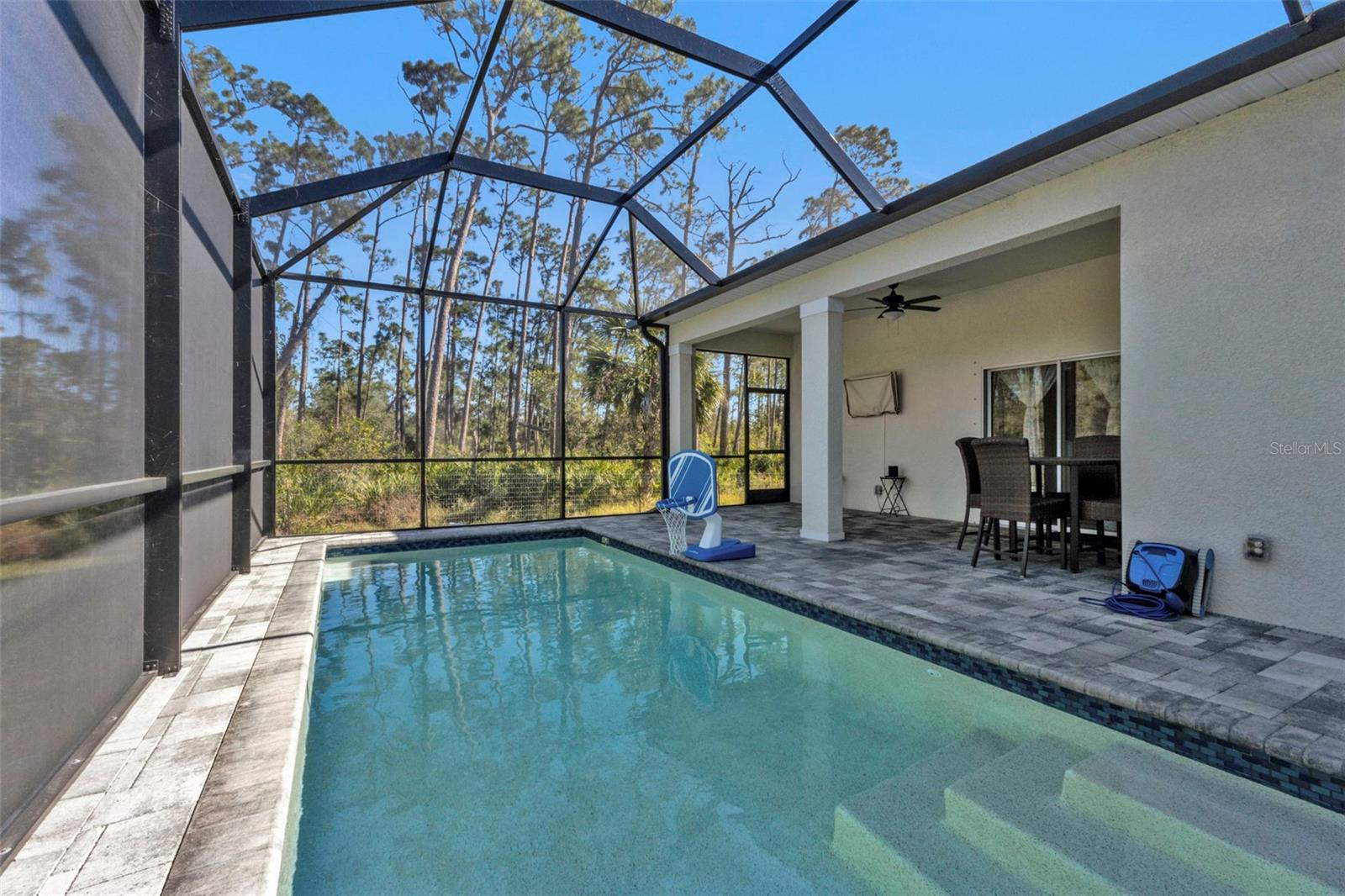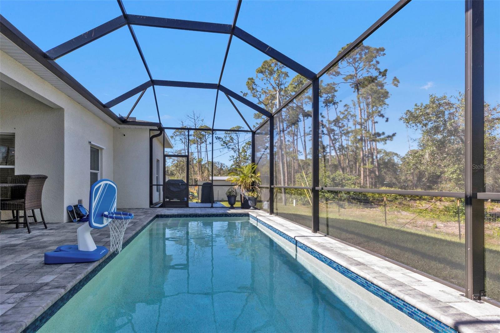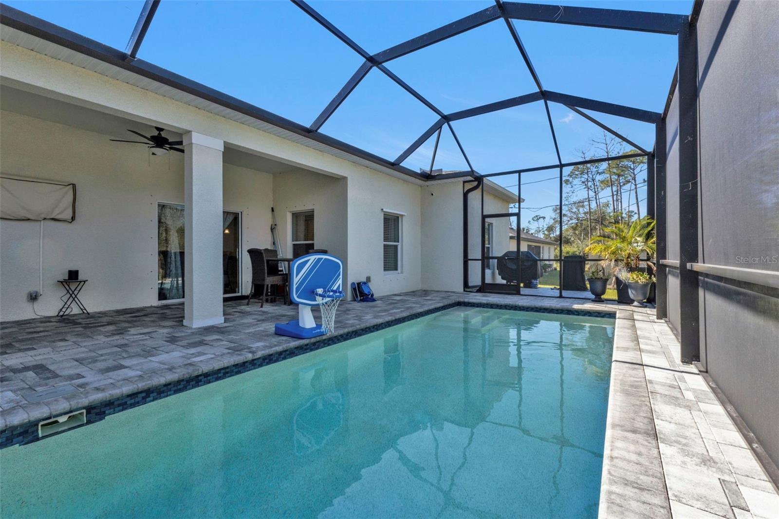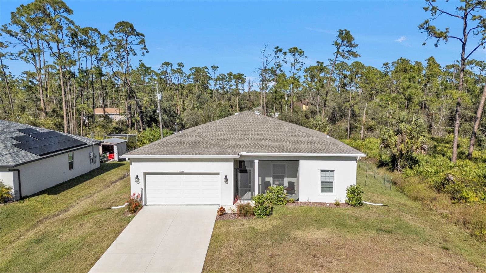 Live your Florida Dream with this BEAUTIFUL 4 Bedroom, 2 Bathroom, 2 Car Garage, Pool home with REAR VACANT LOT INCLUDED located in Port Charlotte. NO HOA FEES! CLICK ON THE VIRTUAL TOUR LINK 1 FOR THE VIDEO AND VIRTUAL LINK 2 FOR THE 3D TOUR. This home boasts a bright, open floor plan with tile flooring throughout, recessed and pendant lighting, and an array of modern finishes. The spacious living and dining areas are perfect for entertaining, while the chef-inspired kitchen features sleek stainless steel appliances, beautiful quartz countertops, and a central island with a breakfast bar — ideal for casual meals or gathering with loved ones. The spacious master suite offers a peaceful retreat with HIS & HERS walk-in closets, plus a private bath with a dual-sink vanity, walk-in shower, and a separate water closet. The three guest bedrooms are on a split floor plan, ensuring maximum privacy, and share a stylish guest bathroom. Step outside to the lanai, where you can enjoy your morning coffee or unwind with your favorite evening beverage while overlooking the sparkling heated pool—perfect for year-round enjoyment. The fully fenced yard and included rear vacant lot offer ample space and endless potential for future development or outdoor activities. 2022 ROOF - SCREENED IN FRONT PORCH - HURRICANE PROTECTION - RAIN GUTTERS. Close to US-41, shopping, fine & casual dining and the Charlotte Sports Park welcoming the Tampa Bay Rays & Charlotte Stone Crabs. Also just a short car ride to the Gulf Beaches of Boca Grande, Englewood, or Manasota Key to name a few where you will find world class fishing and white sand between your toes. Schedule your showing TODAY!